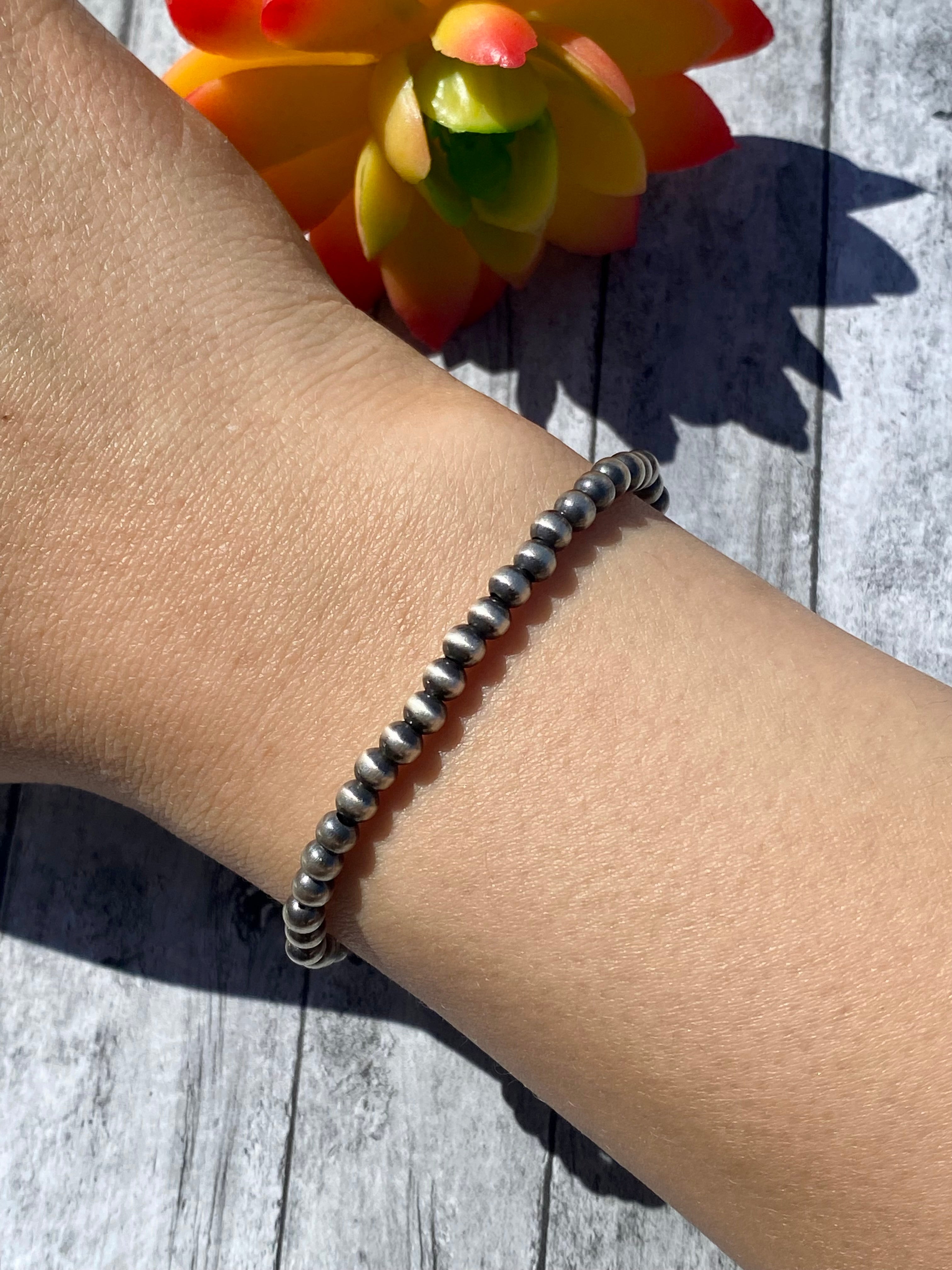 Mason Lee Sterling Silver 4 MM Pearl Adjustable Bracelet. Adjustable will fit all sizes.