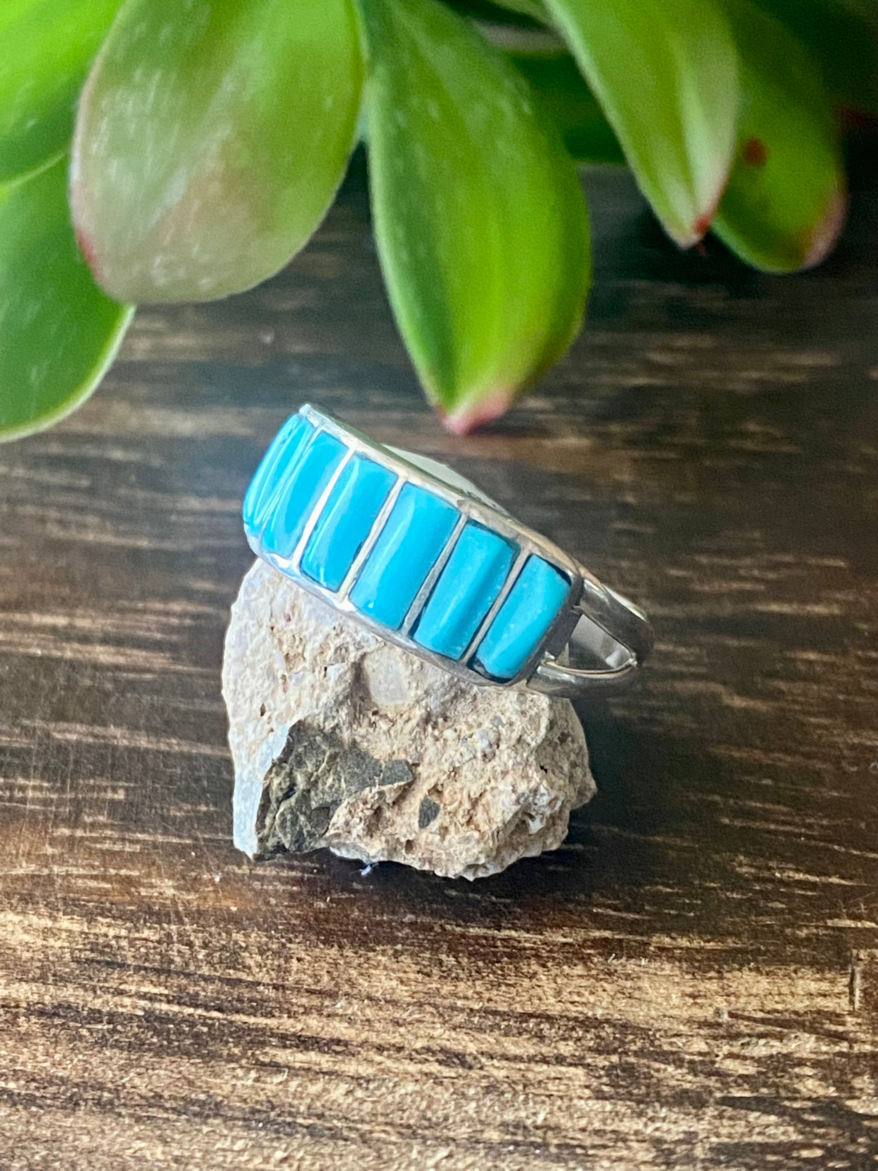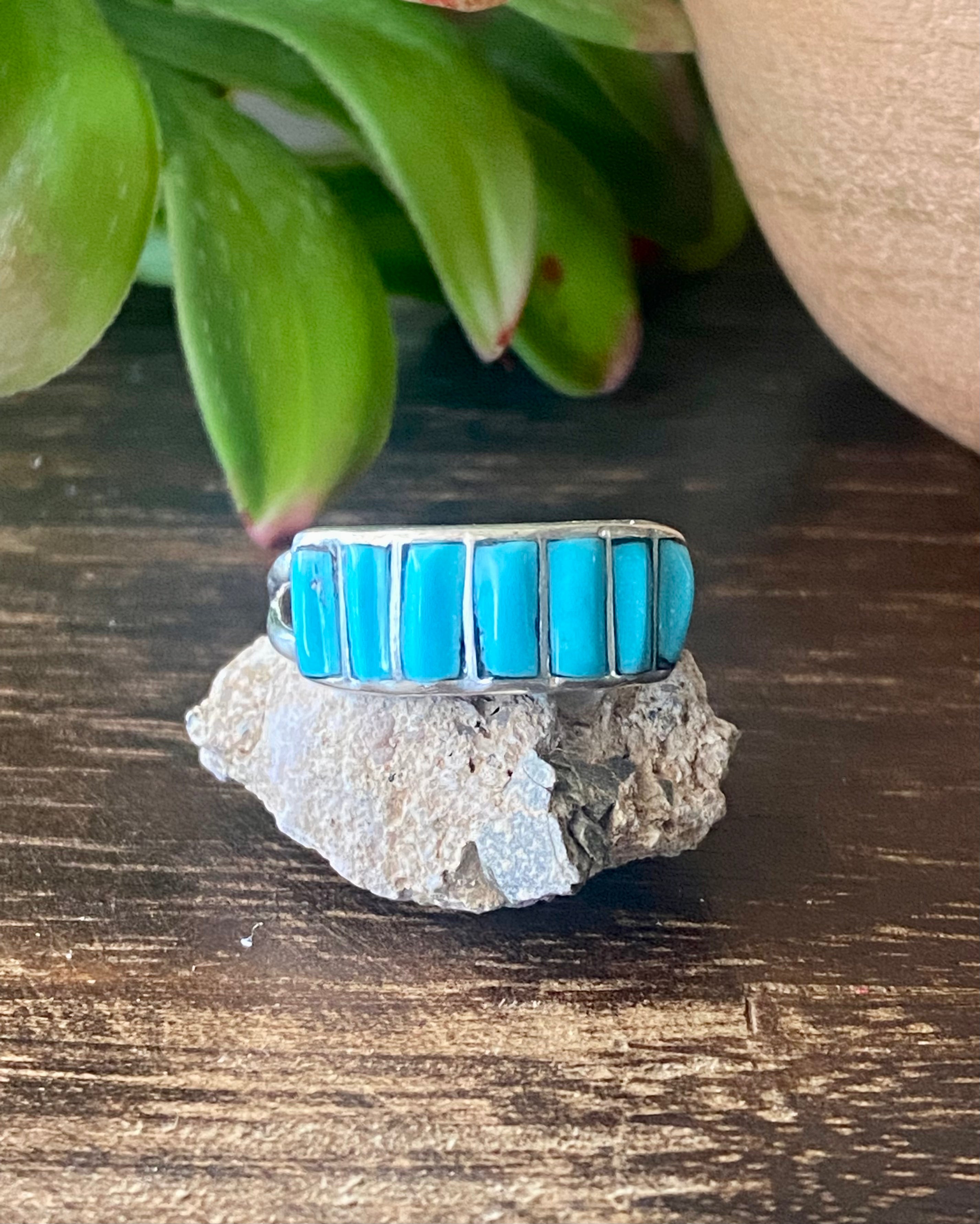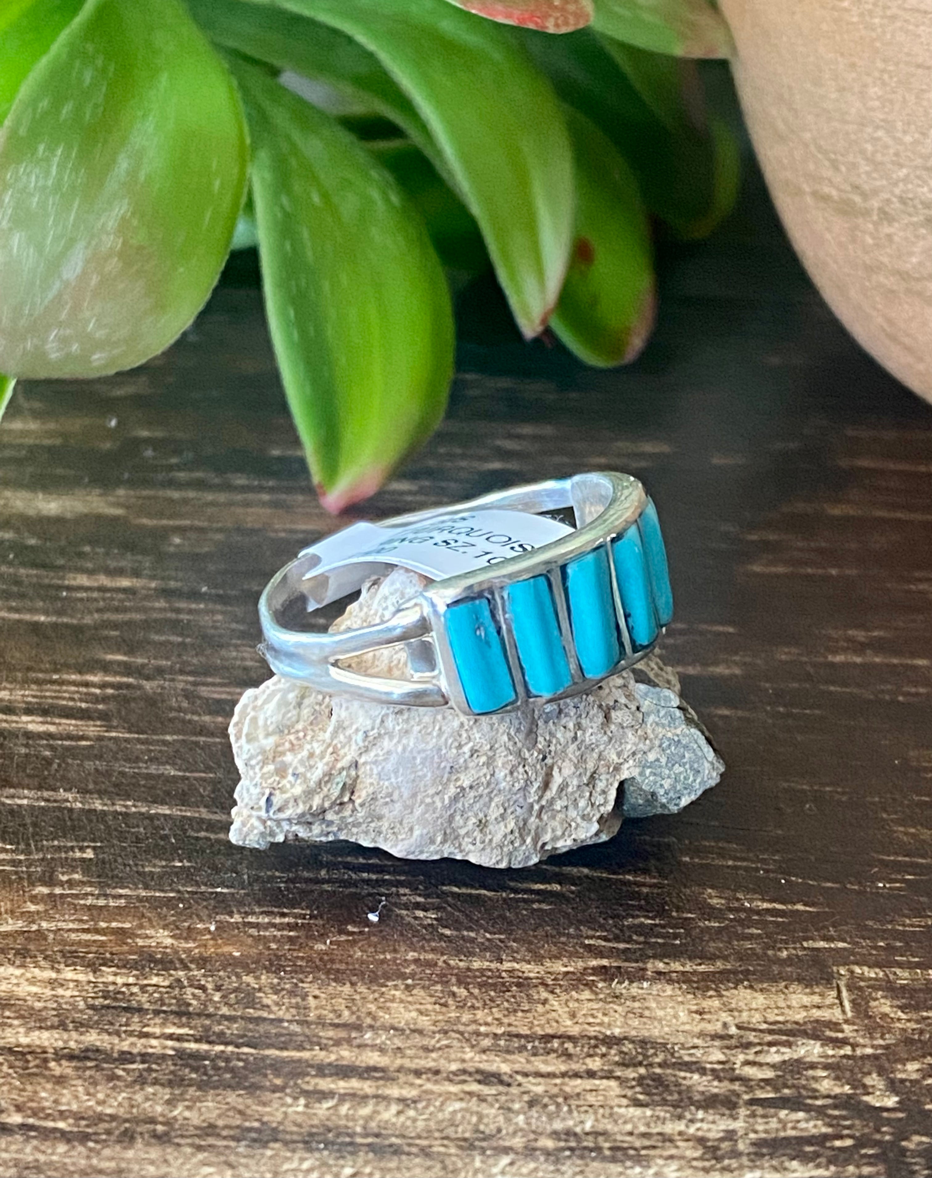 Mira Payesnta Turquoise & Sterling Silver Inlay Ring Size 10.5