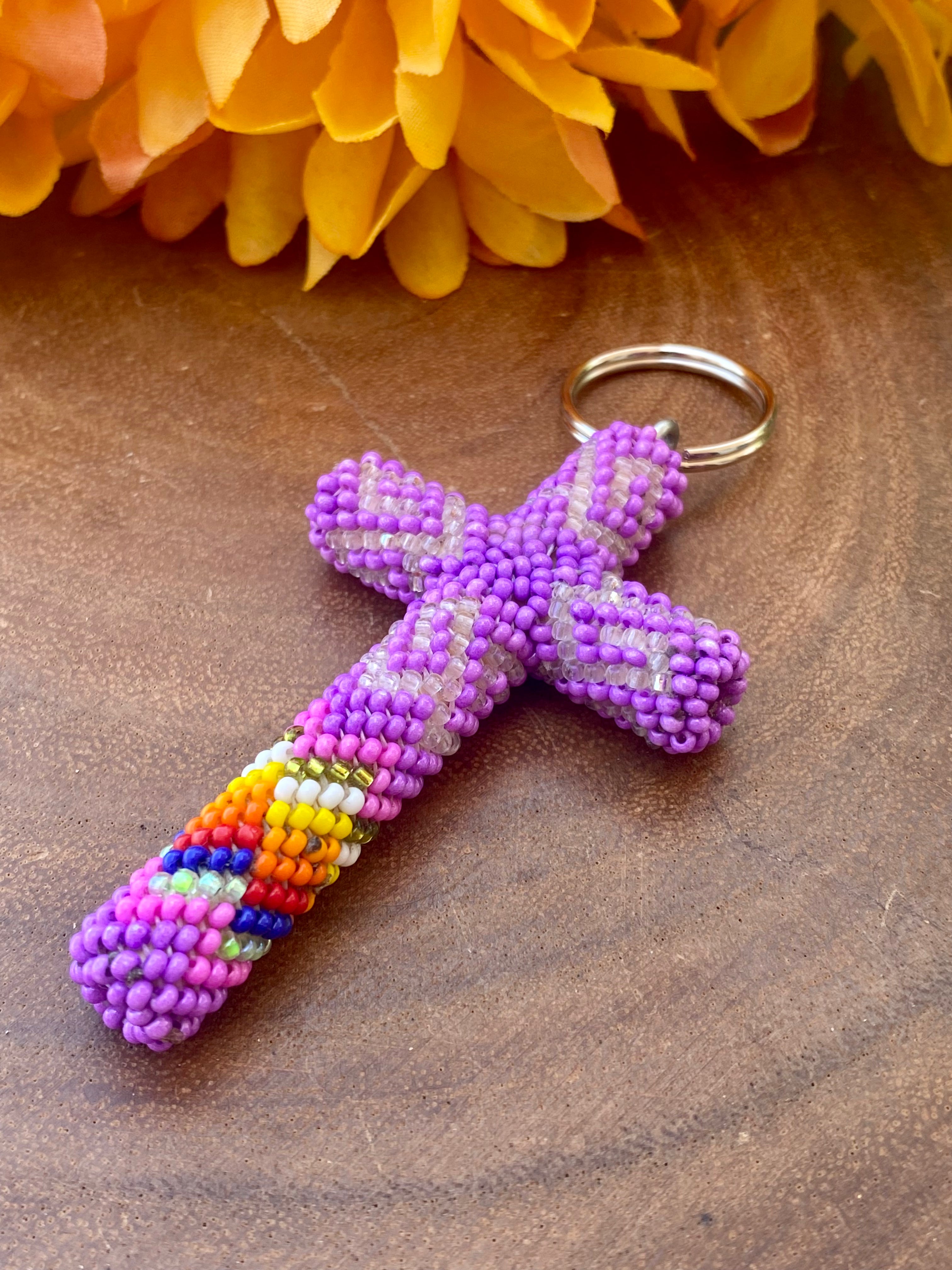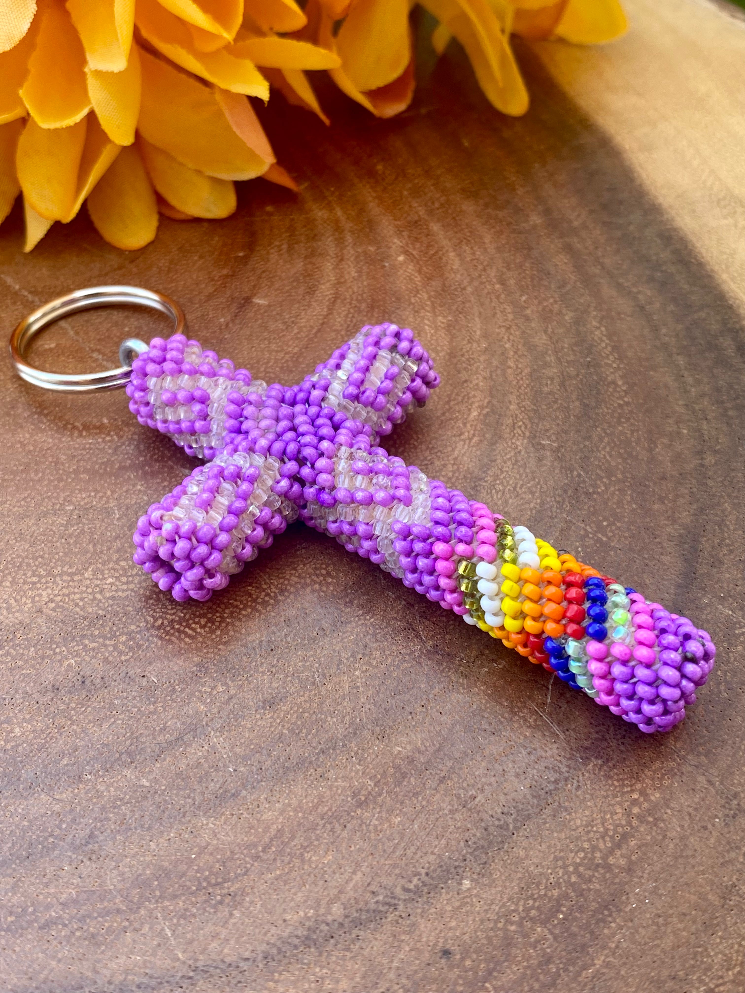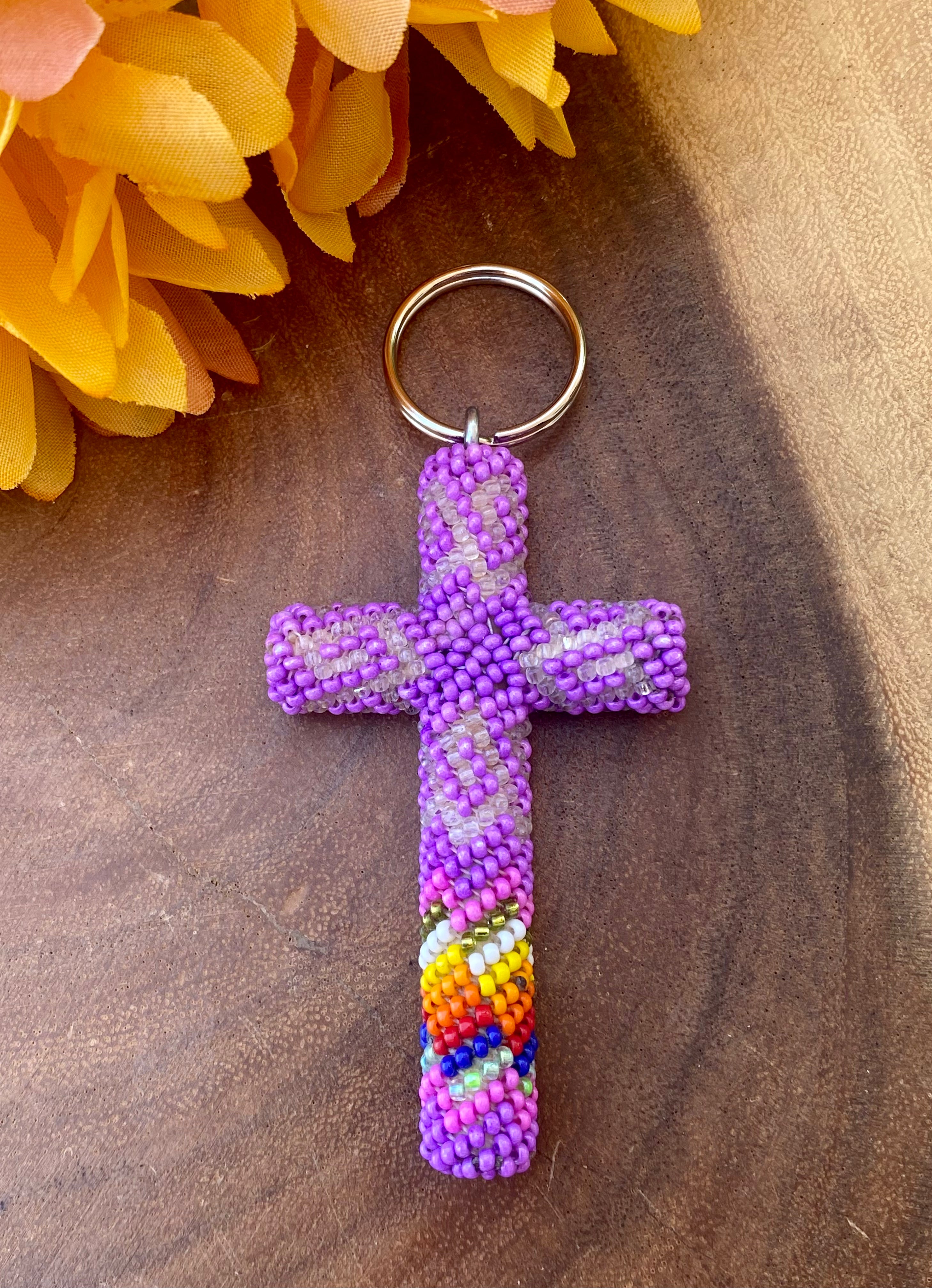 Native American Made Beaded Cross Keychain