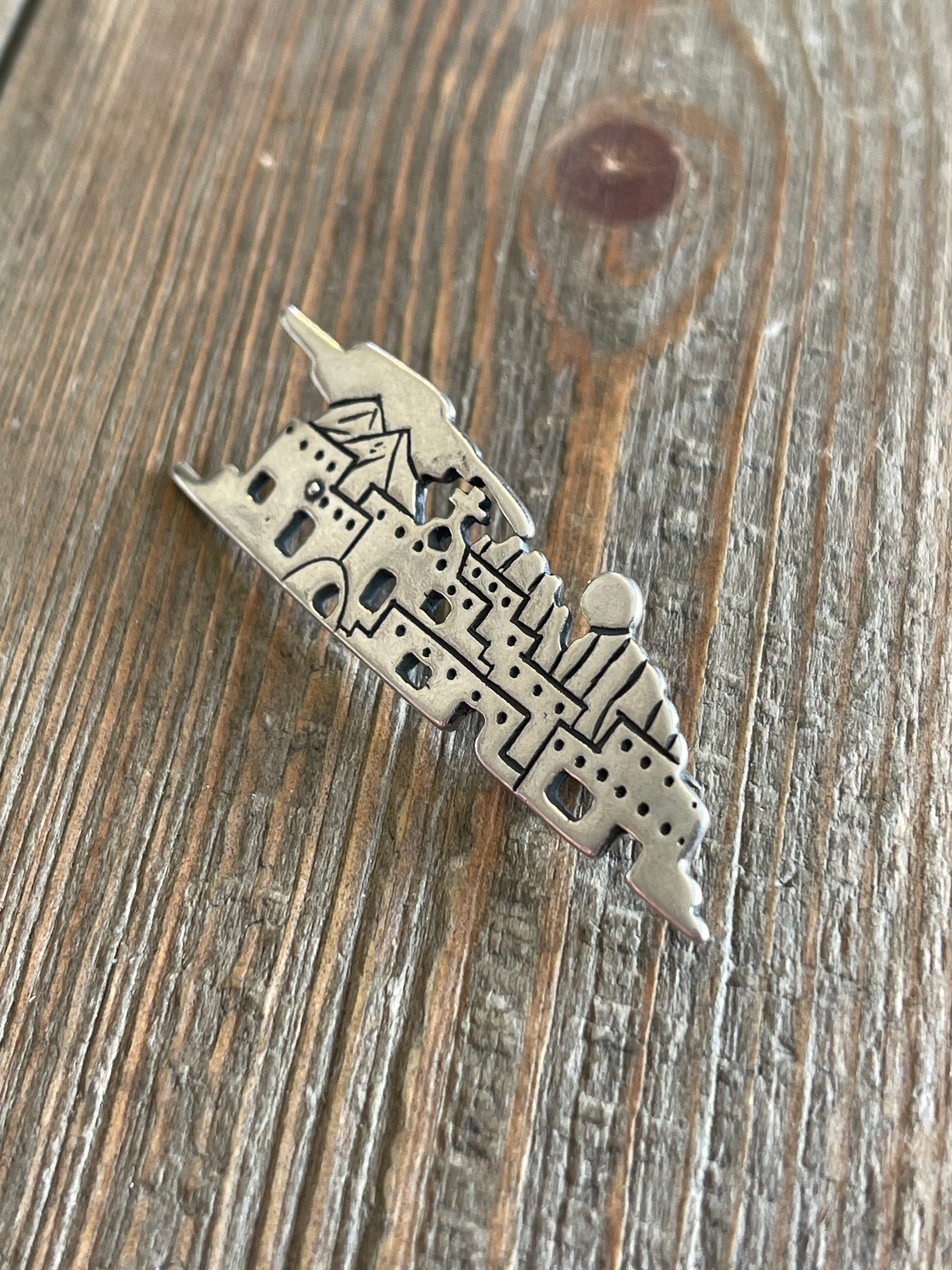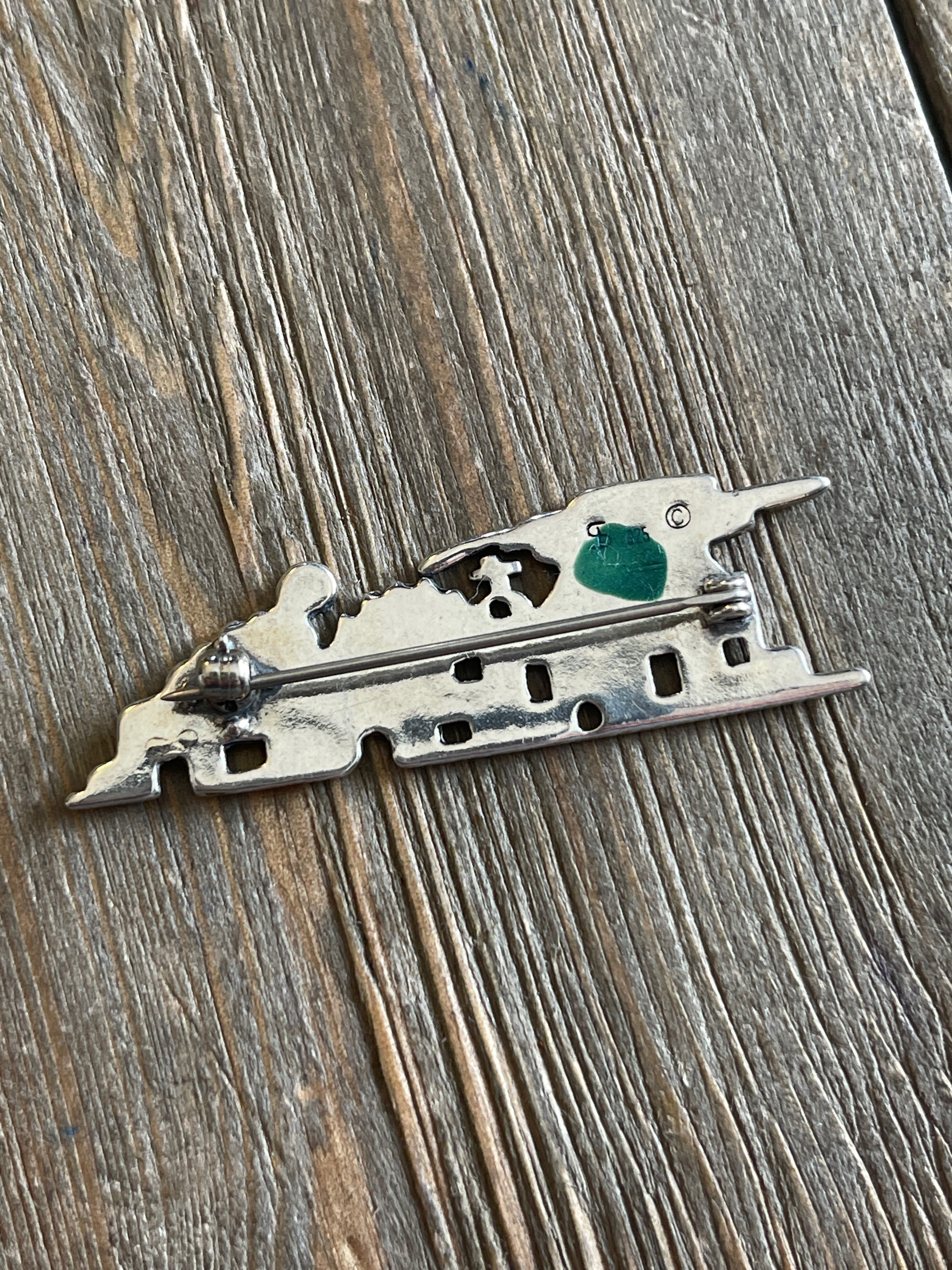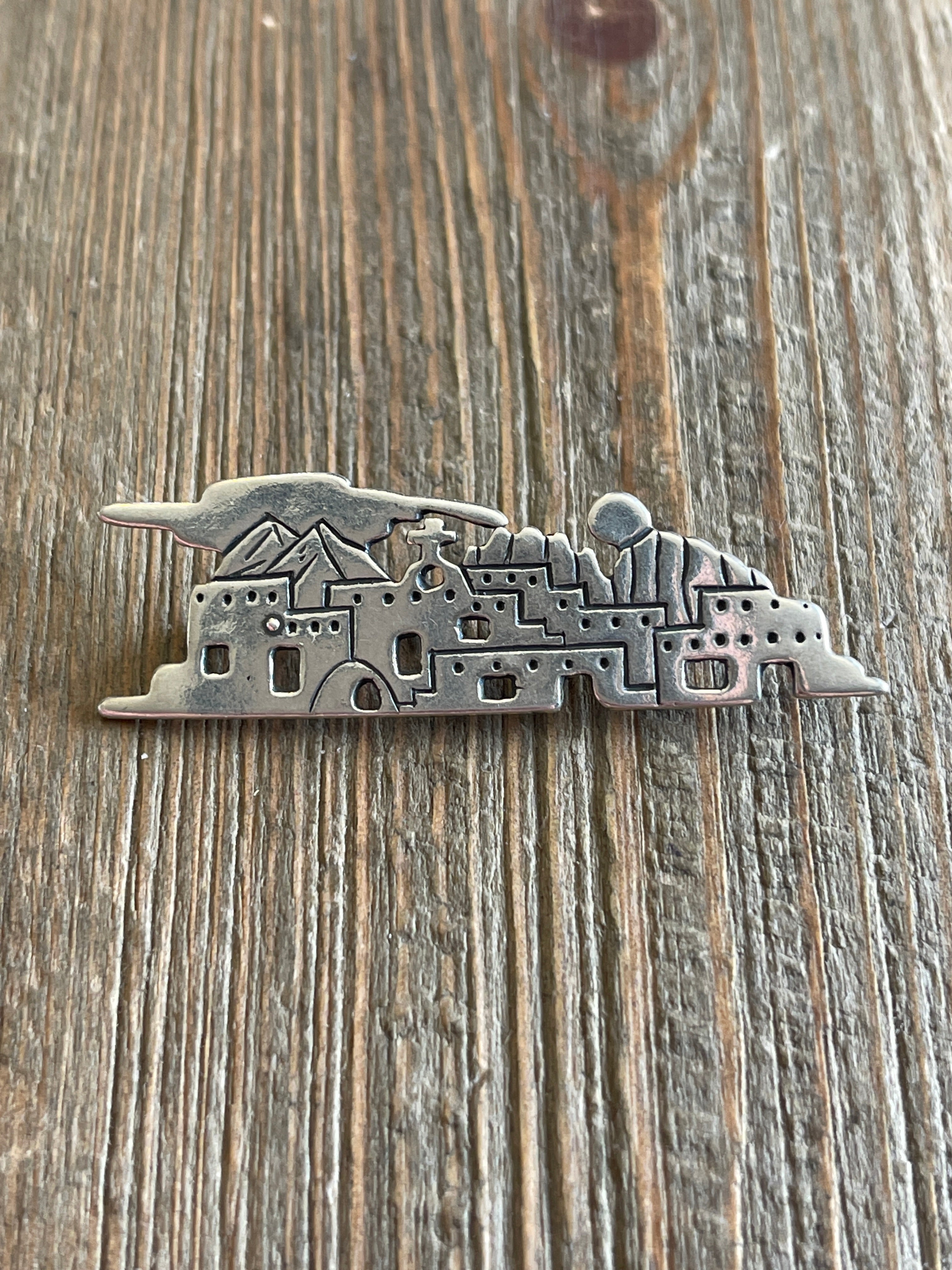 Native American Made Sterling Silver Pin. It measures just over 1/2 of an inch long and 2 inches wide. Signed by artist and stamped sterling silver.