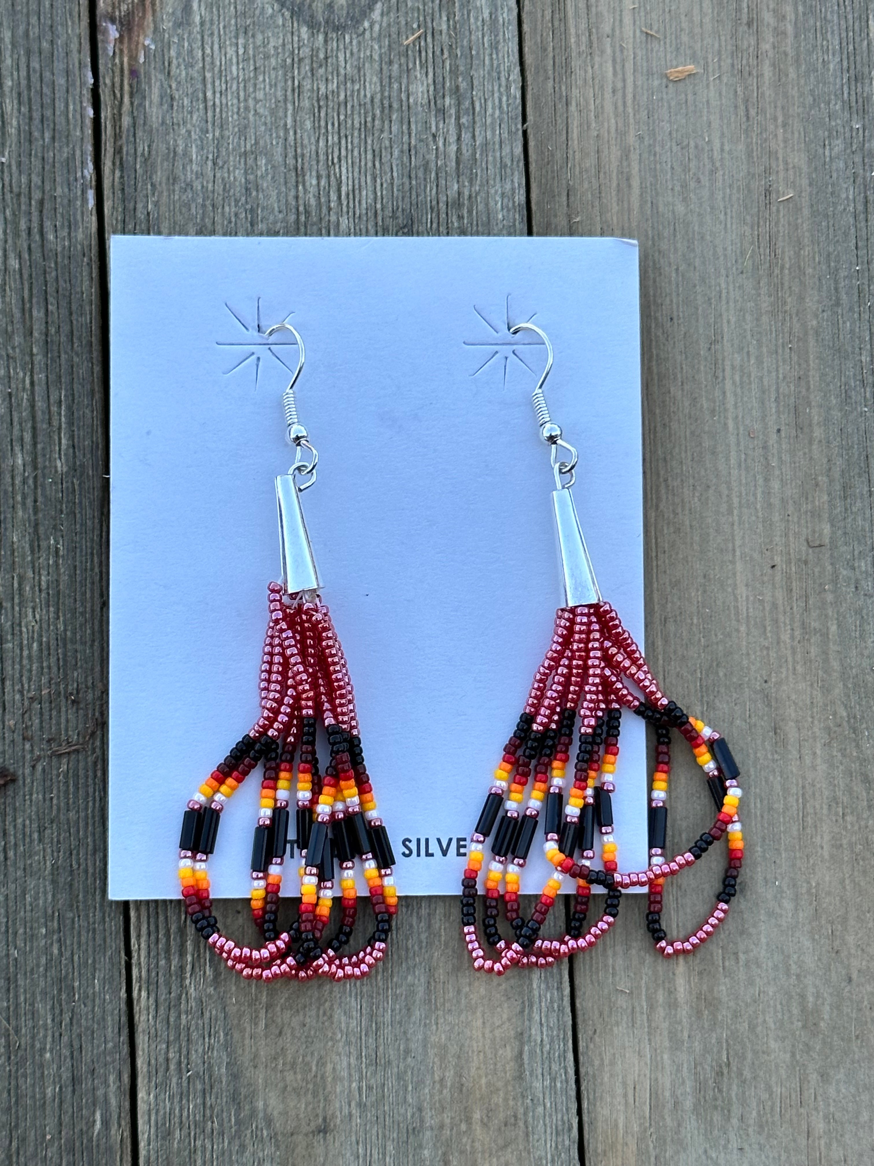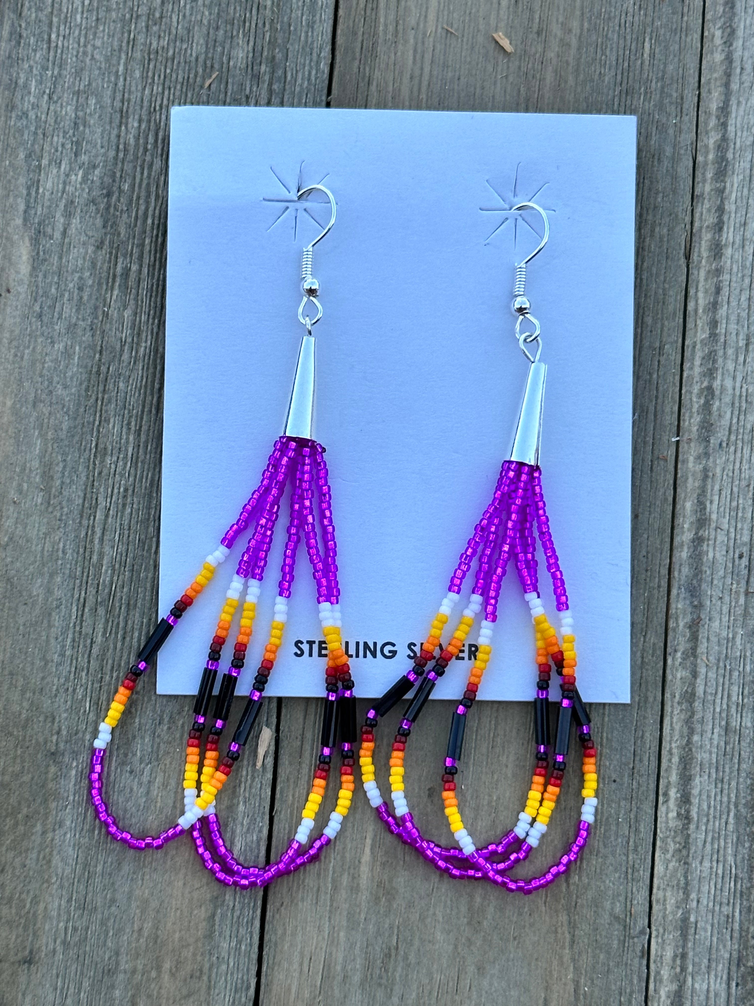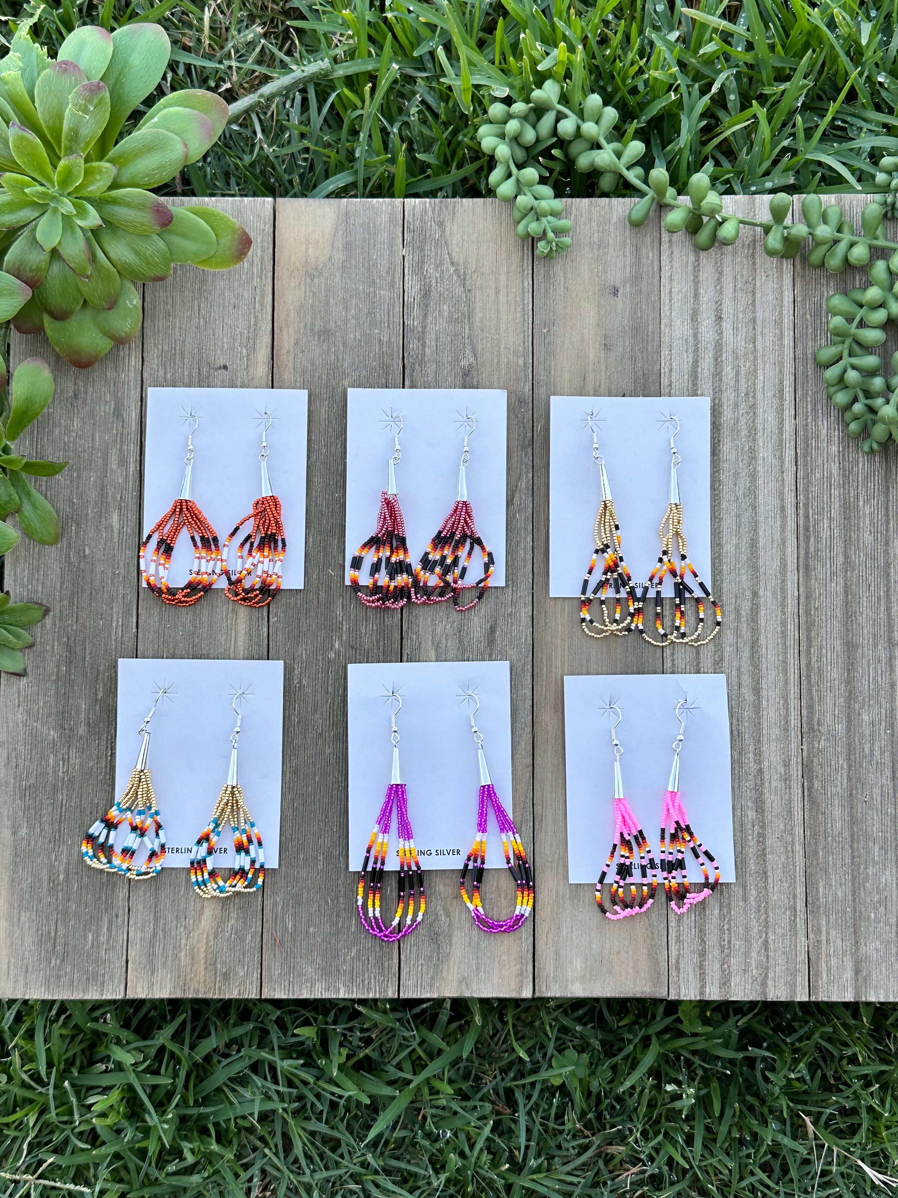 Beautiful earrings, perfect for your everyday wear. Navajo Beaded Sterling Silver Dangle Earrings. It measures just about 3 inches long.