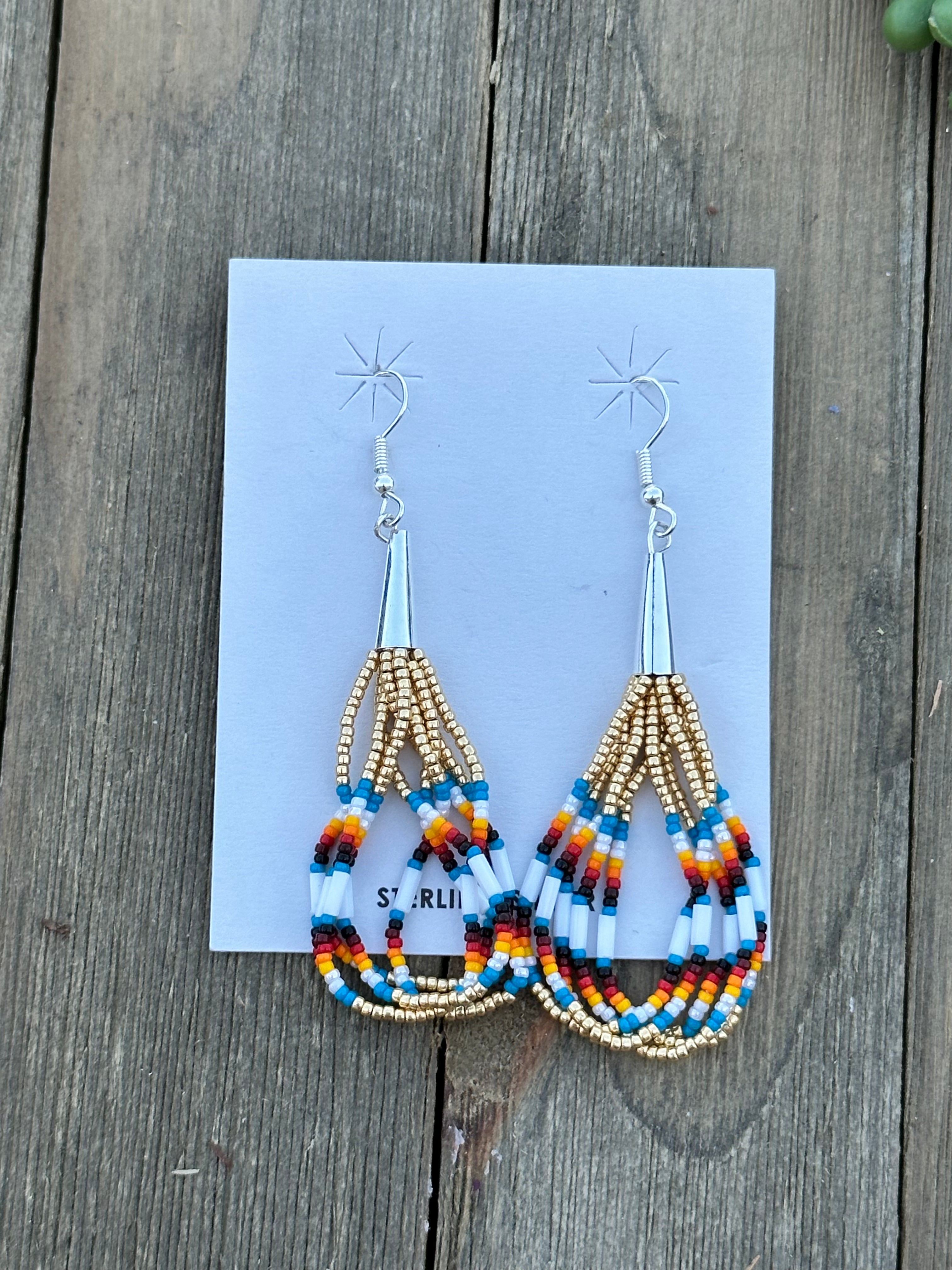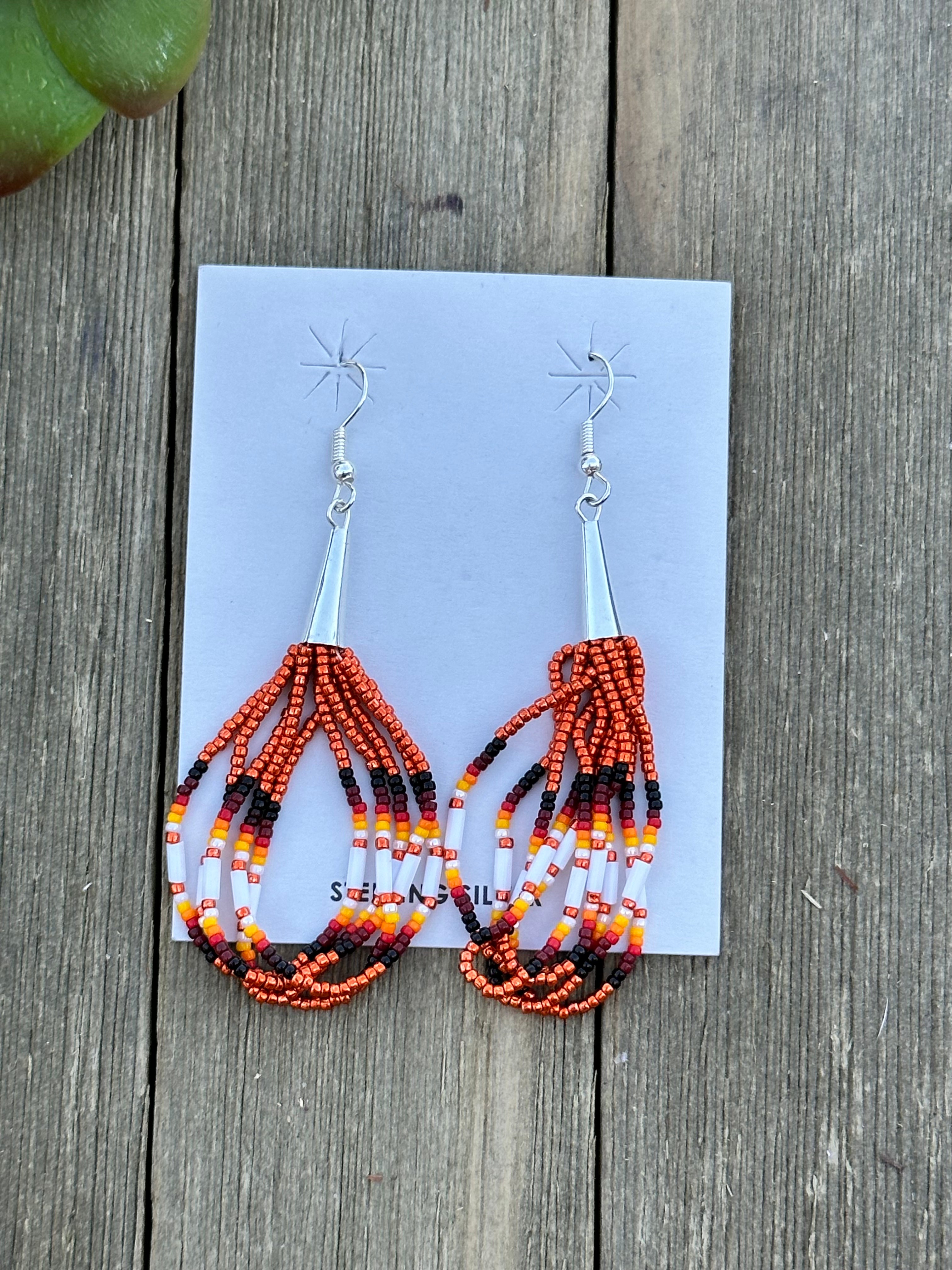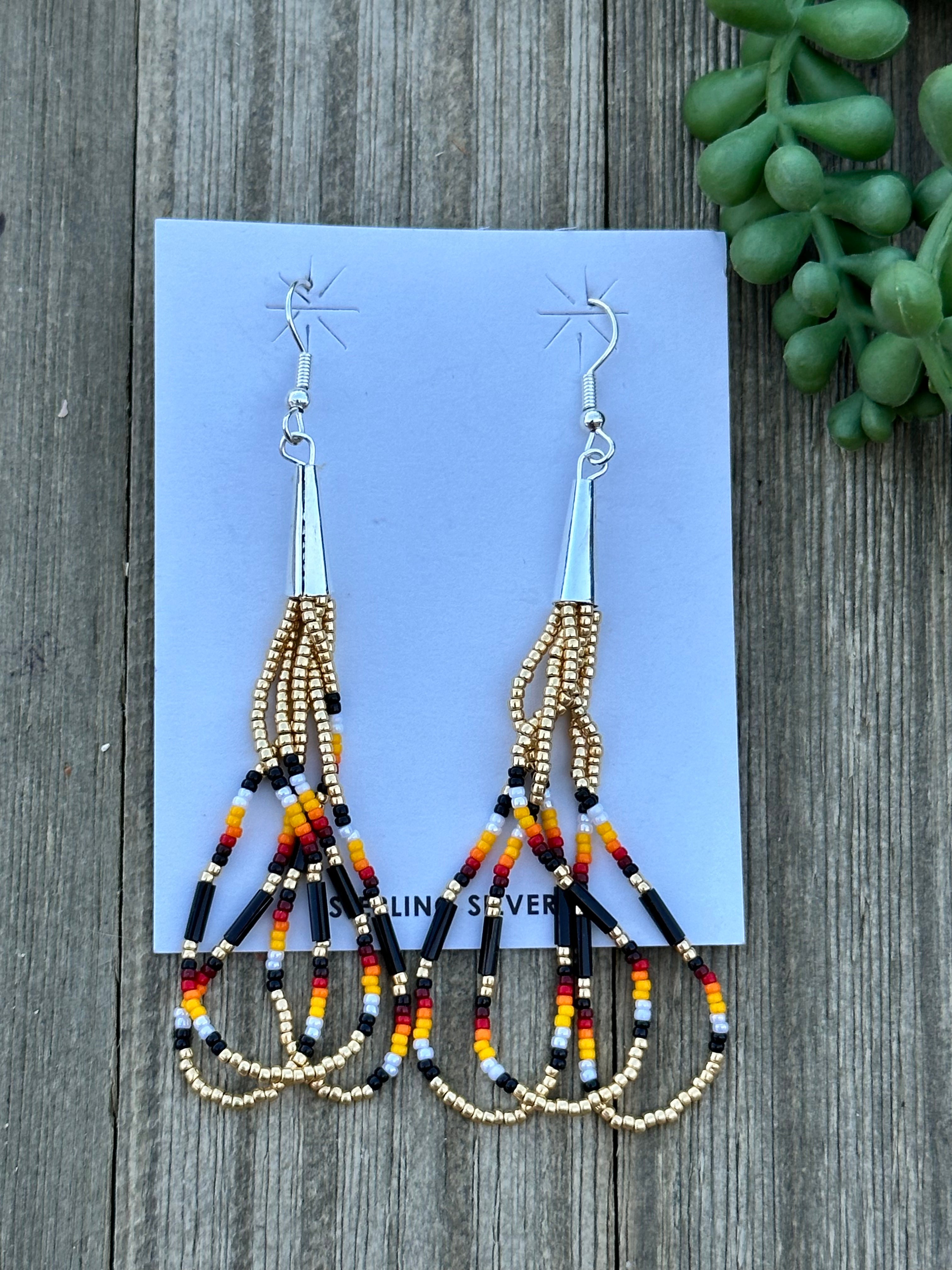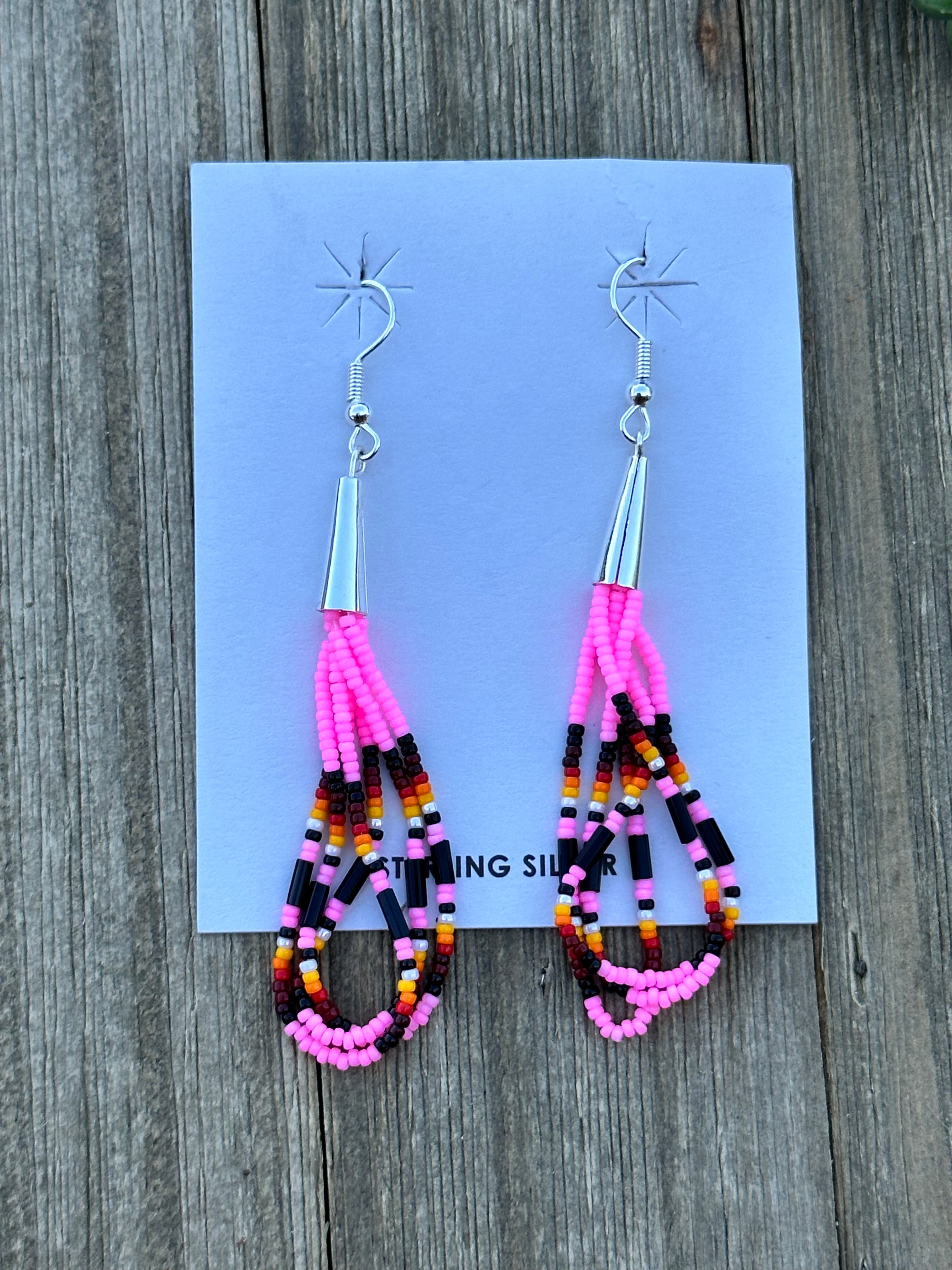 Beautiful earrings, perfect for your everyday wear. Navajo Beaded Sterling Silver Dangle Earrings. It measures just about 3 inches long.