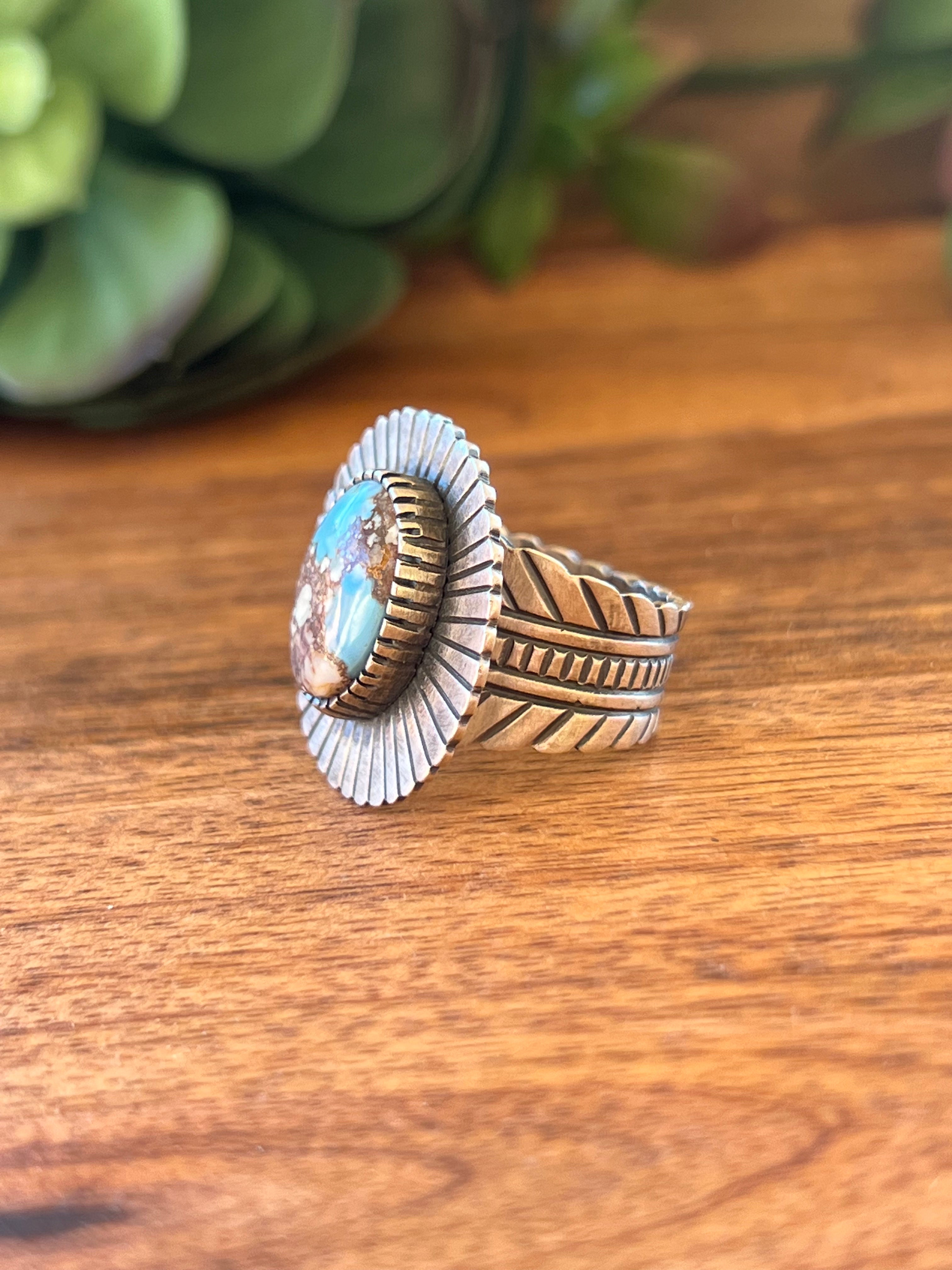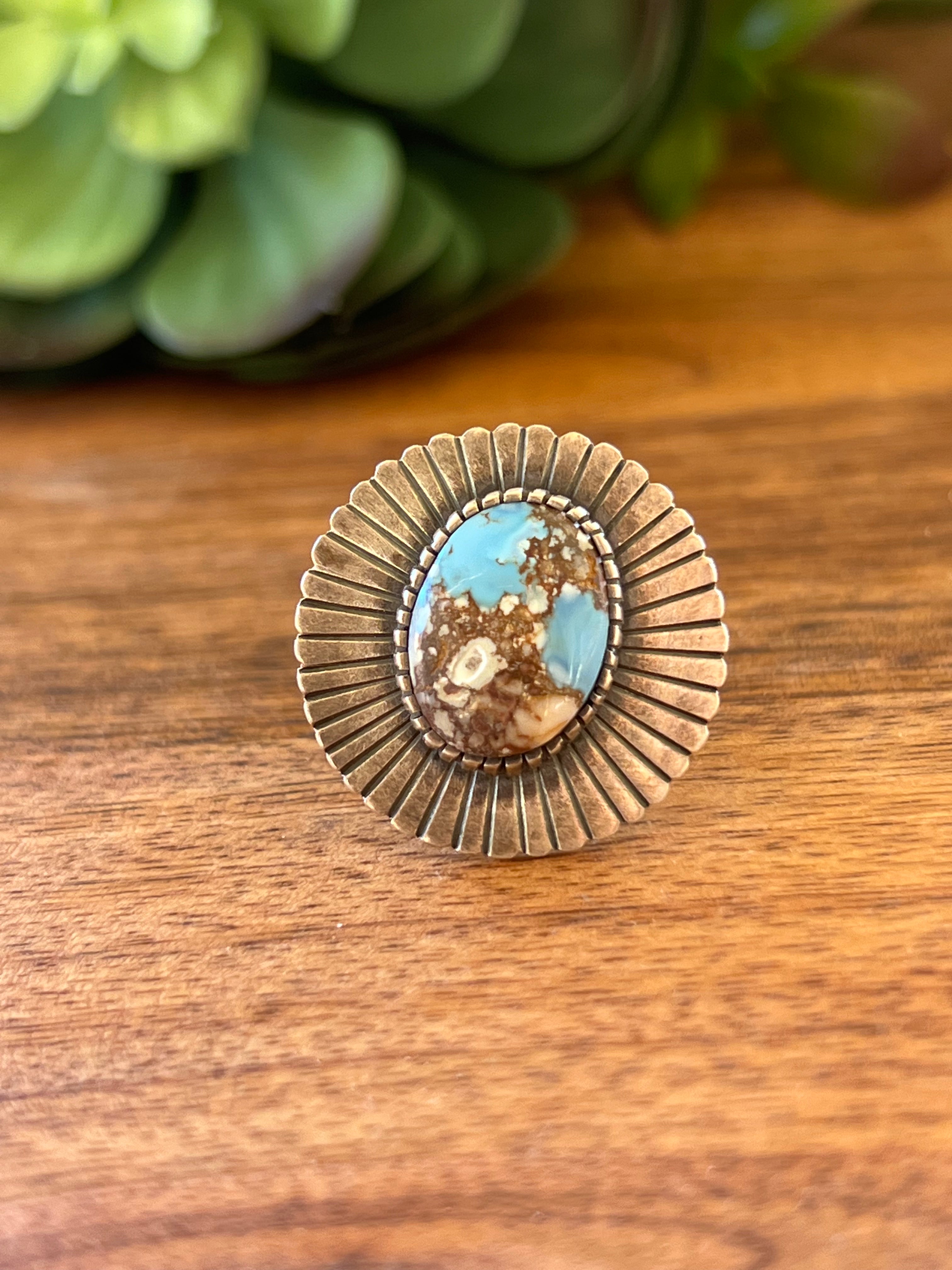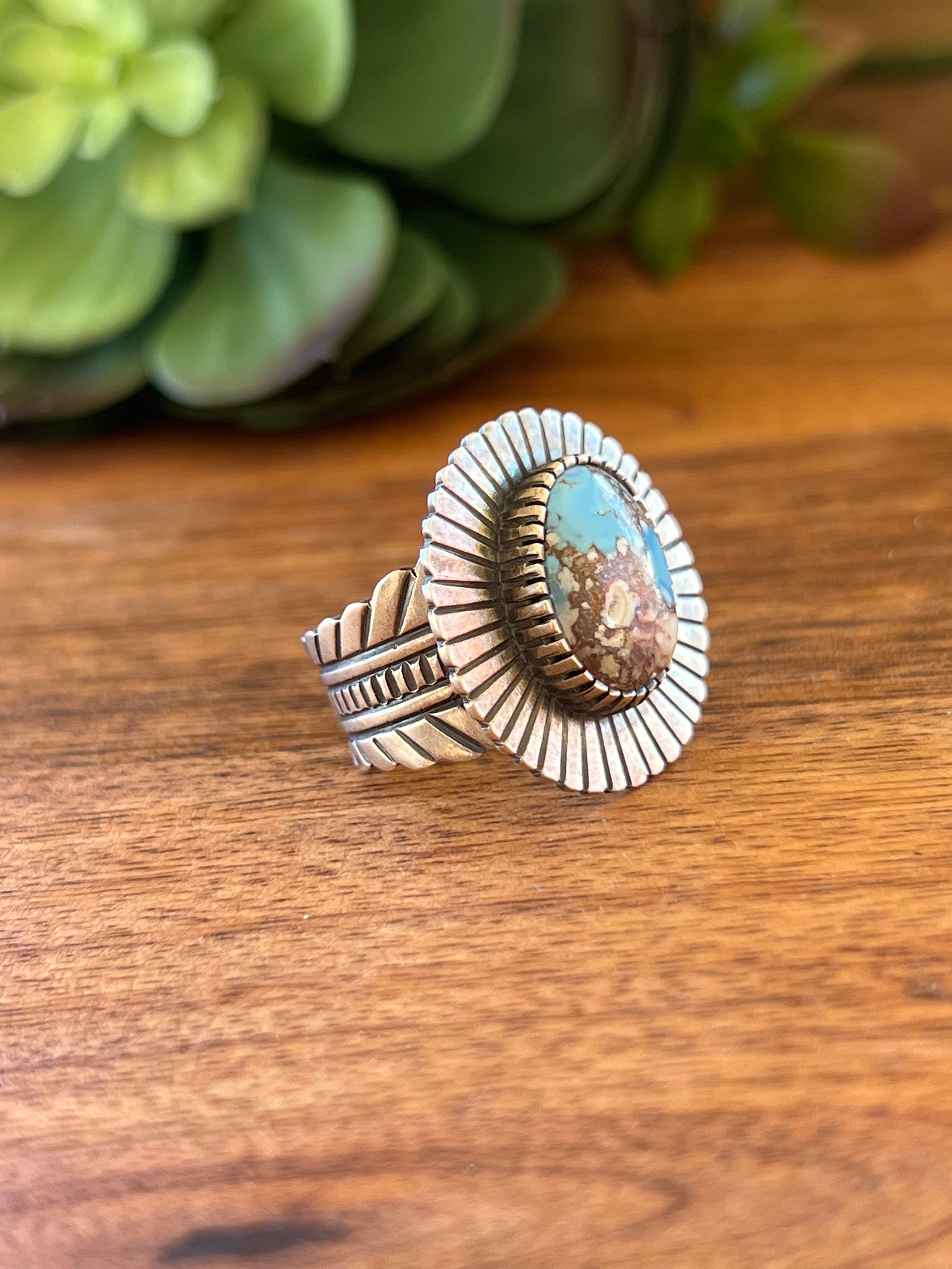 Navajo Golden Hill’s Turquoise & Sterling Silver Ring Size 7.75