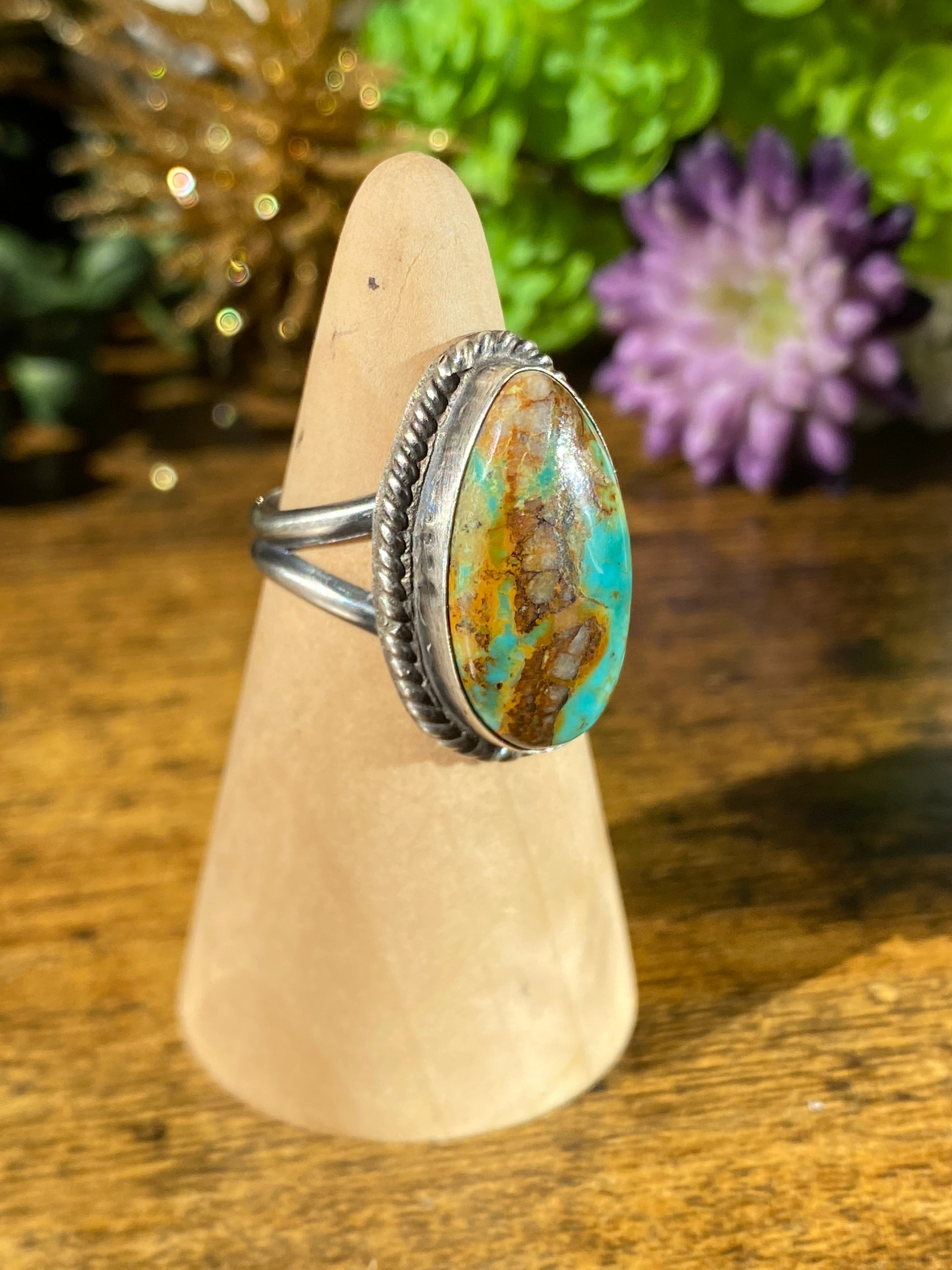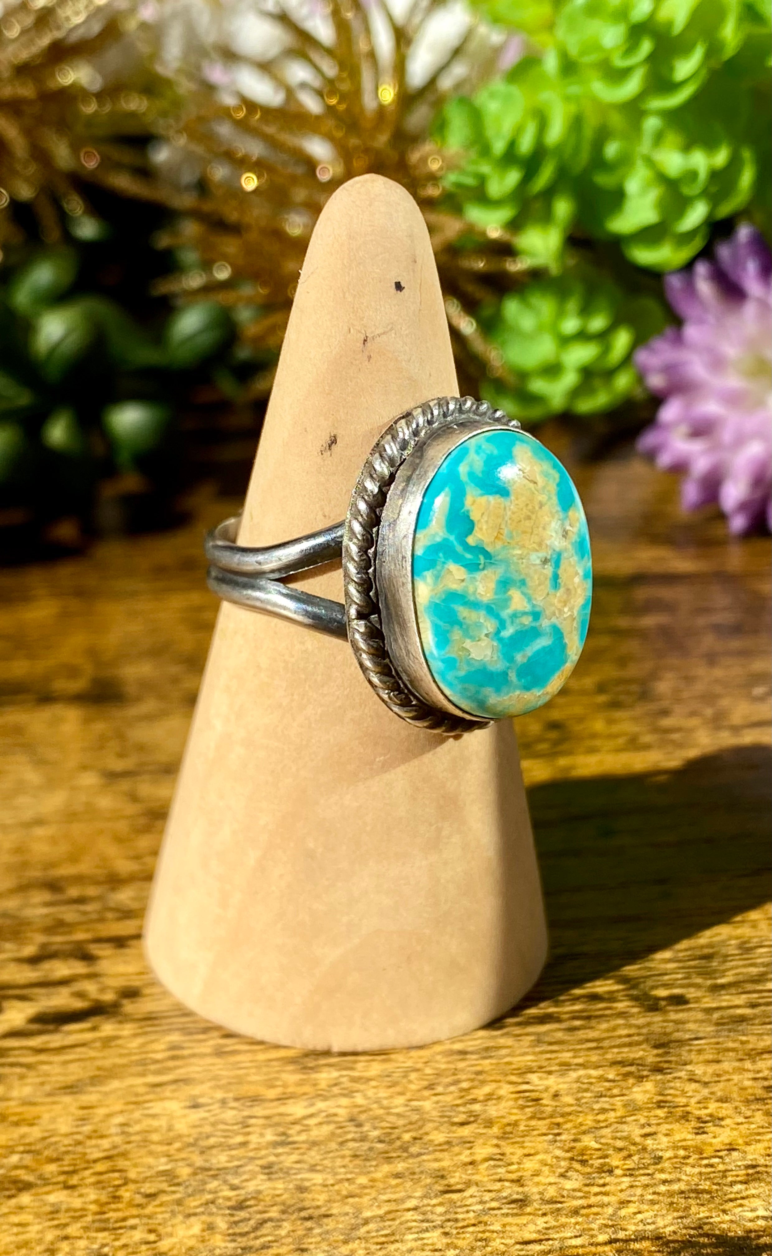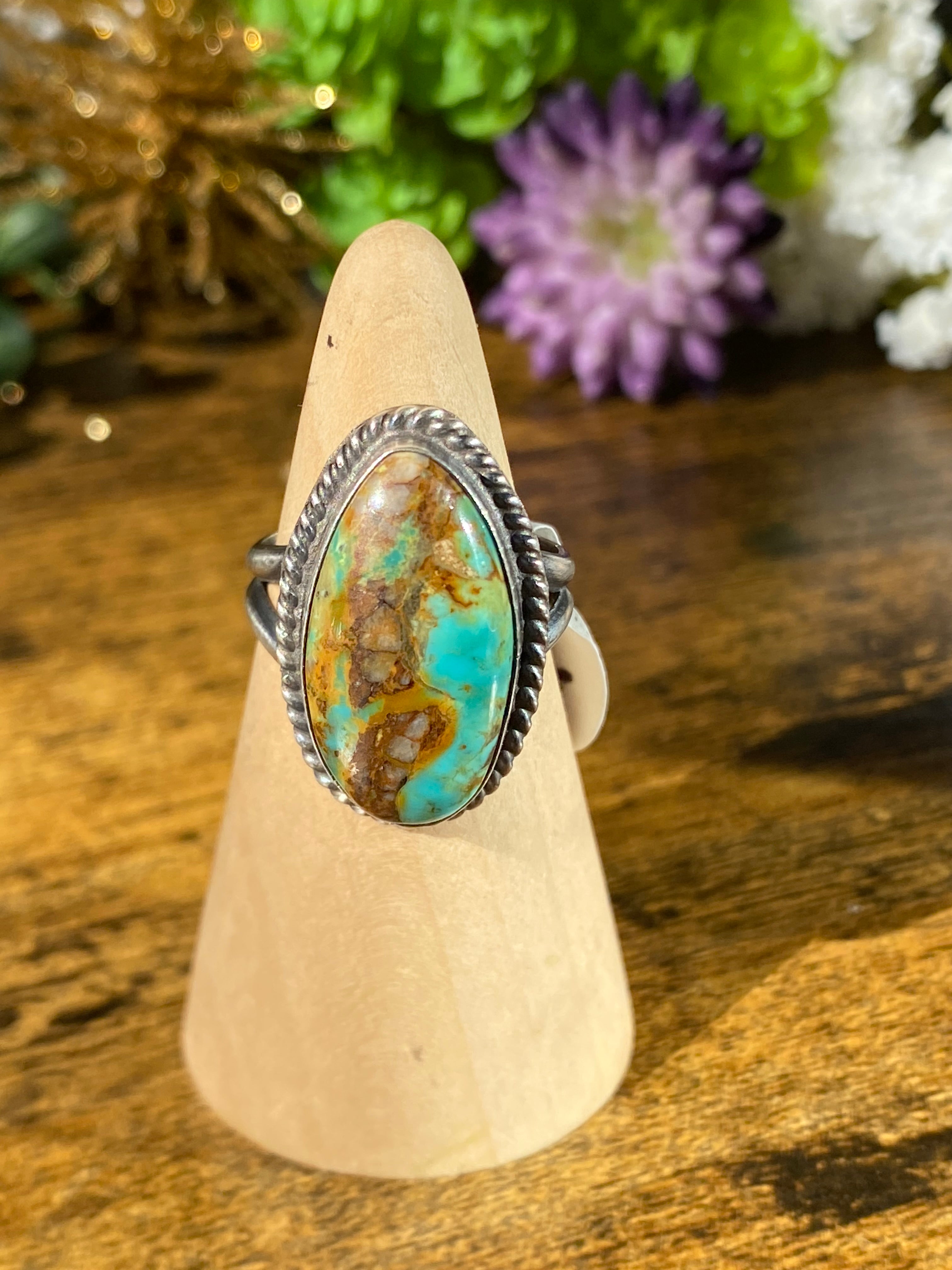 Navajo Handmade Royston Turquoise & Sterling Silver Ring Size 7