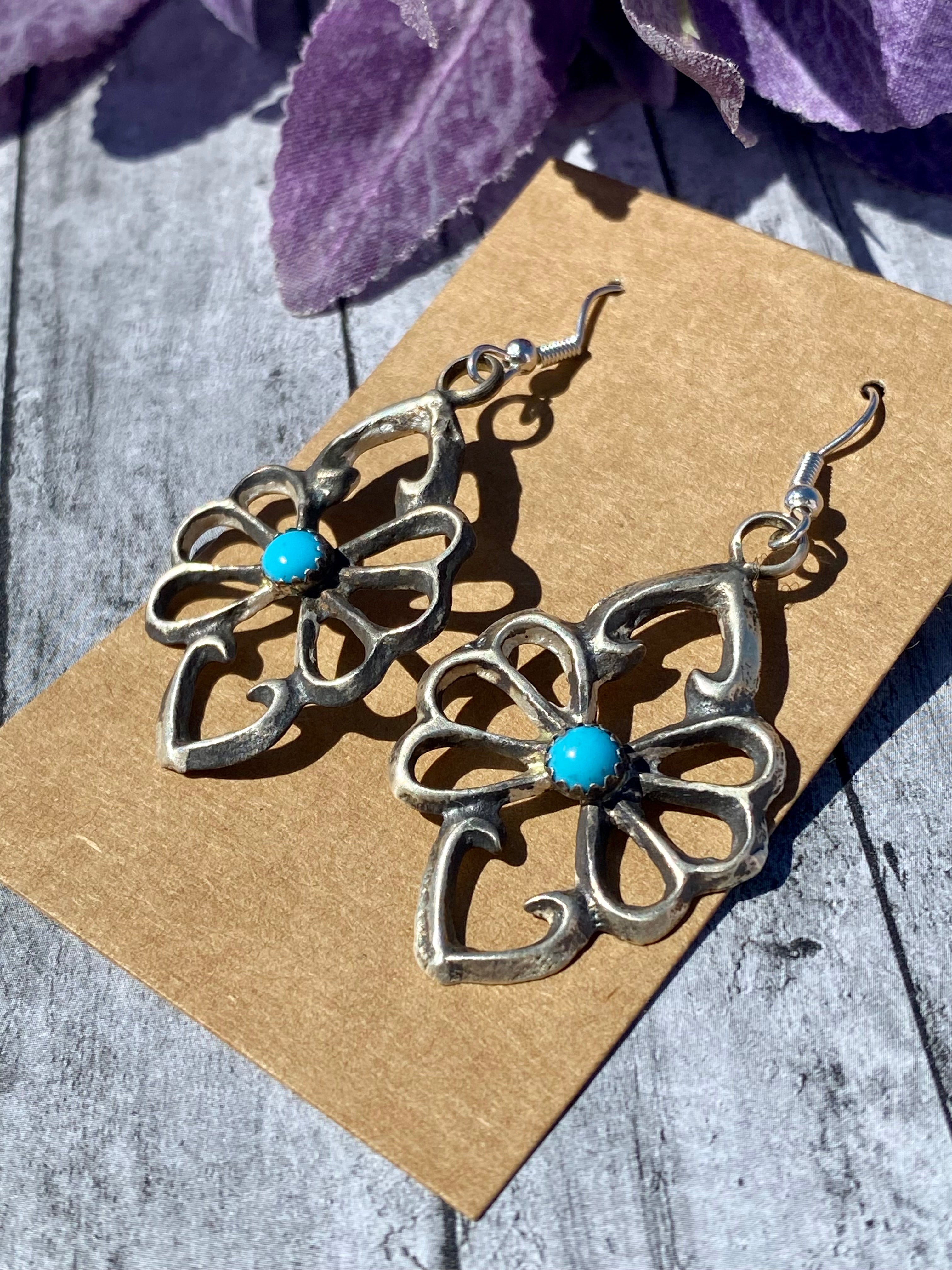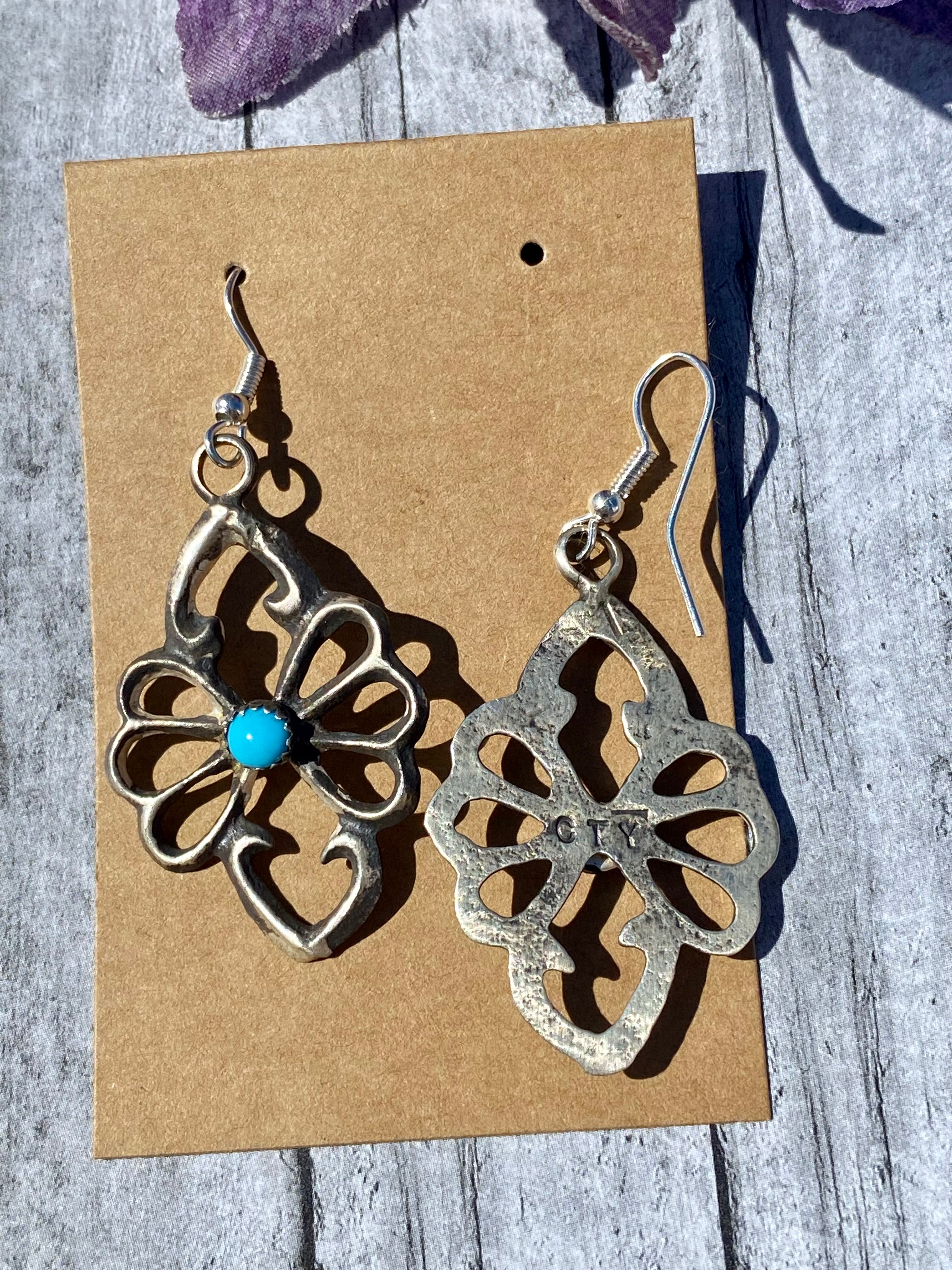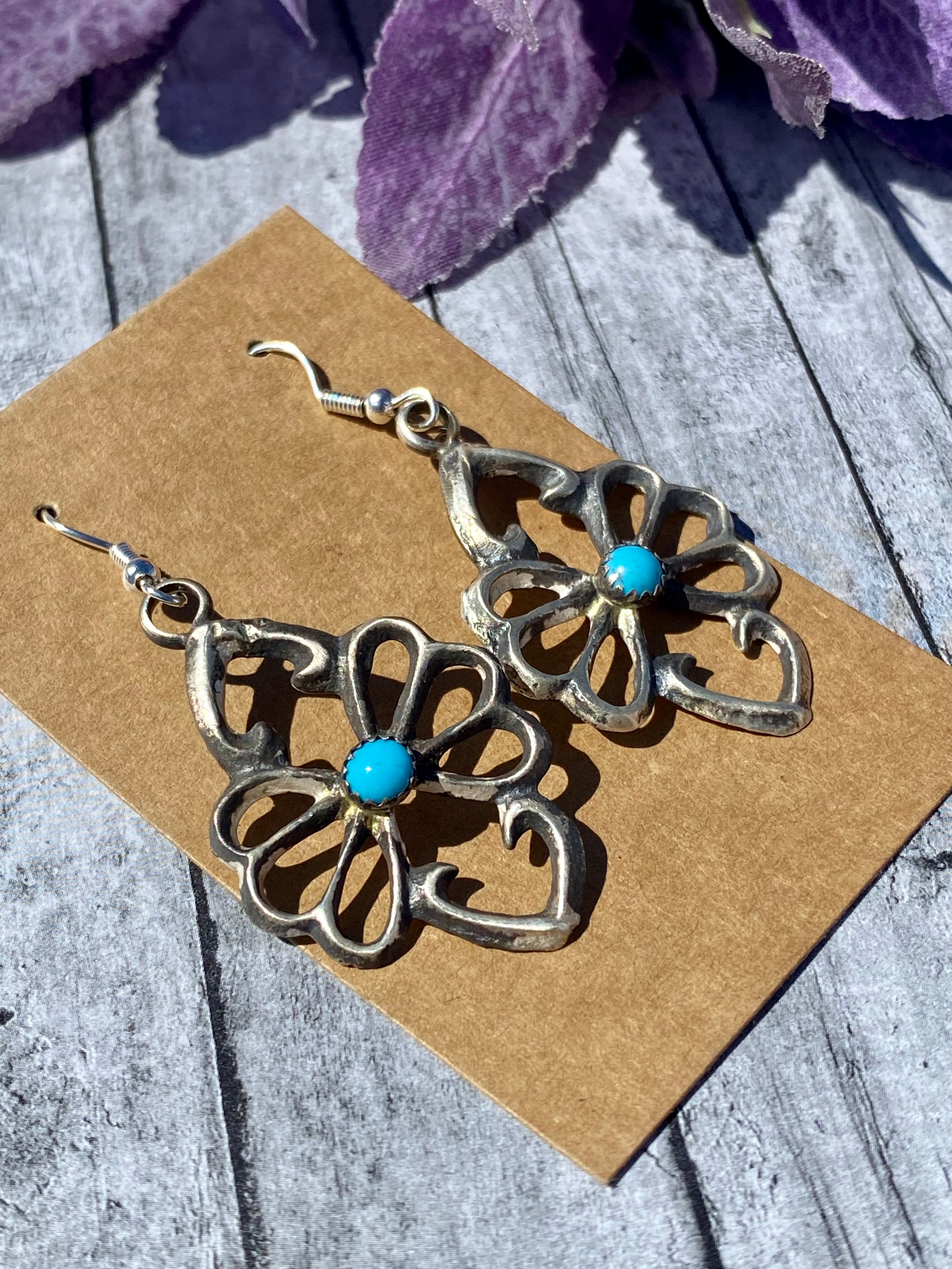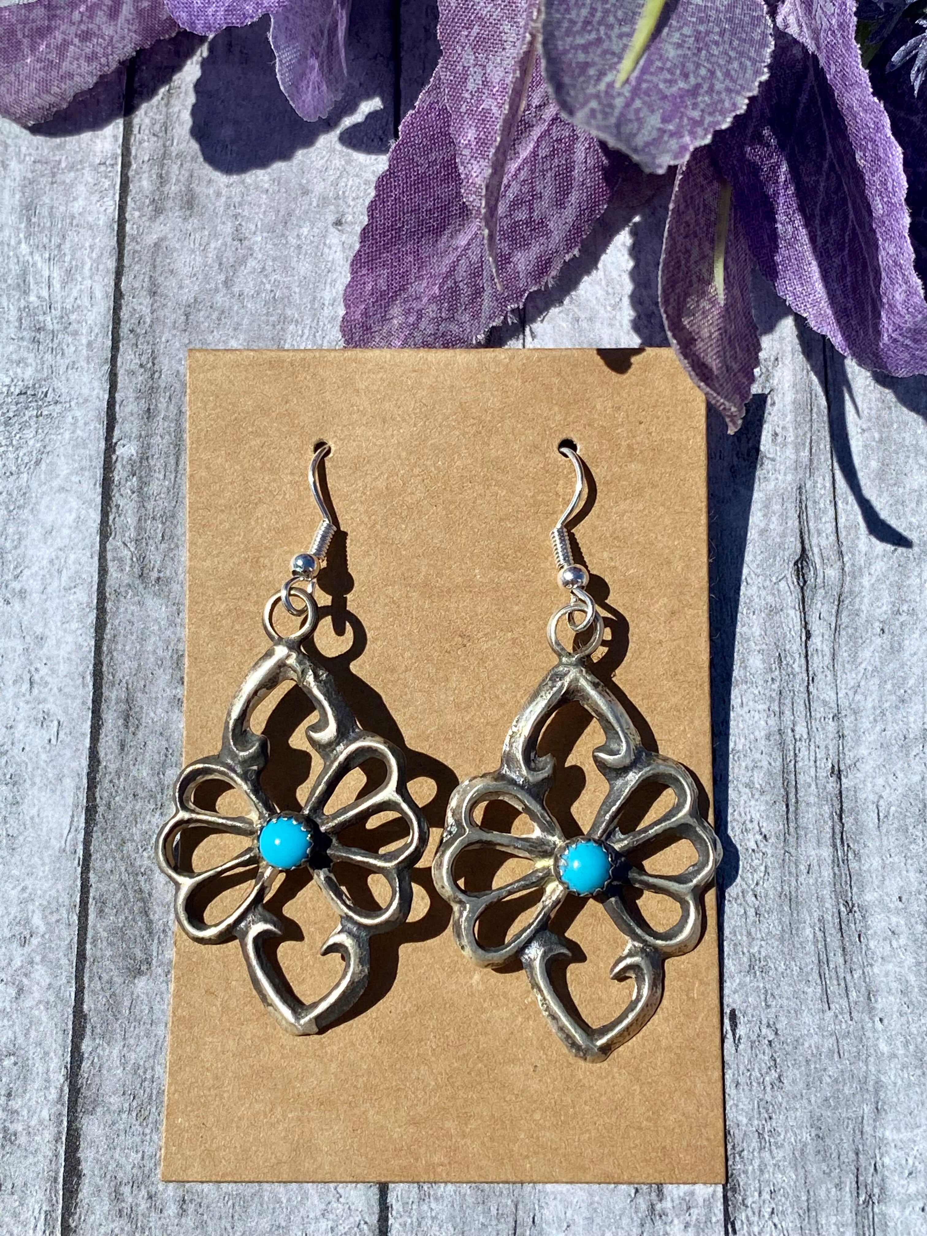 Navajo Kingman Turquoise & Sterling Silver Dangle Earrings