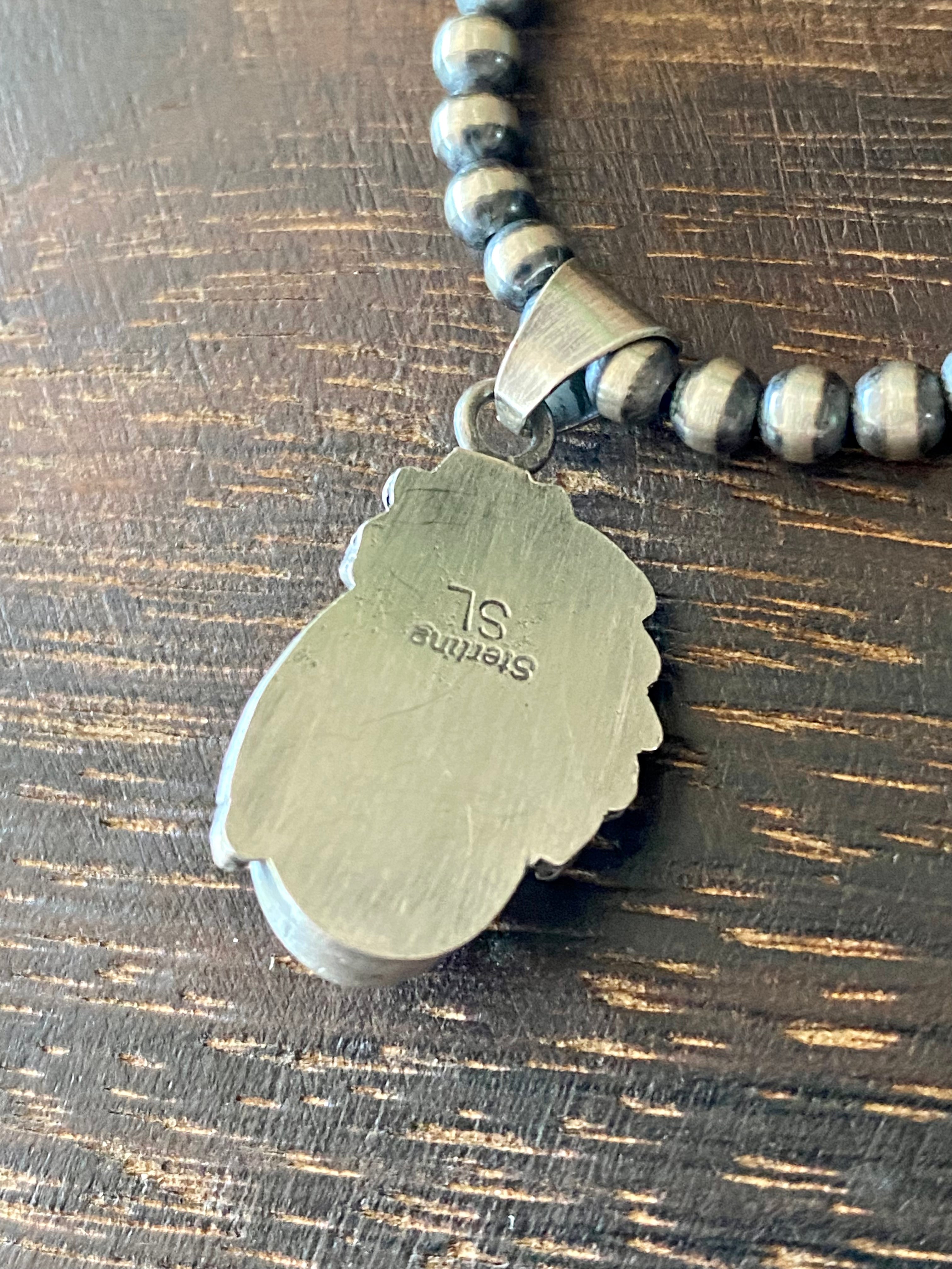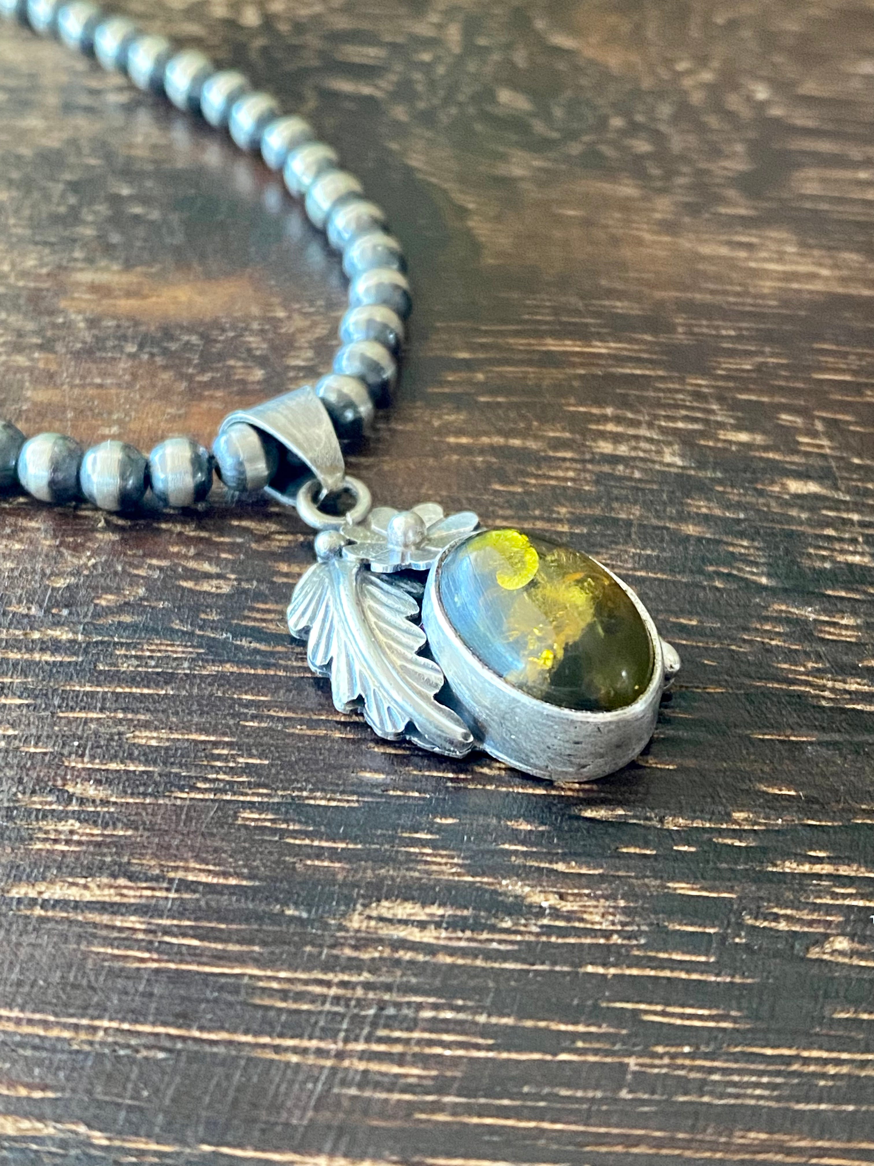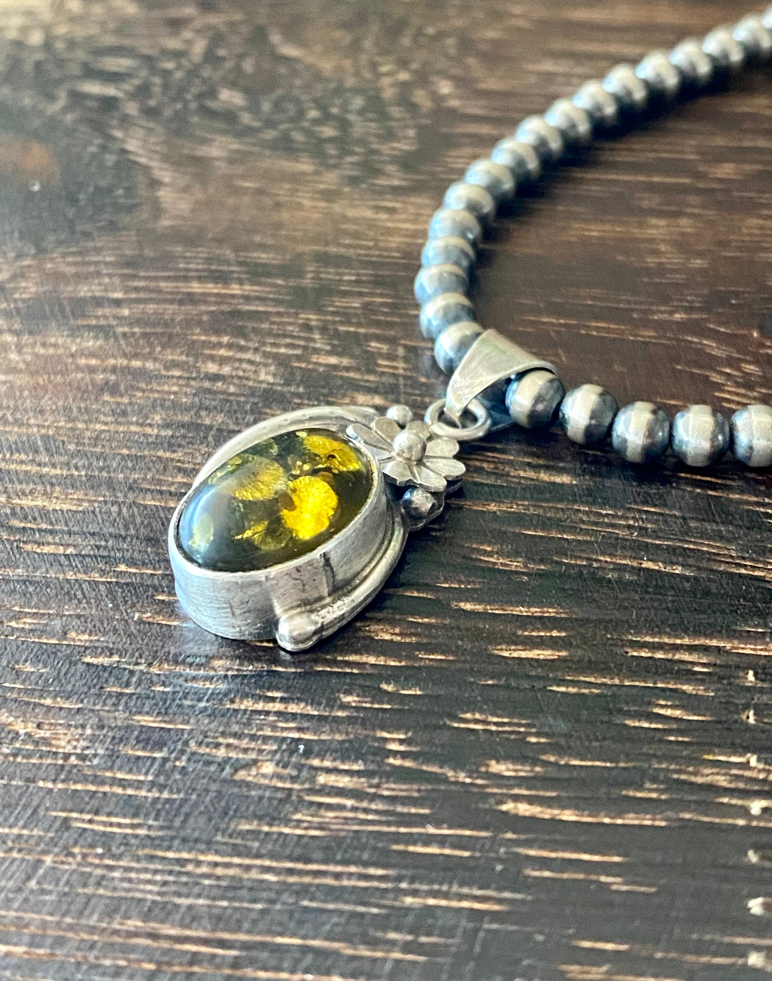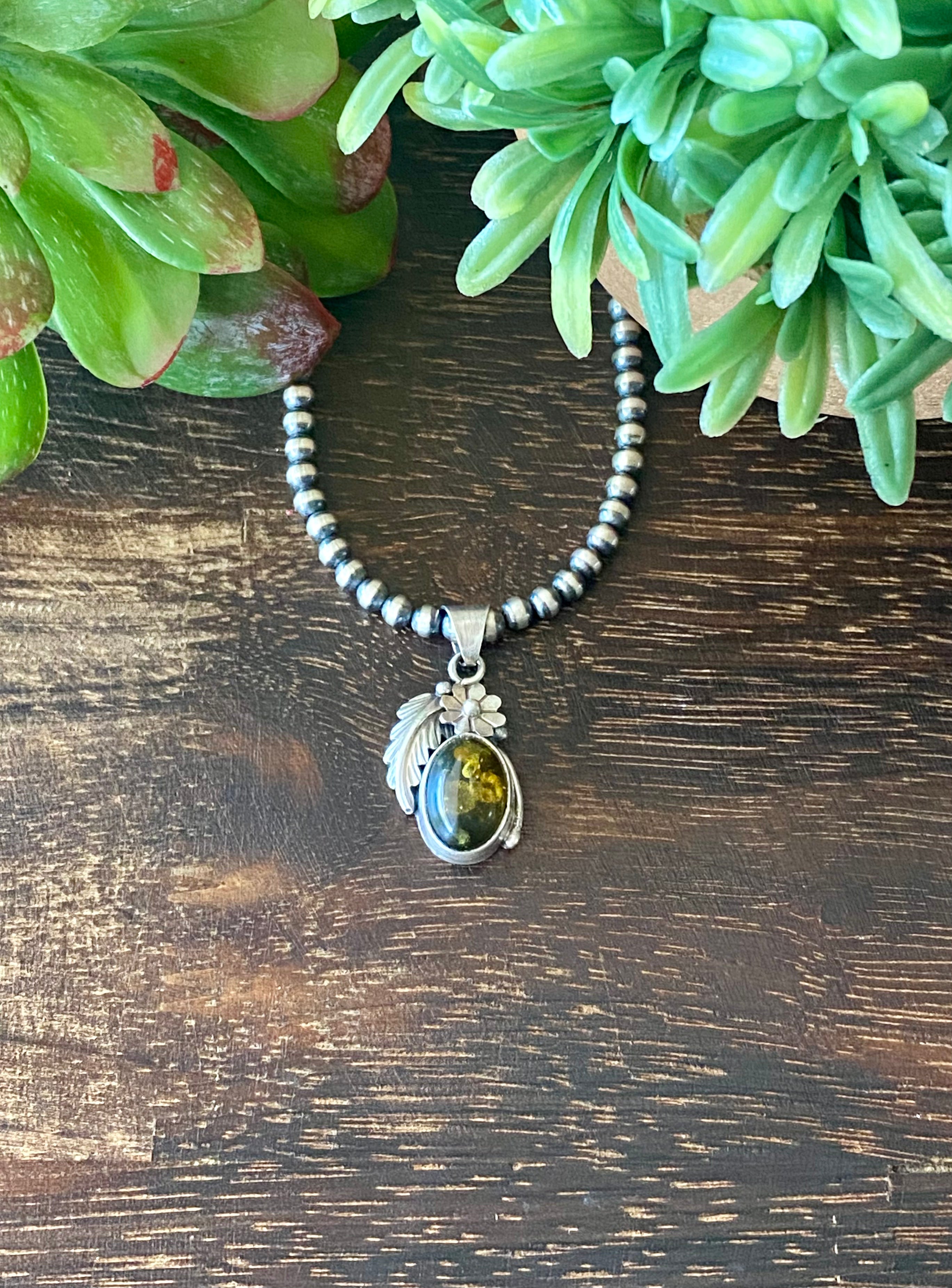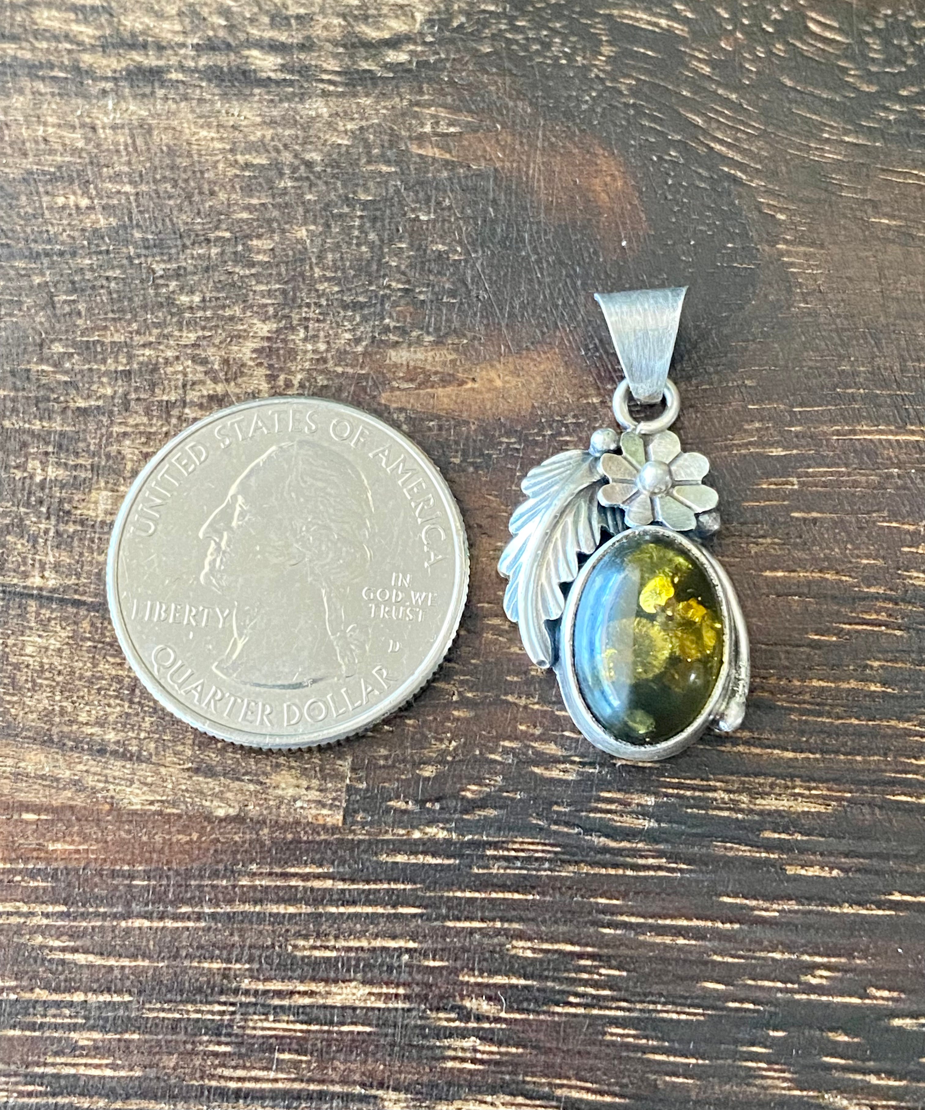 Navajo Made Amber & Sterling Silver Feather Pendant