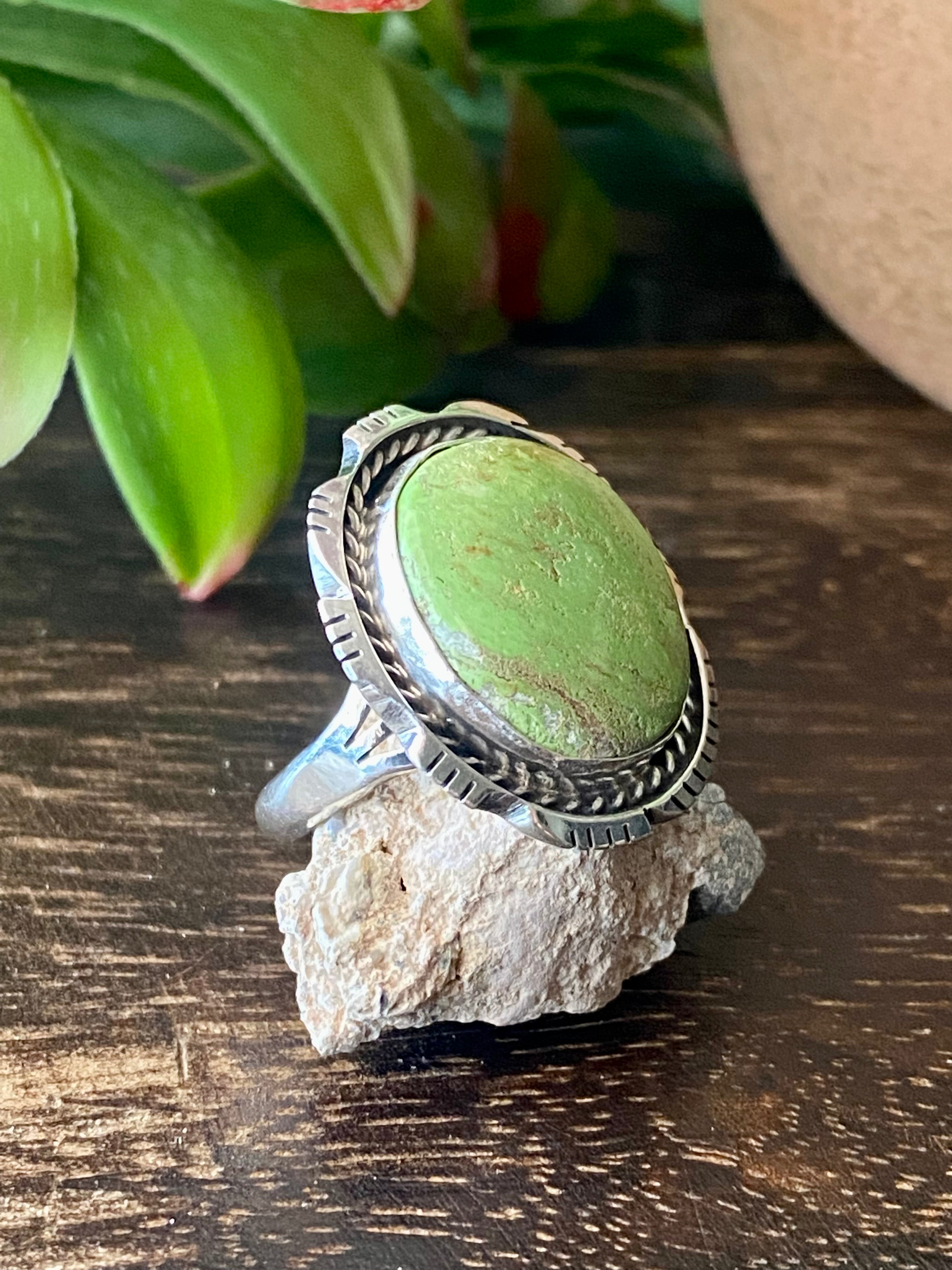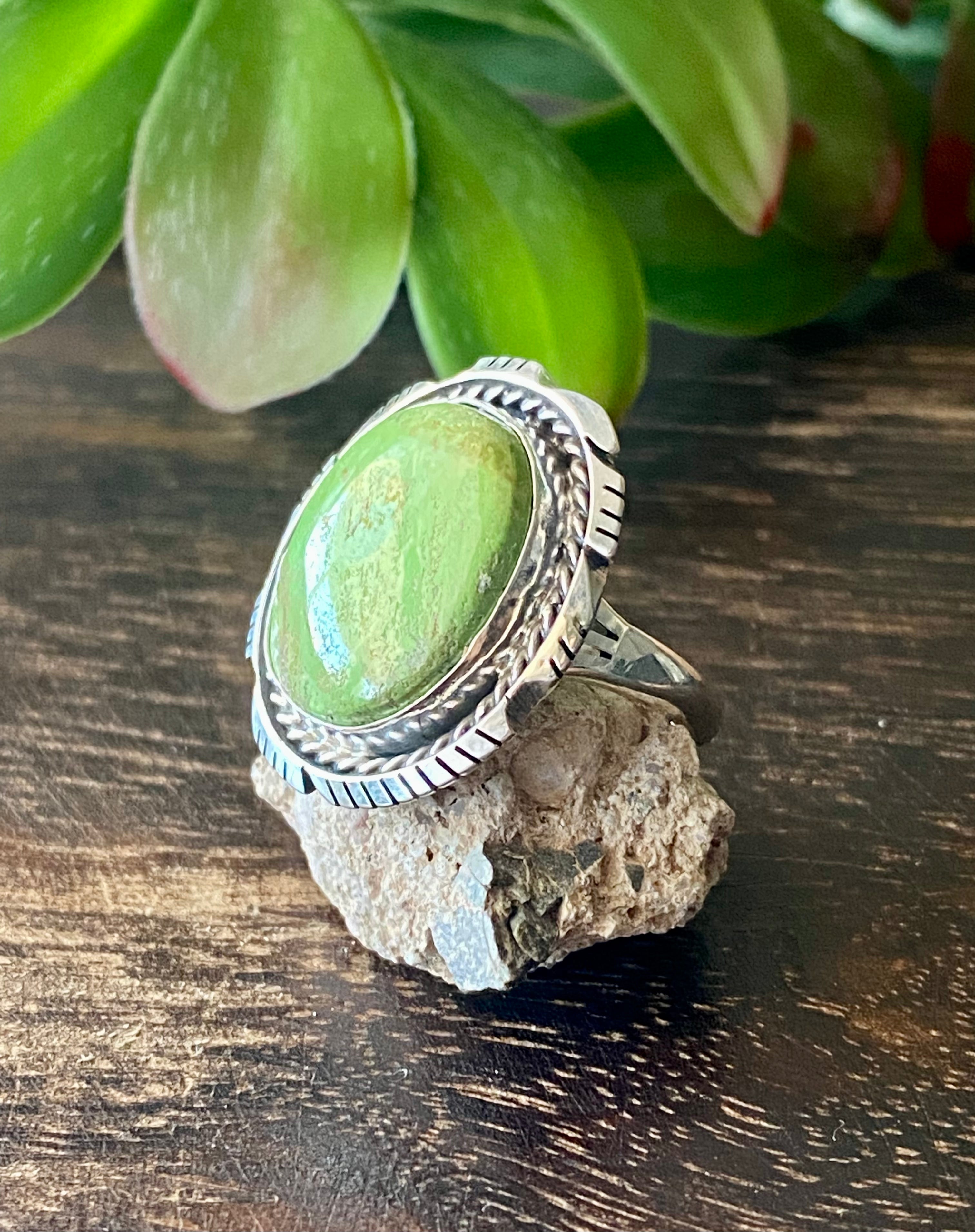 Navajo Made Australian Gaspeite & Sterling Silver Ring Size 7.5