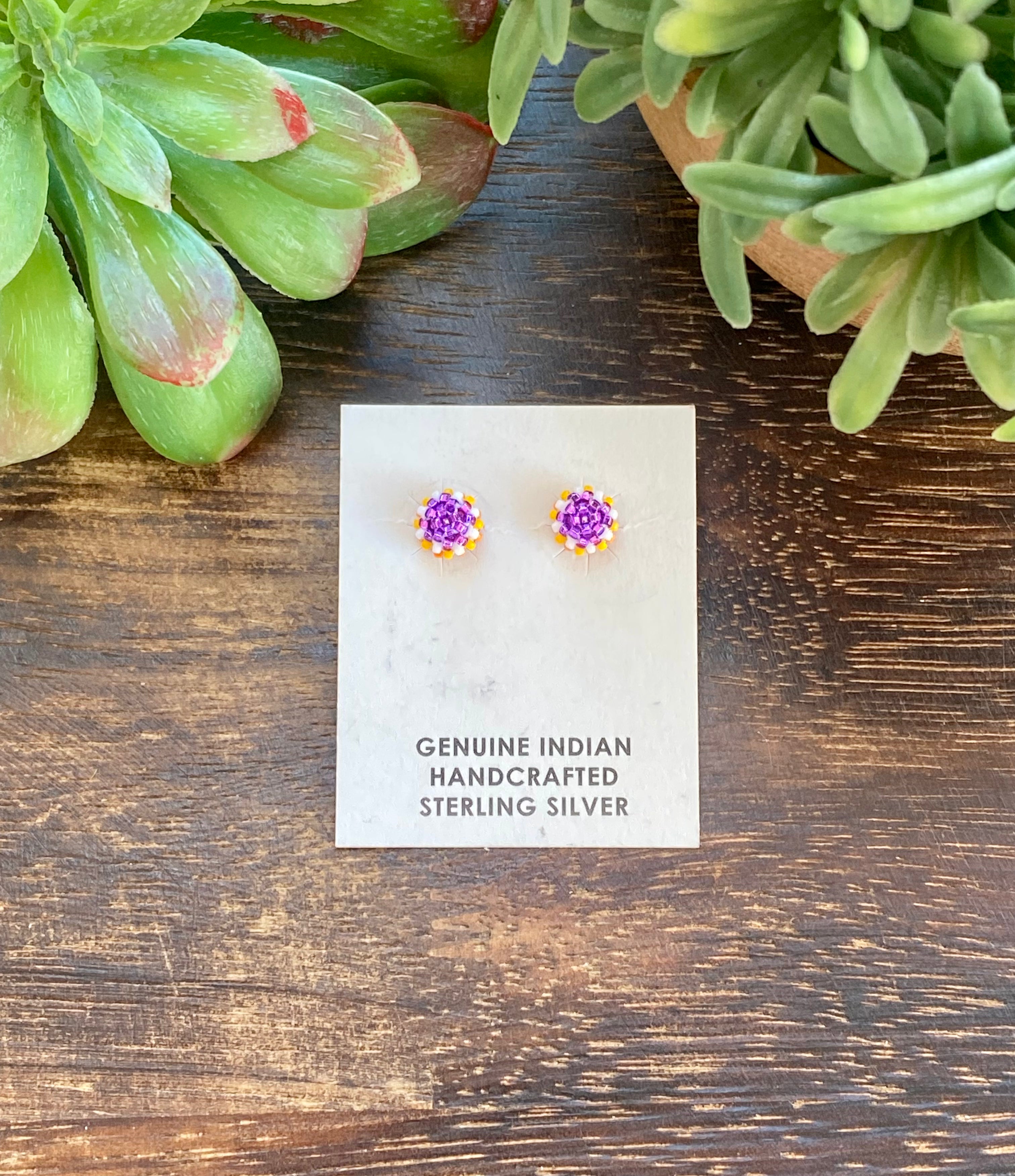 Navajo Made Beaded Post Earrings. They measure just over 1/4 of an inch round.