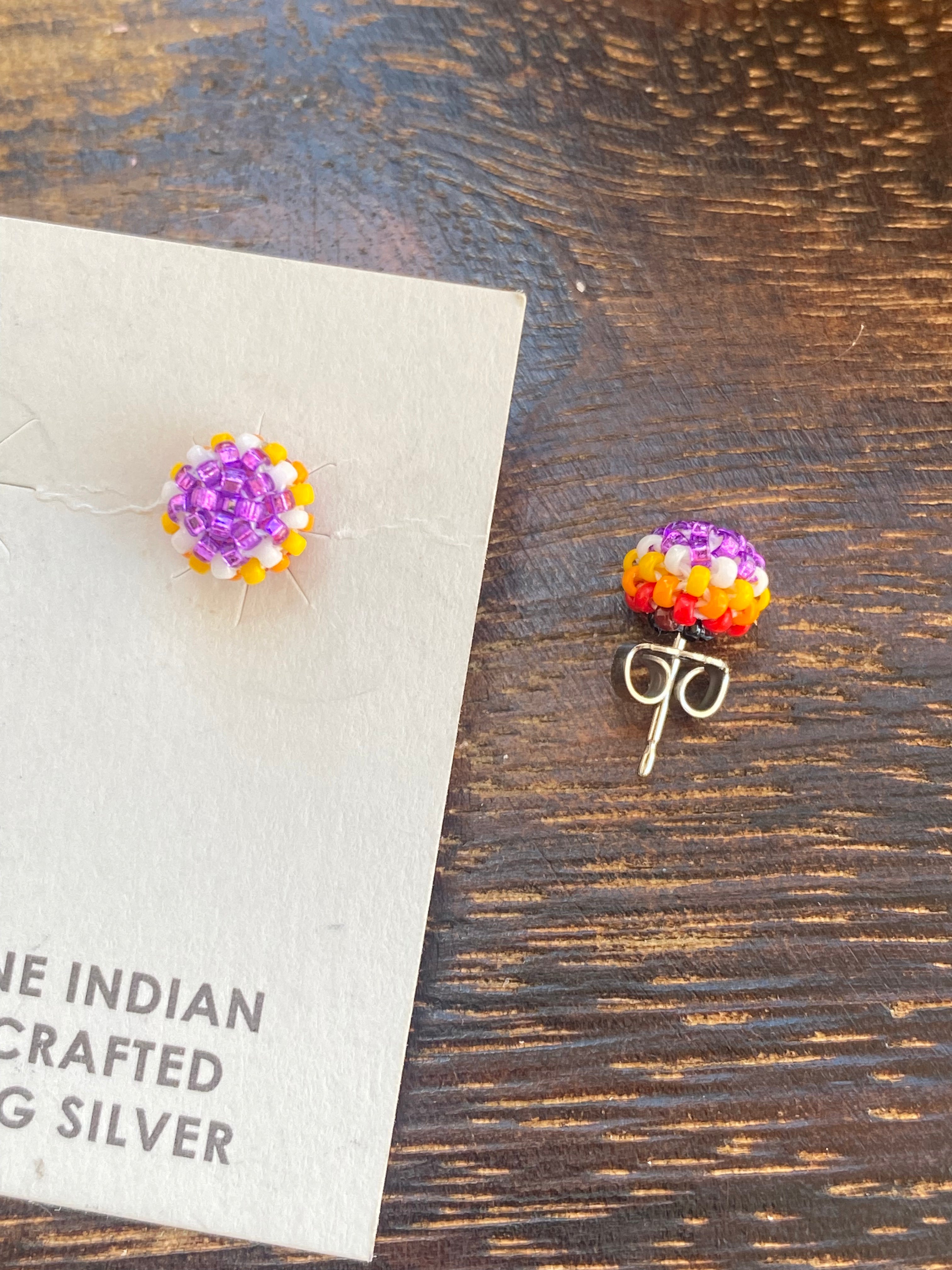 Navajo Made Beaded Post Earrings. They measure just over 1/4 of an inch round.