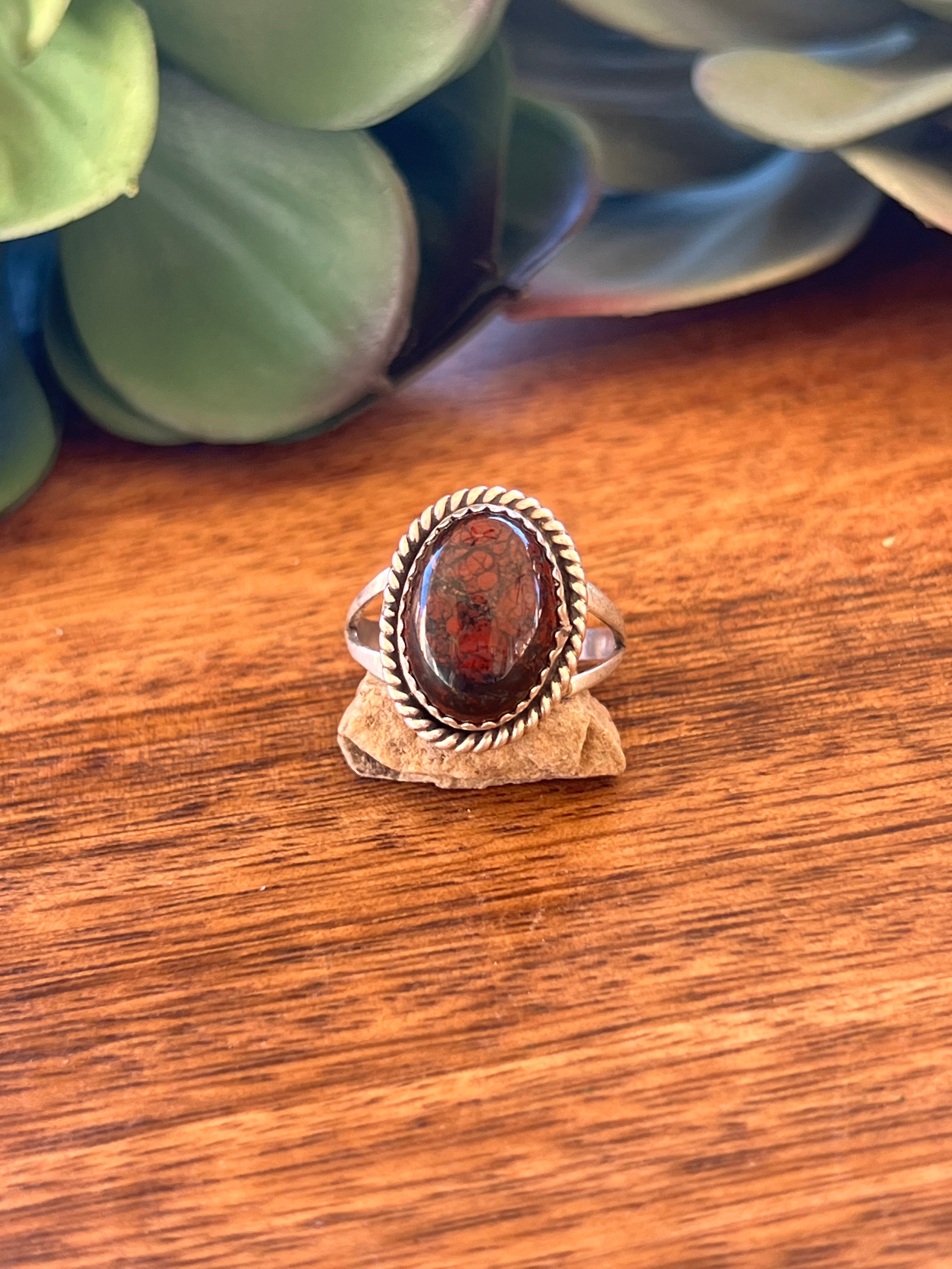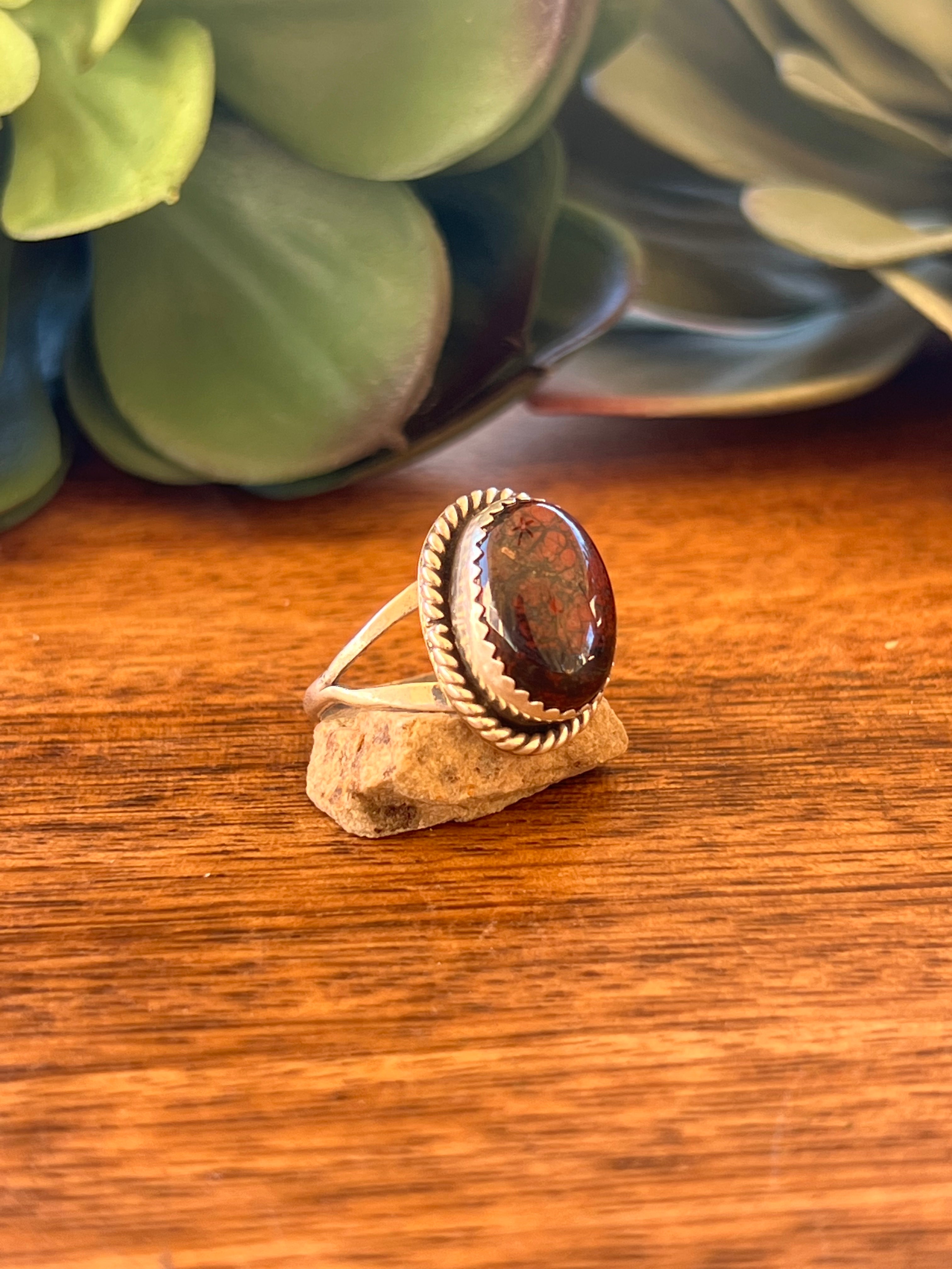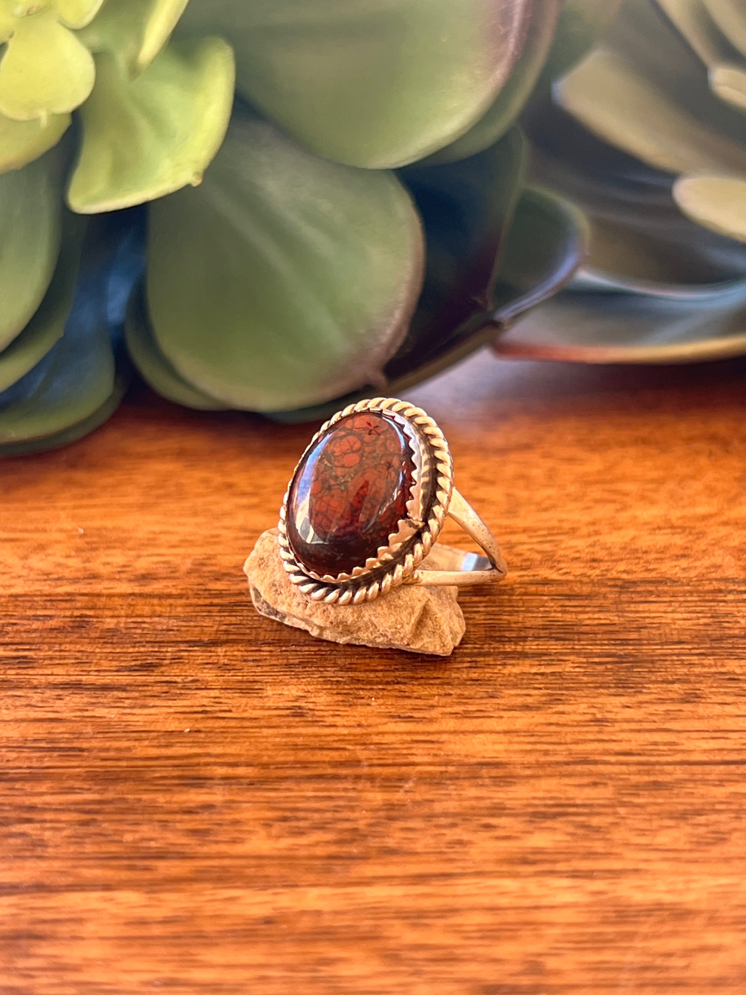 Navajo Made Blood Red & Sterling Silver Ring Size 7.75