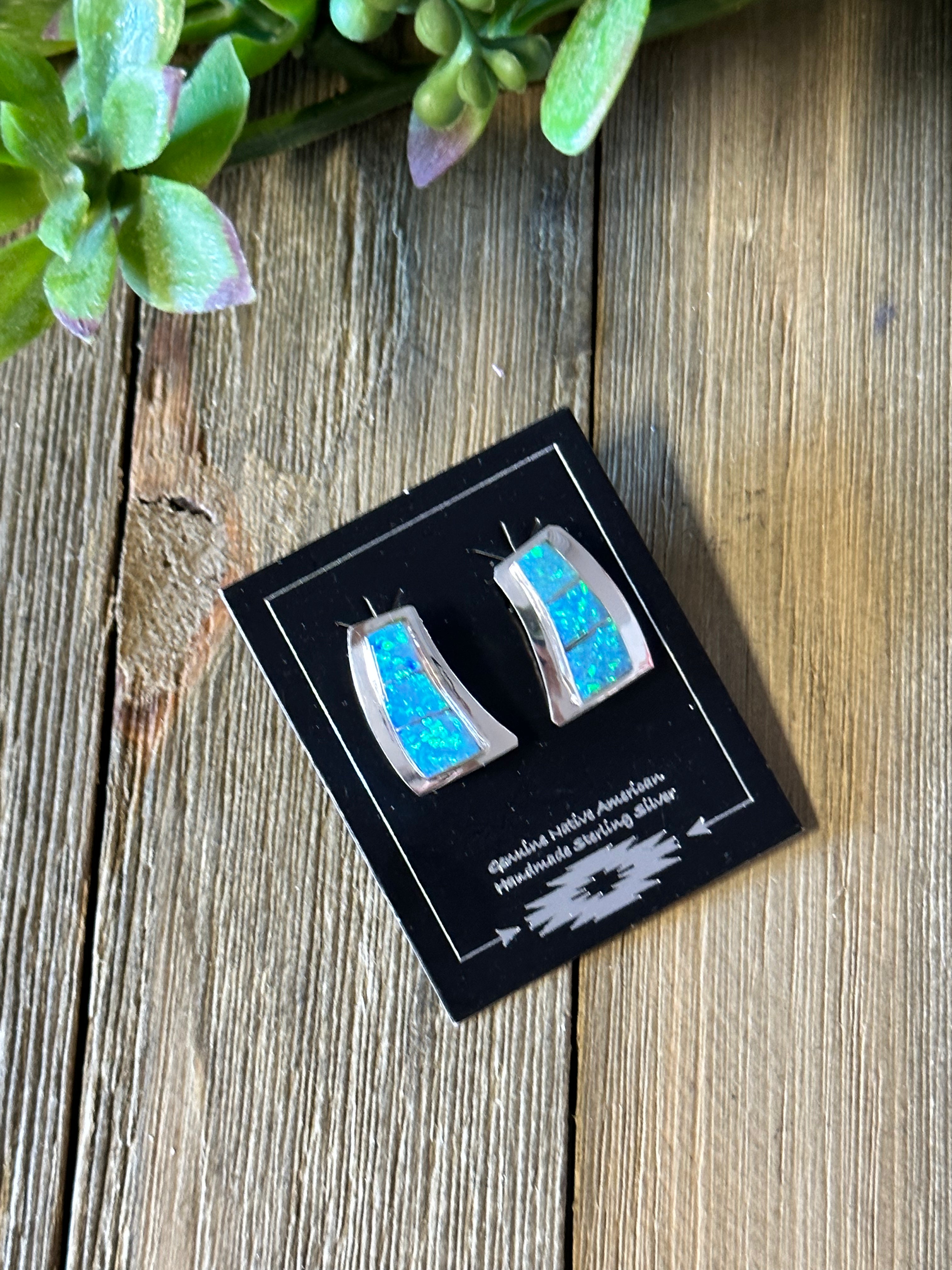 Navajo Made Blue Opal (Man Made) & Sterling Silver Post Earrings