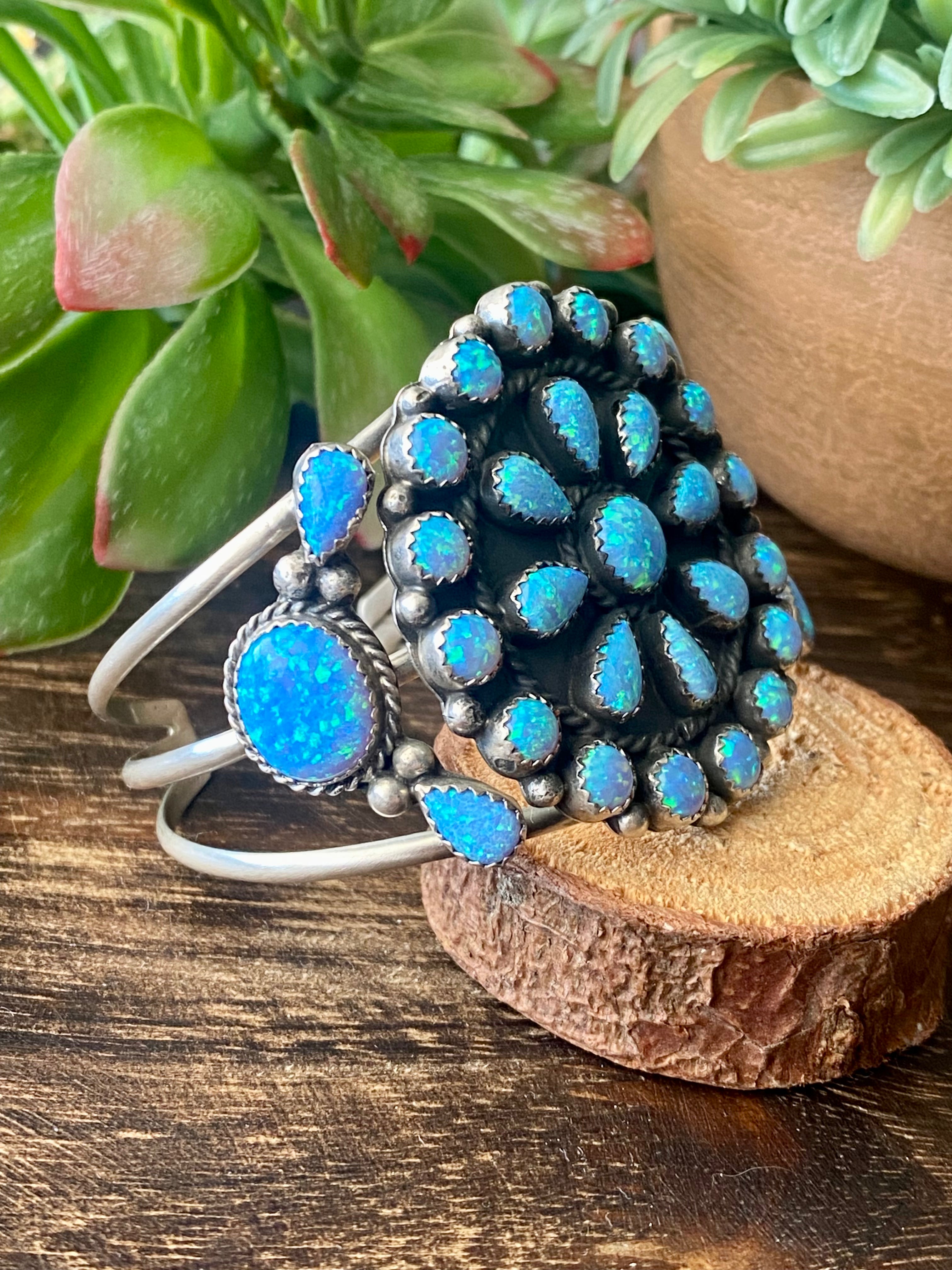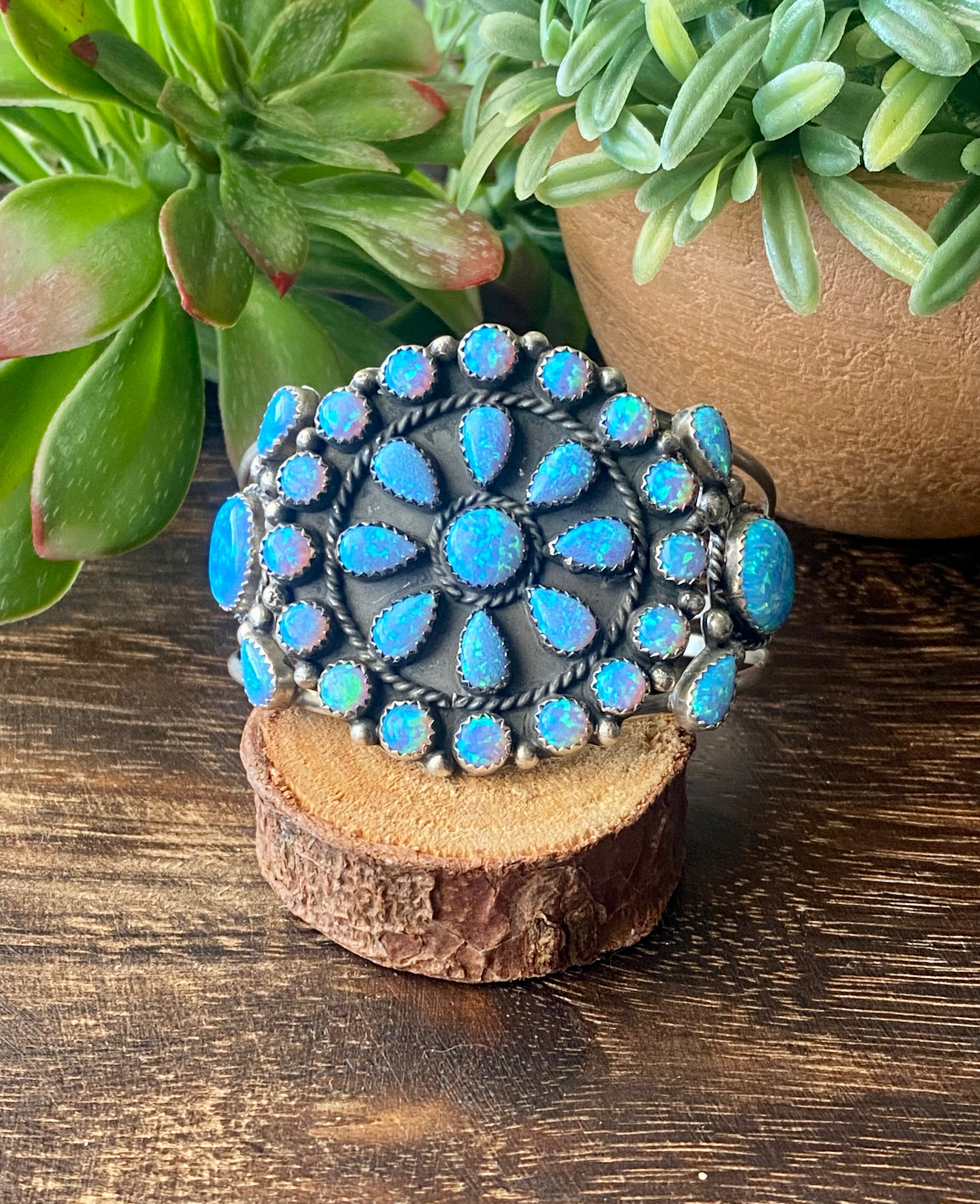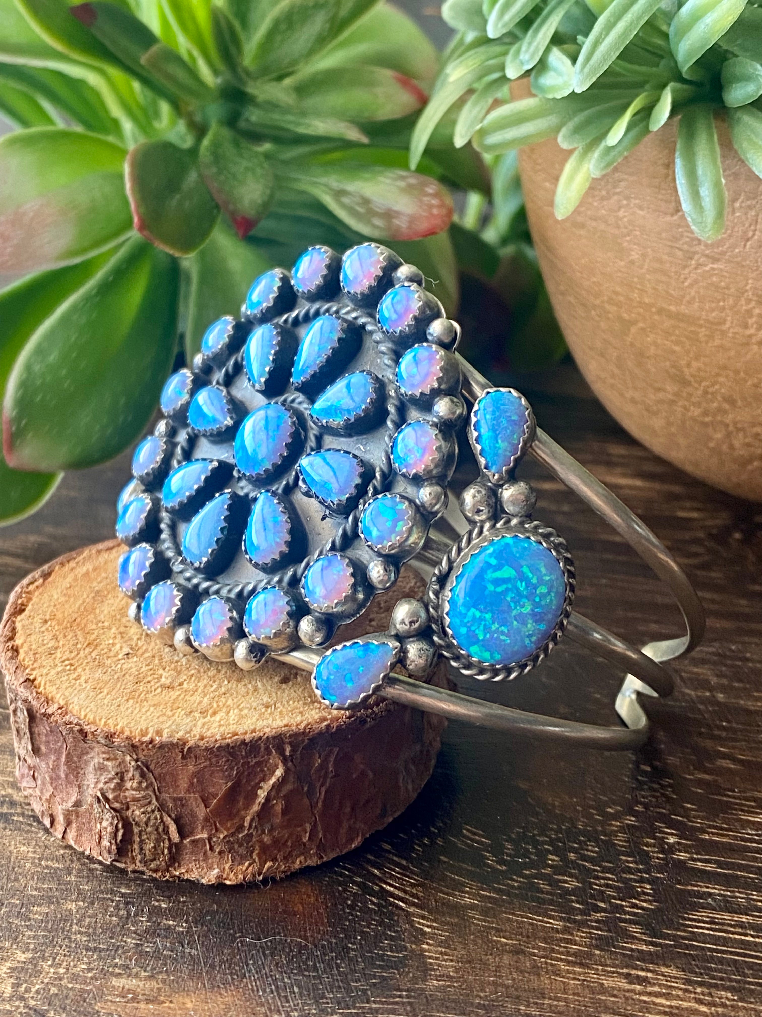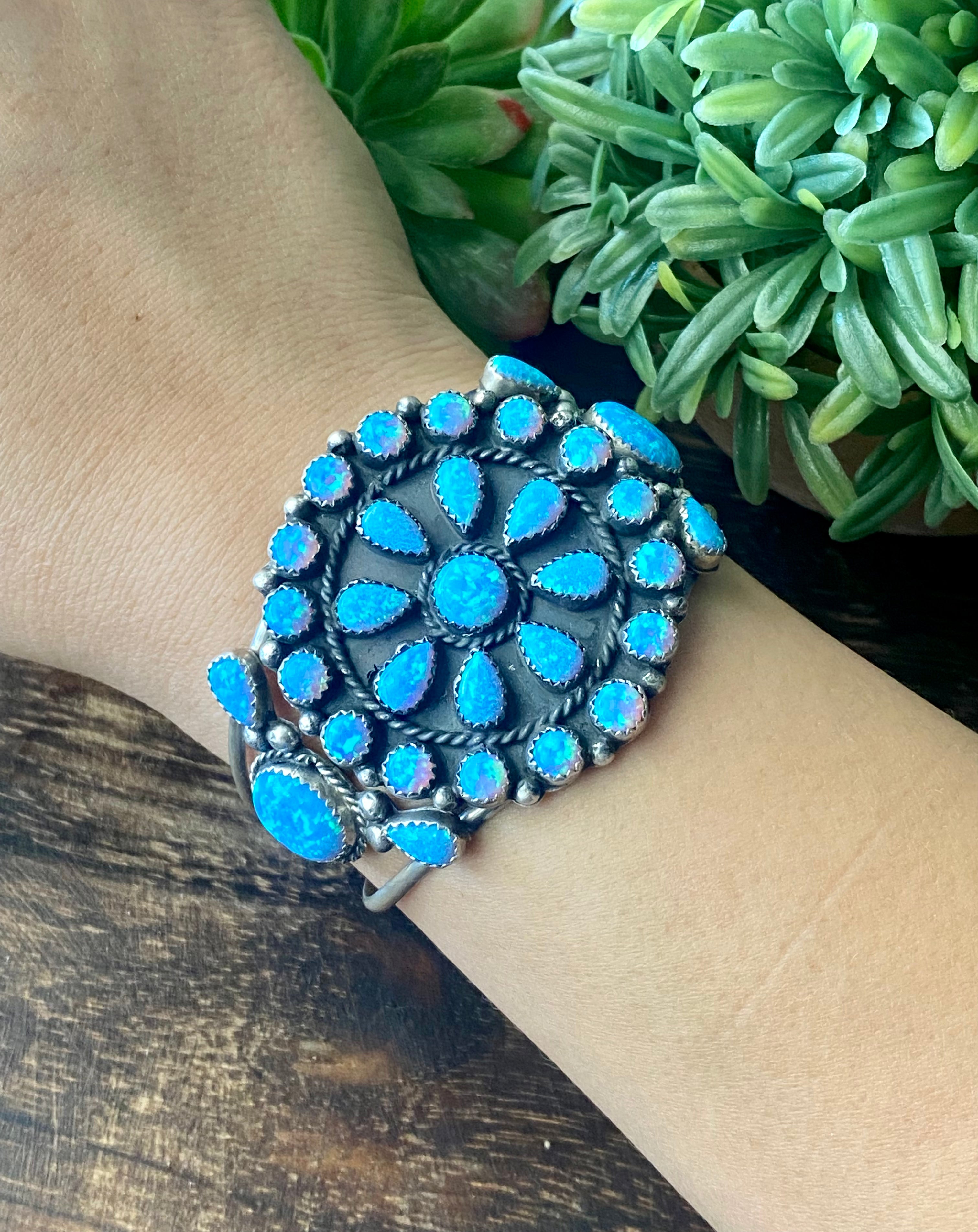 Navajo Made Blue Opal & Sterling Silver Cuff Bracelet