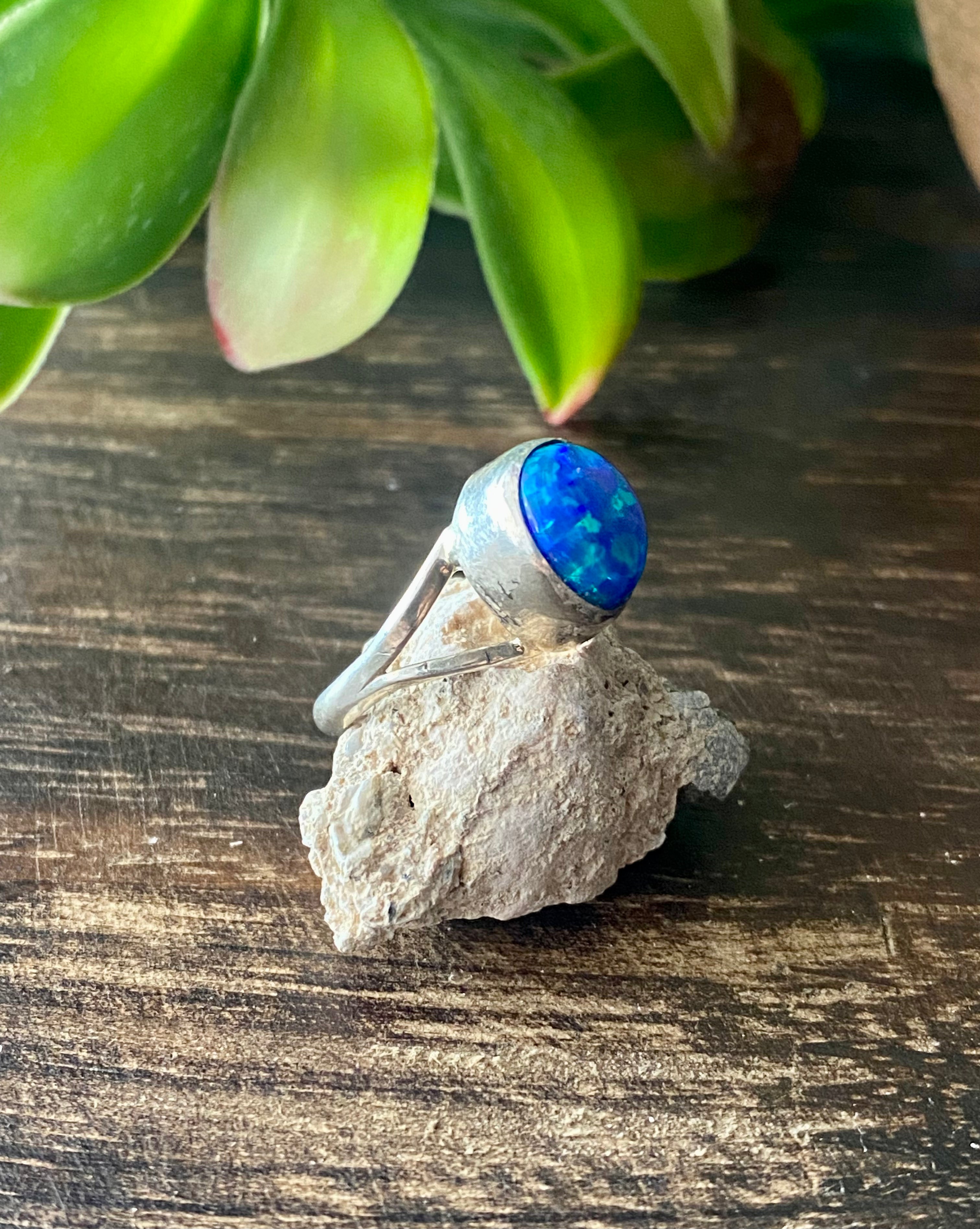 Navajo Made Blue Opal & Sterling Silver Ring Size 5.5