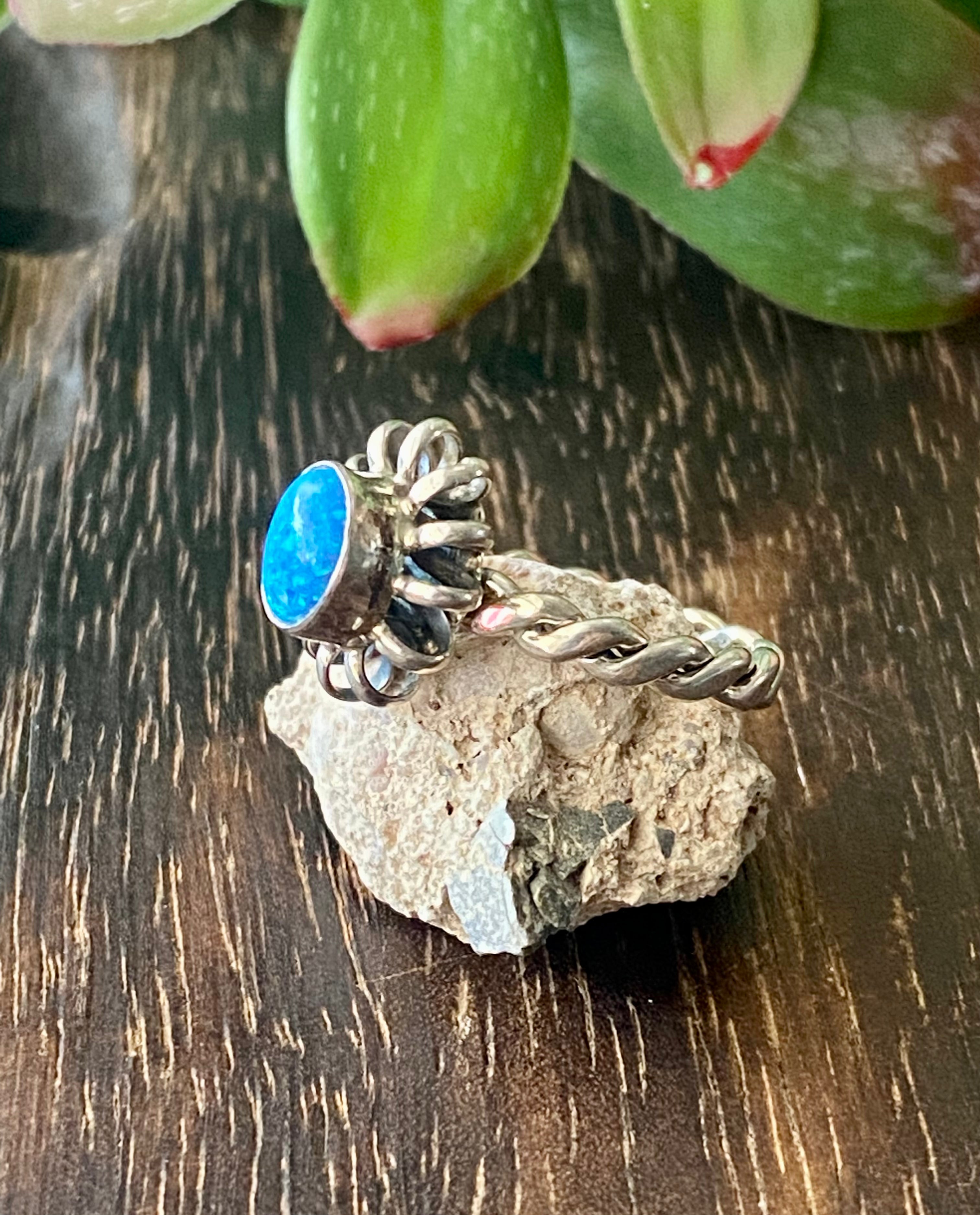 Navajo Made Blue Opal & Sterling Silver Ring Size 6.25