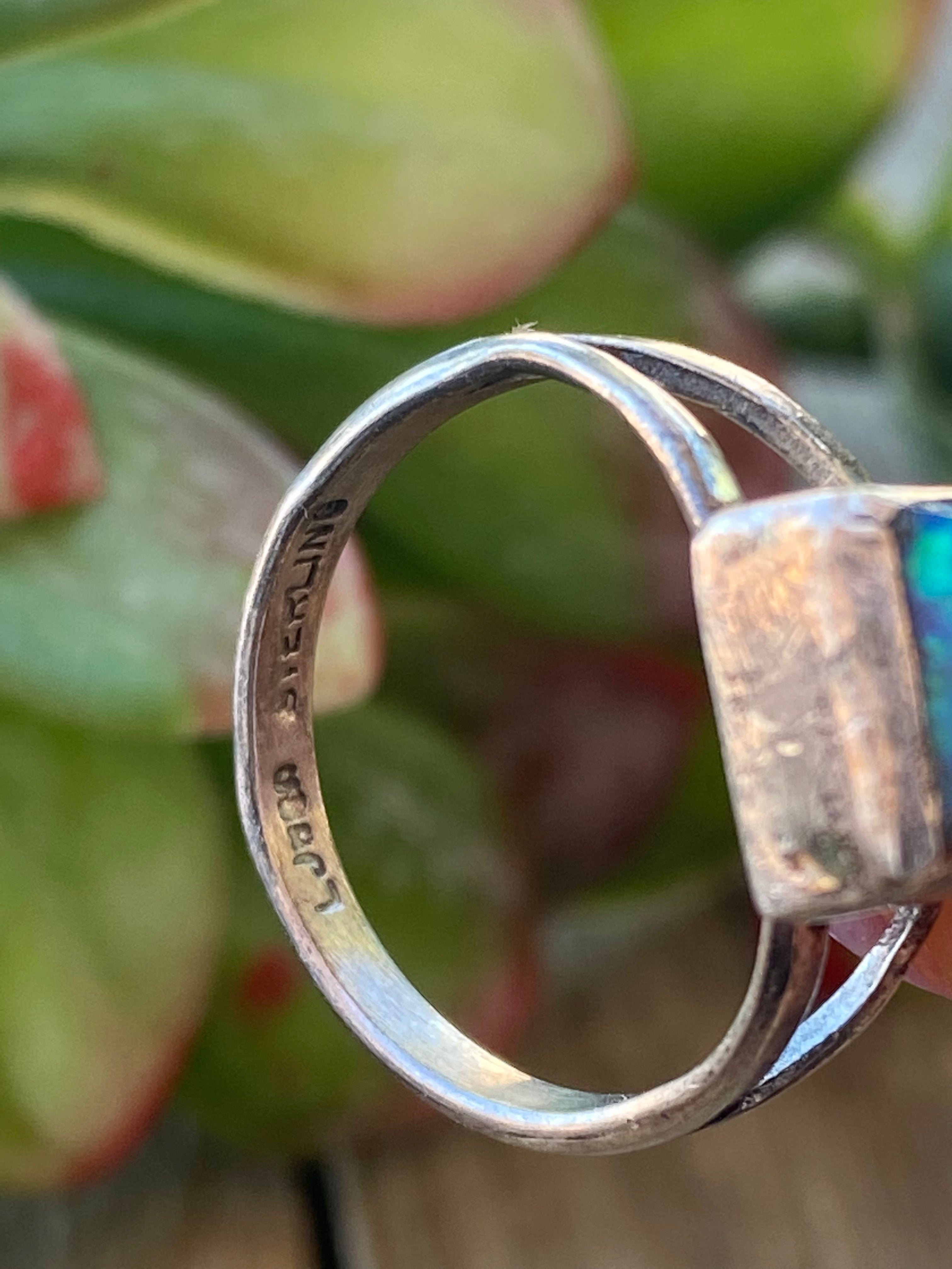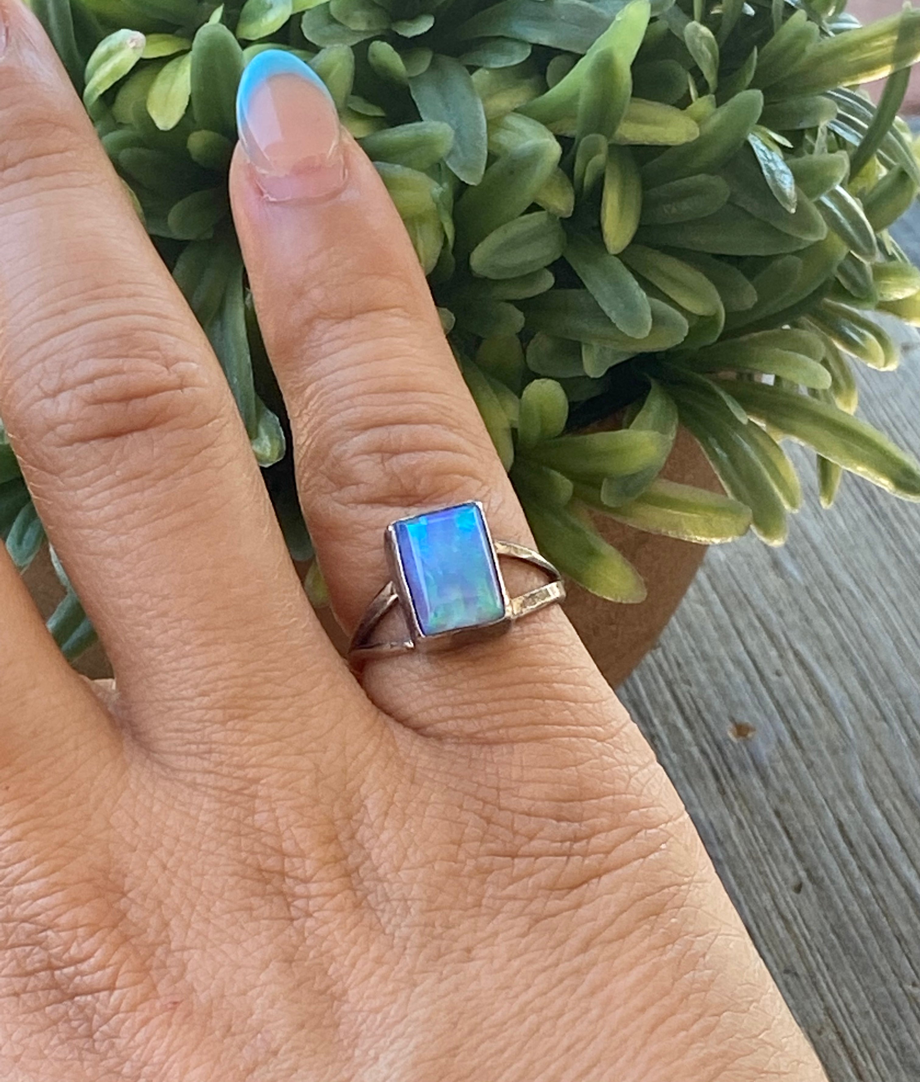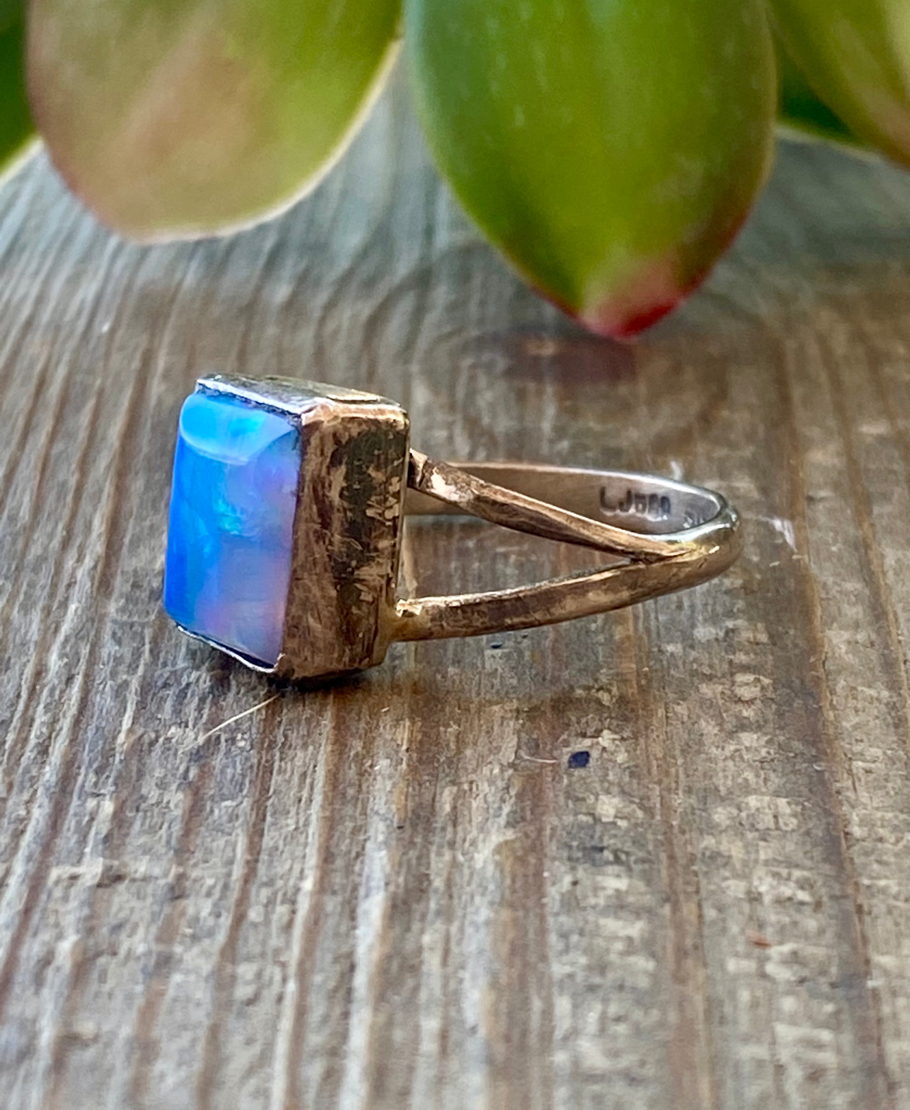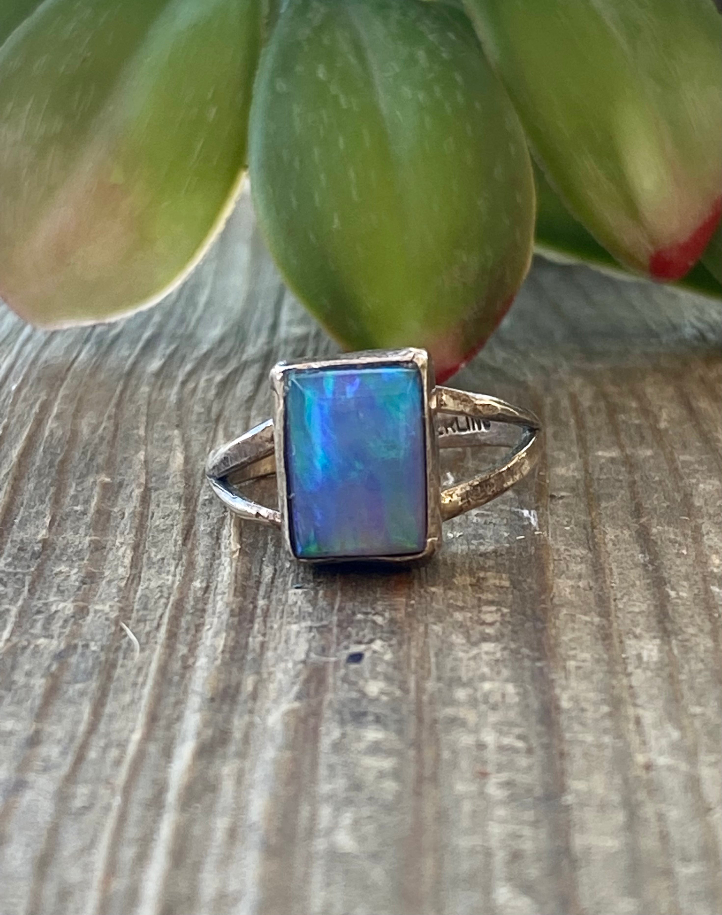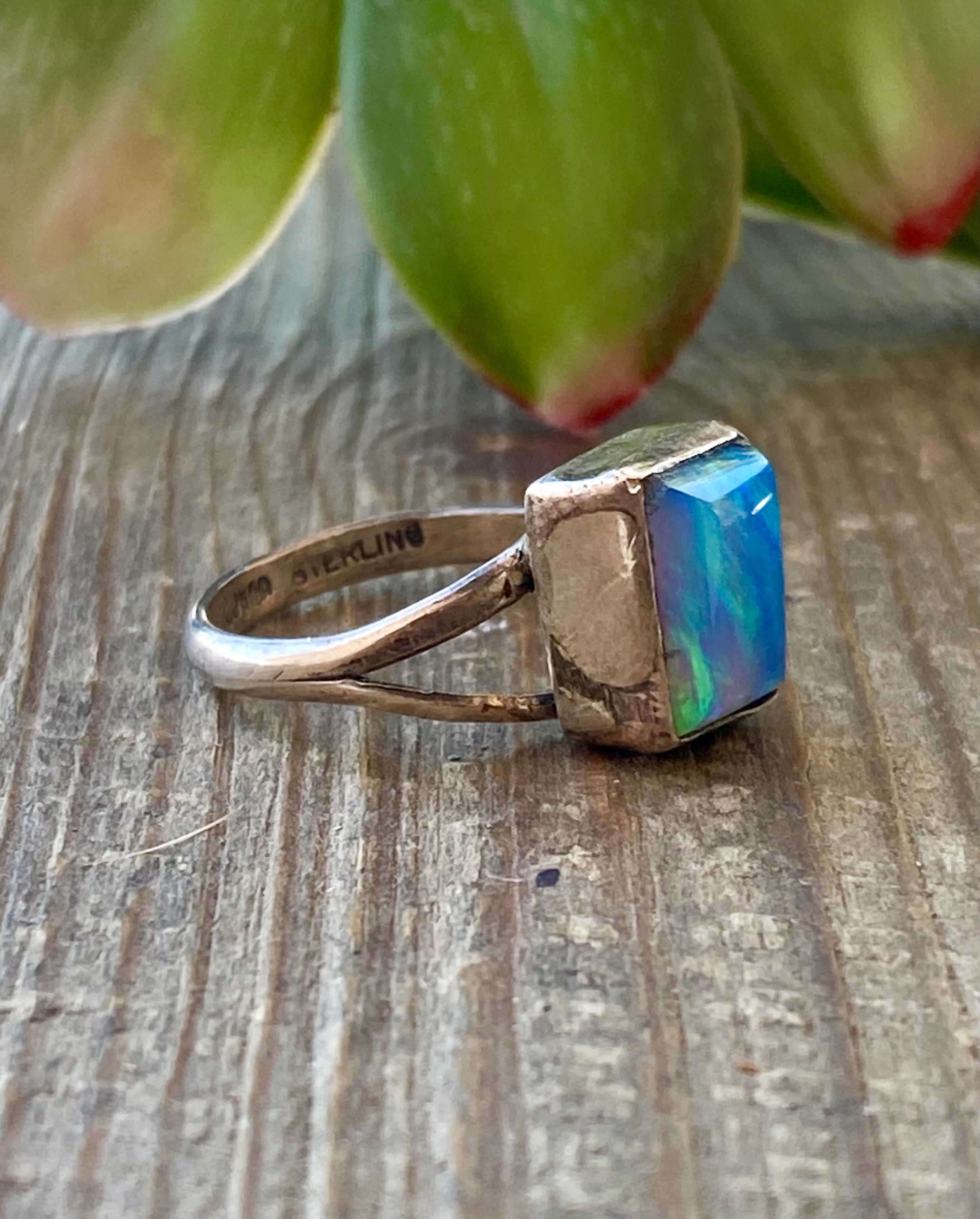 Navajo Made Blue Opal & Sterling Silver Ring Size 6.75