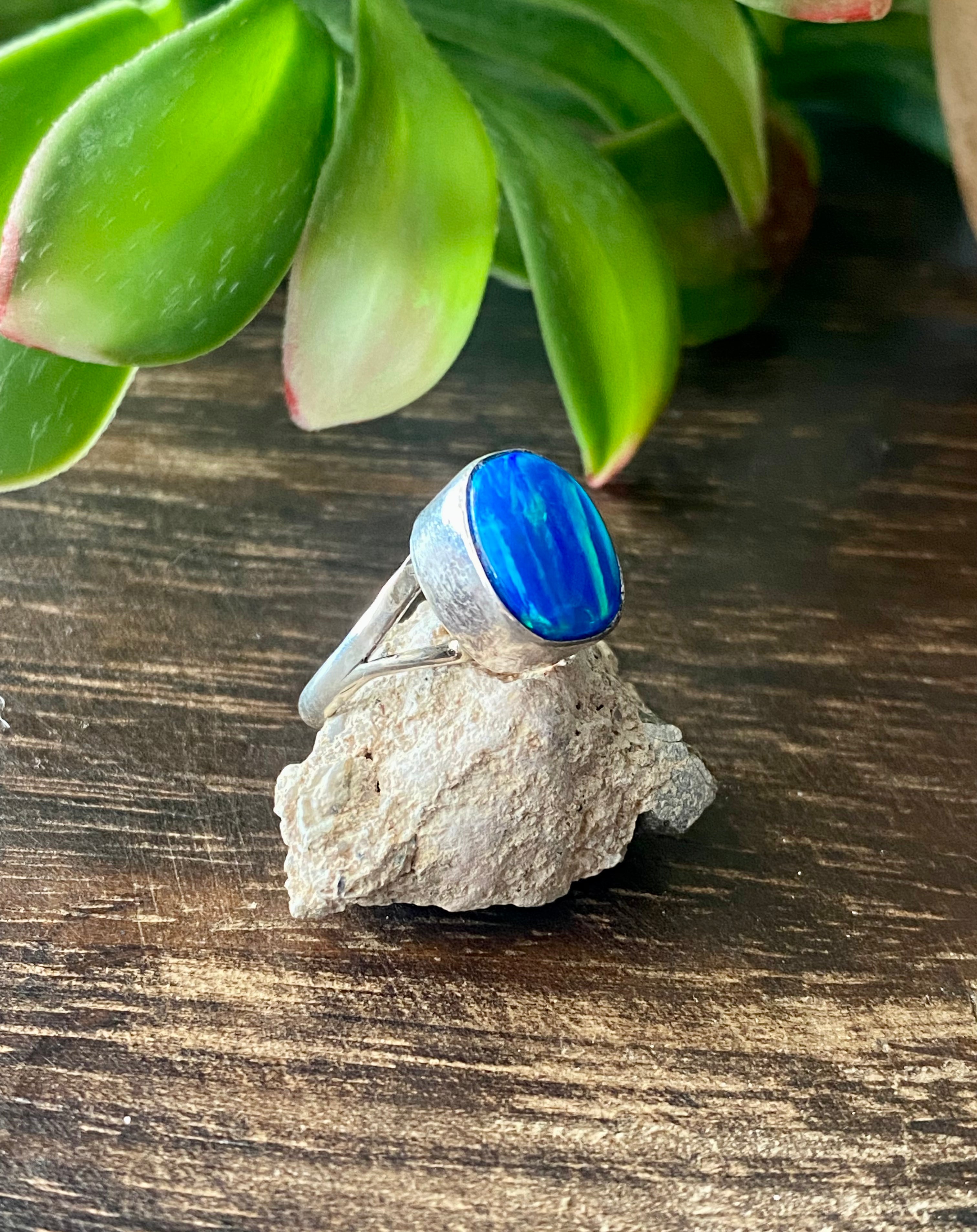 Navajo Made Blue Opal & Sterling Silver Ring Size 6.5