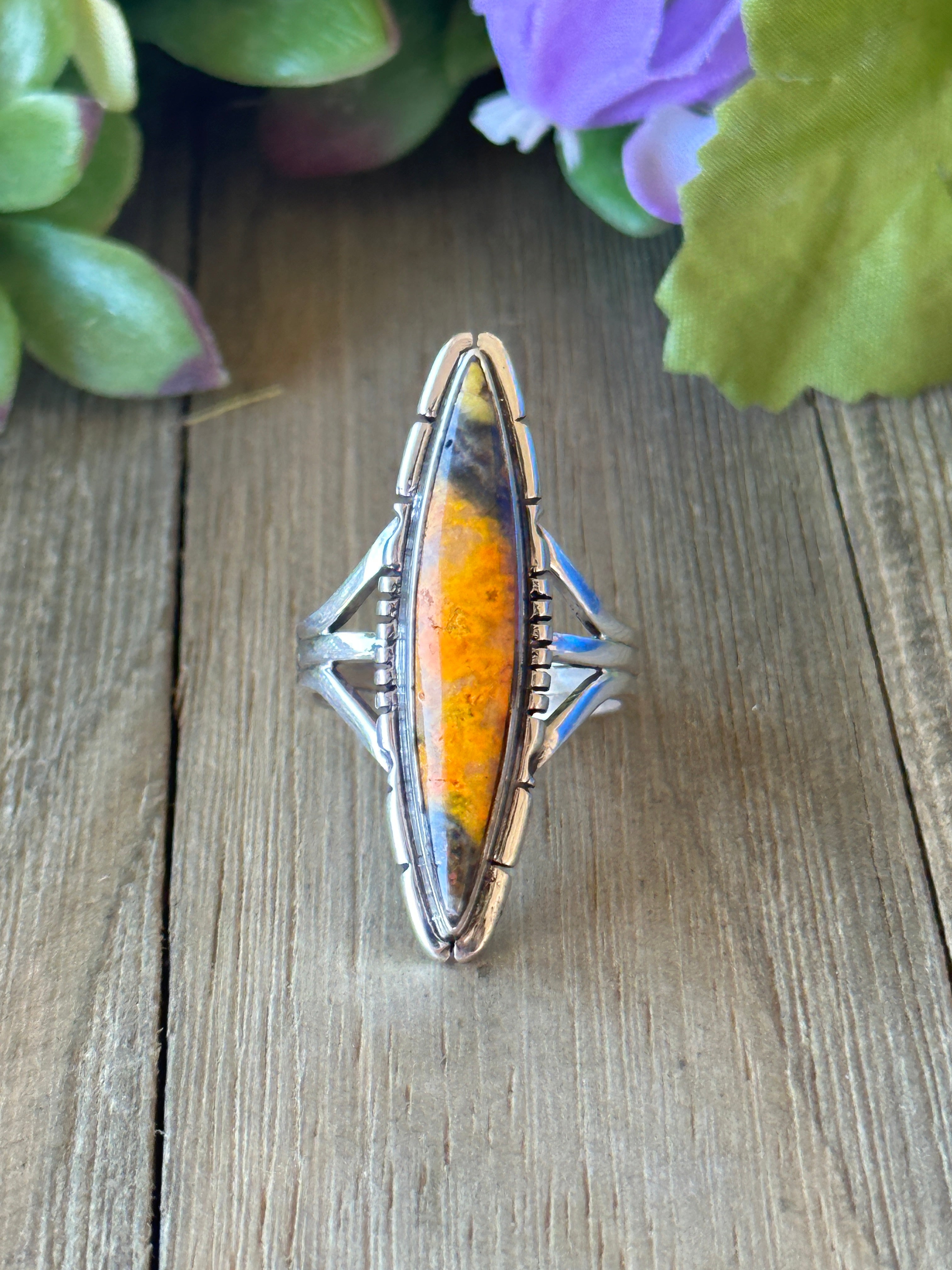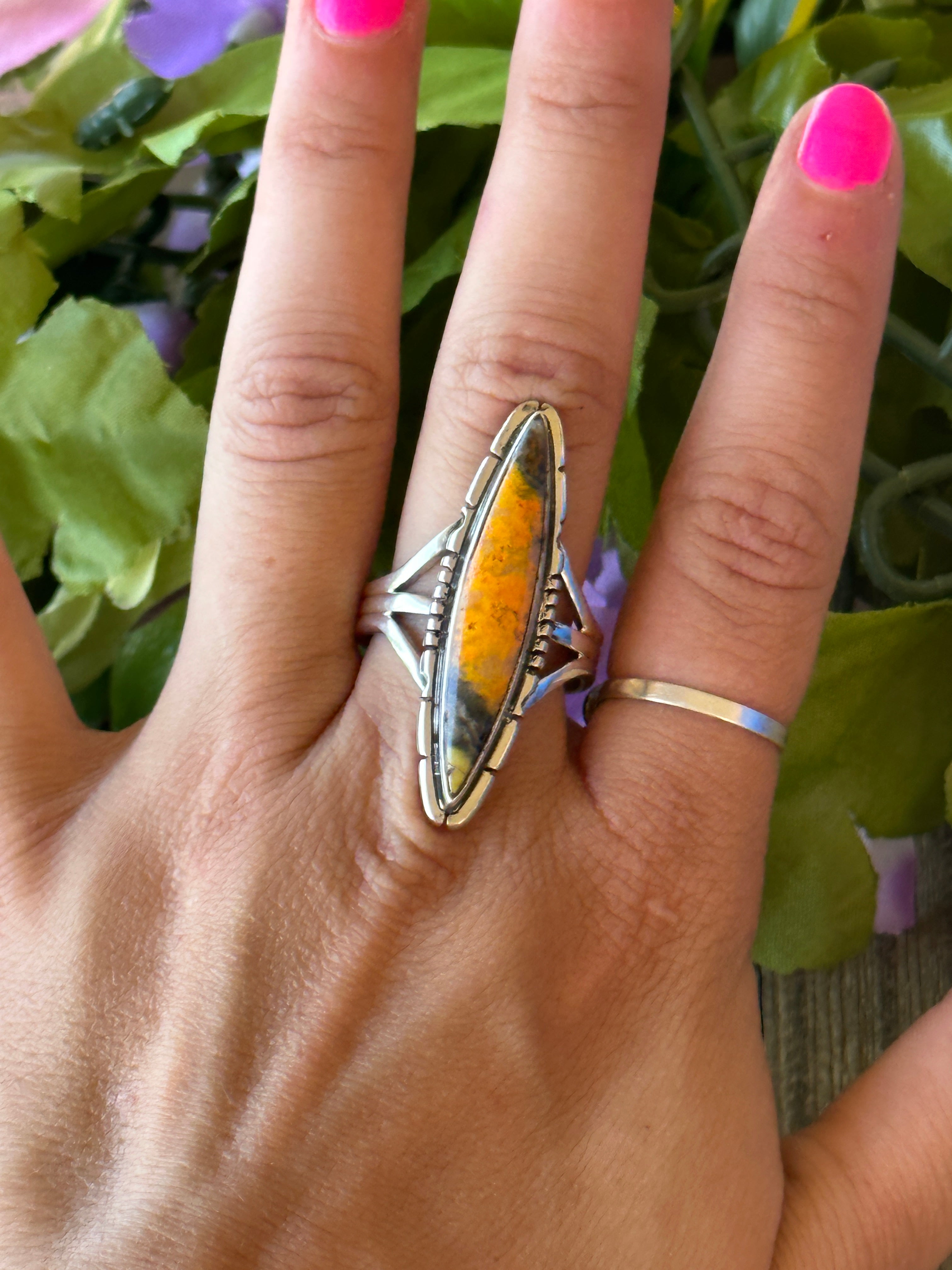 Navajo Made Bumblebee Jasper & Sterling Silver Ring Size 9.75