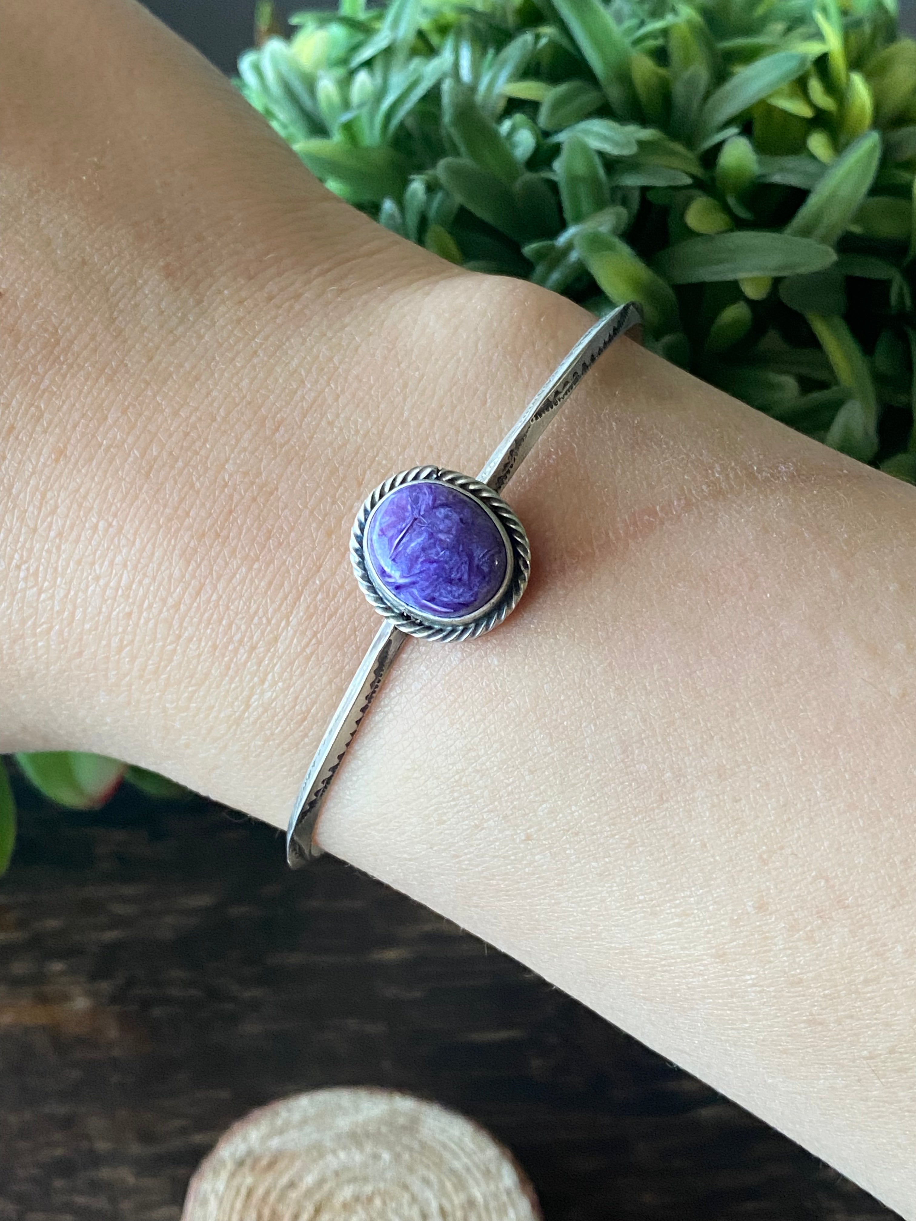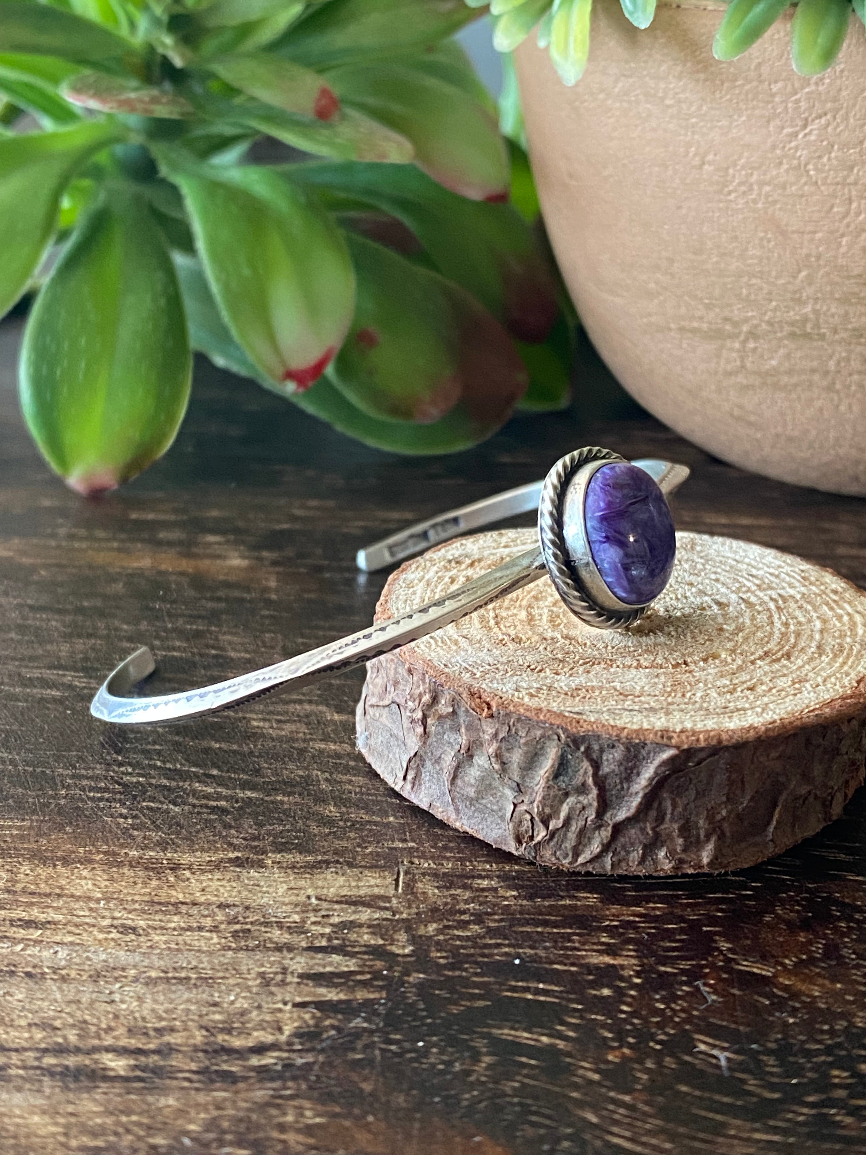 Navajo Made Charoite & Sterling Silver Cuff Bracelet