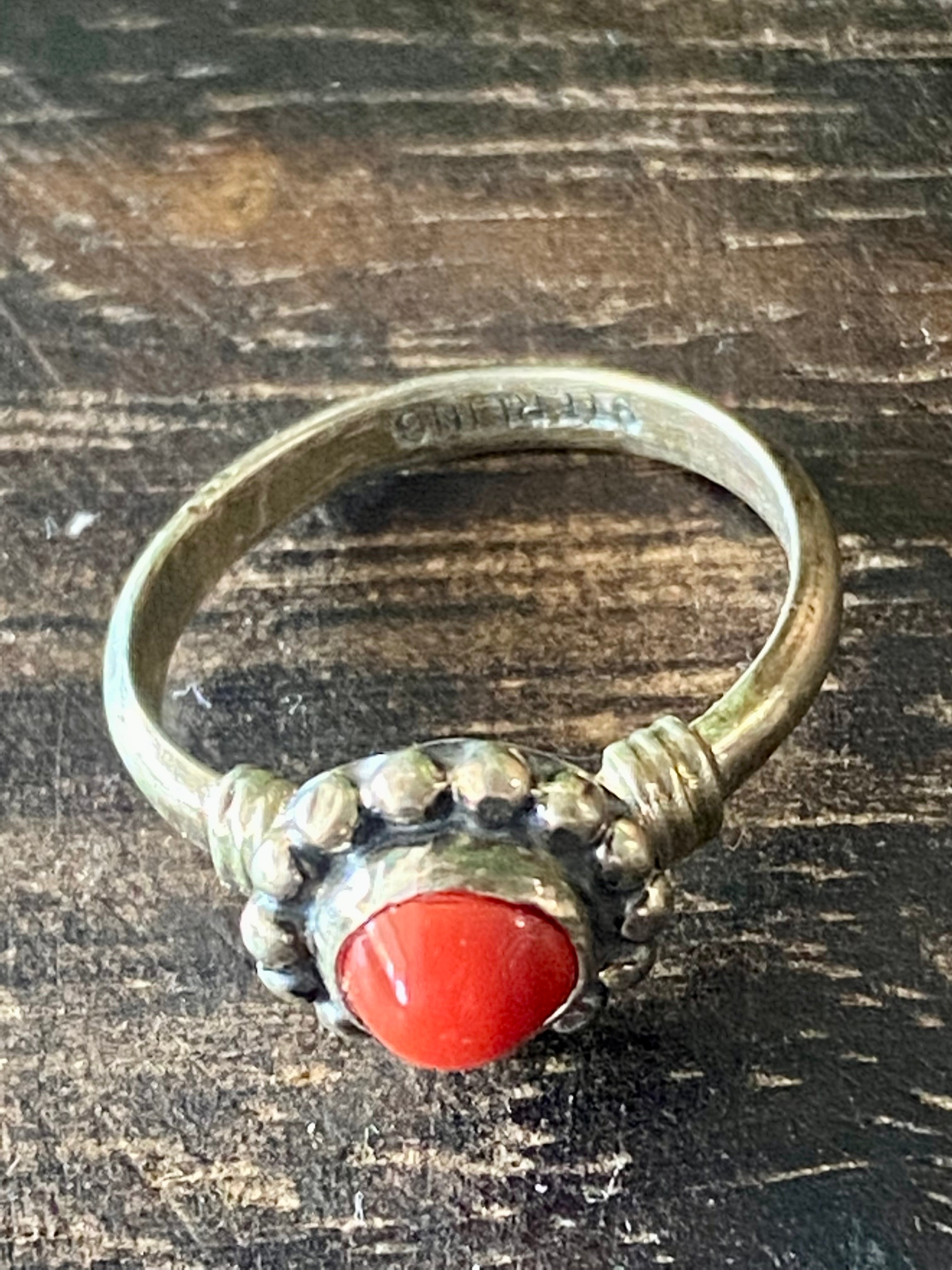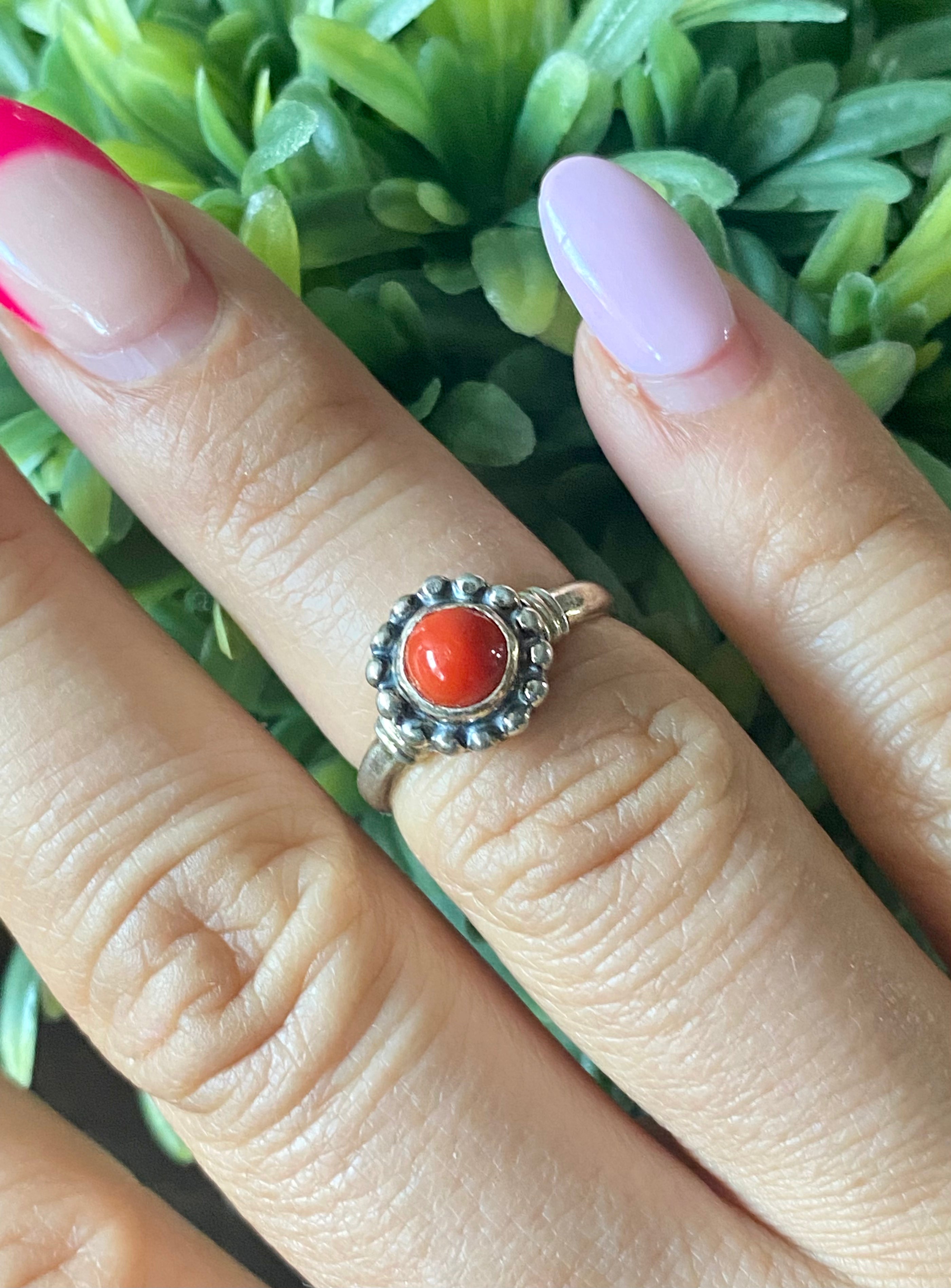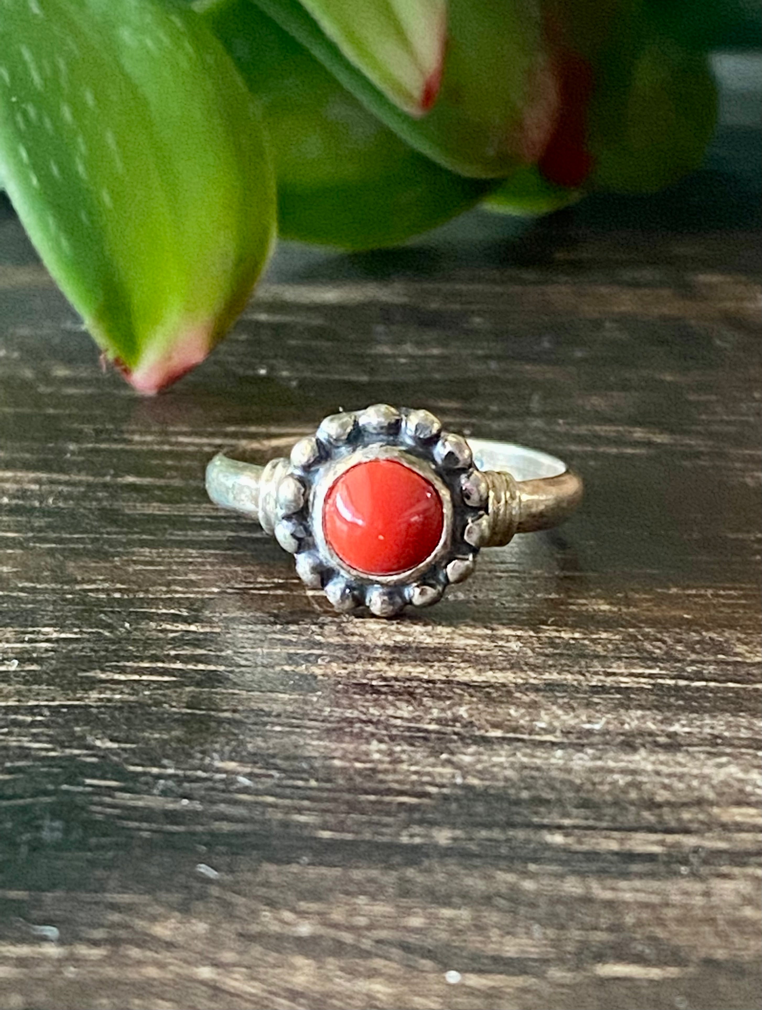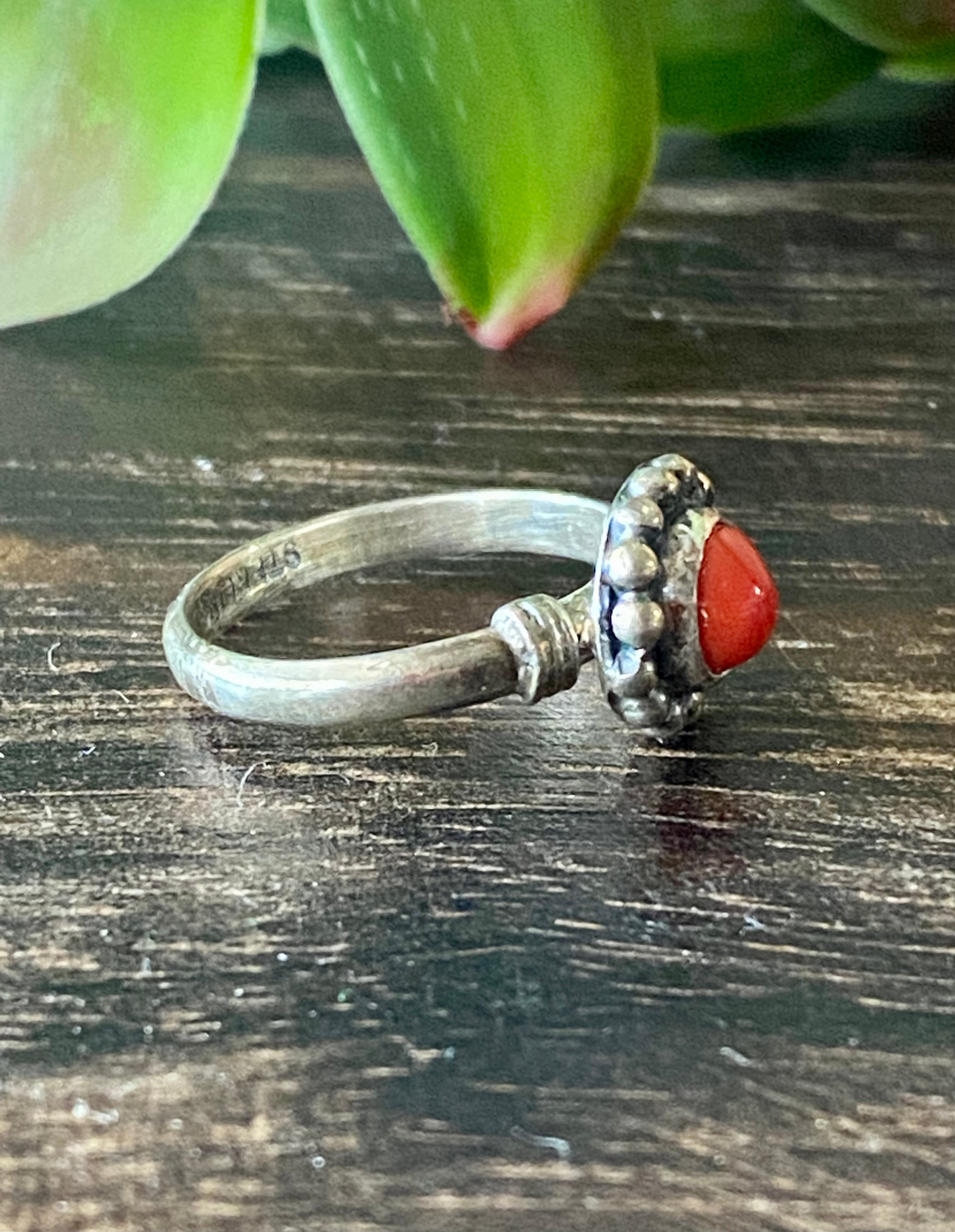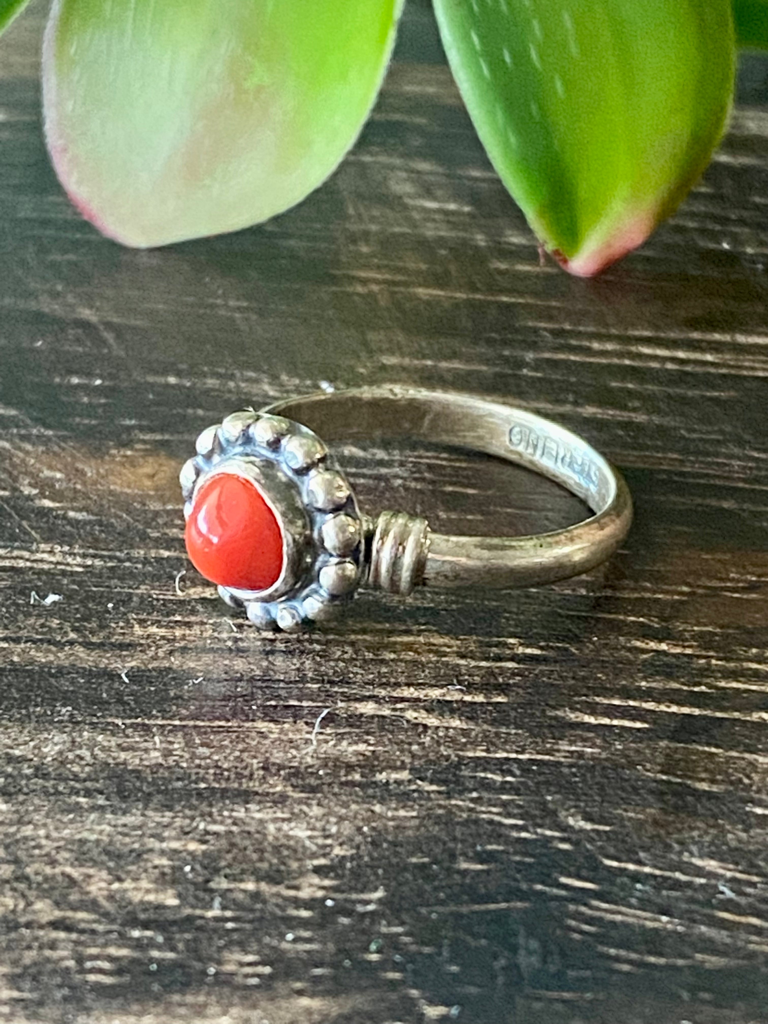 Navajo Made Coral & Sterling Silver Ring Size 5