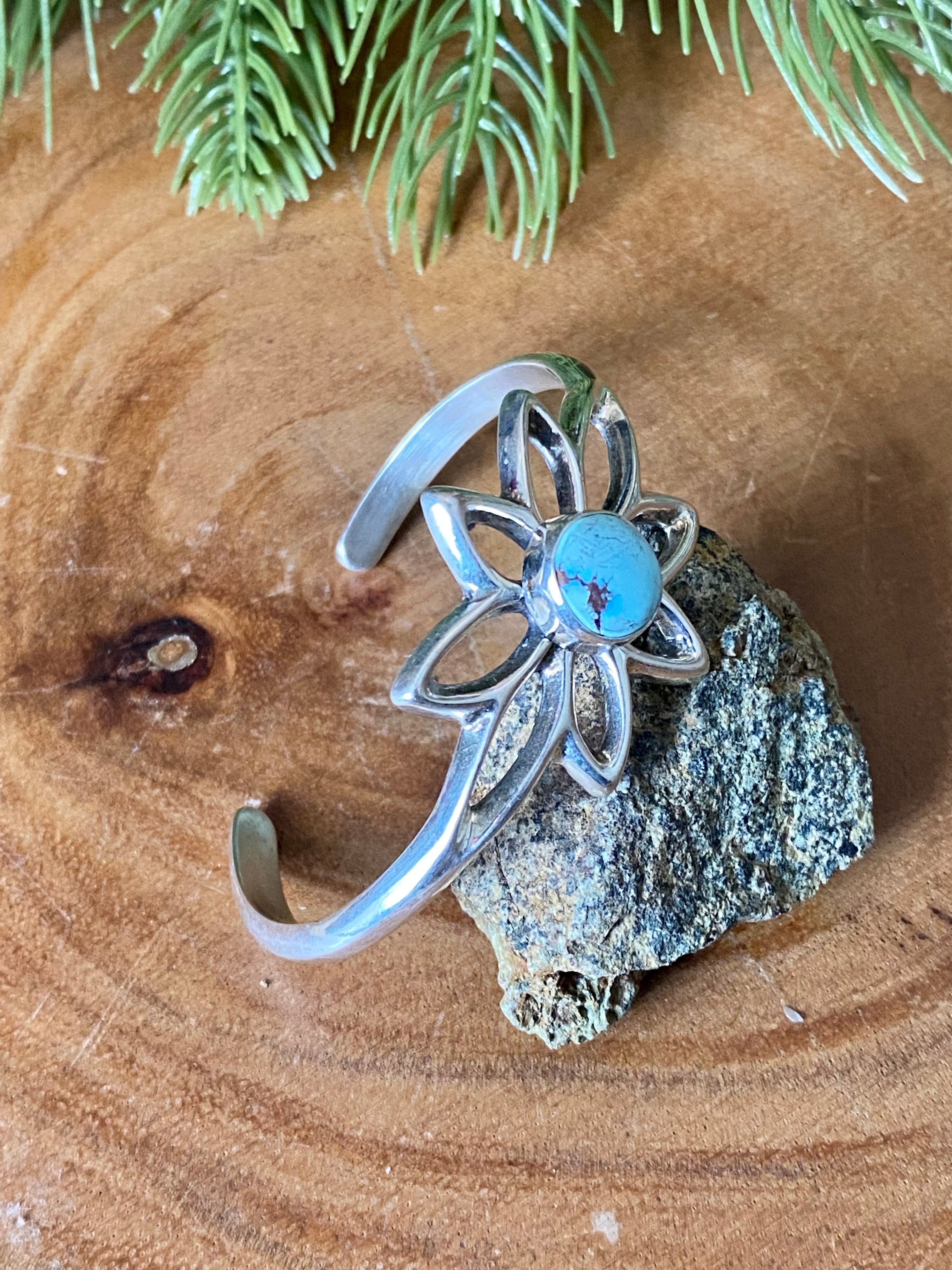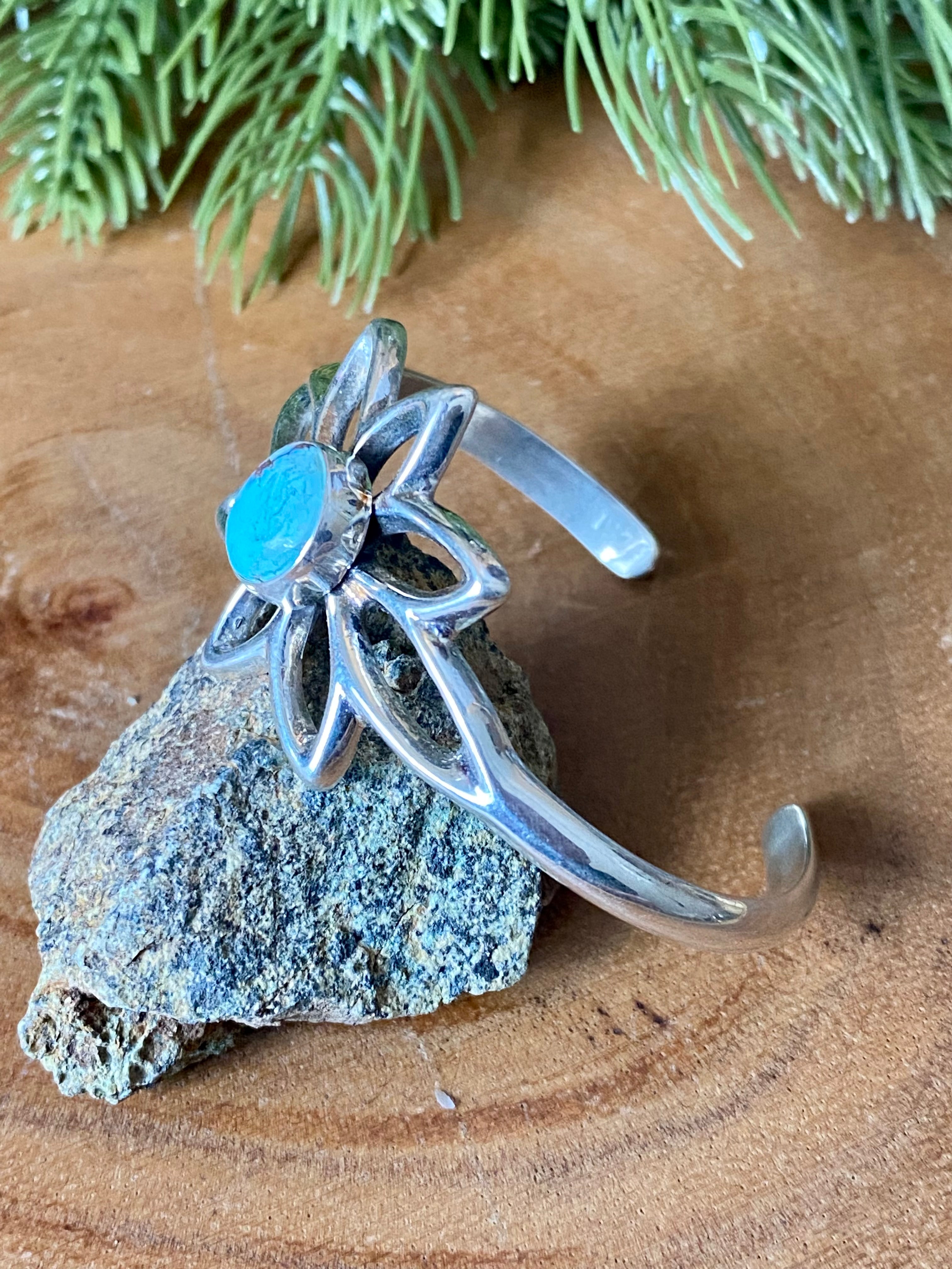 Navajo Made Golden Hill’s Turquoise & Sterling Silver Cuff Bracelet