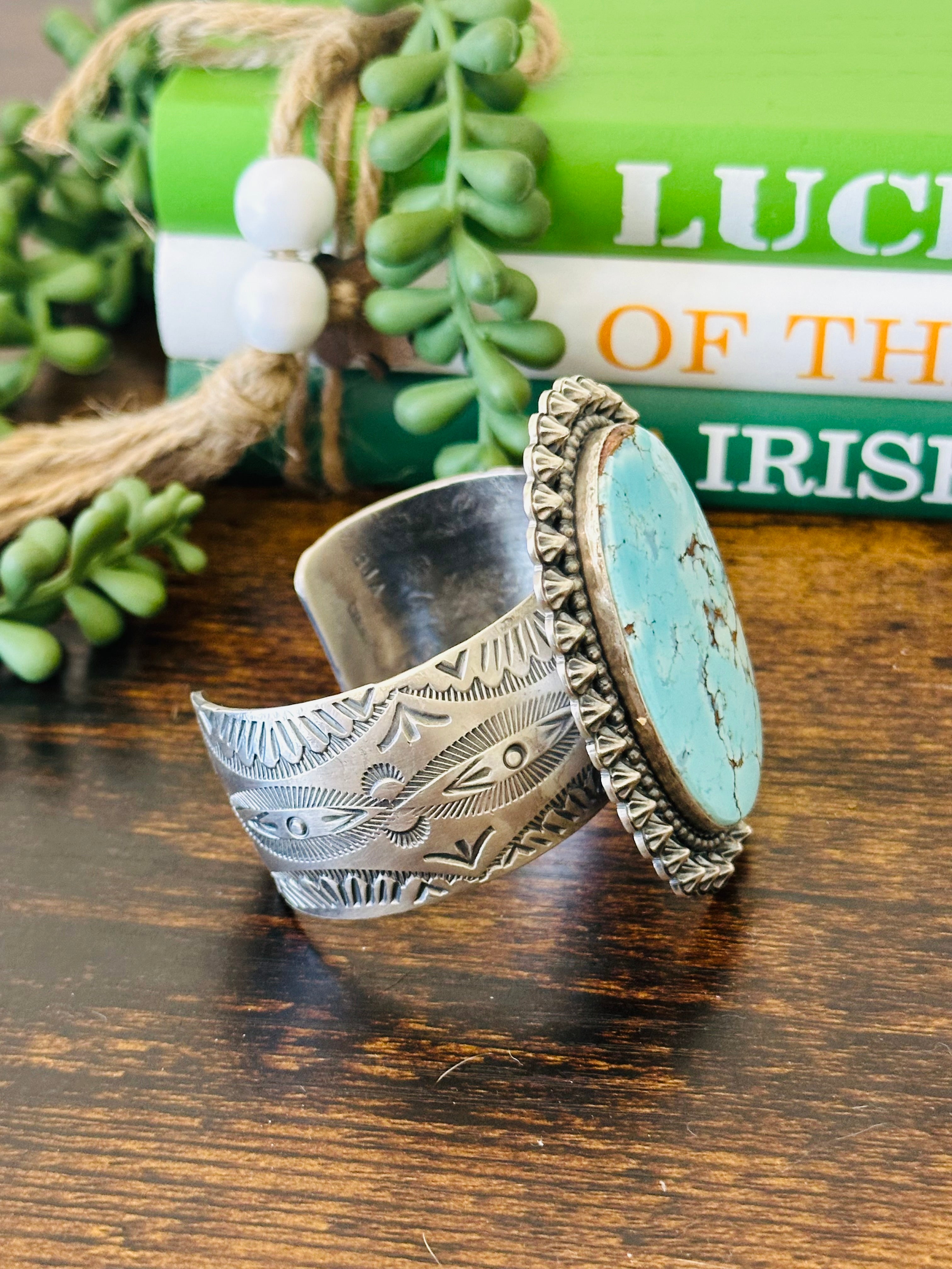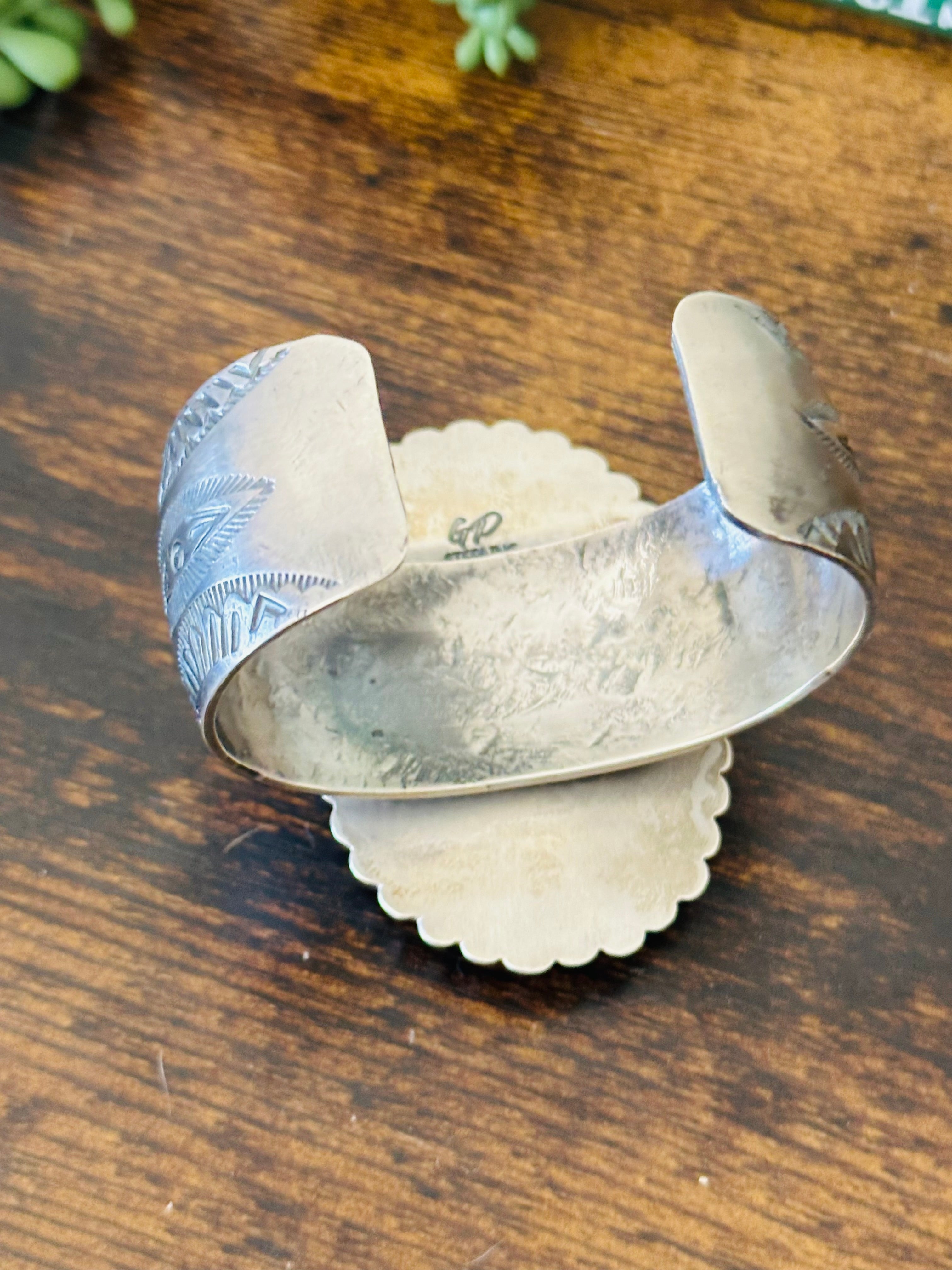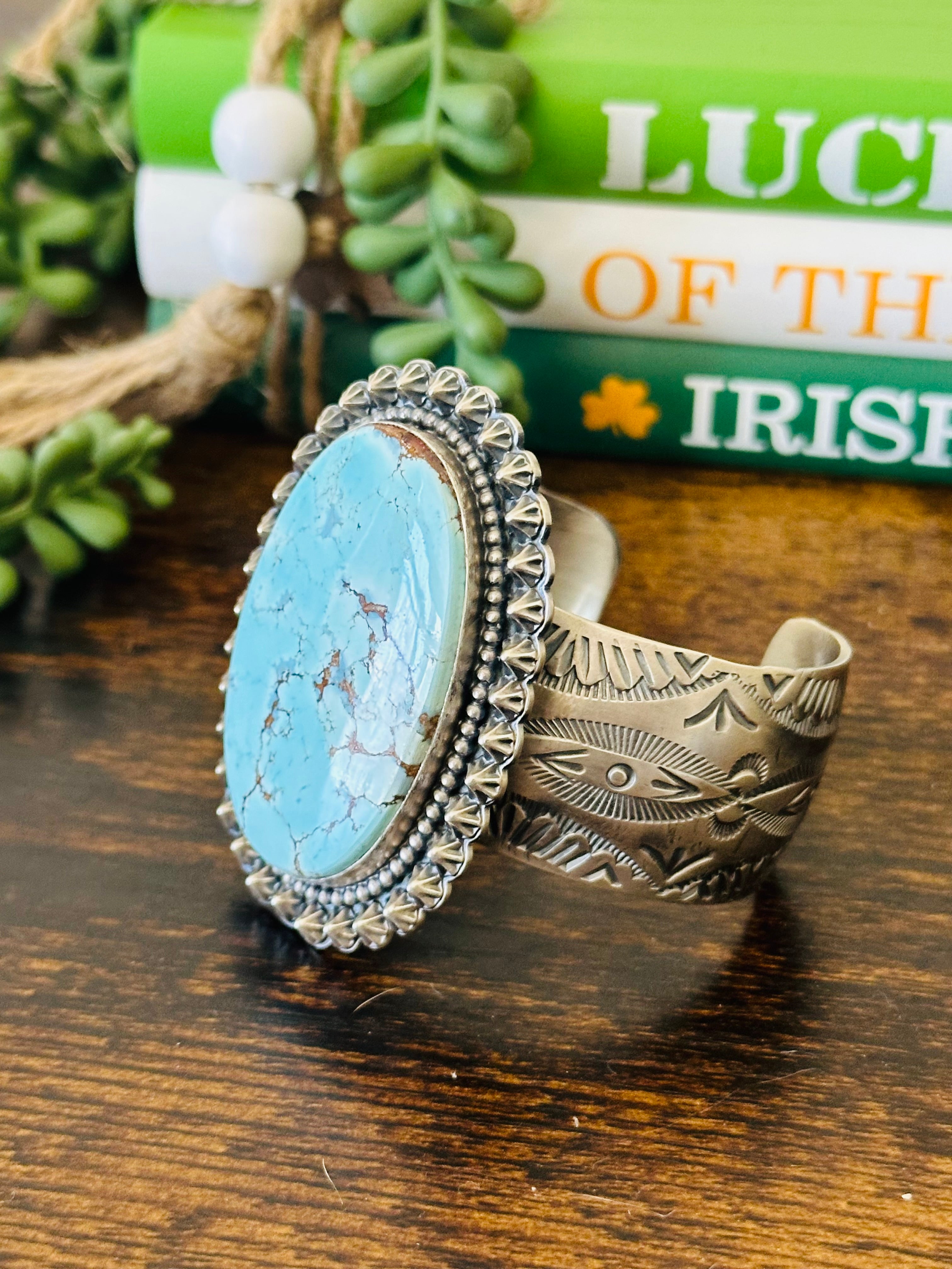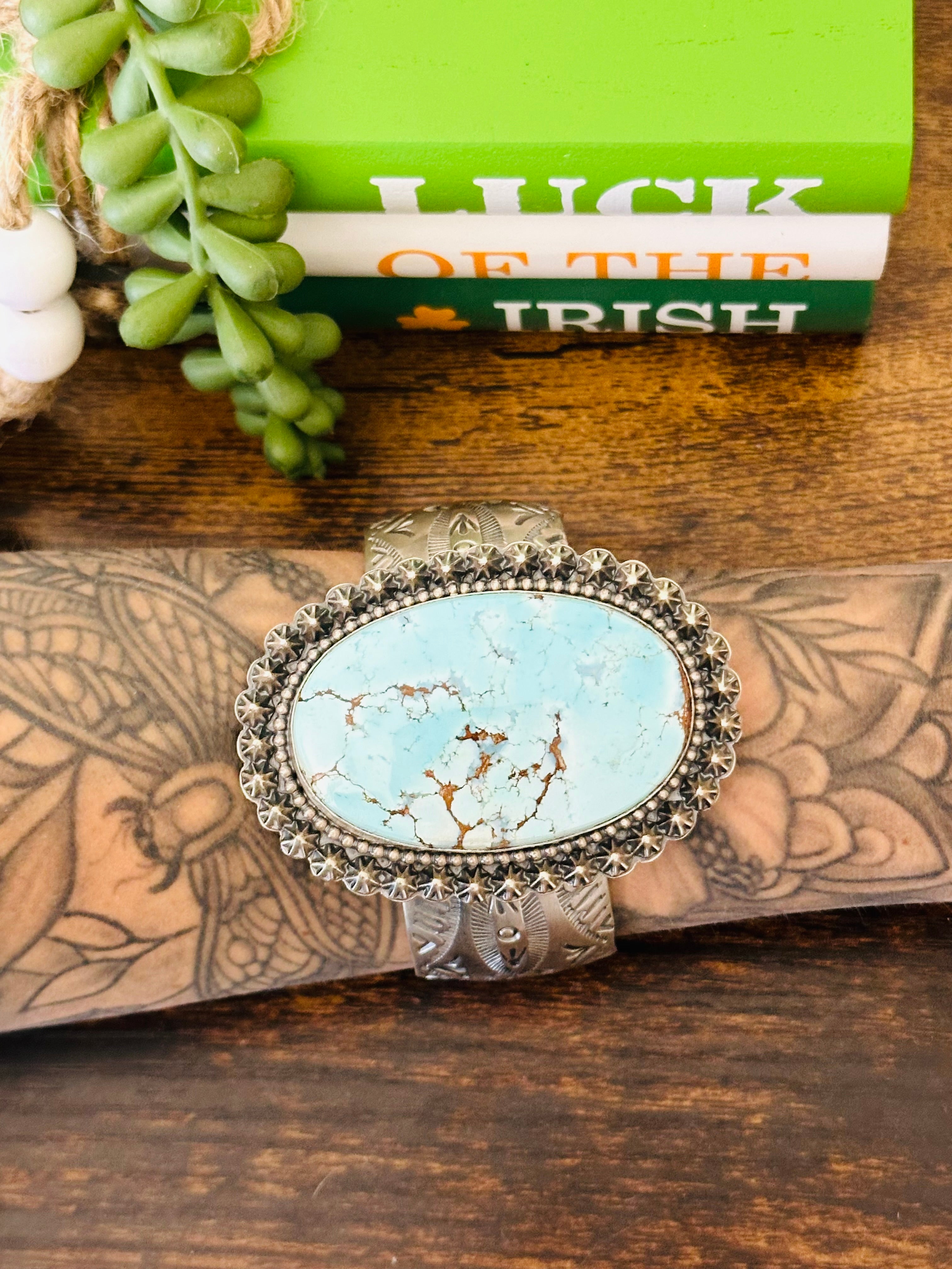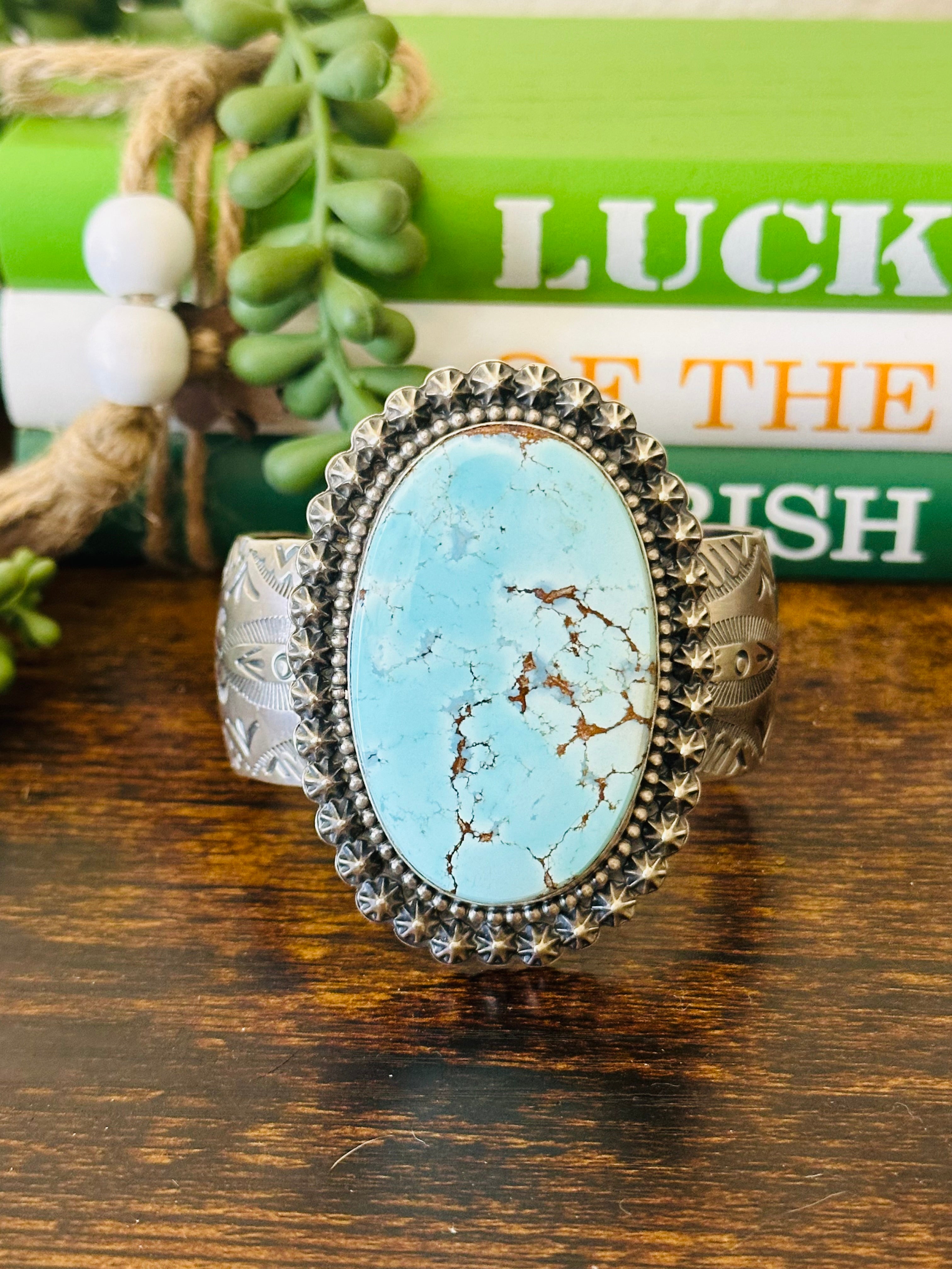 Navajo Made Golden Hills Turquoise & Sterling Silver Cuff Bracelet