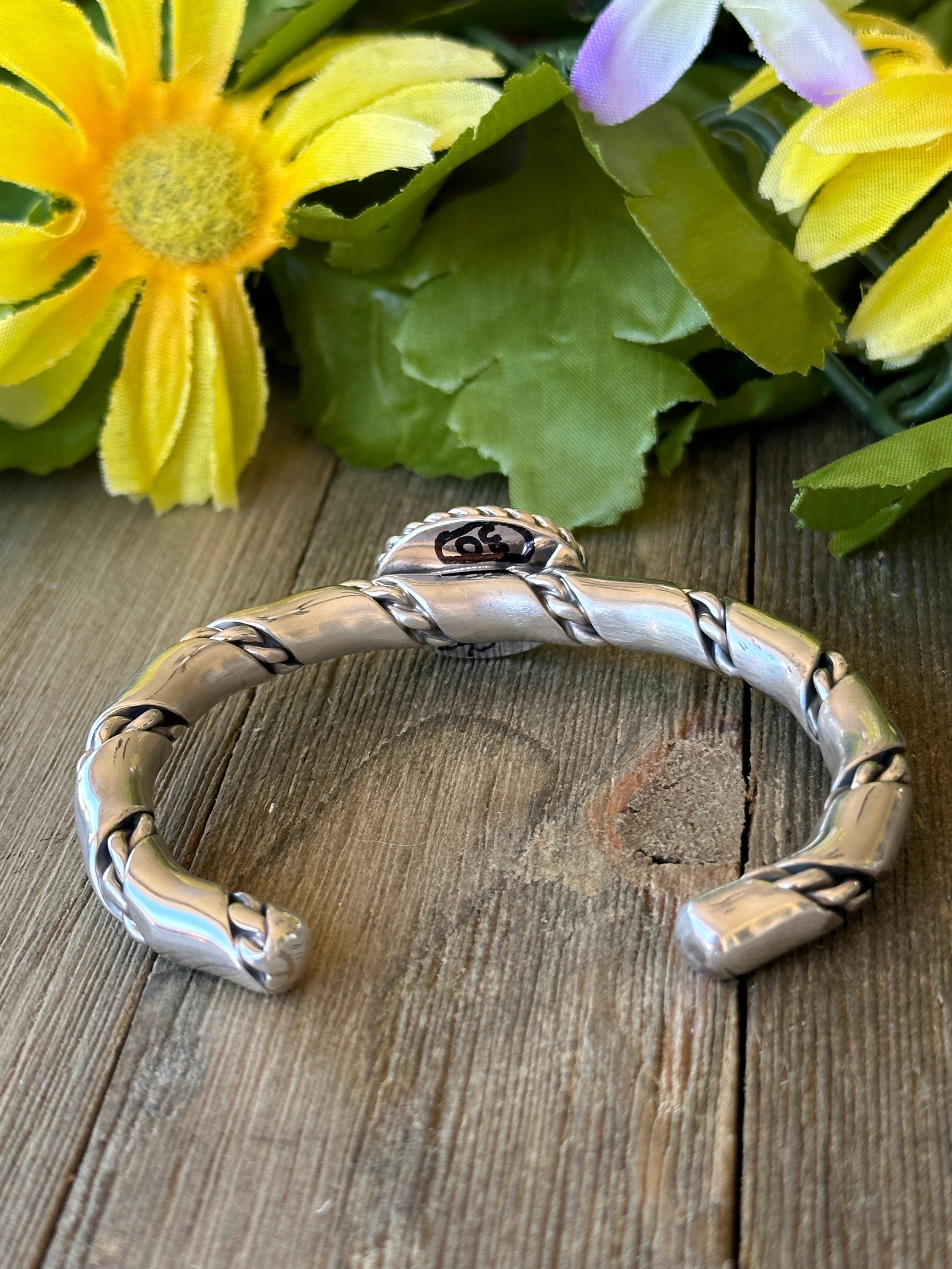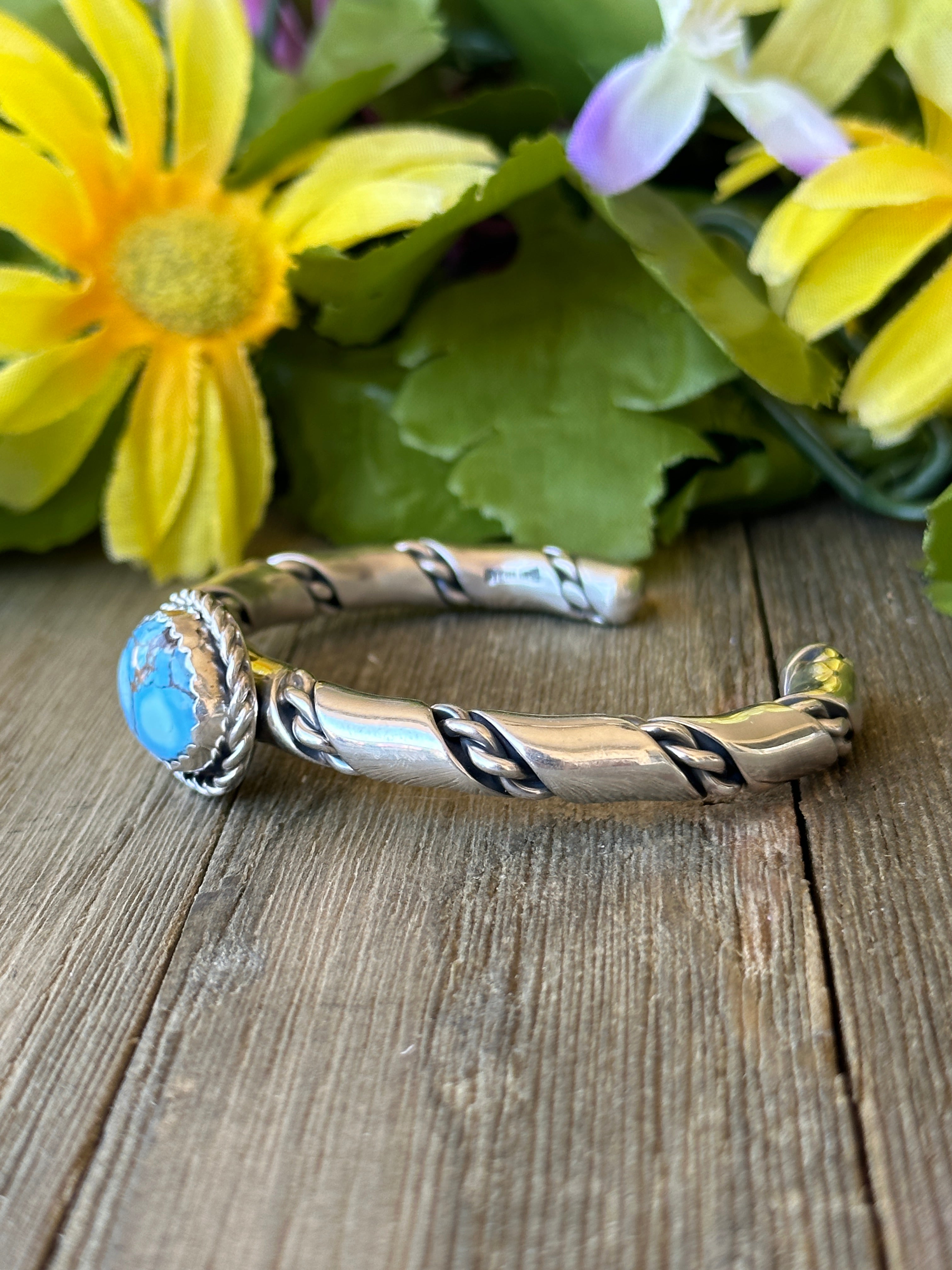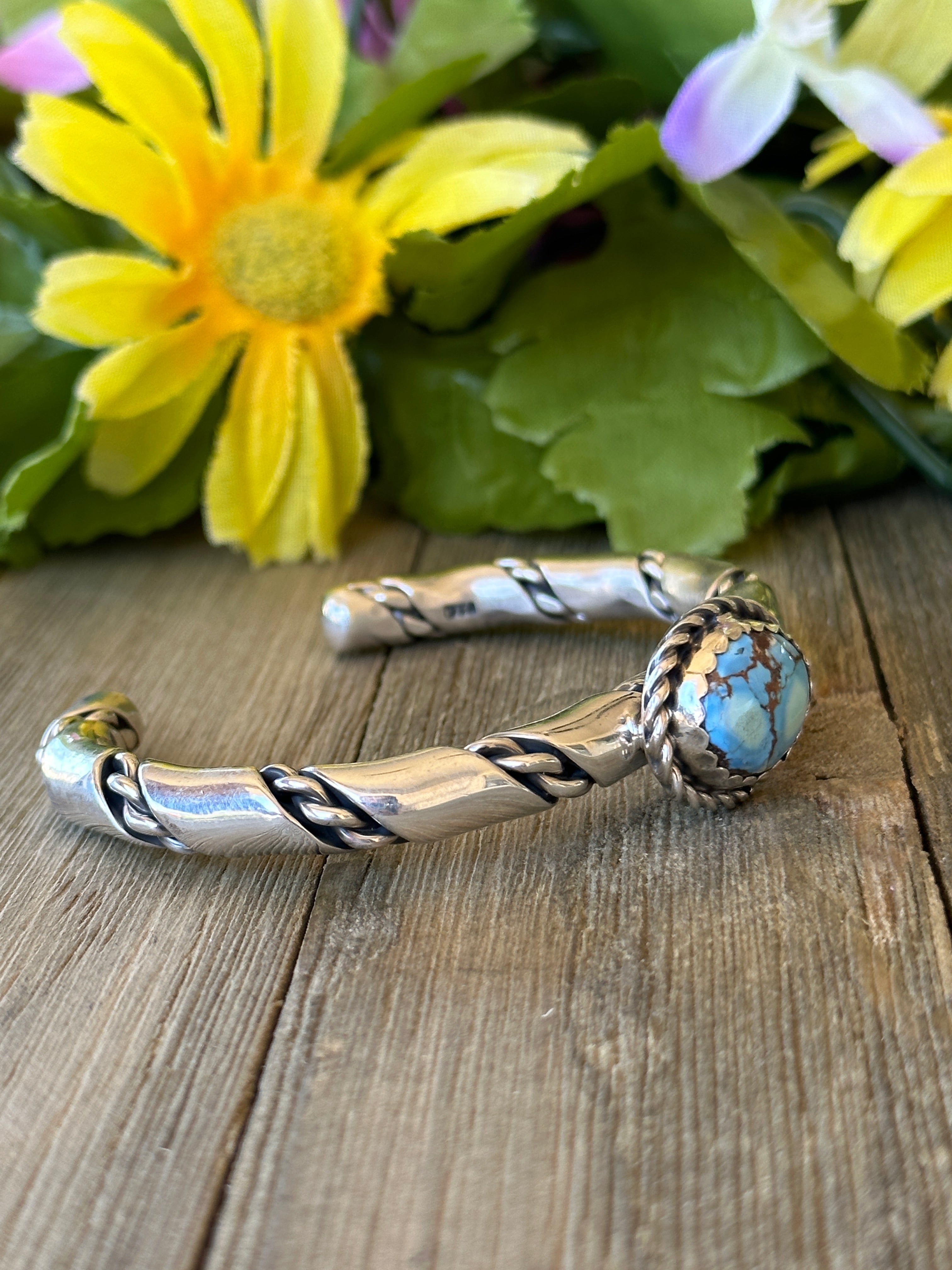 Navajo Made Golden Hills Turquoise & Sterling Silver Cuff Bracelet