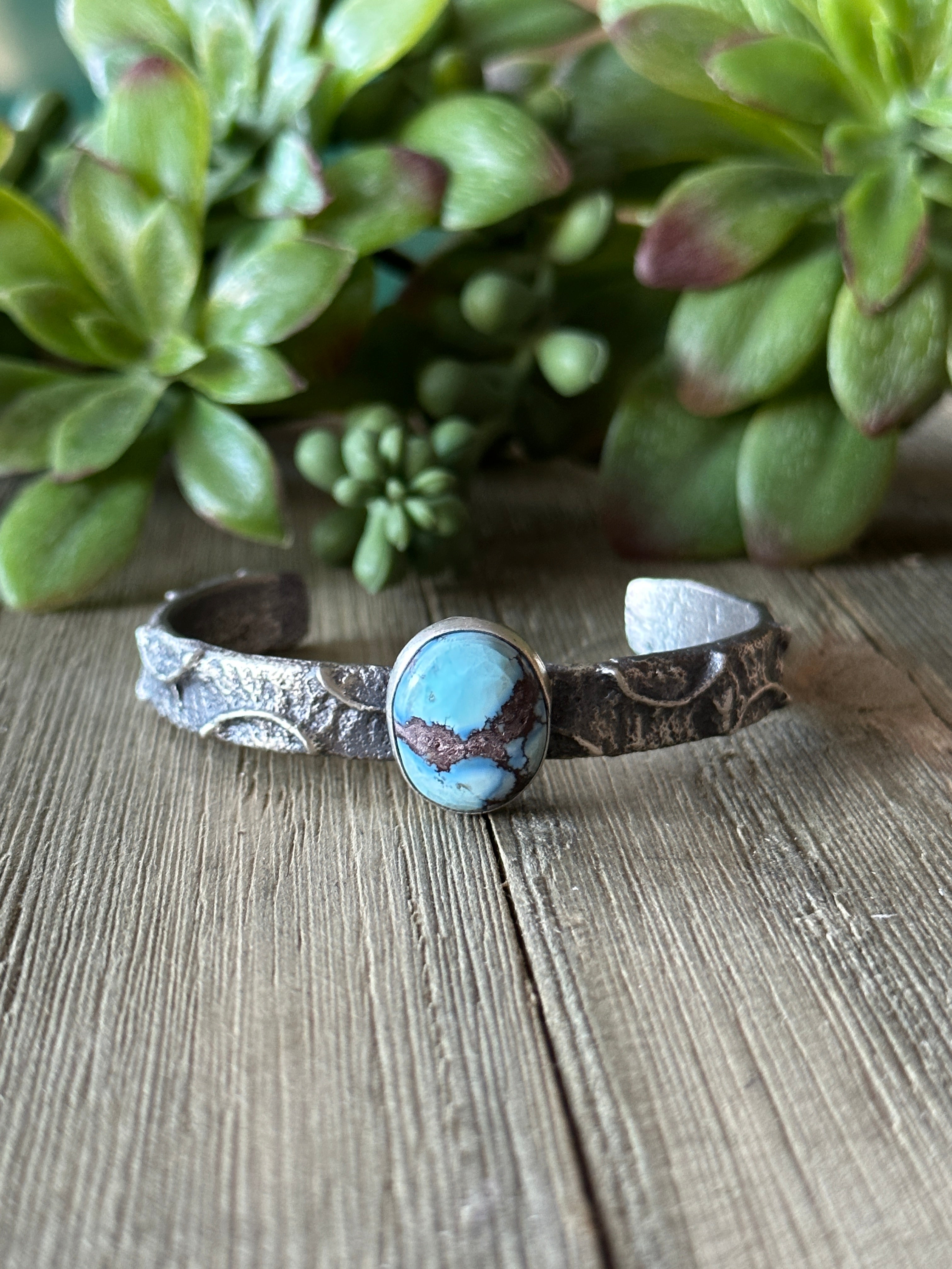 Navajo Made Golden Hills Turquoise & Sterling Silver Tufa Cast Cuff Bracelet