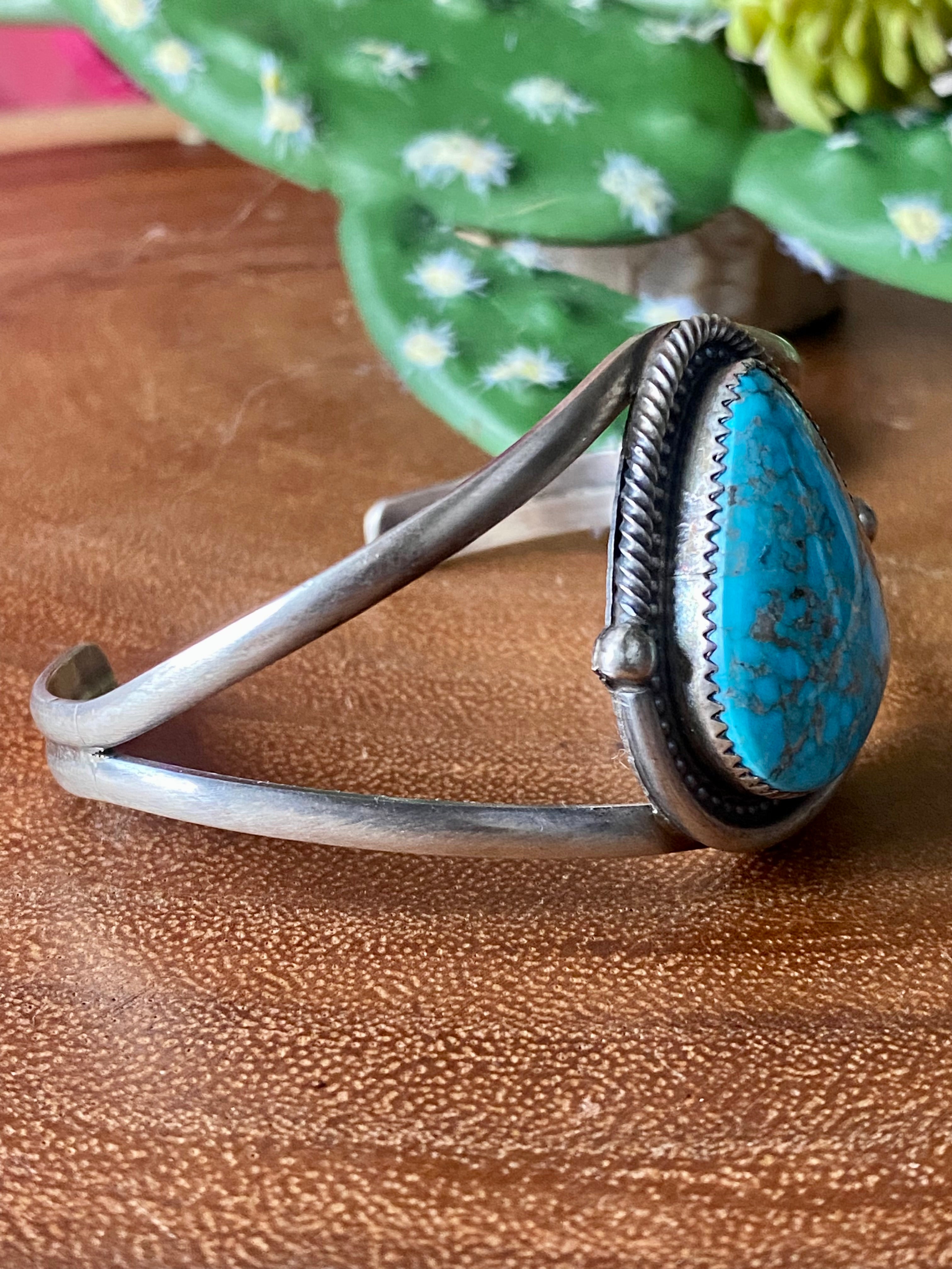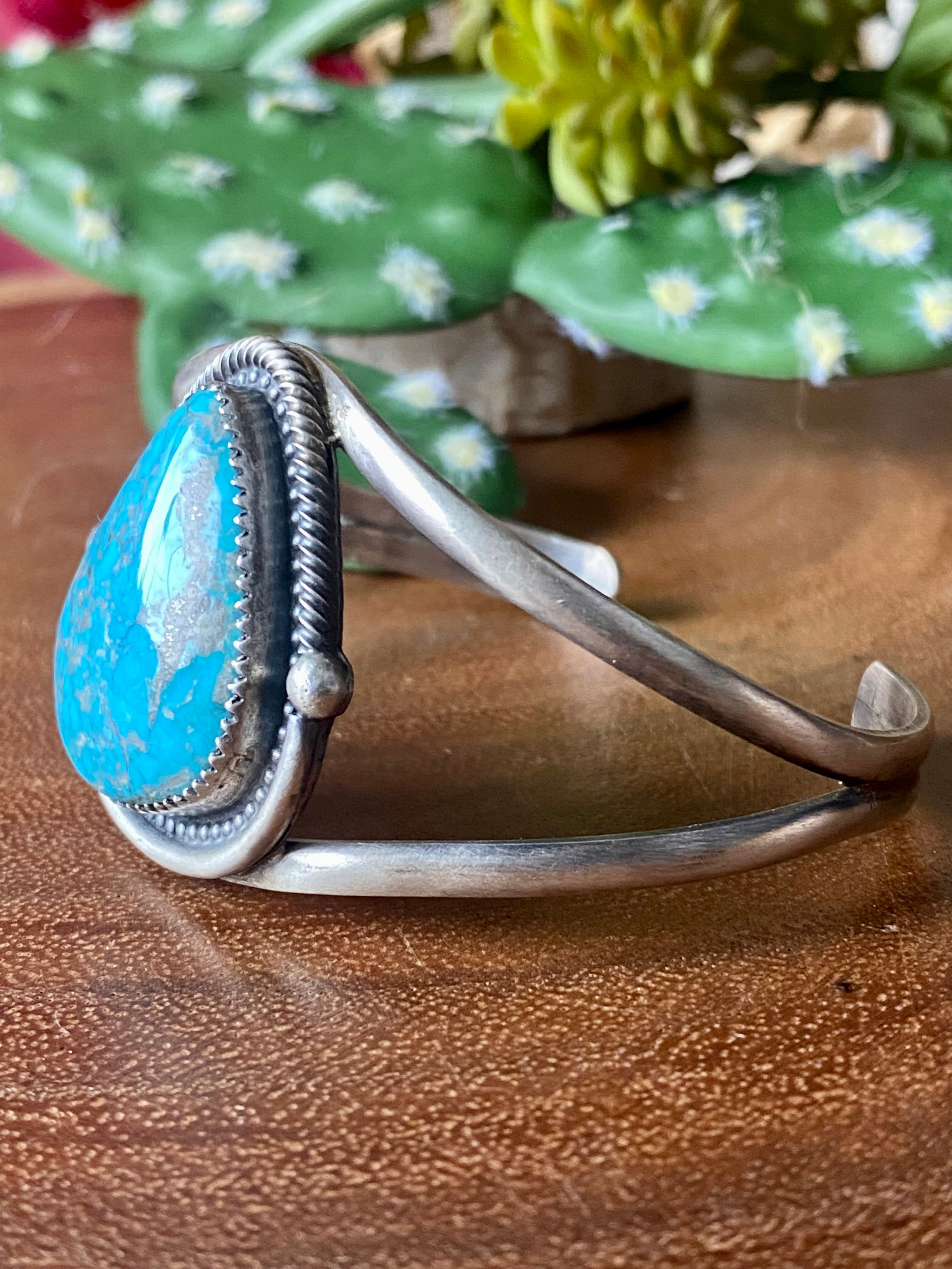 Navajo Made High Grade Kingman Turquoise & Sterling Silver Cuff Bracelet