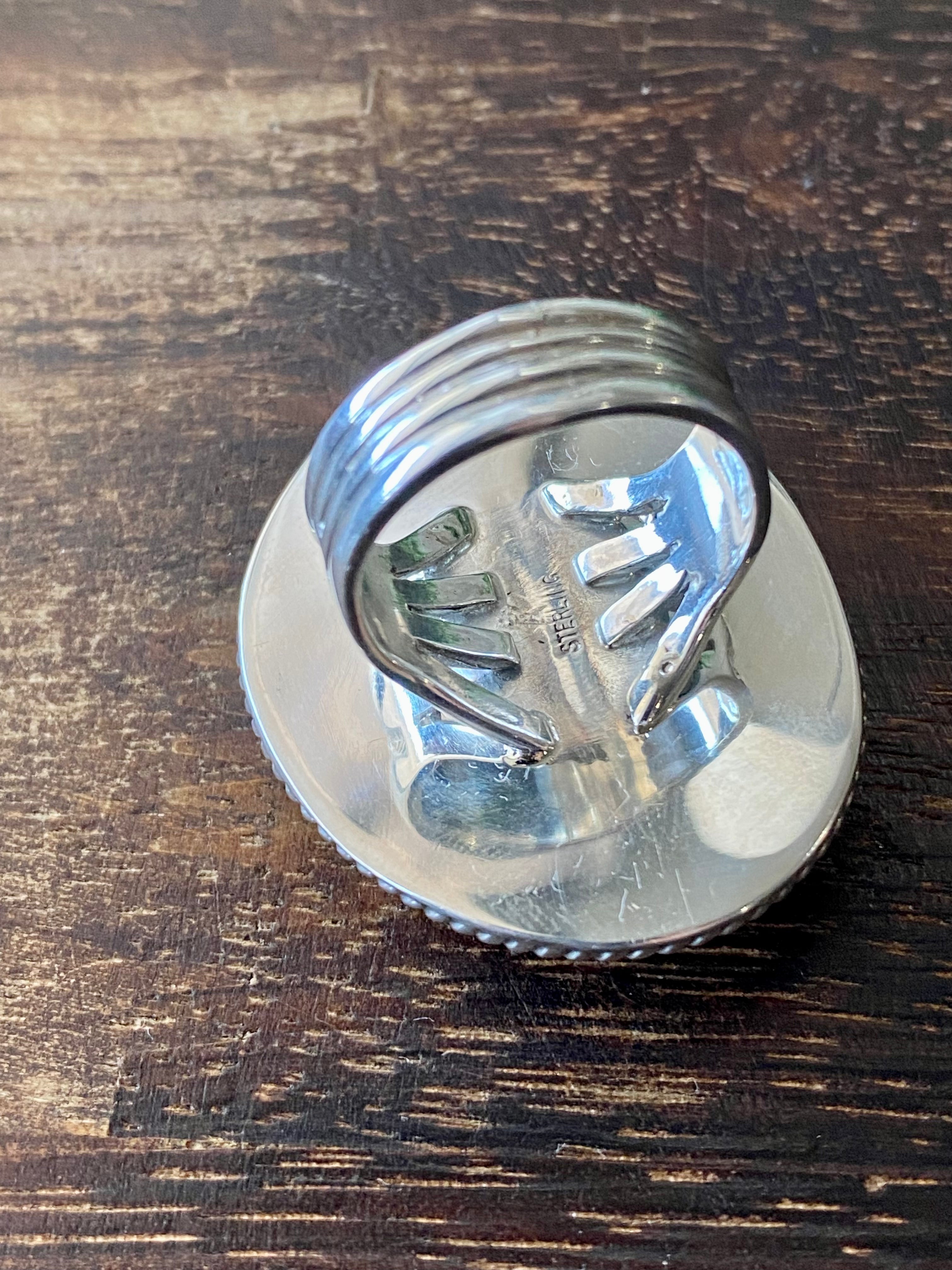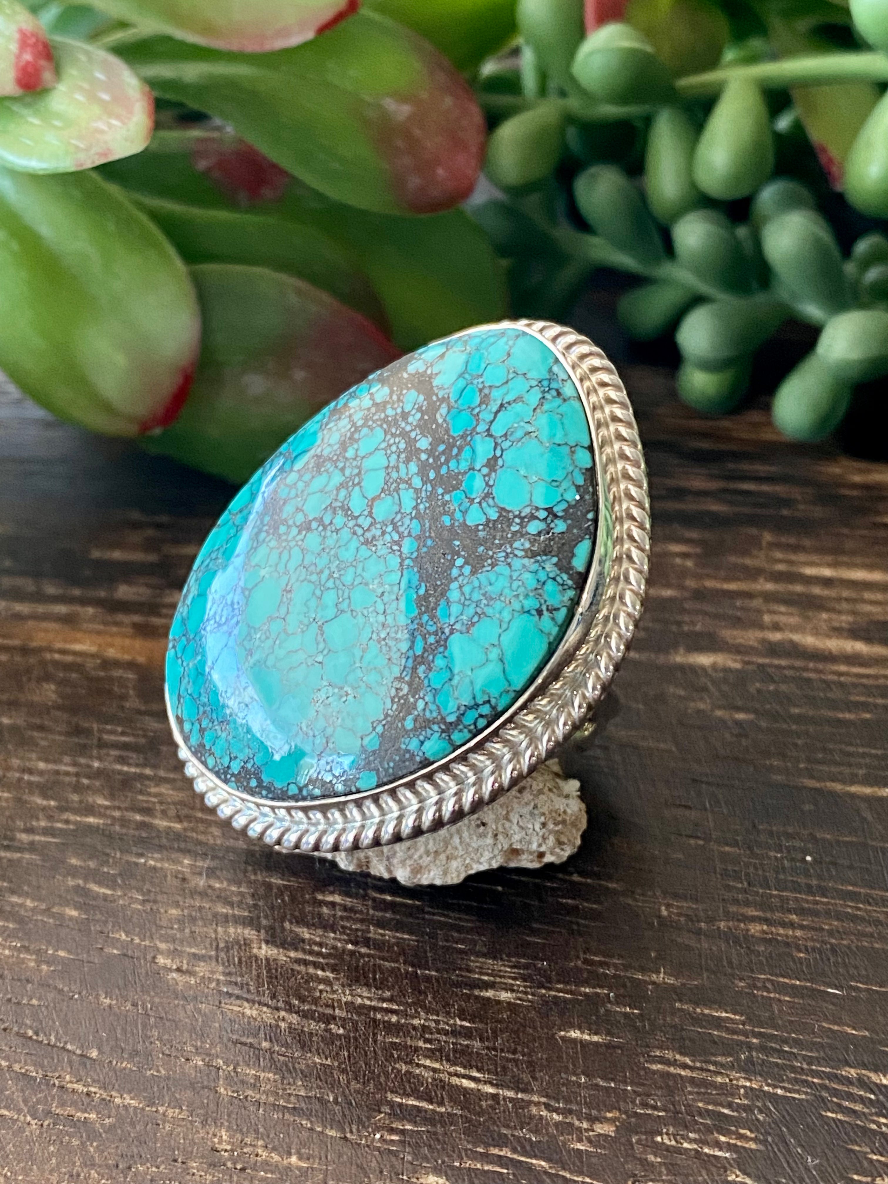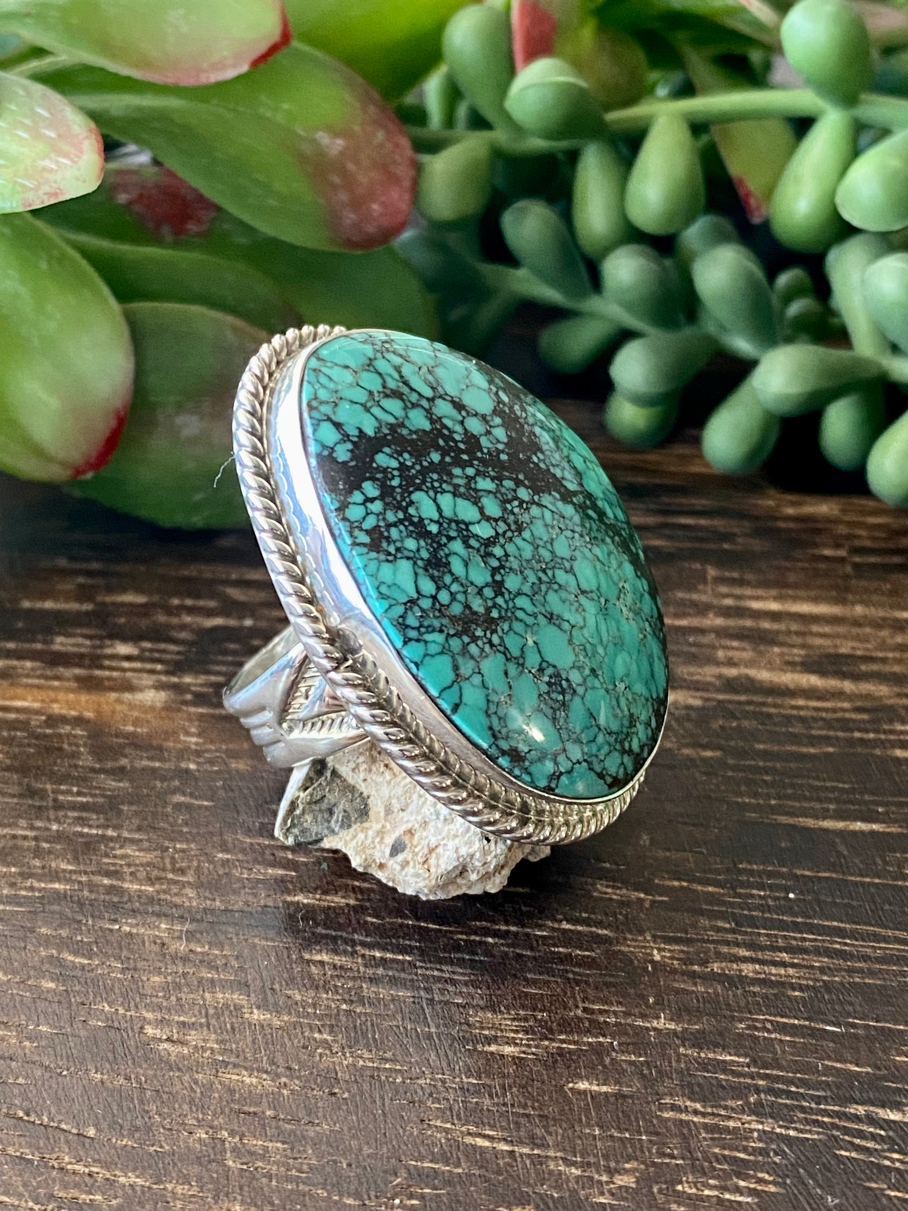 Navajo Made Hubei Turquoise & Sterling Silver Ring Size 10