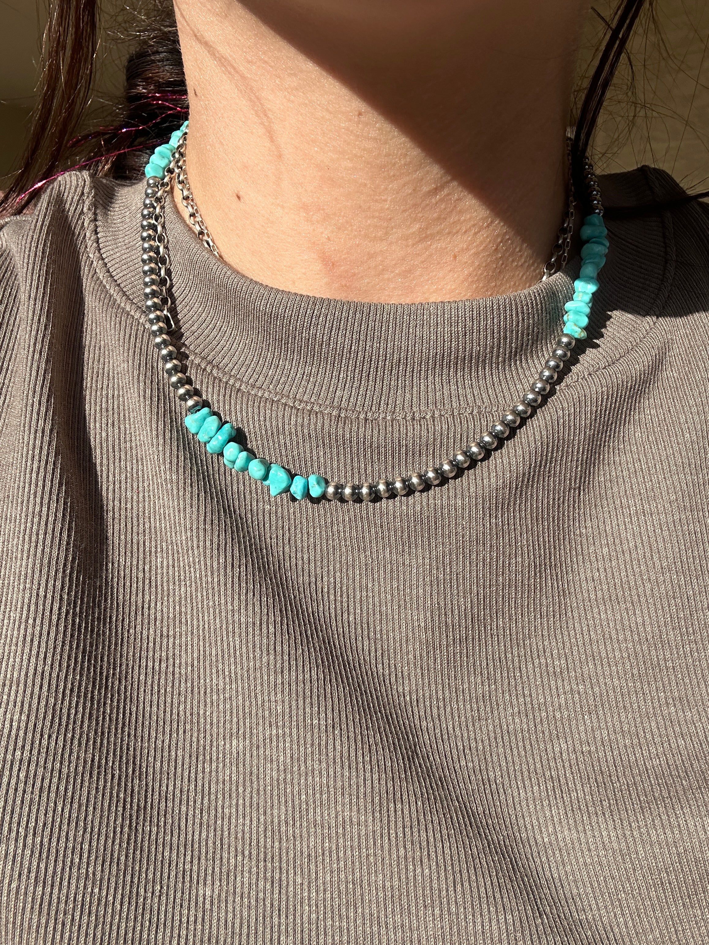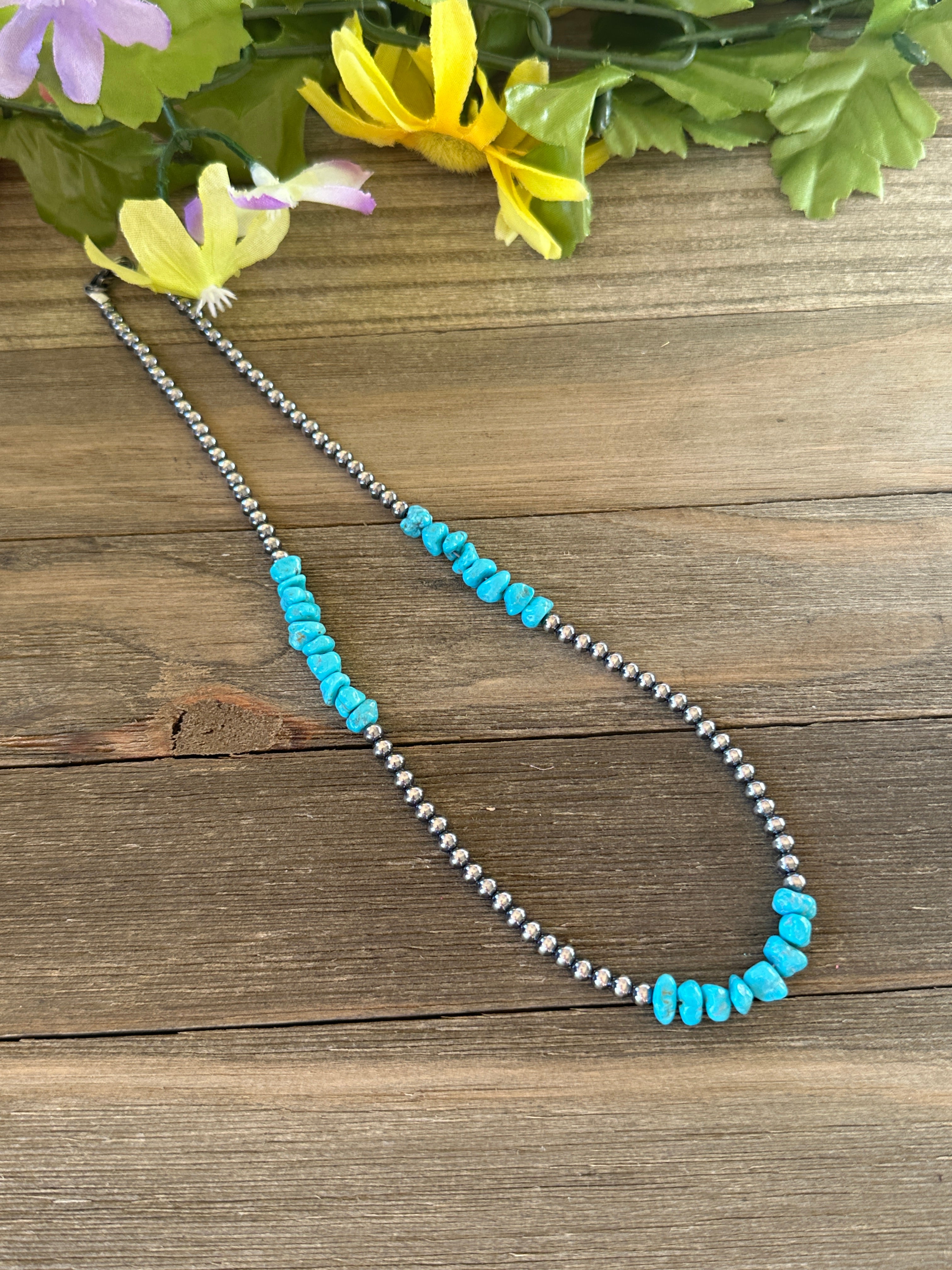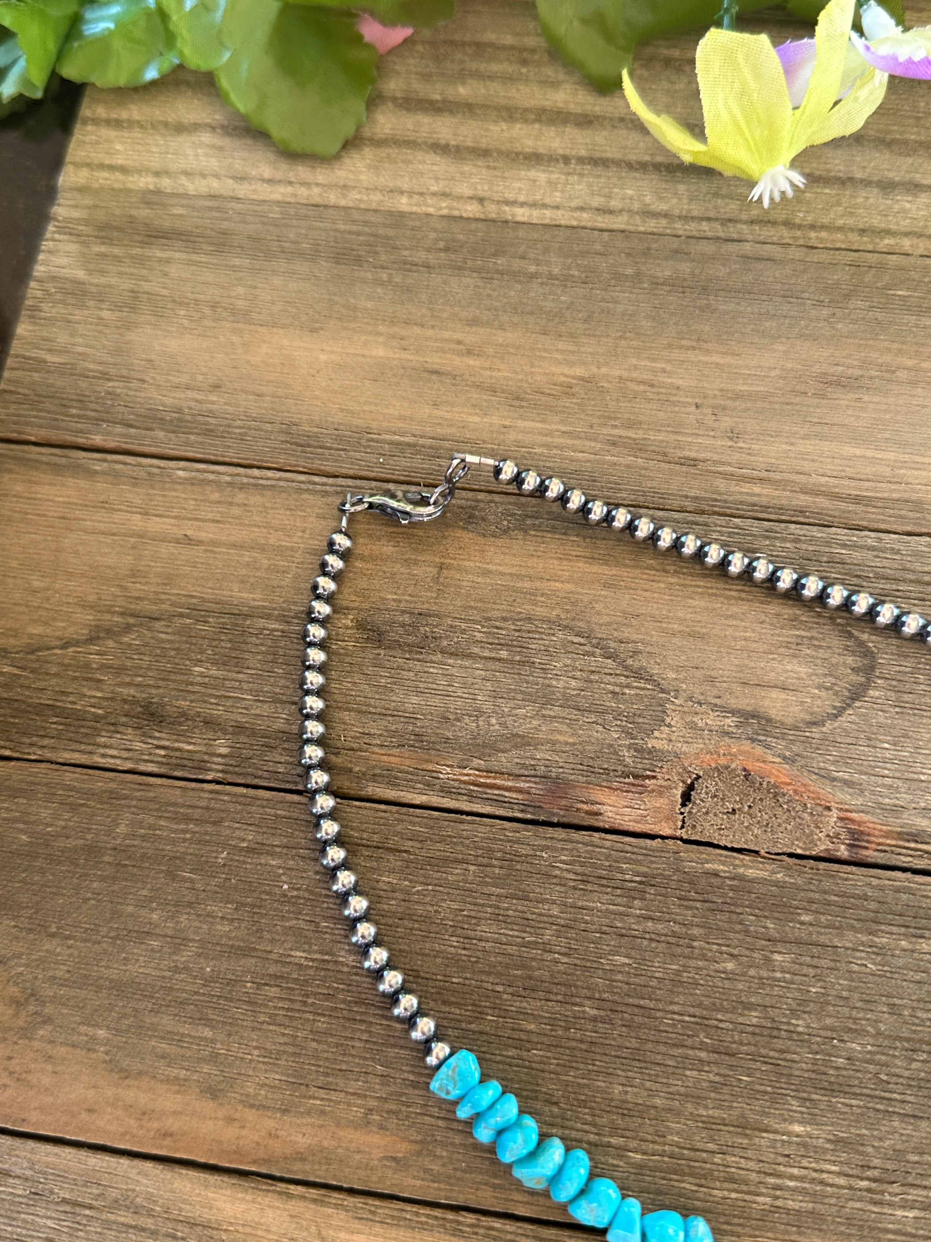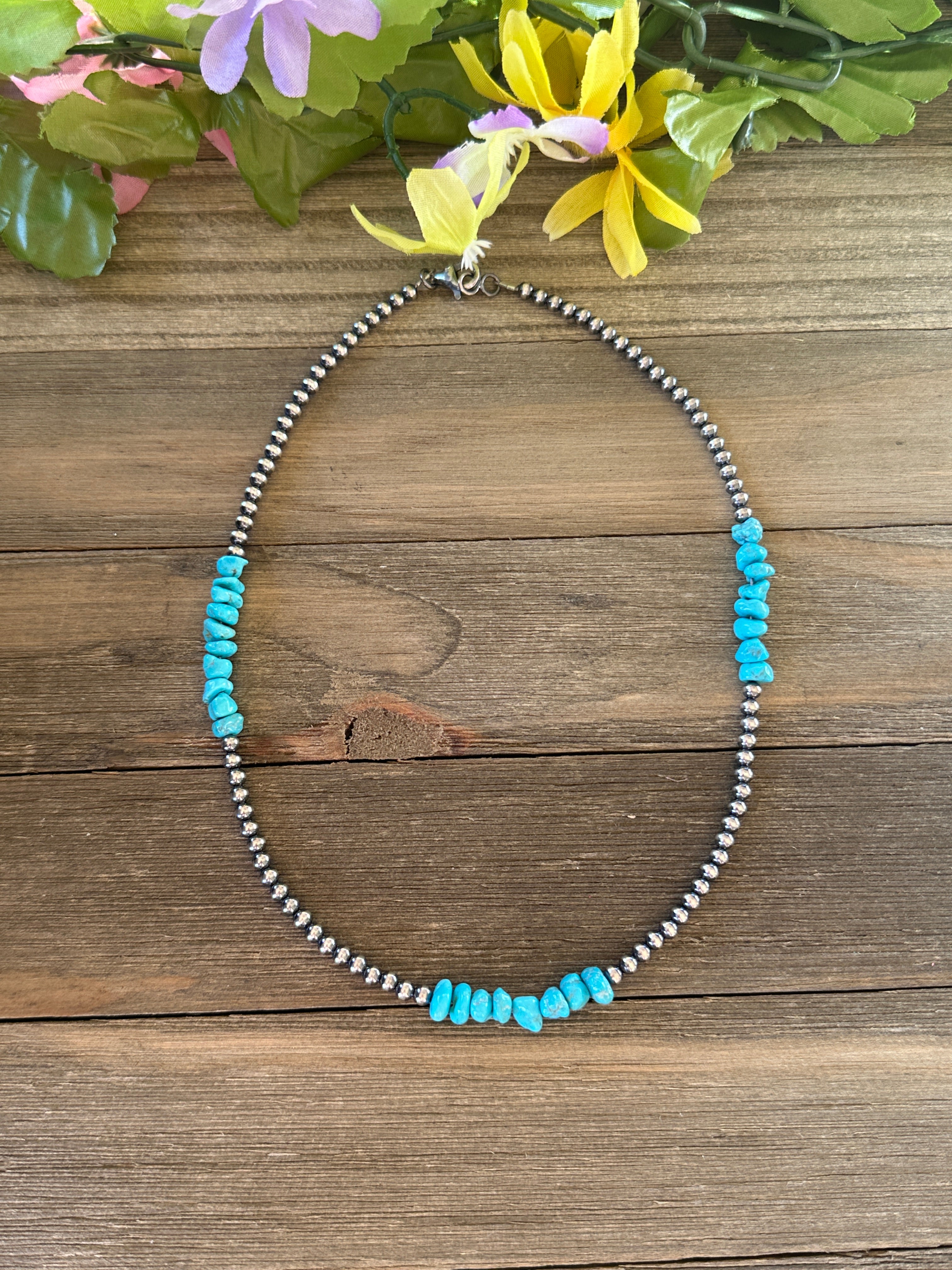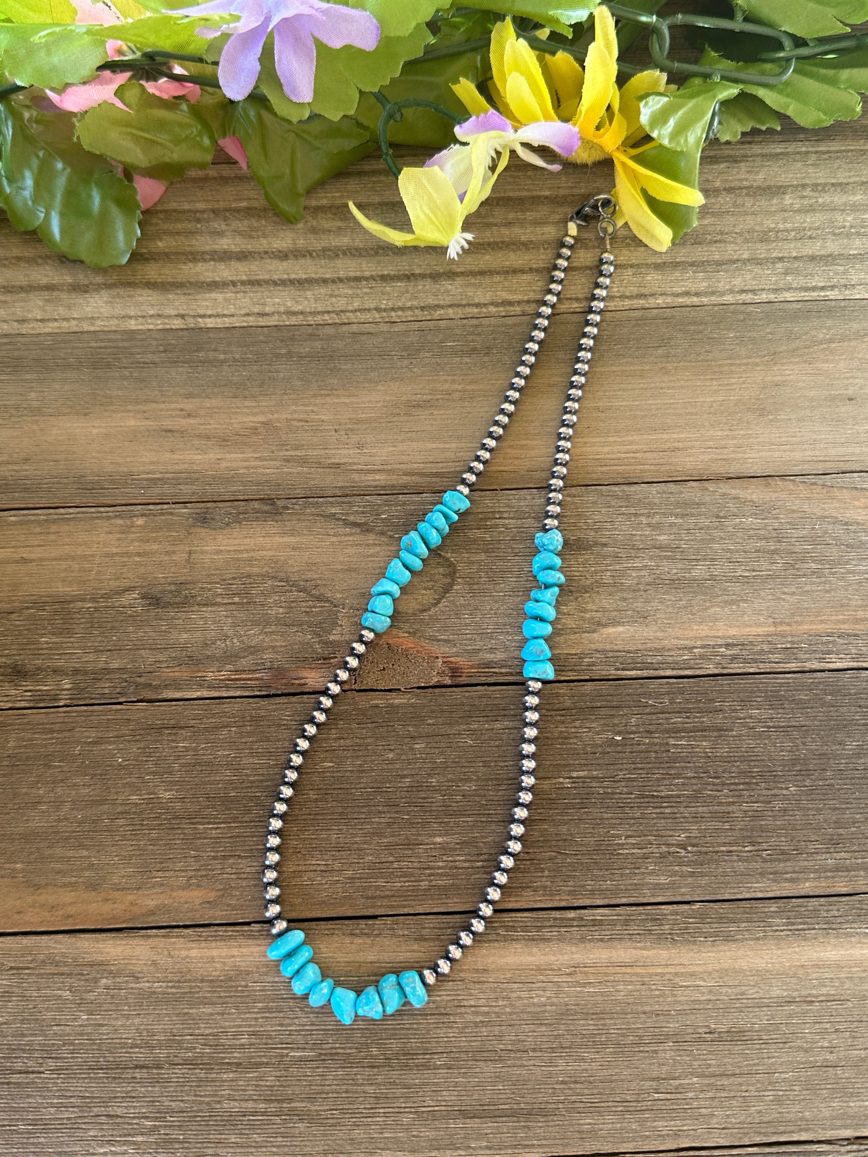 Navajo Made Kingman Turquoise & Sterling Silver 4 MM 16 Inch Pearl Necklace