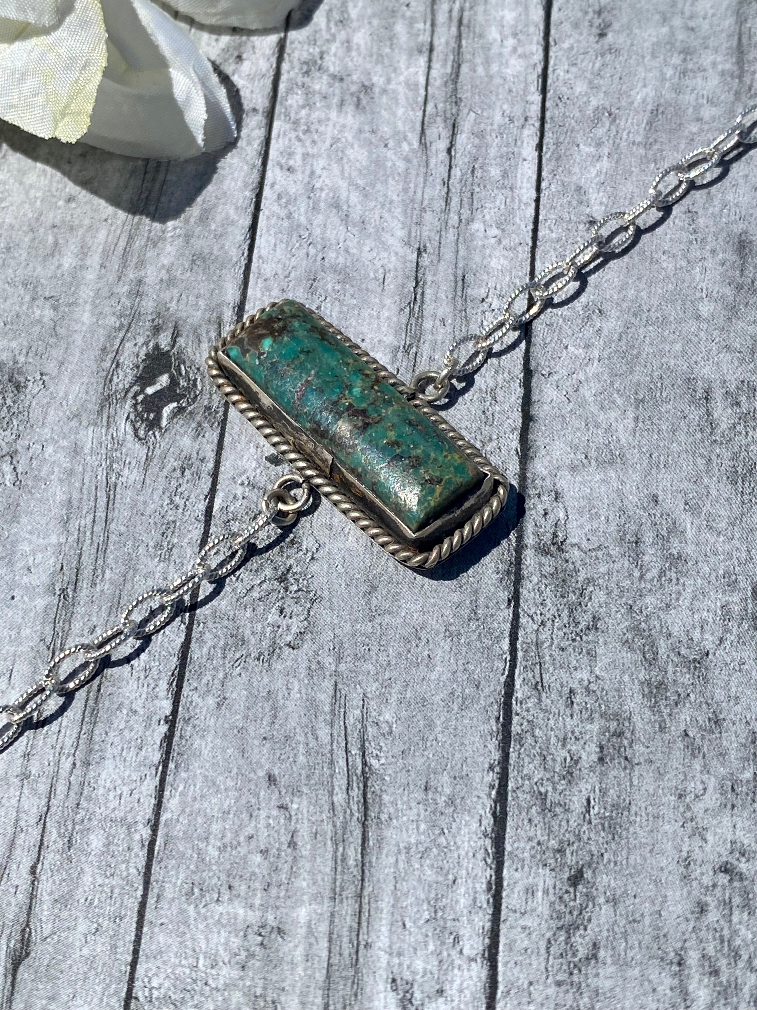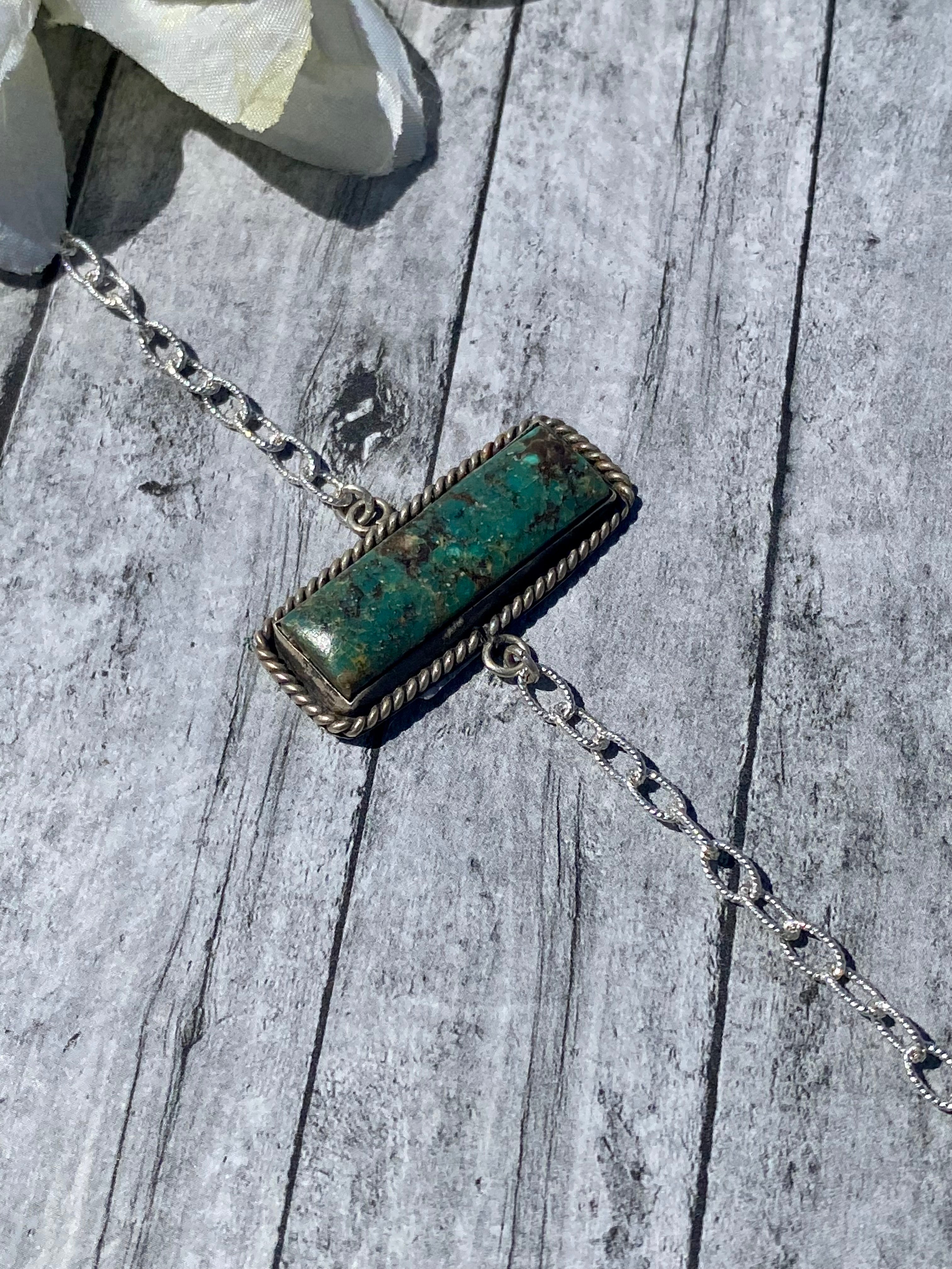 Navajo Made Kingman Turquoise & Sterling Silver Bar Link Bracelet