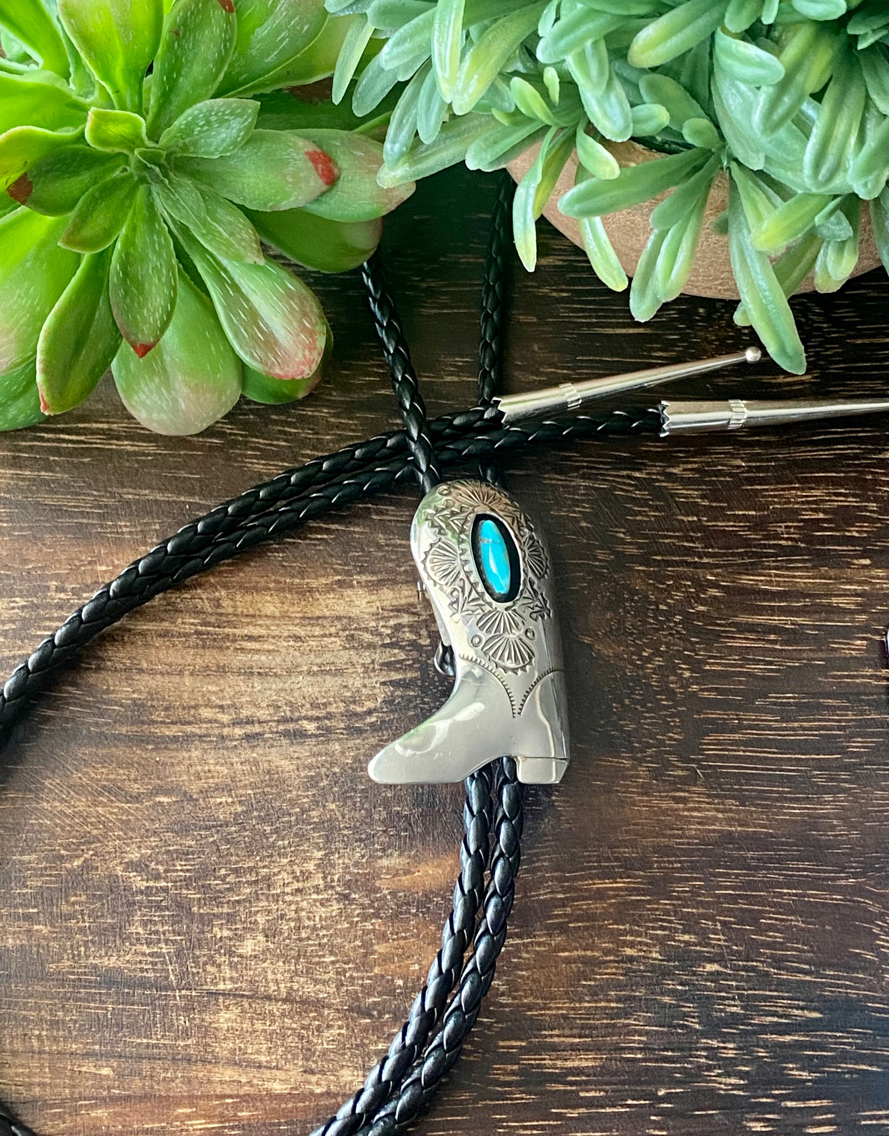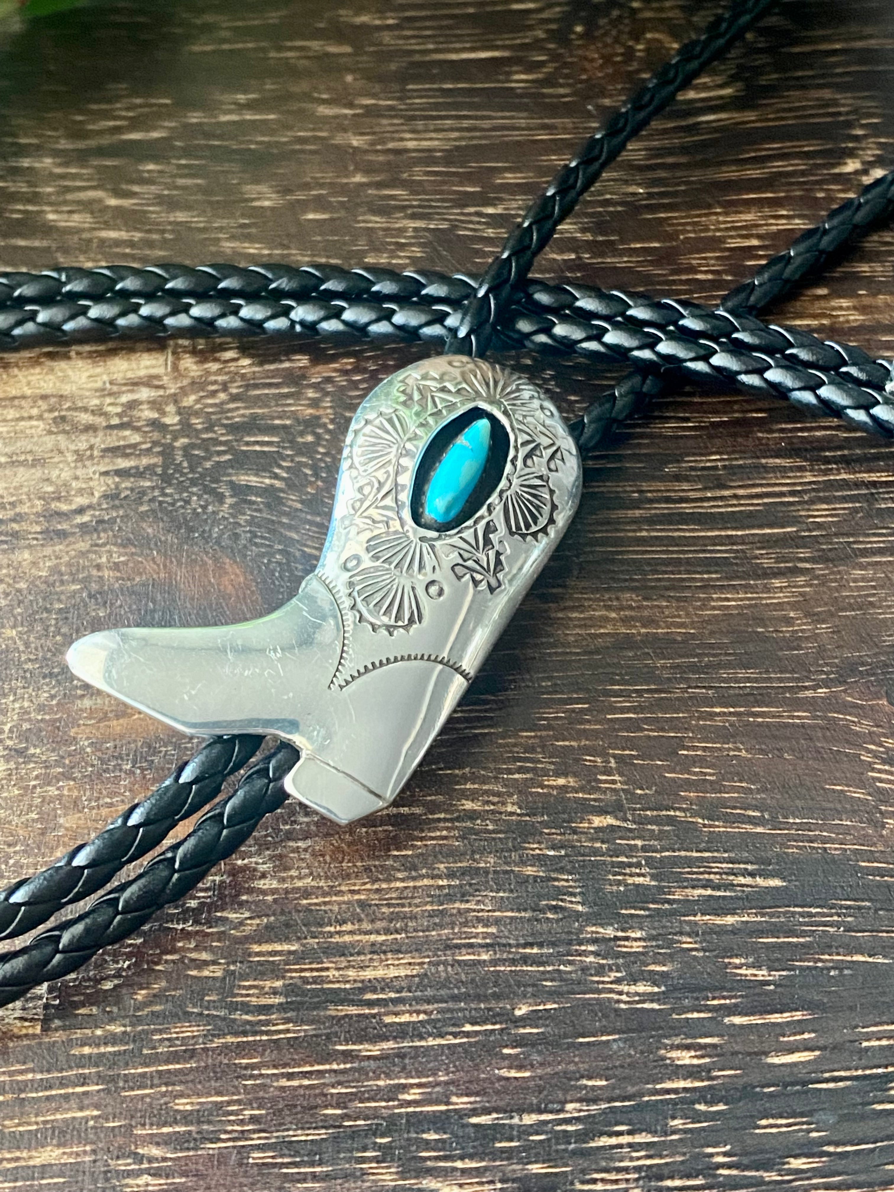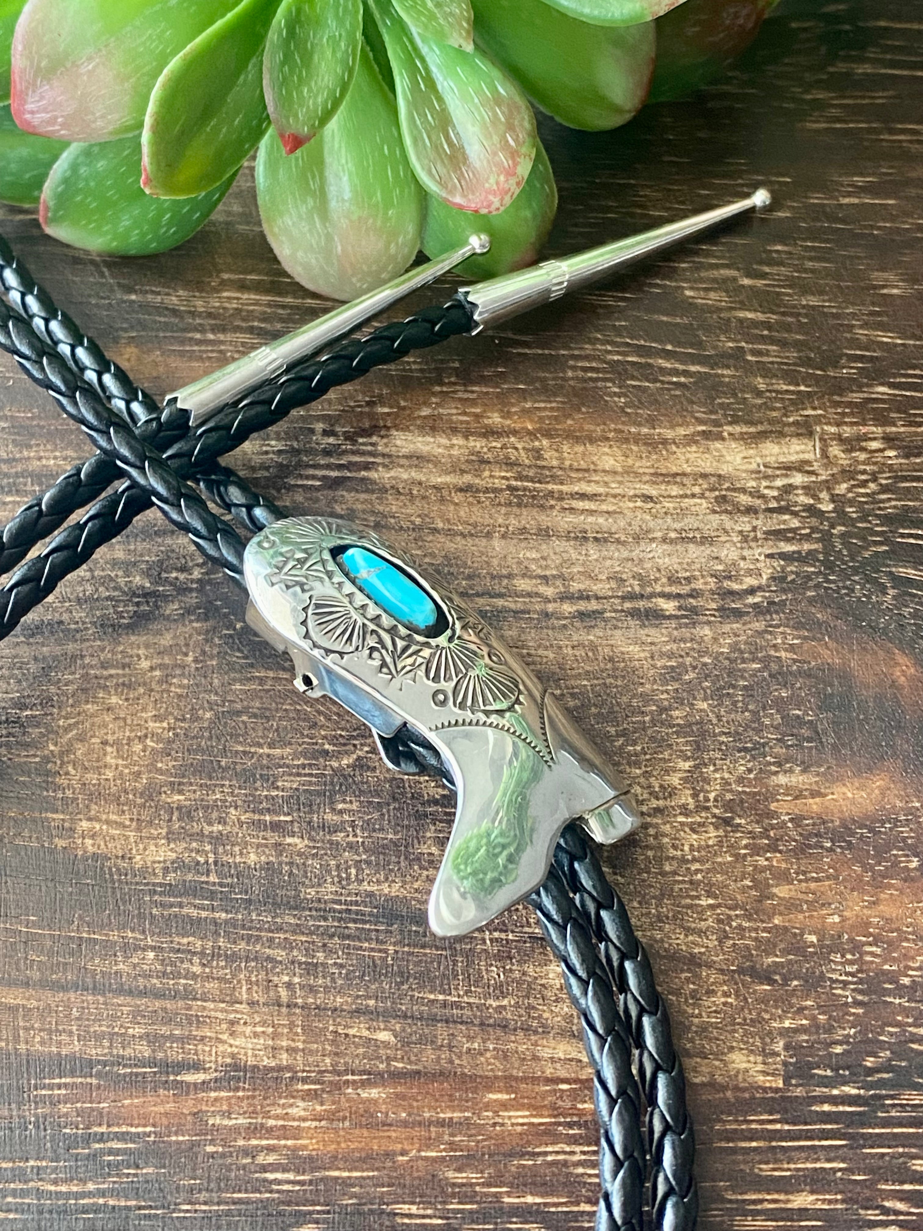 Navajo Made Kingman Turquoise & Sterling Silver Bolo Tie