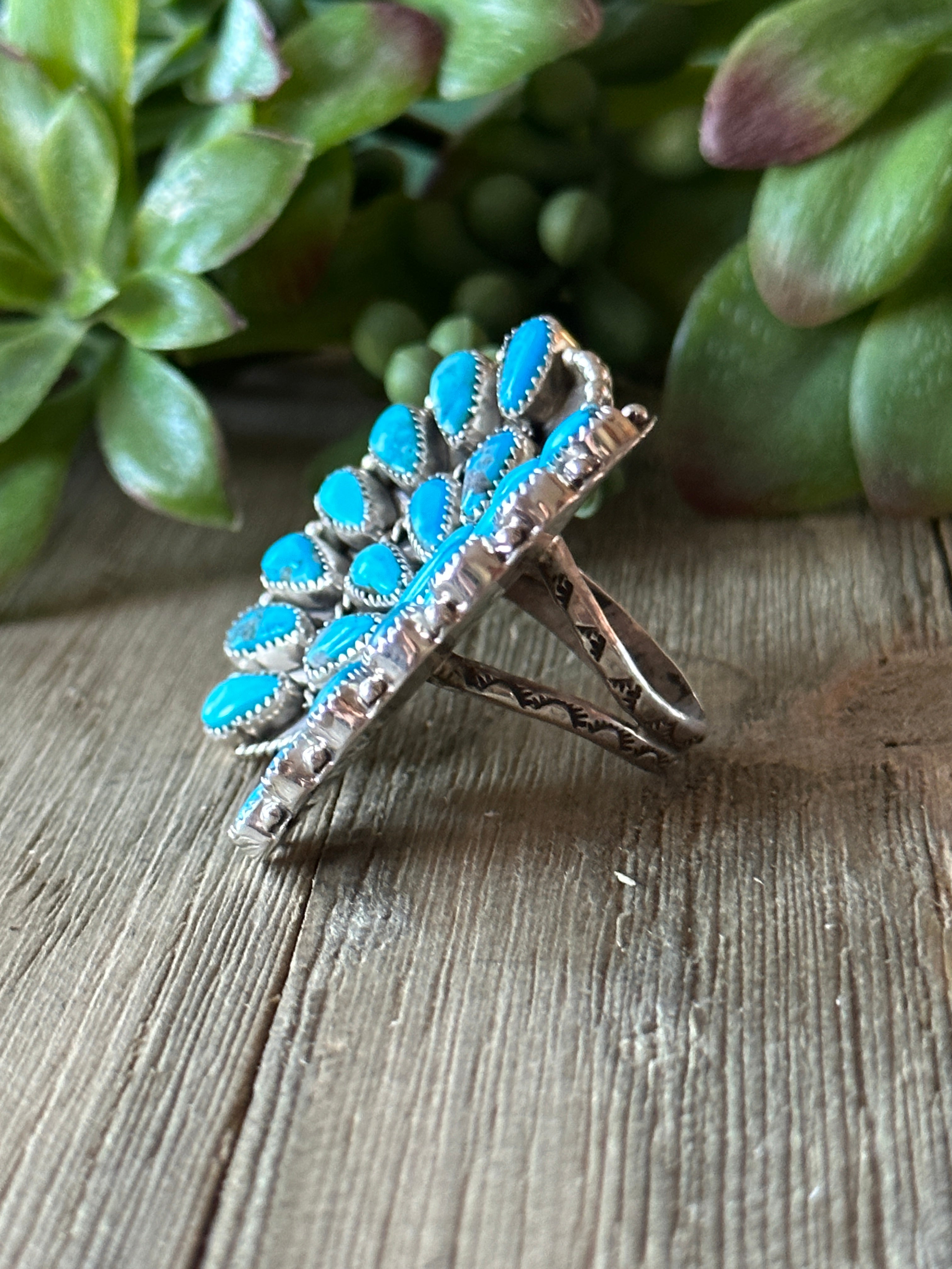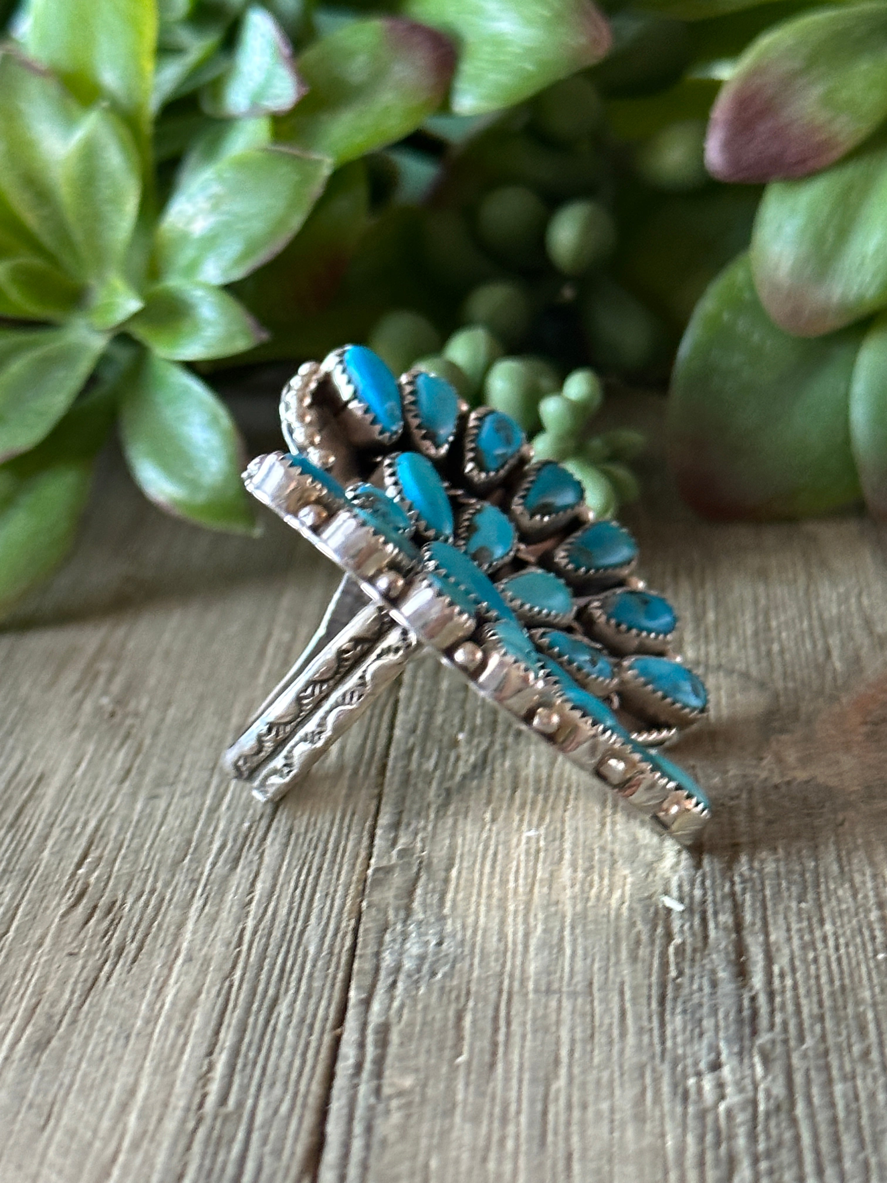 Navajo Made Kingman Turquoise & Sterling Silver Butterfly Cluster Adjustable Ring