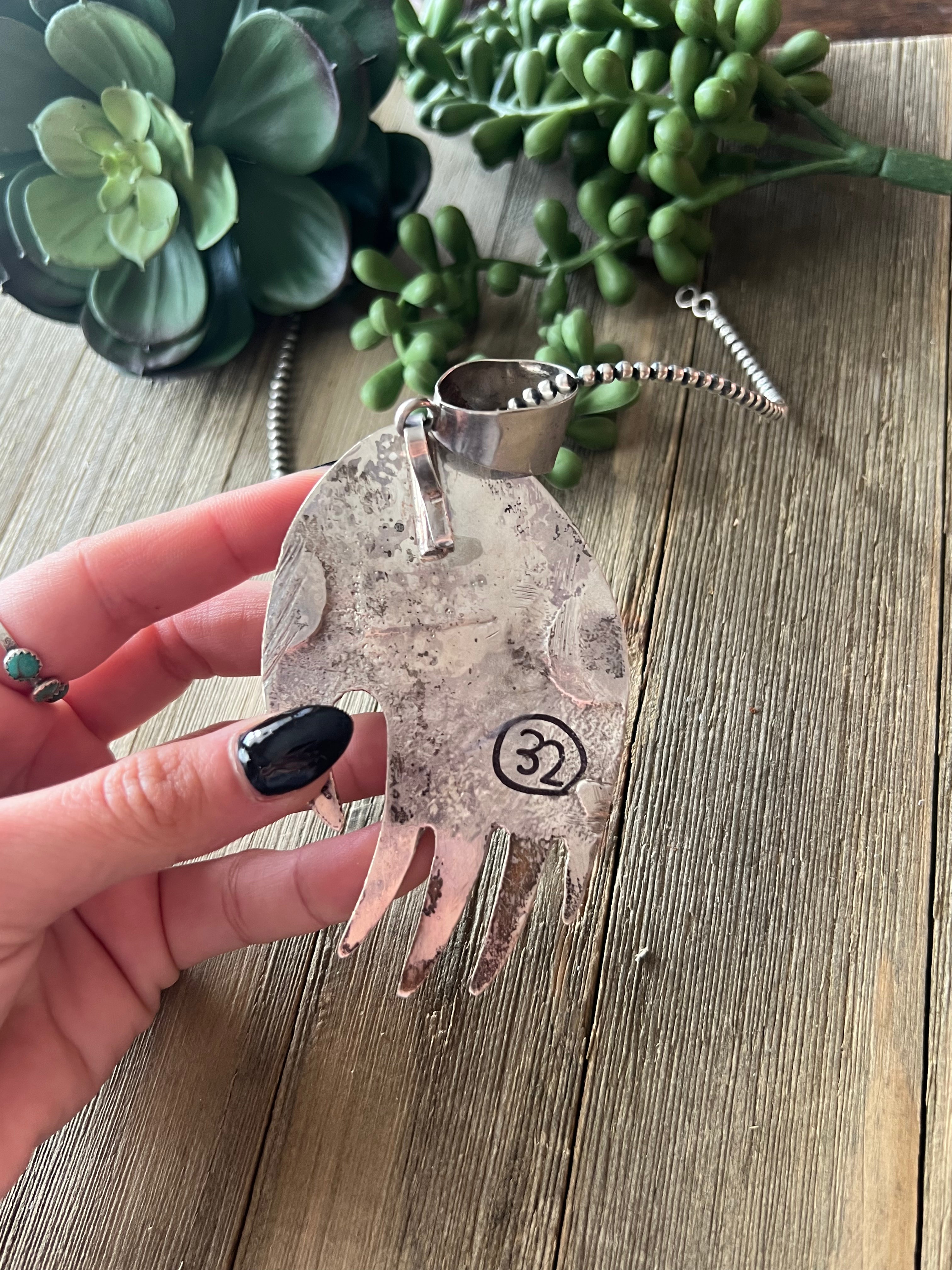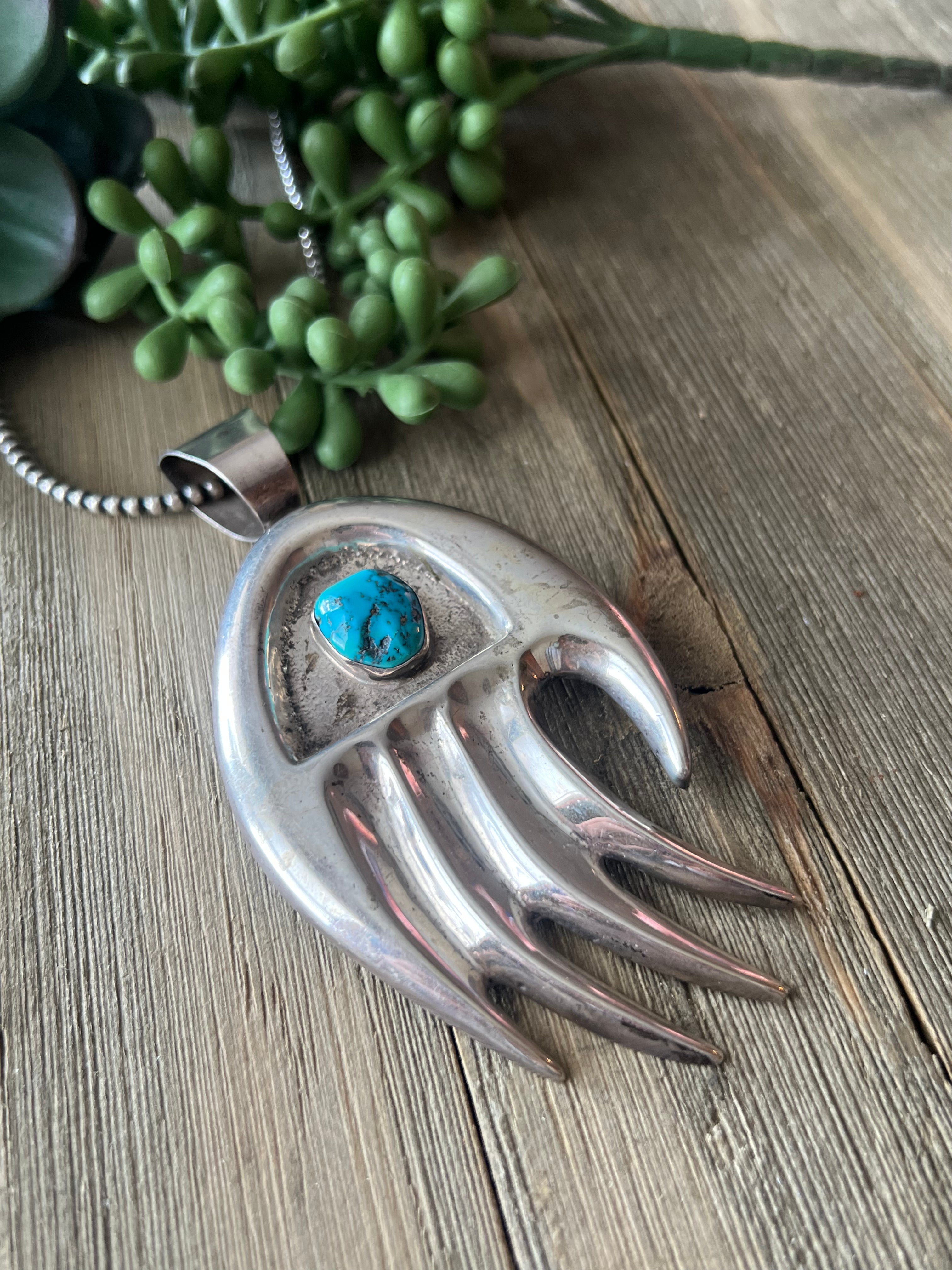 Navajo Made Kingman Turquoise & Sterling Silver Claw Pendant. It measures 4 1/2 inches long and 2 1/4 inches wide. Pendant Only!!