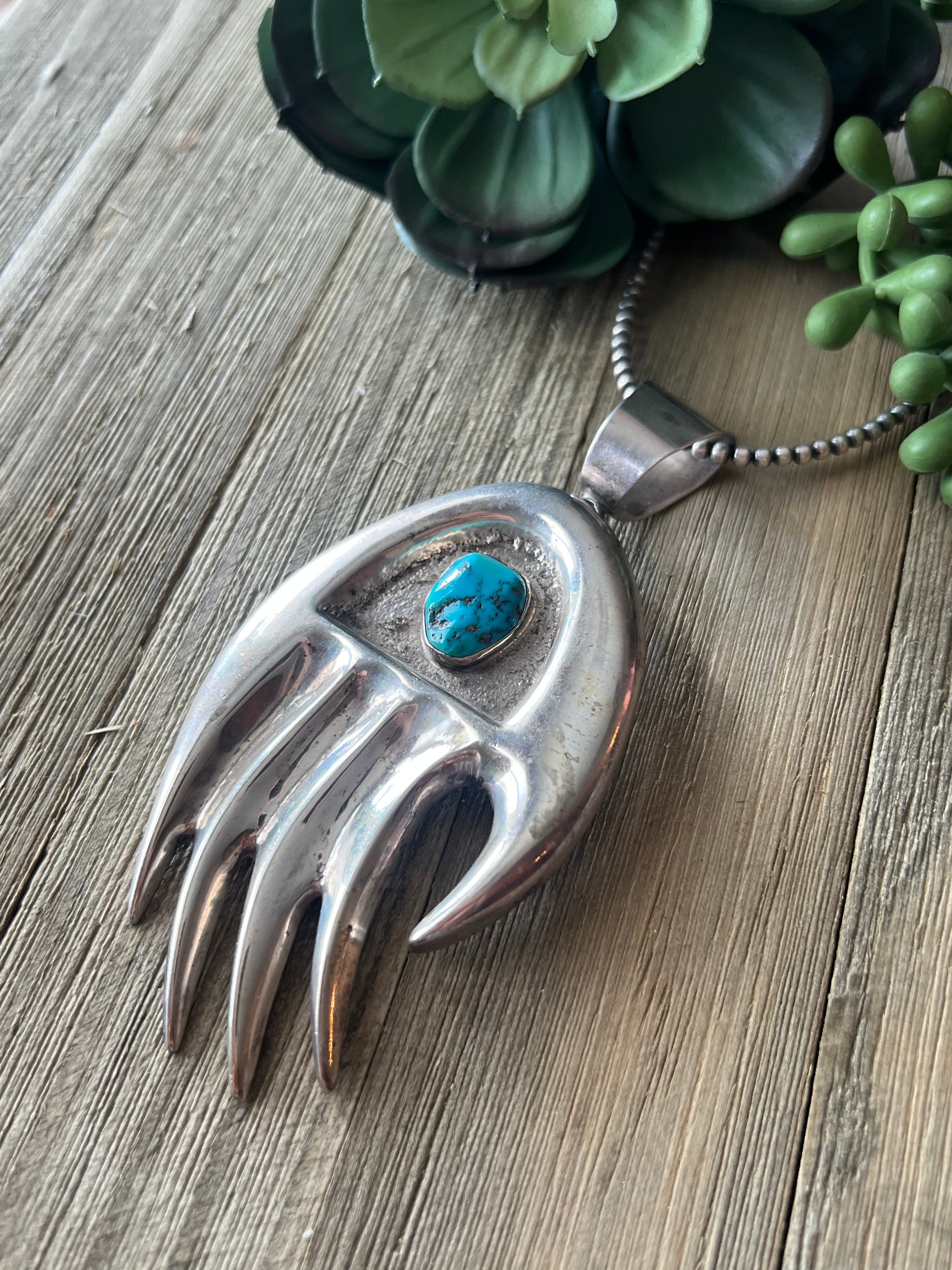 Navajo Made Kingman Turquoise & Sterling Silver Claw Pendant