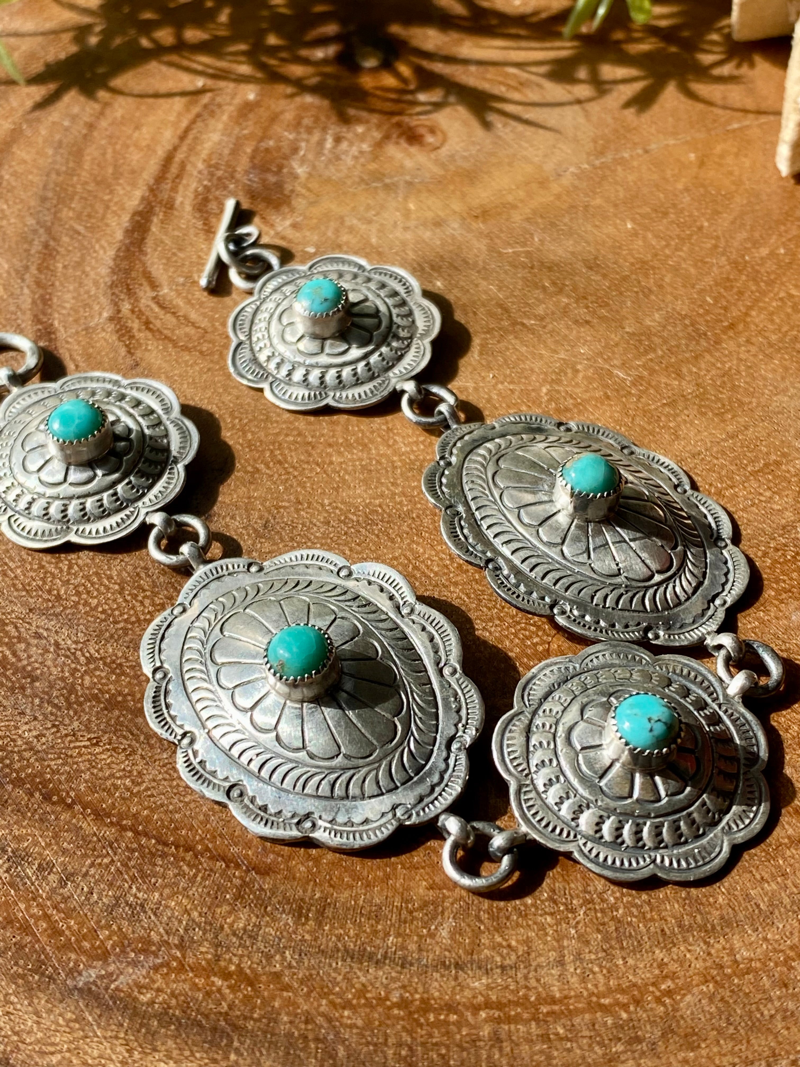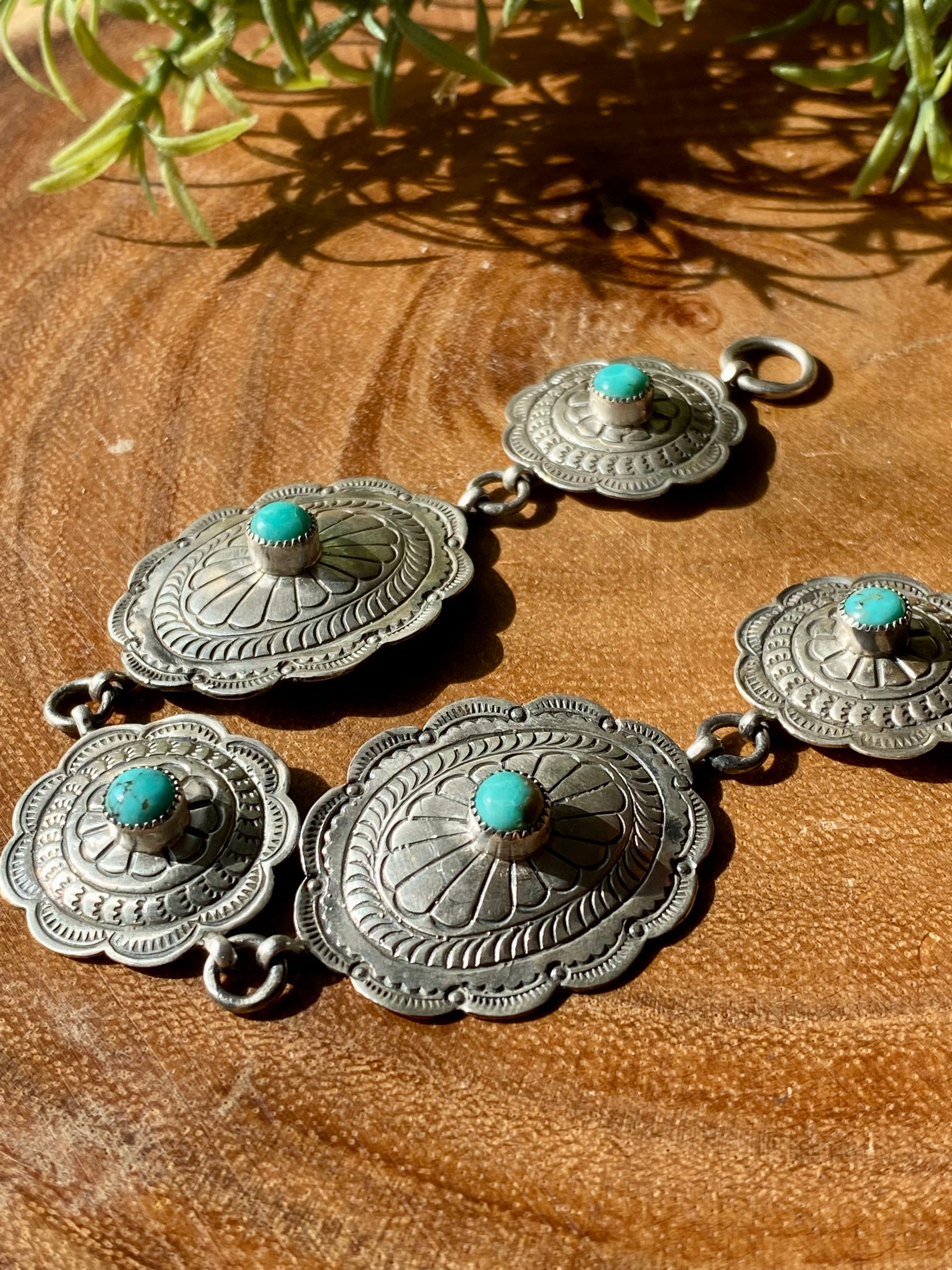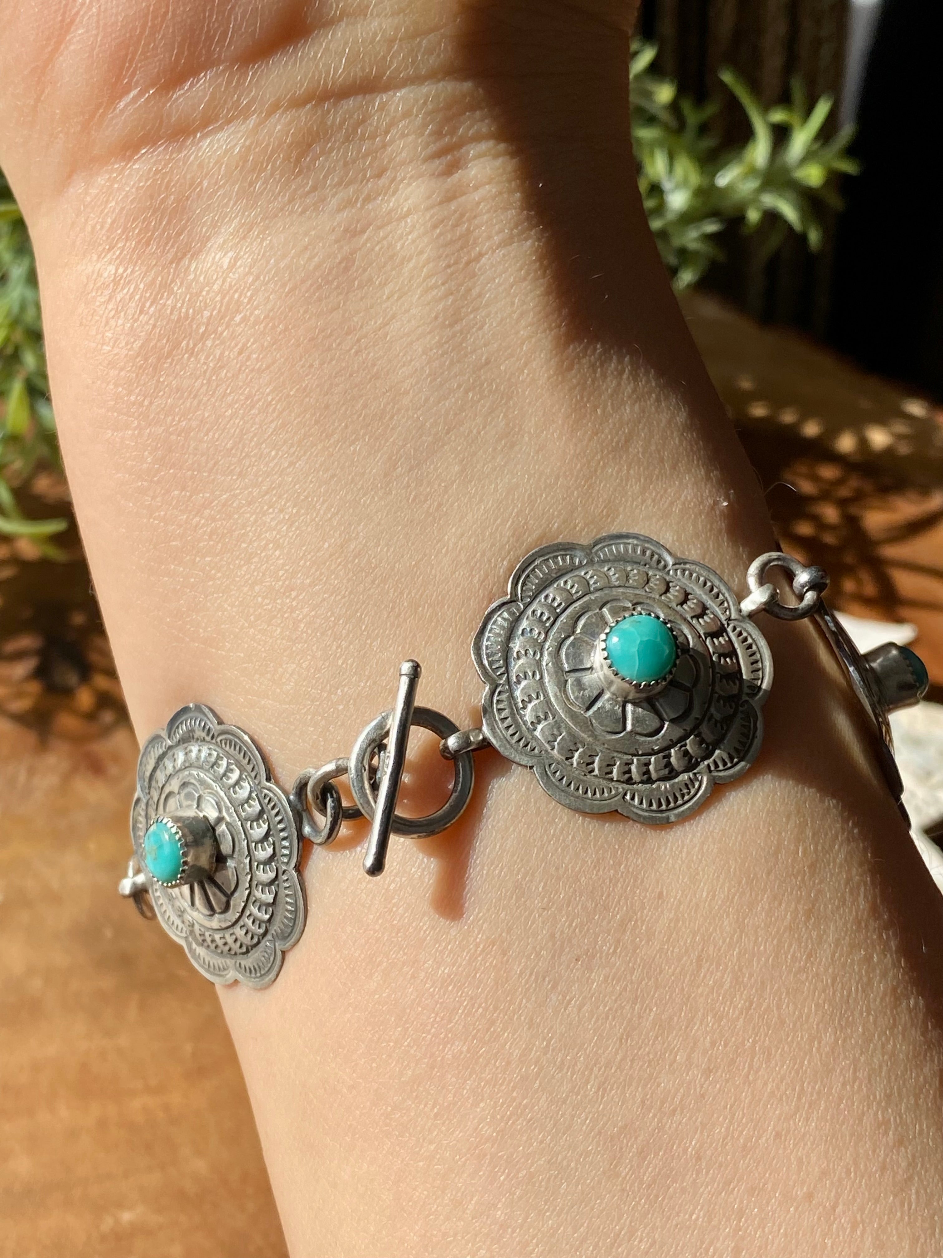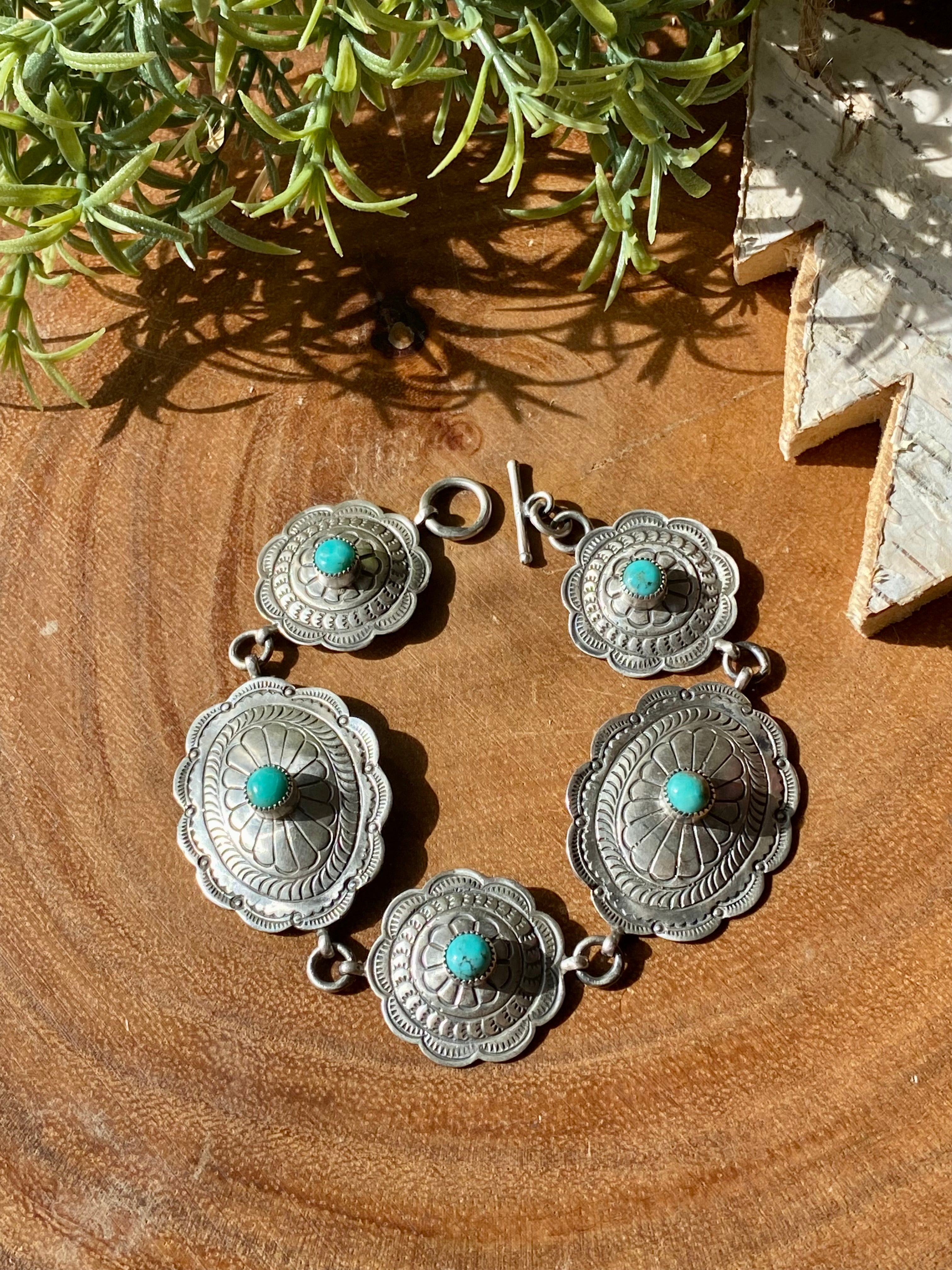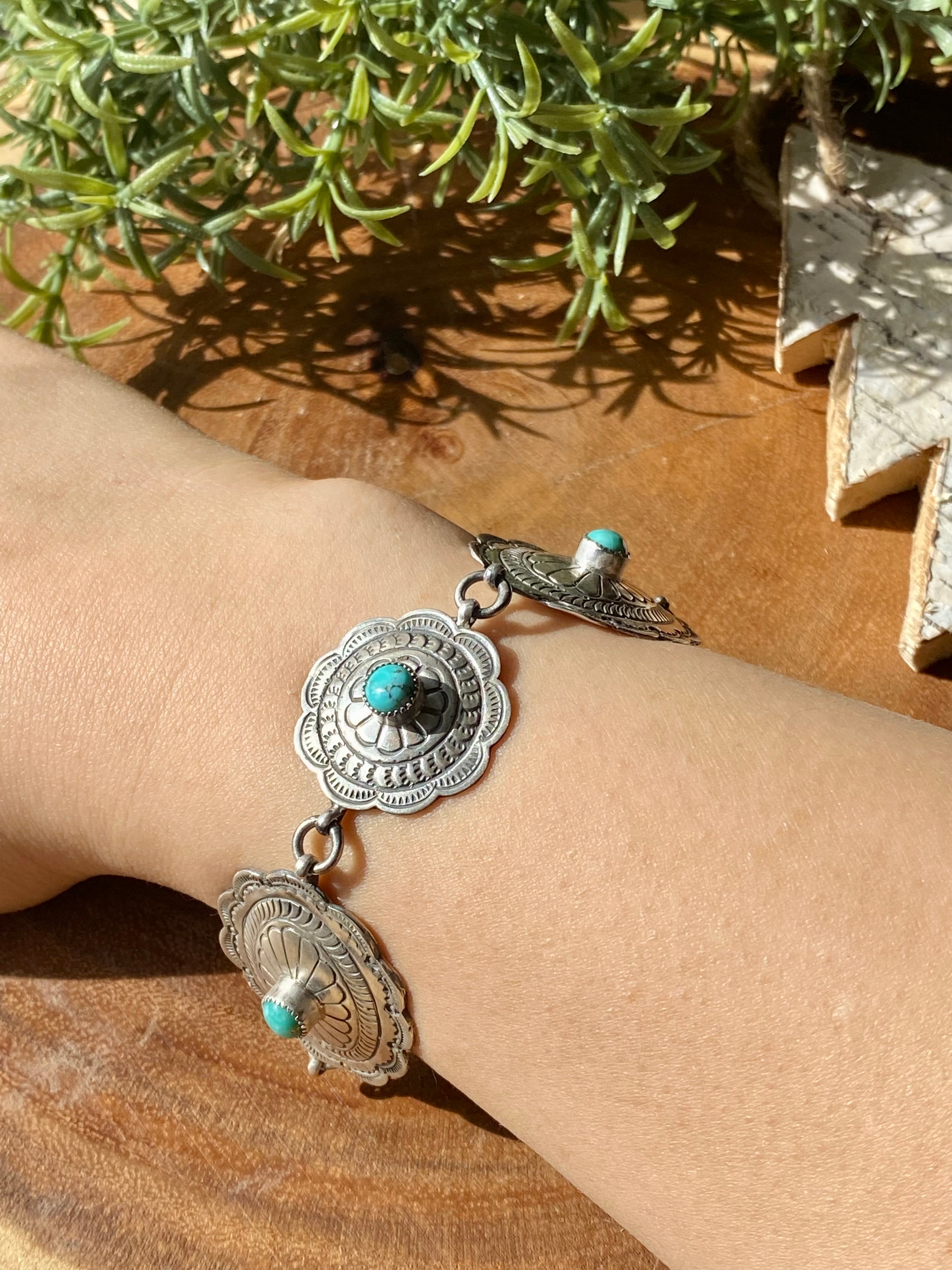 Navajo Made Kingman Turquoise & Sterling Silver Concho Link Bracelet