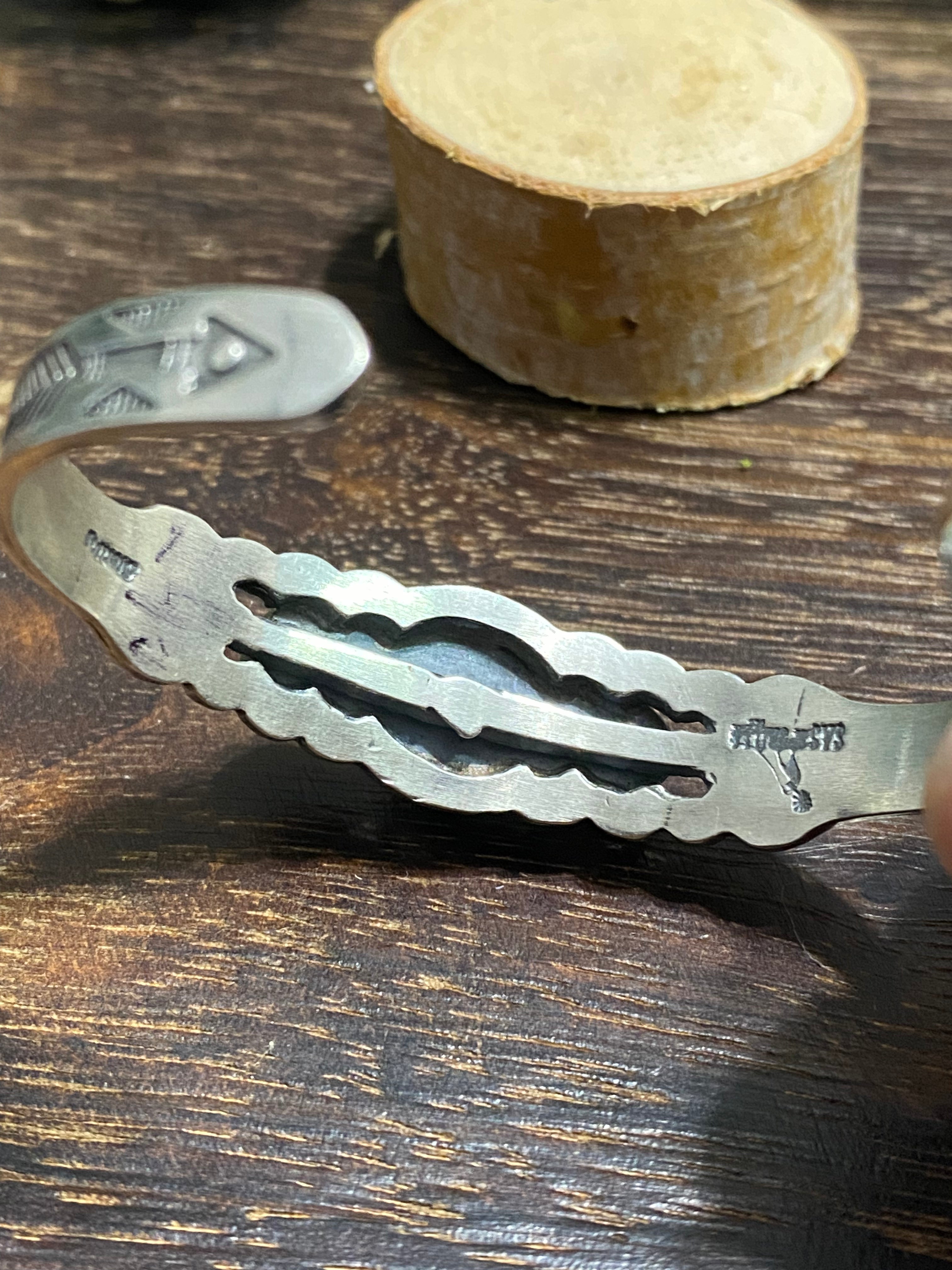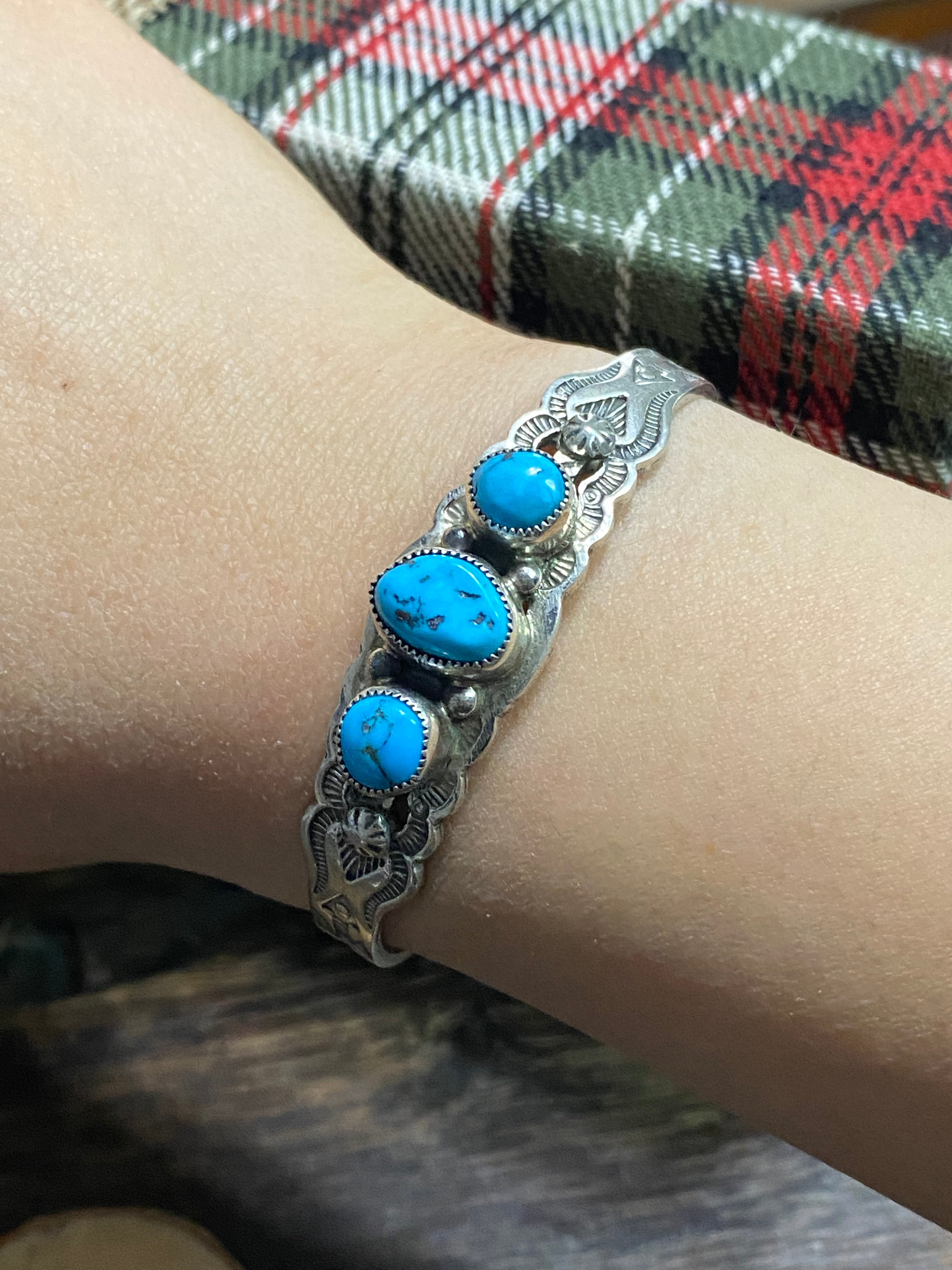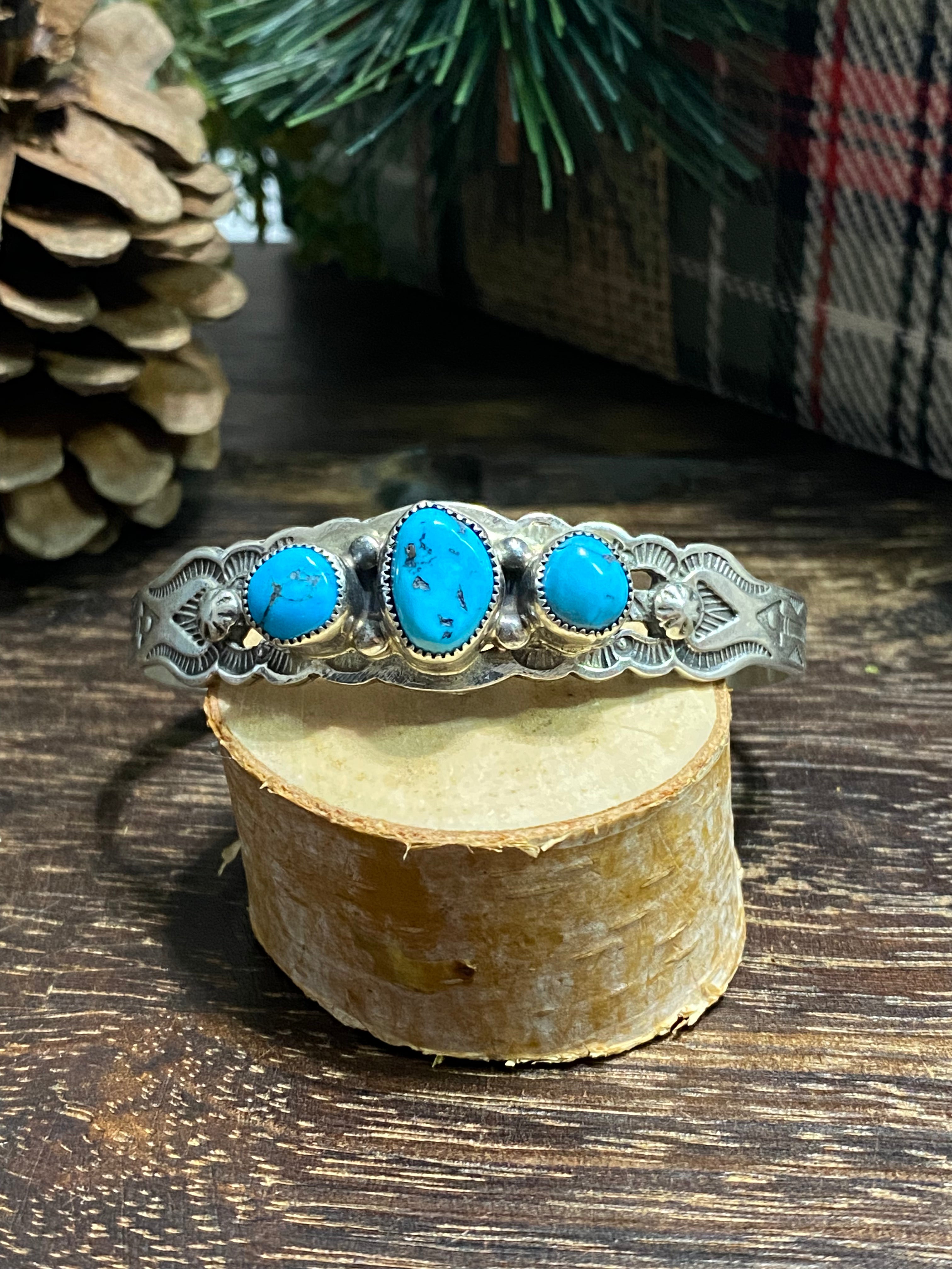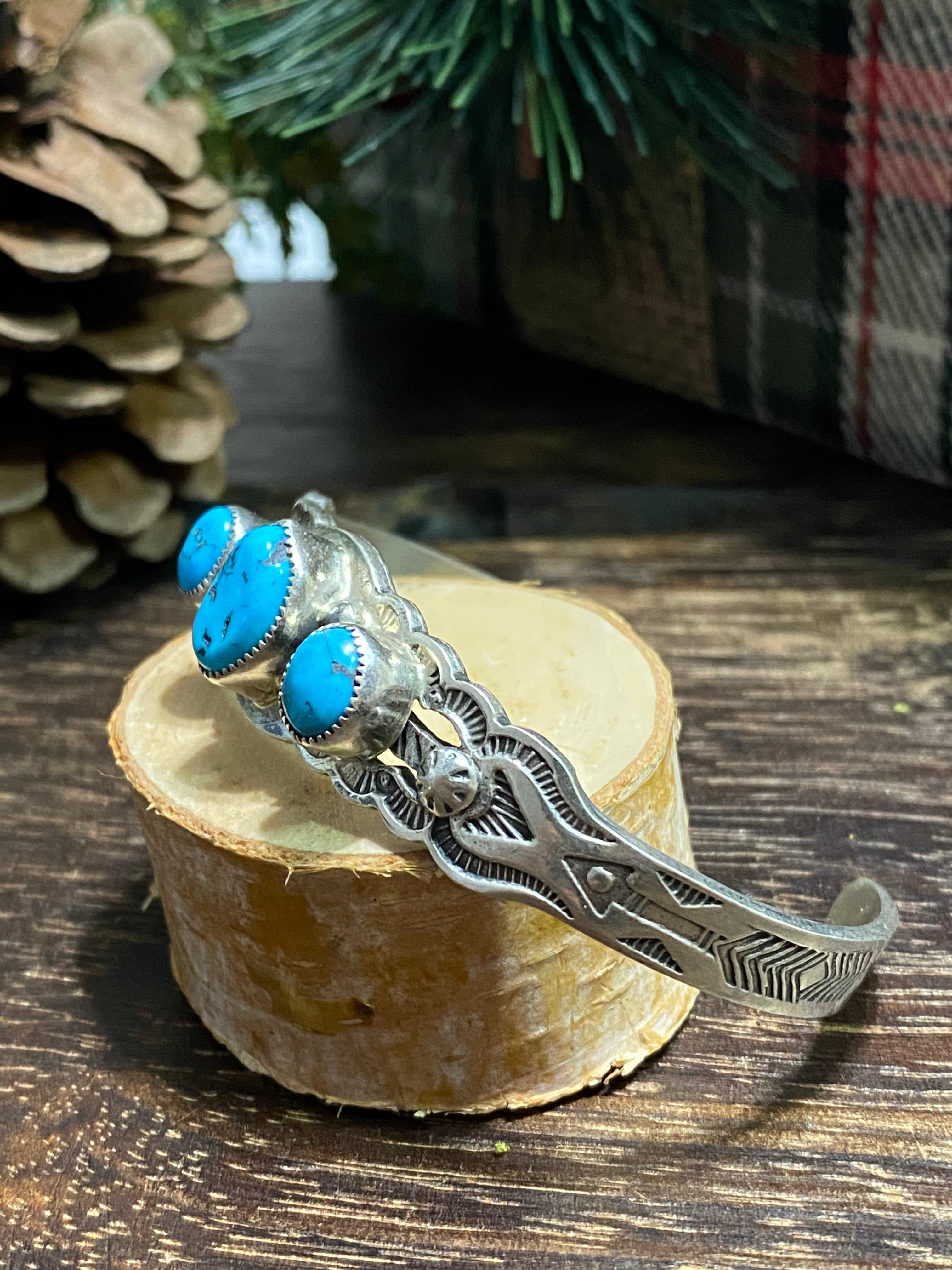 Navajo Made Kingman Turquoise & Sterling Silver Cuff Bracelet