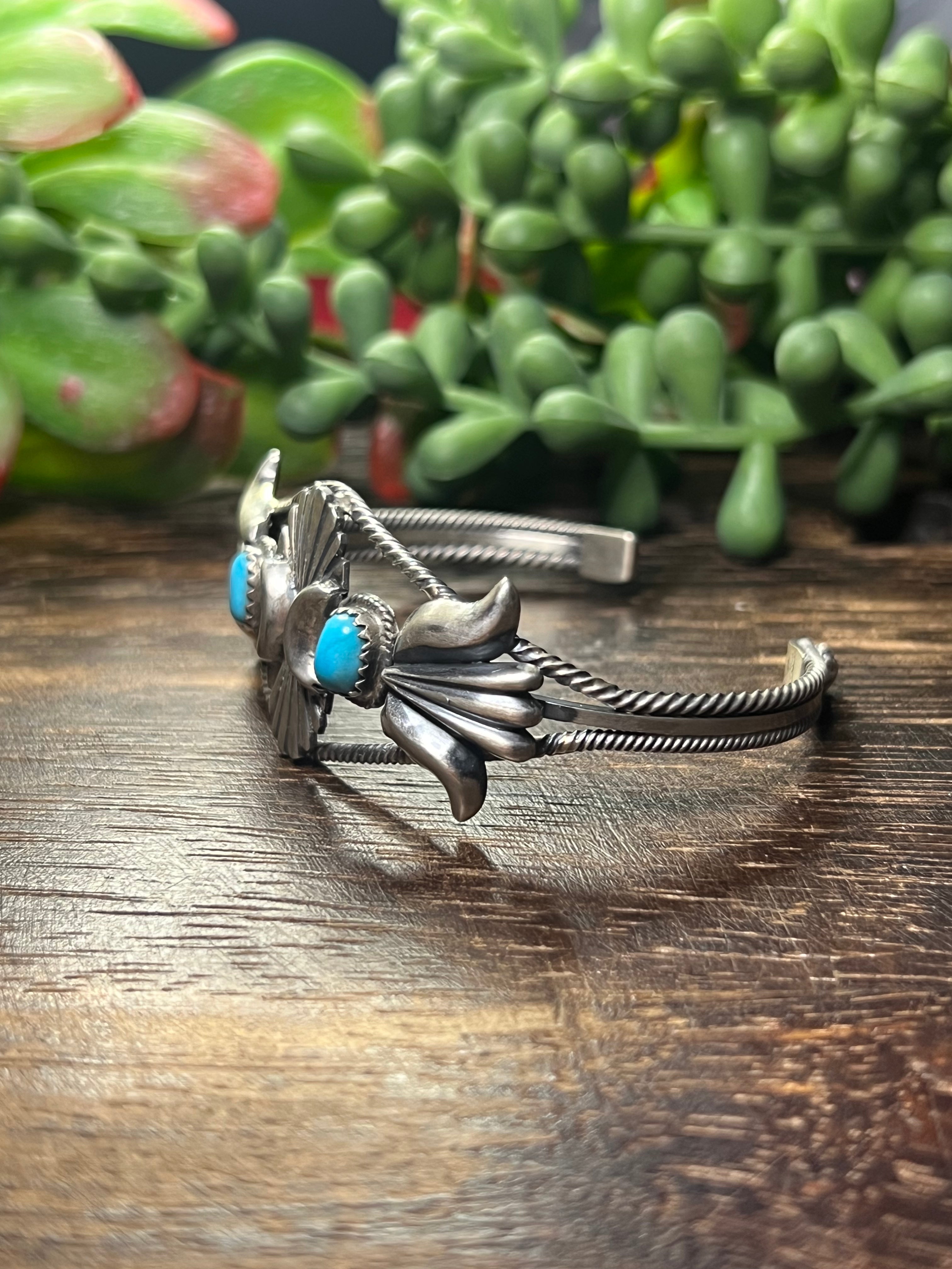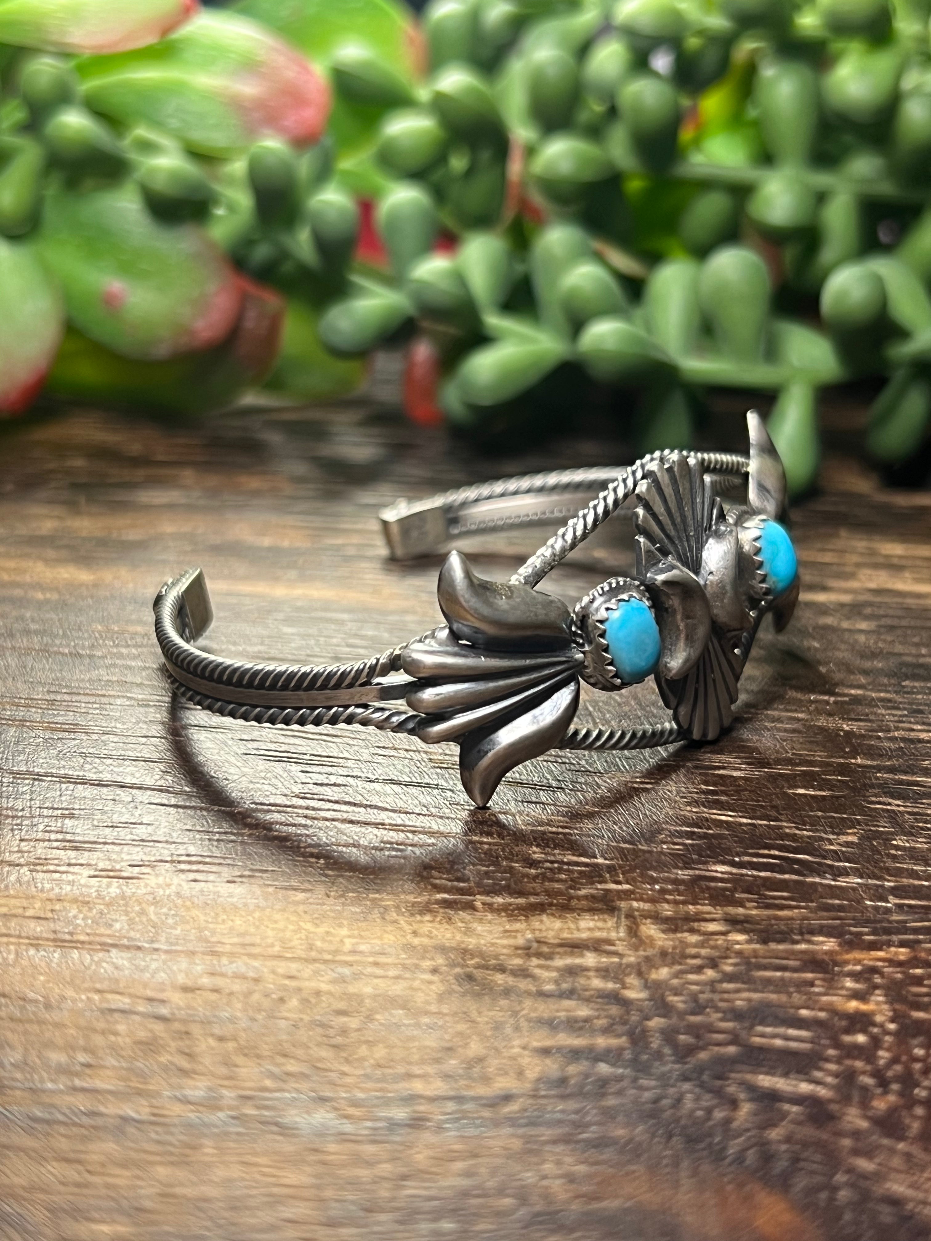 Navajo Made Kingman Turquoise & Sterling Silver Cuff Bracelet