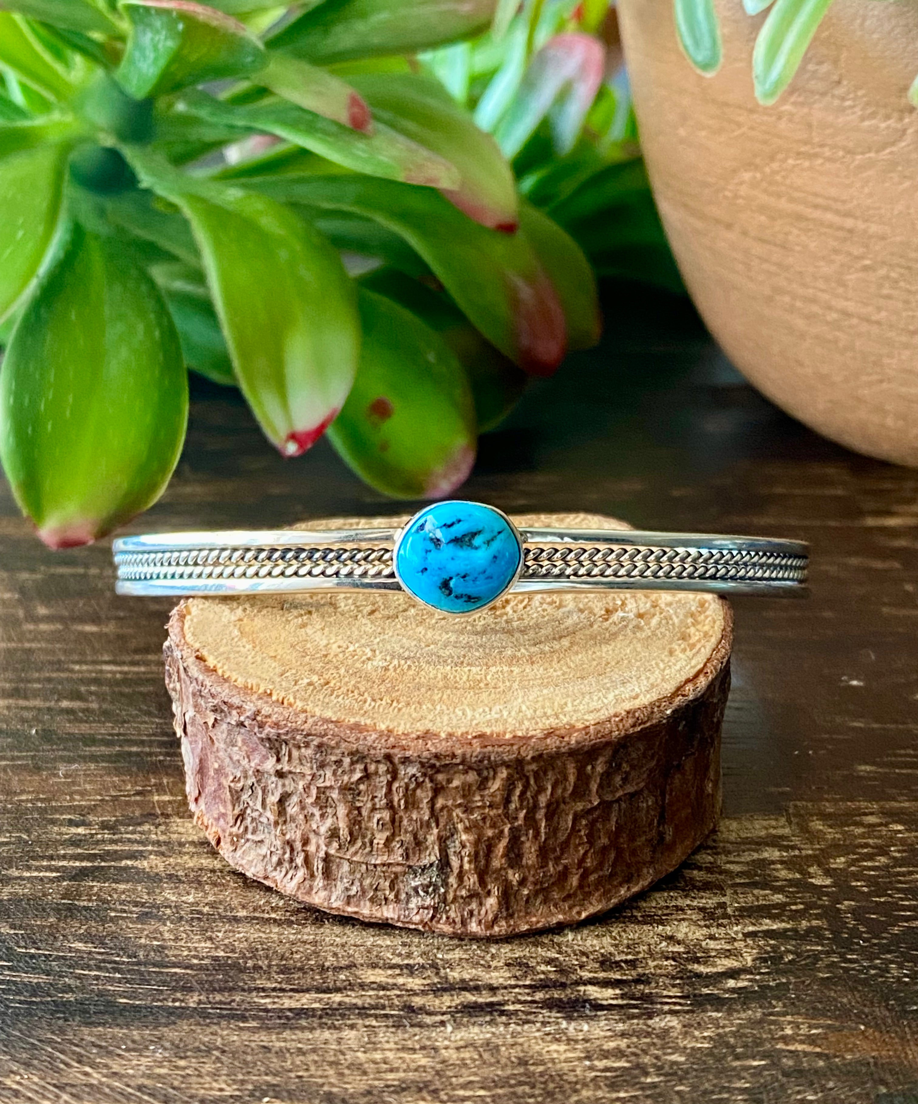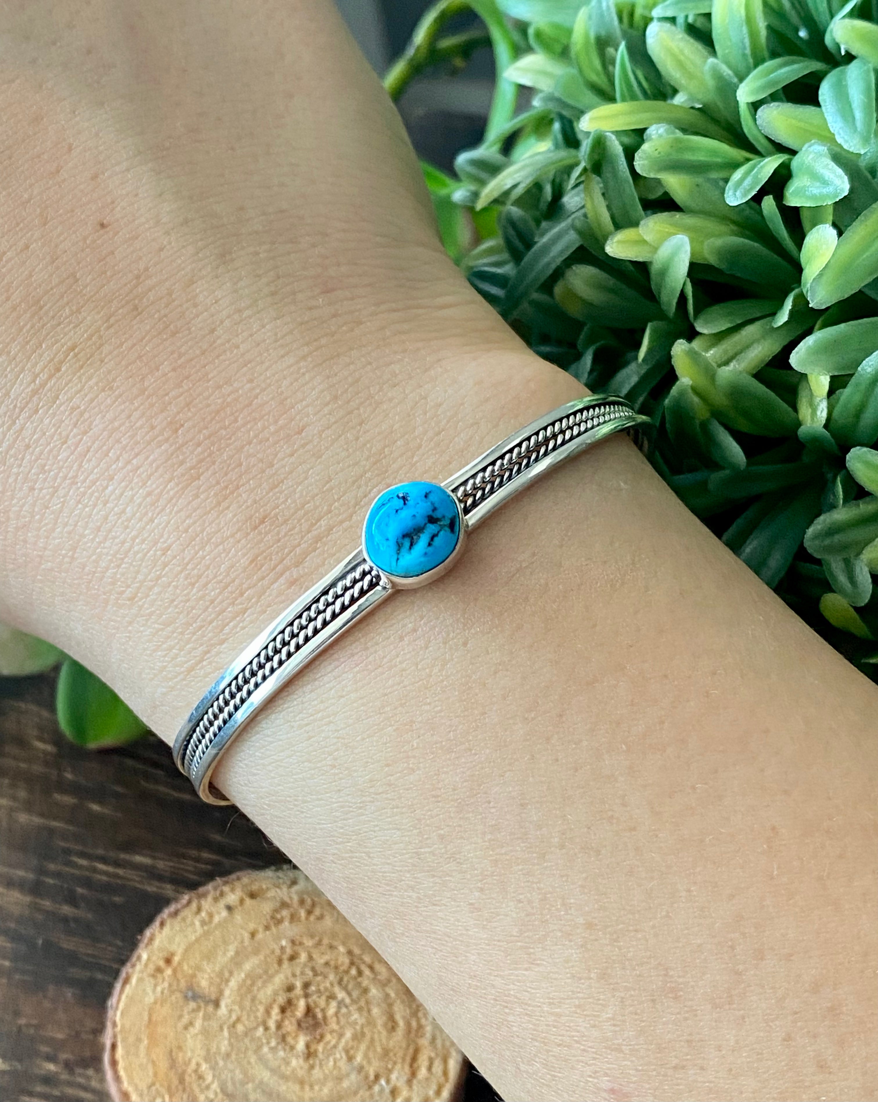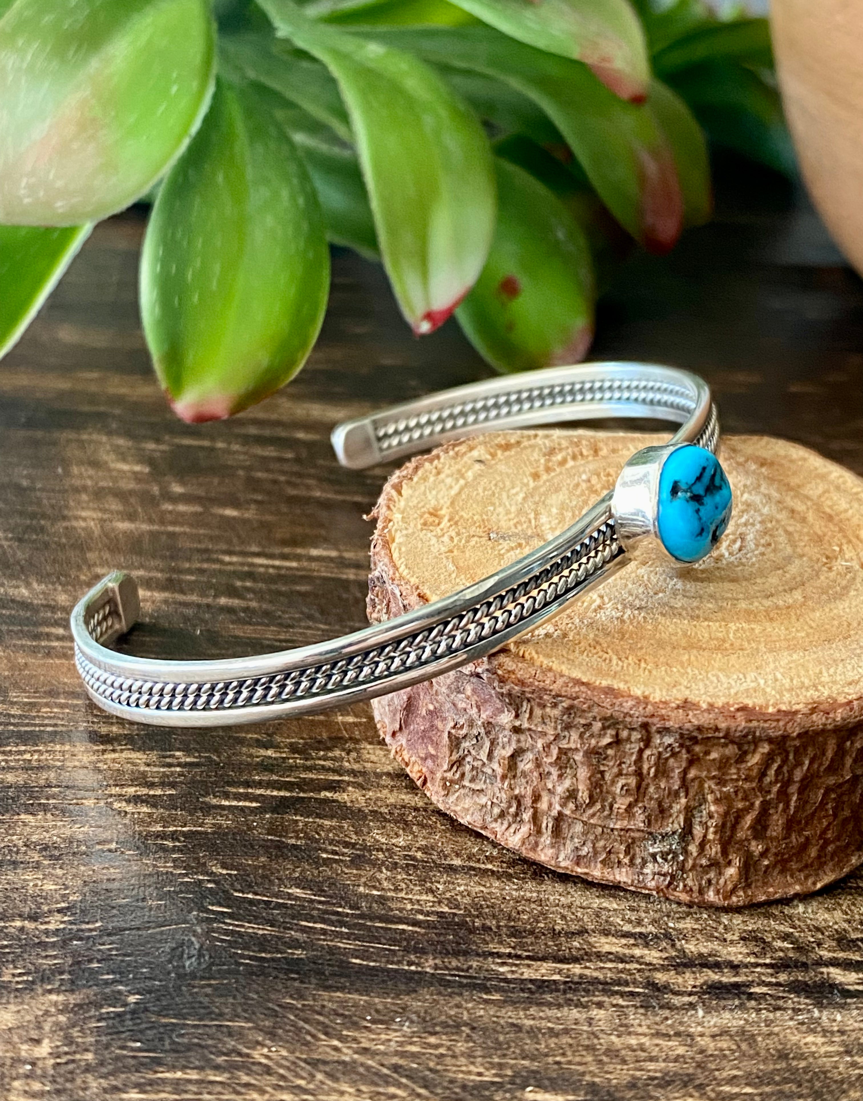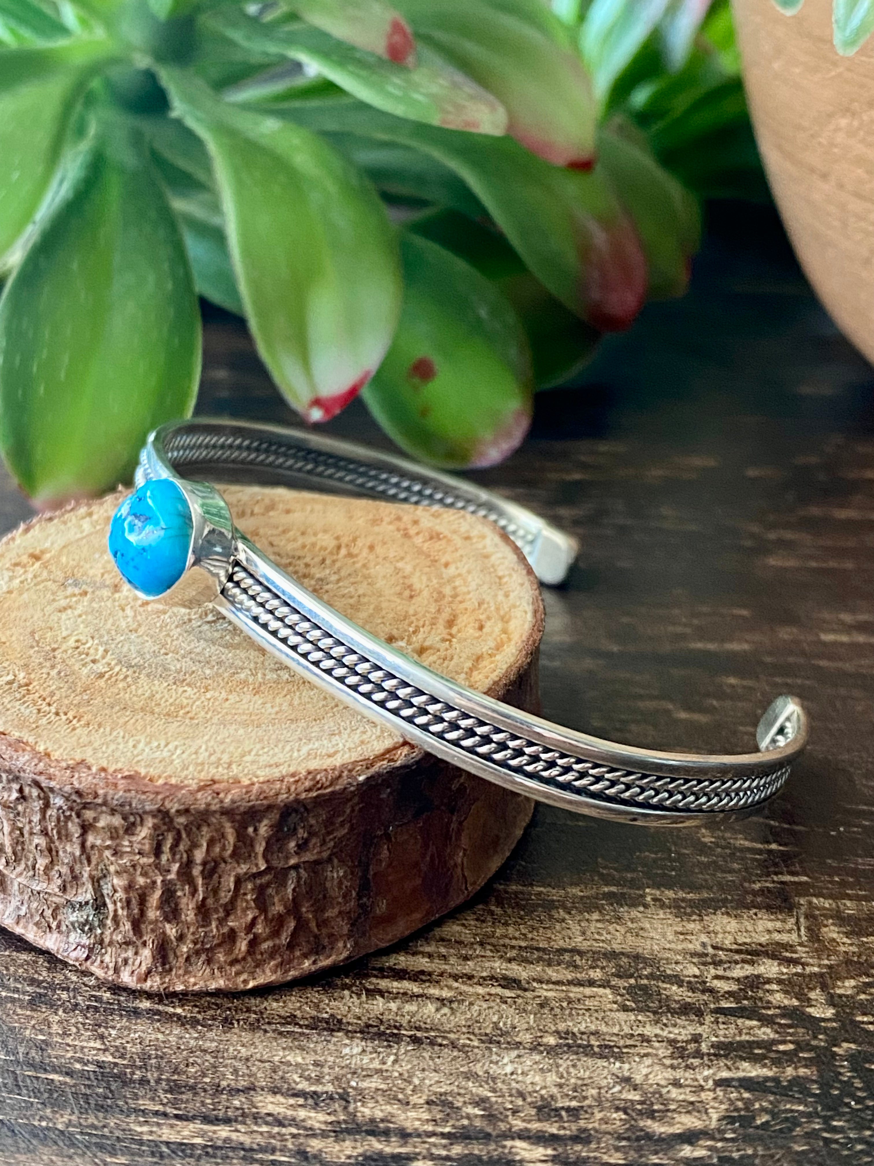 Navajo Made Kingman Turquoise & Sterling Silver Cuff Bracelet