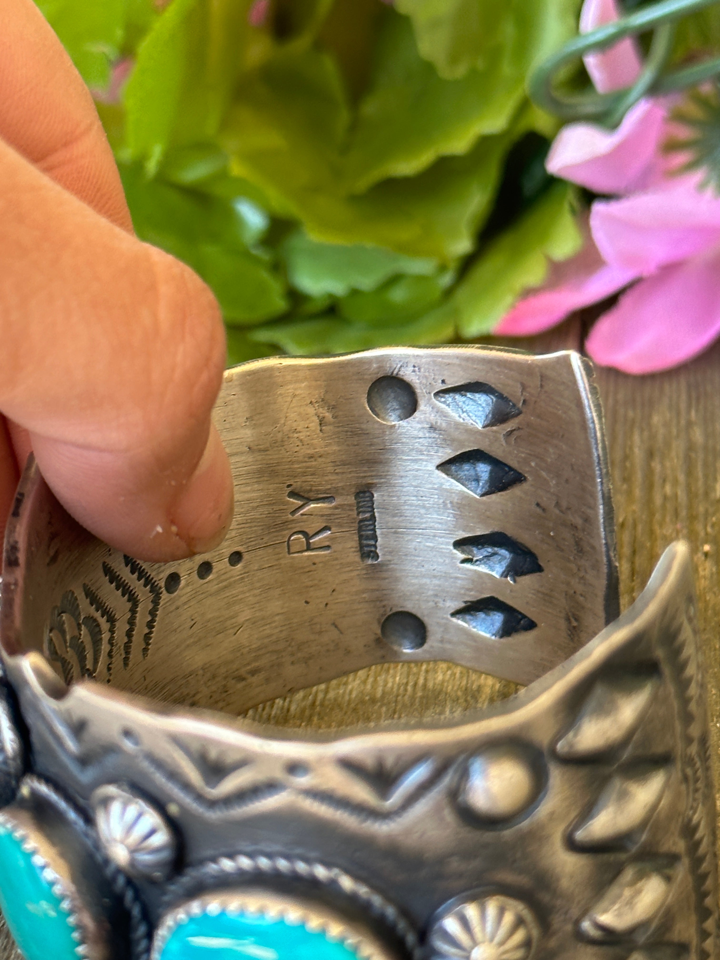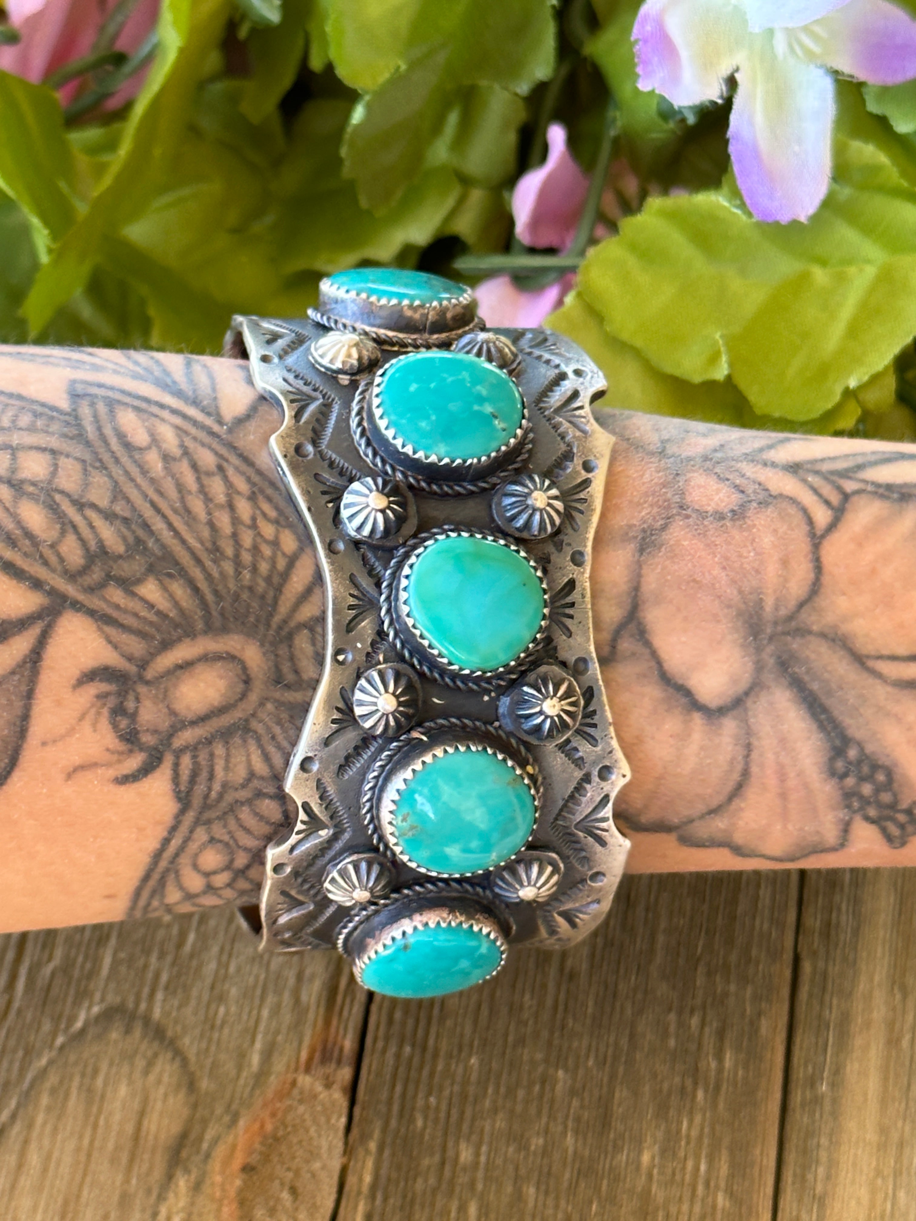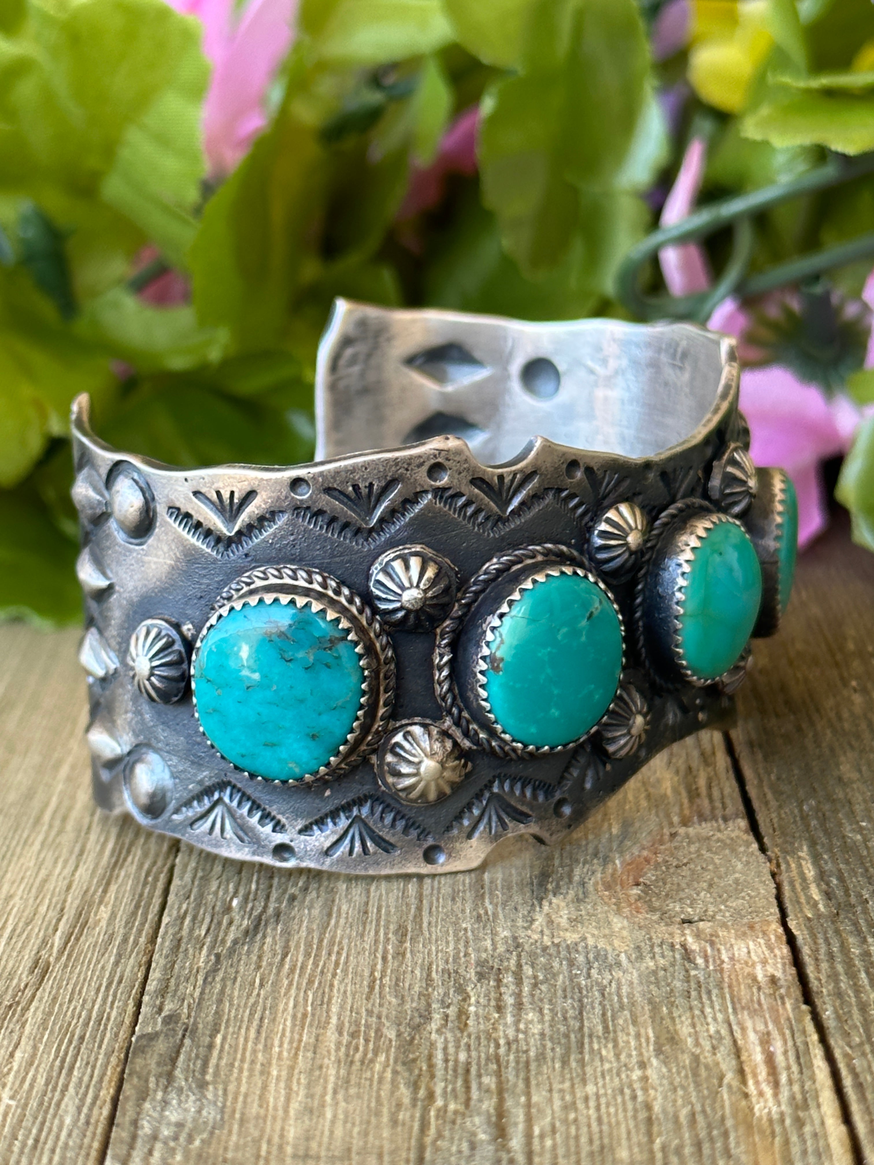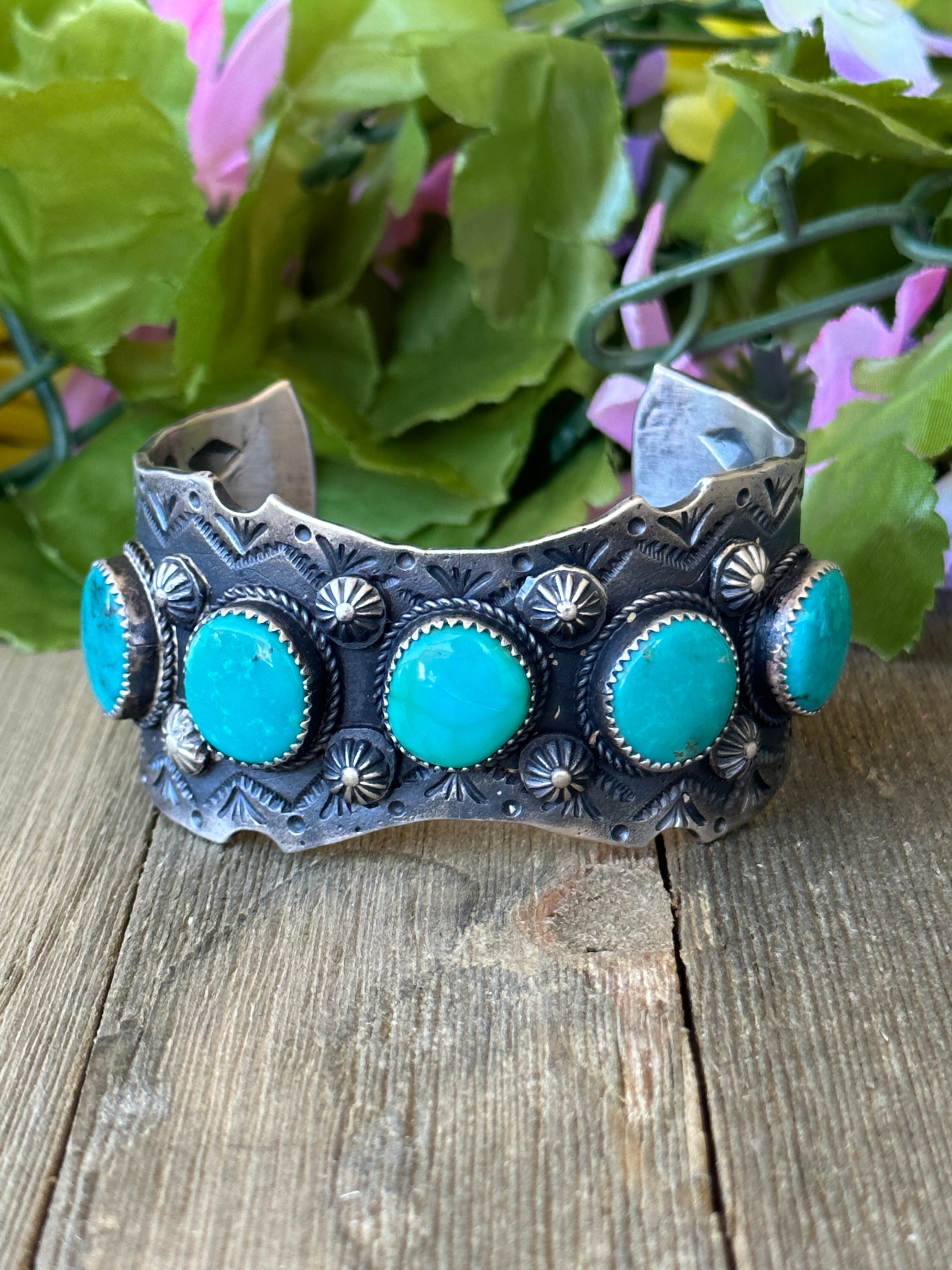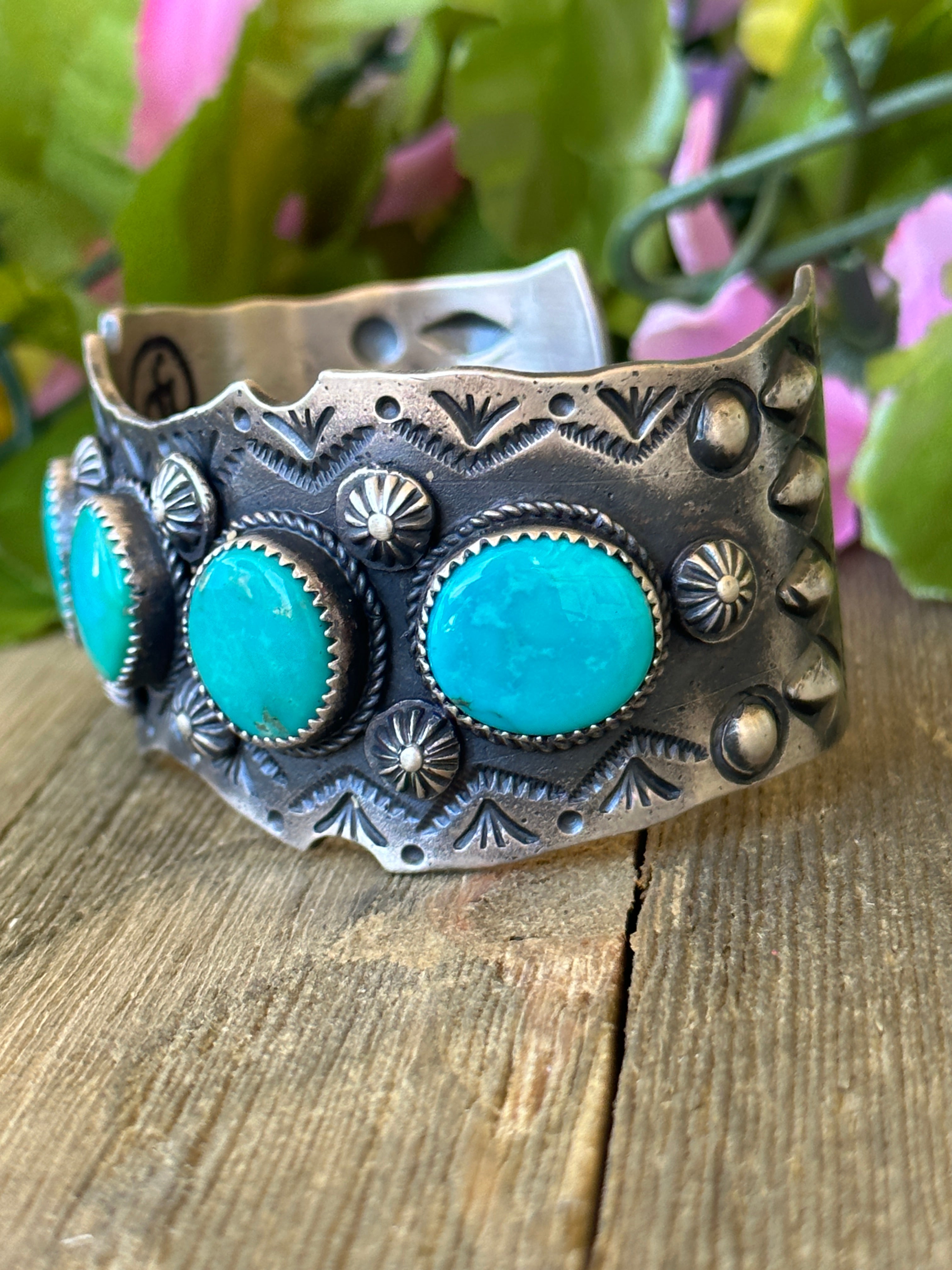 Navajo Made Kingman Turquoise & Sterling Silver Cuff Bracelet