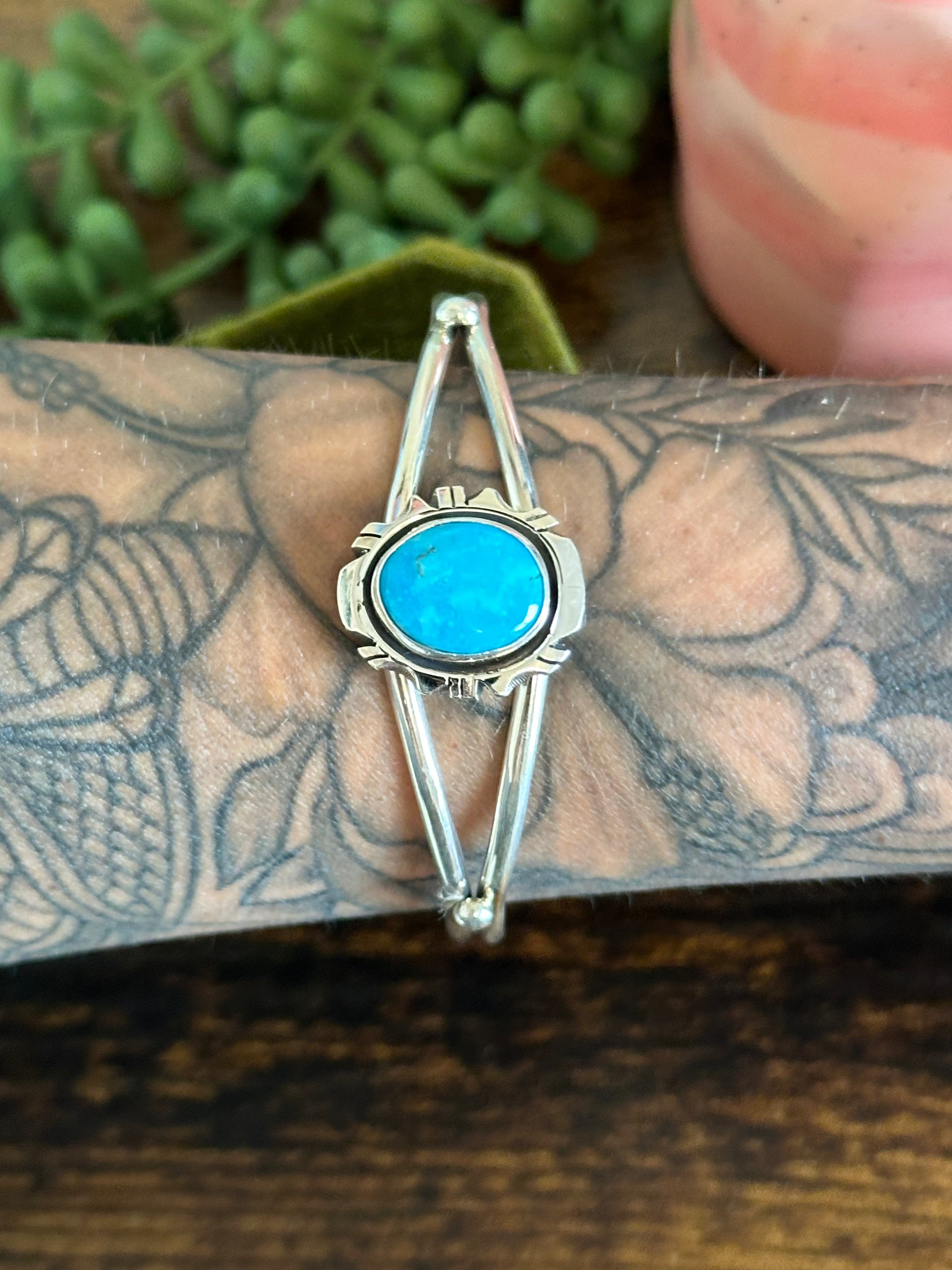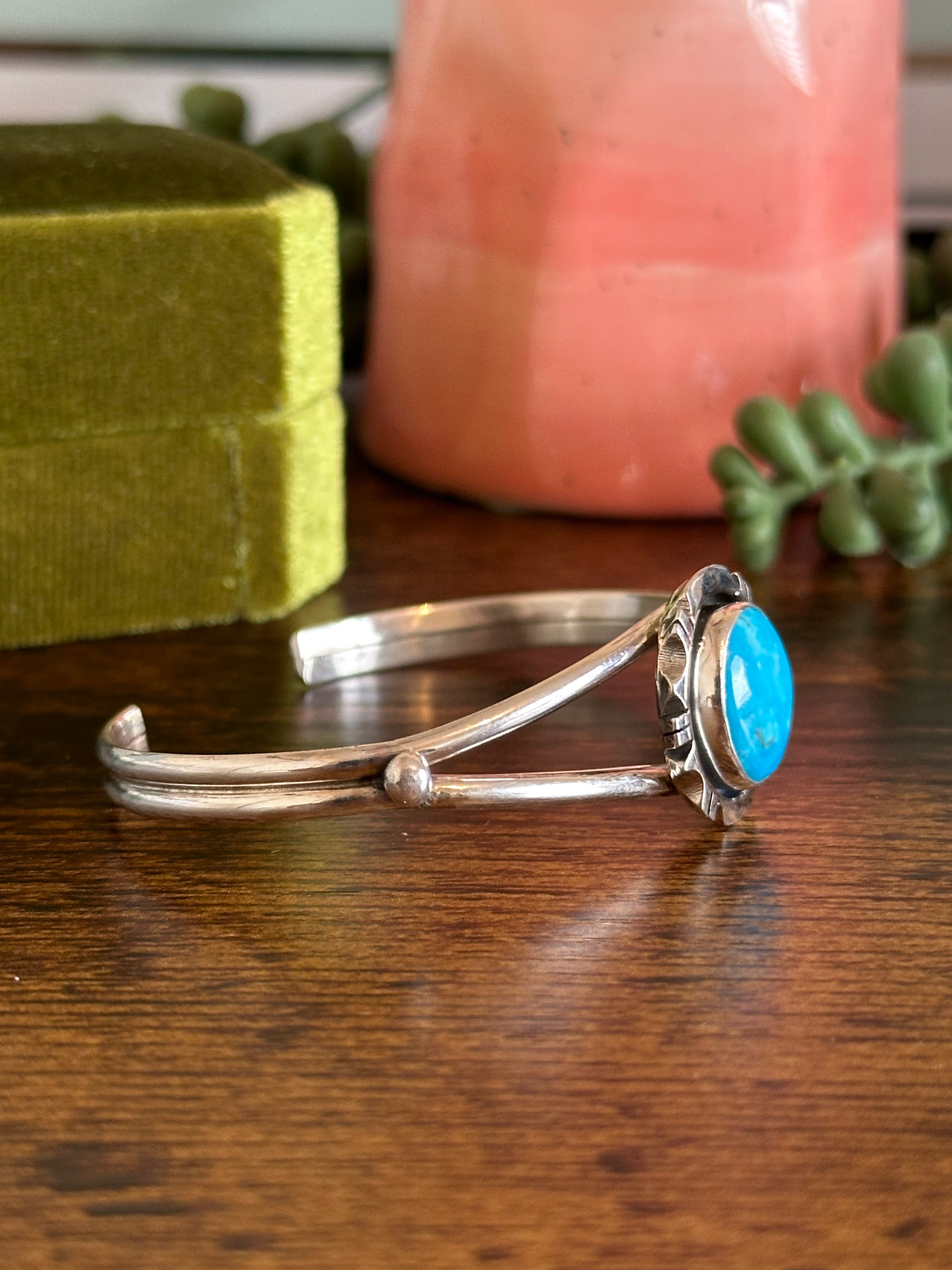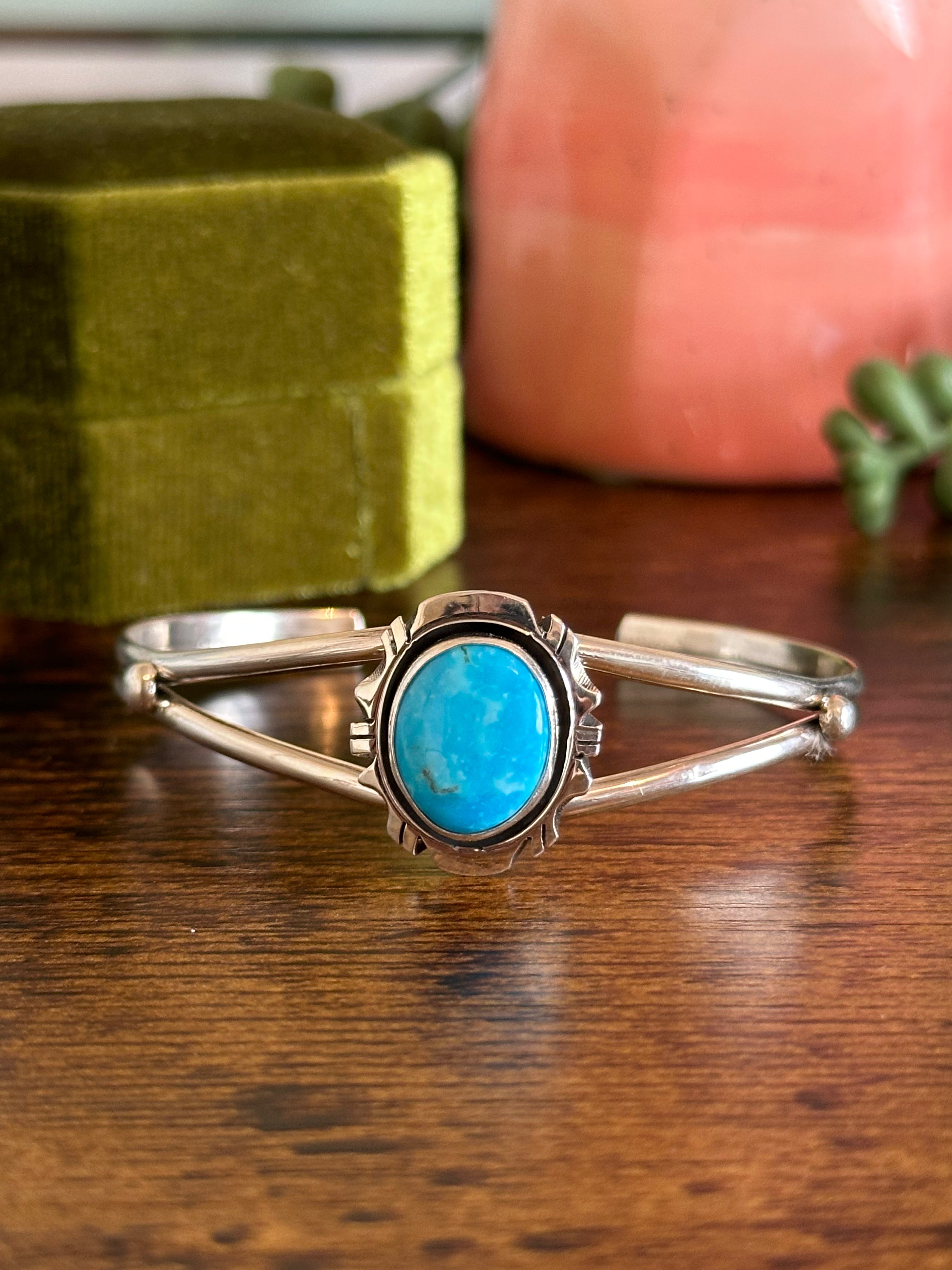 Navajo Made Kingman Turquoise & Sterling Silver Cuff Bracelet