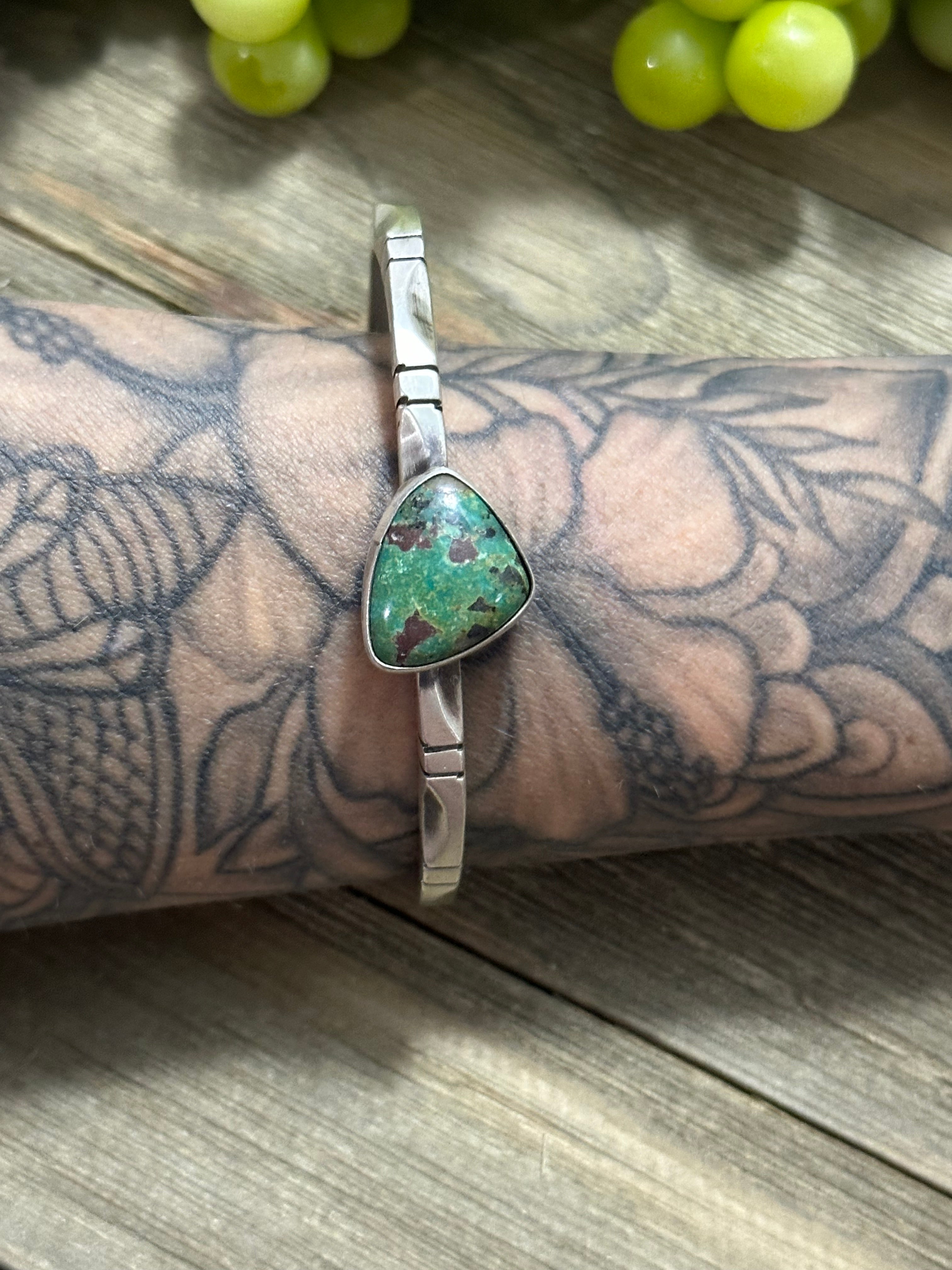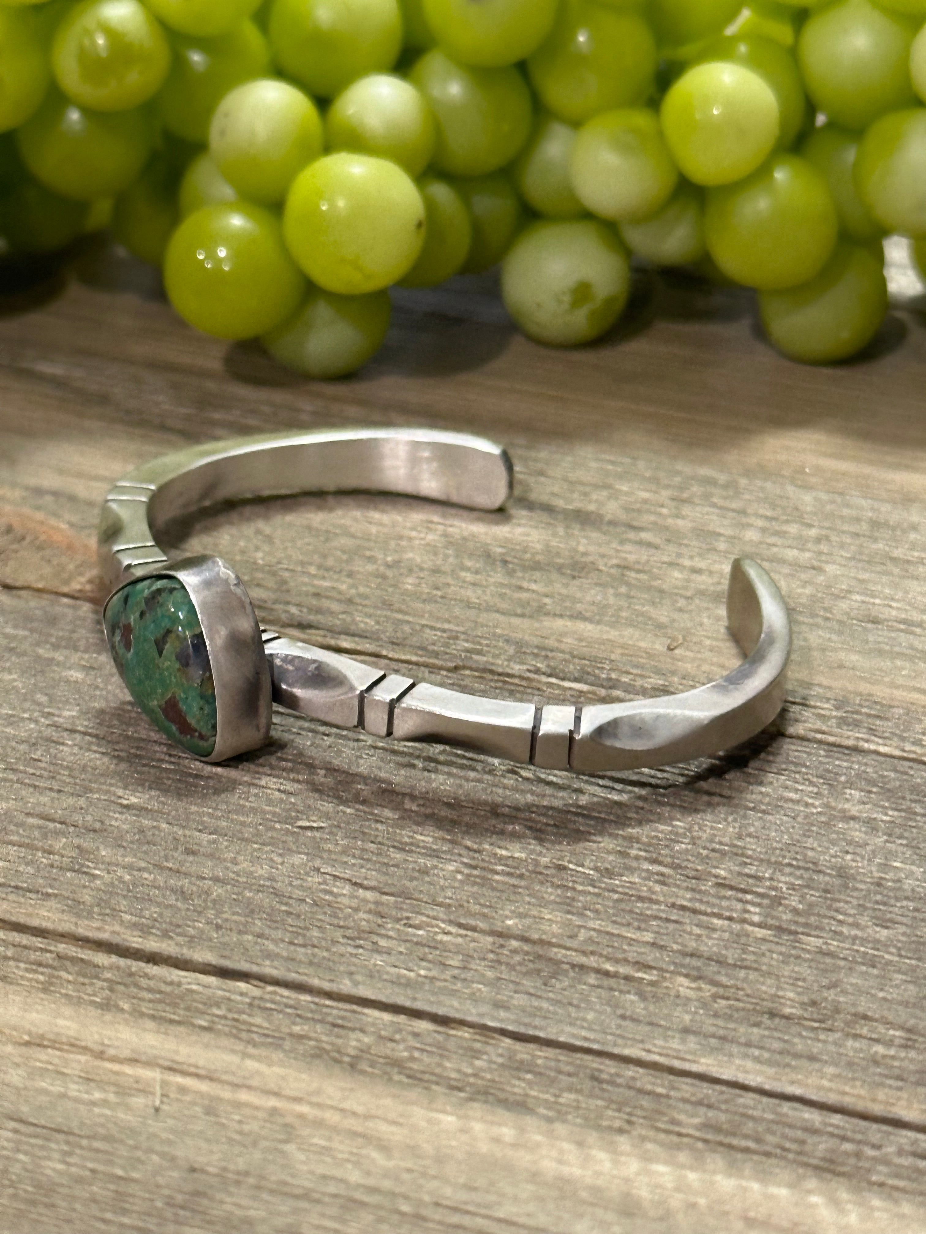 Navajo Made Kingman Turquoise & Sterling Silver Cuff Bracelet