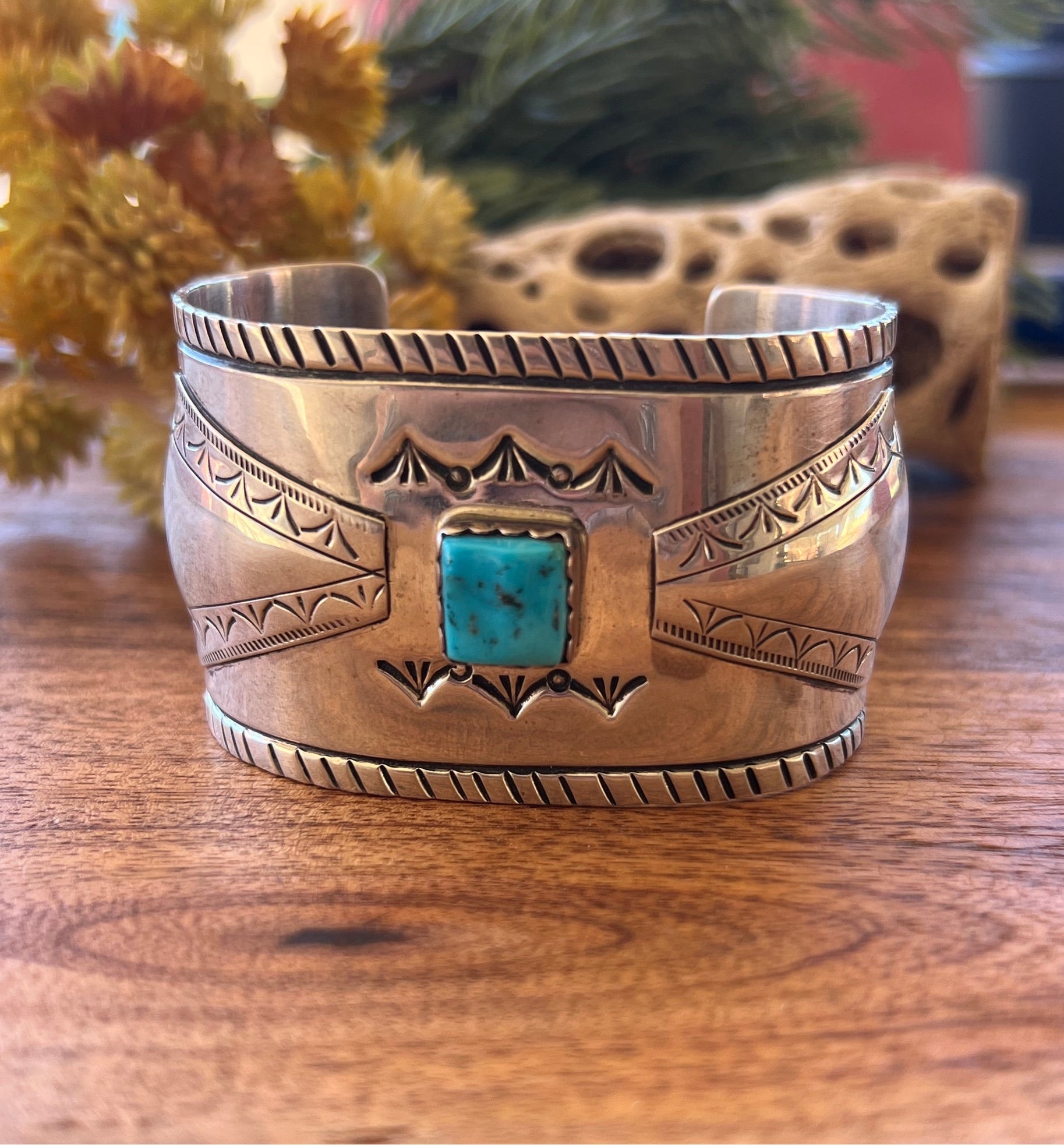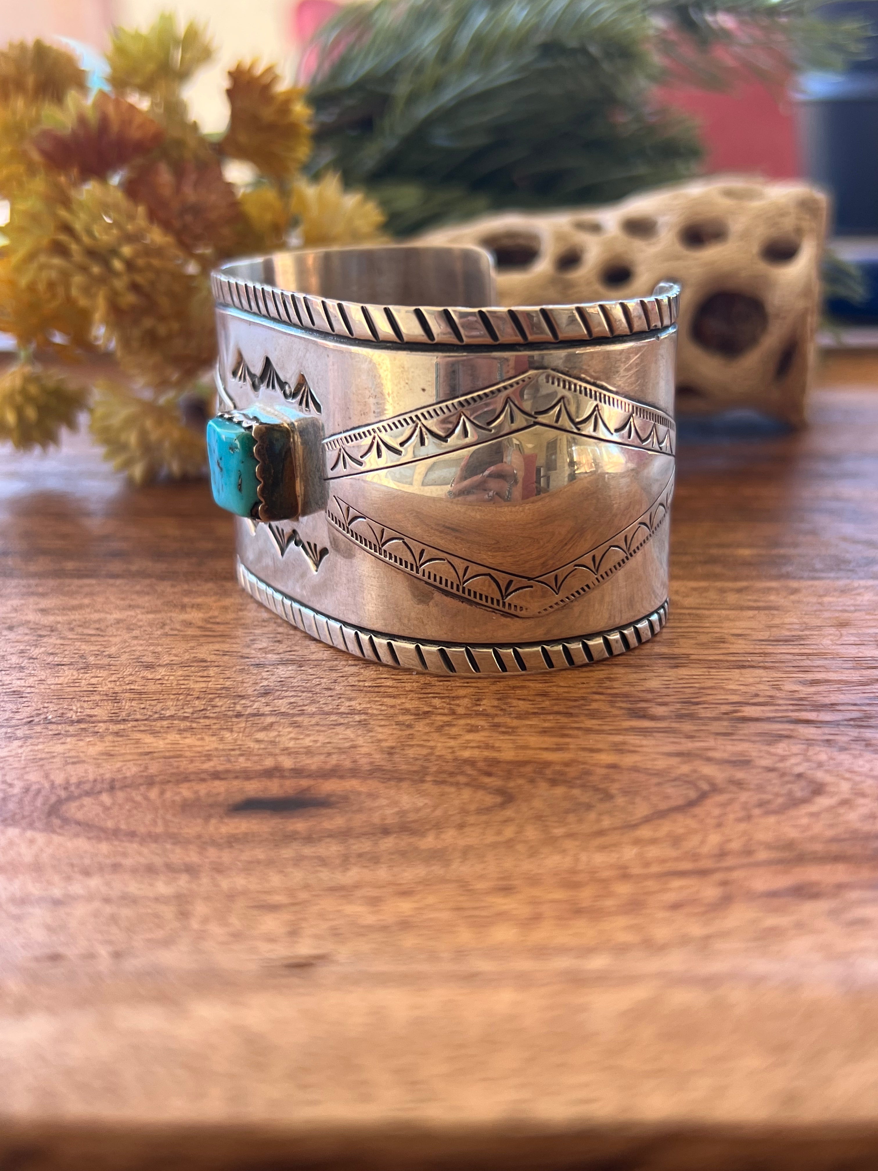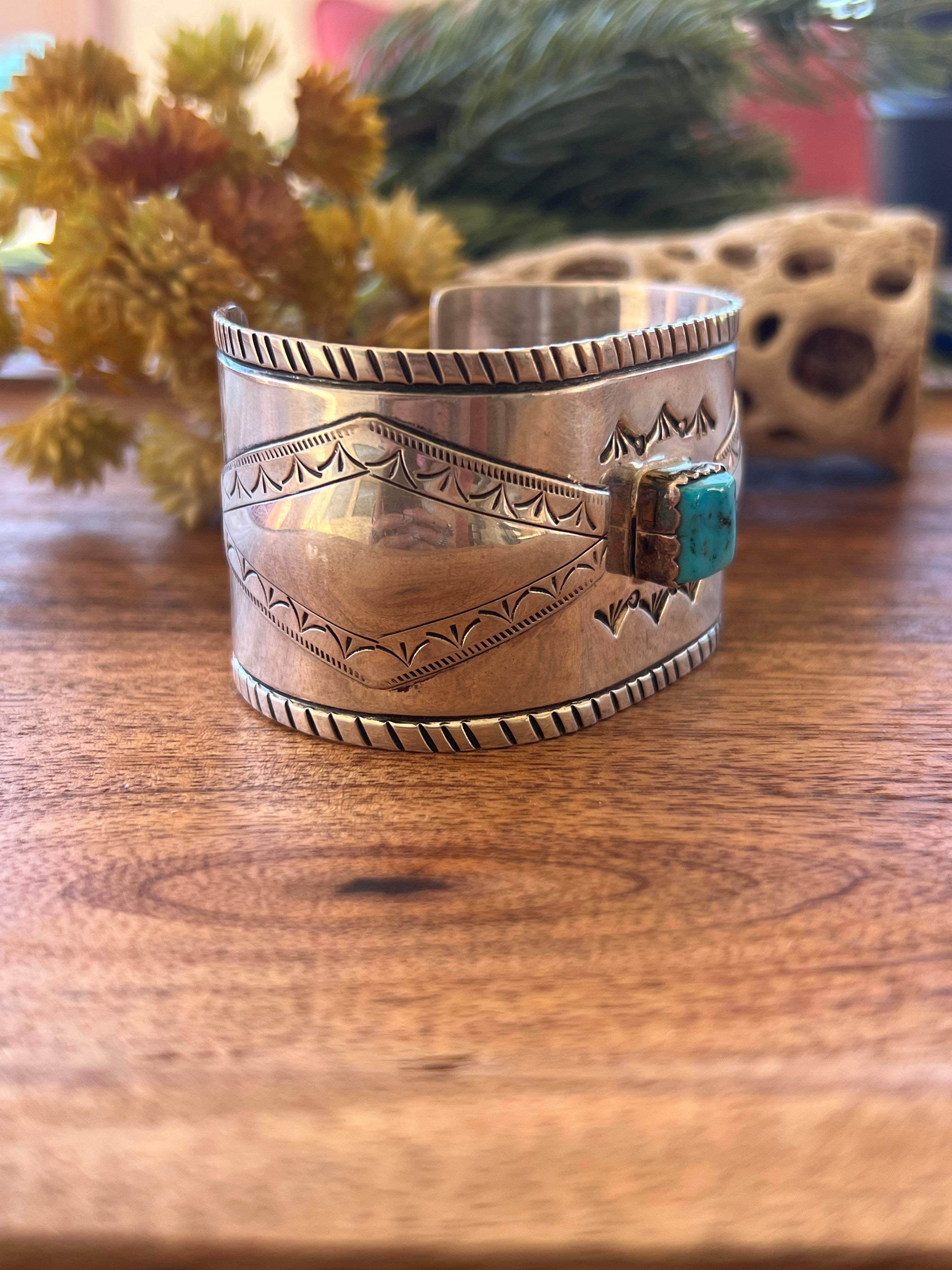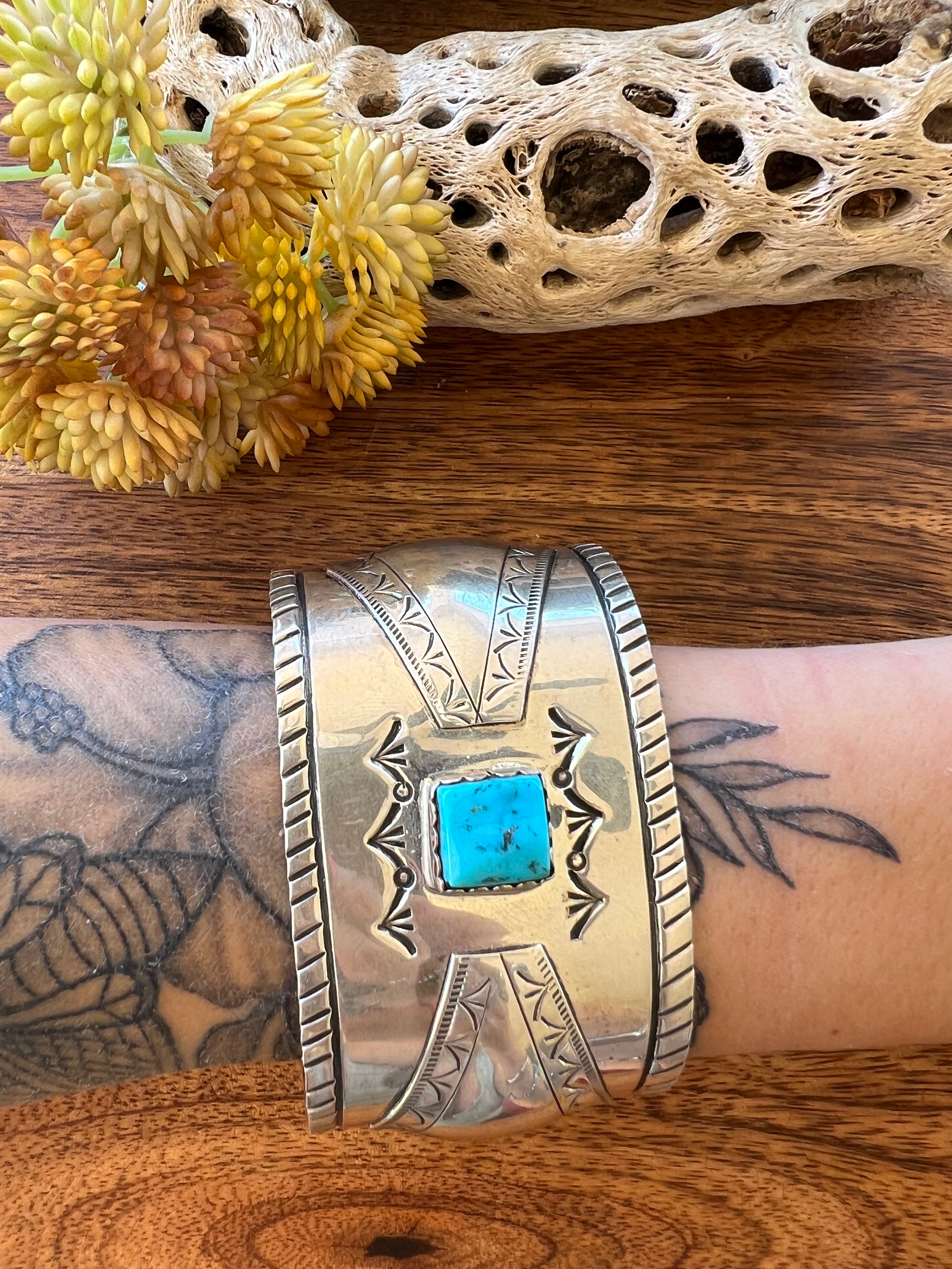 Navajo Made Kingman Turquoise & Sterling Silver Cuff Bracelet