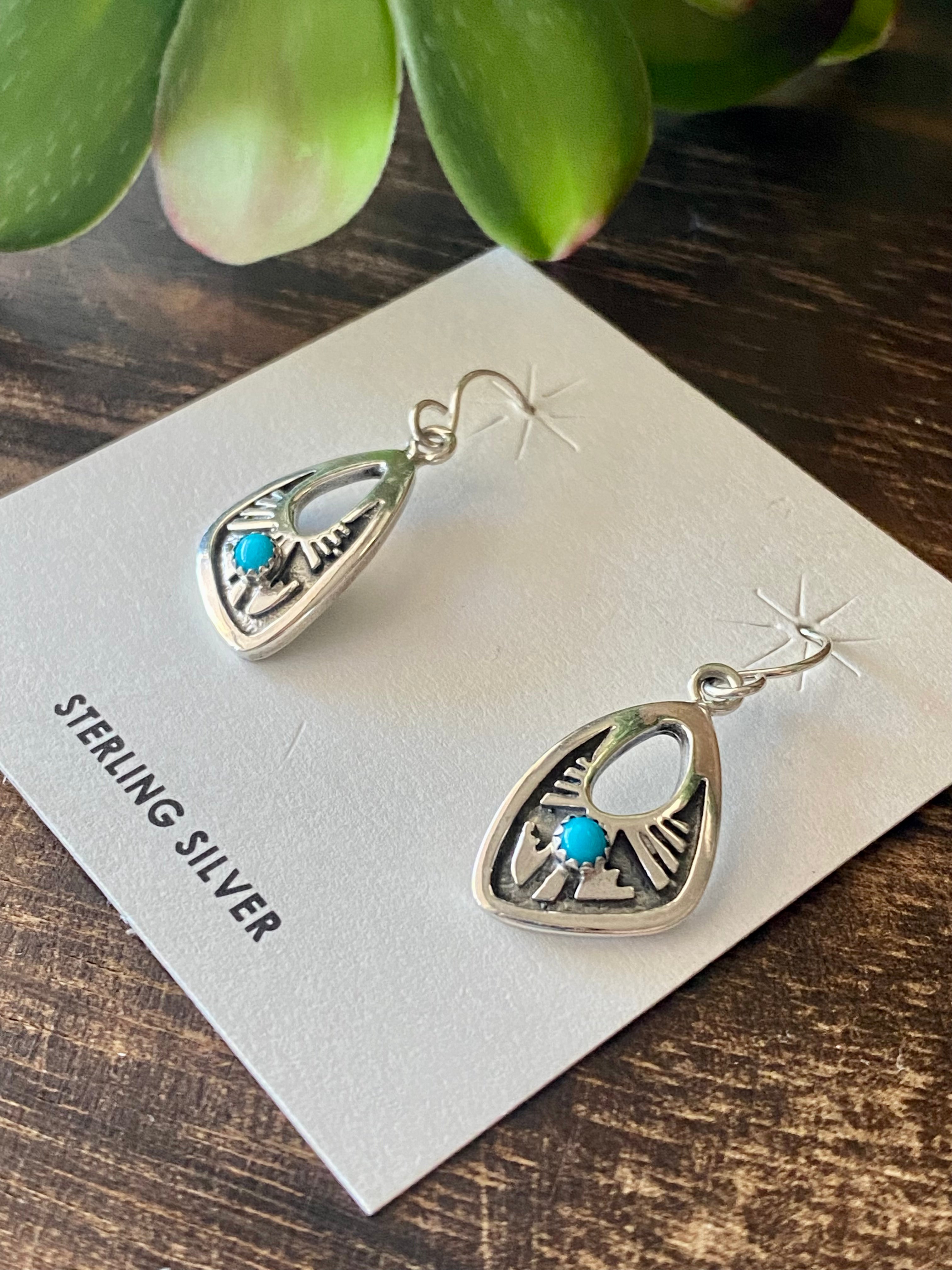 Navajo Made Kingman Turquoise & Sterling Silver Dangle Earrings