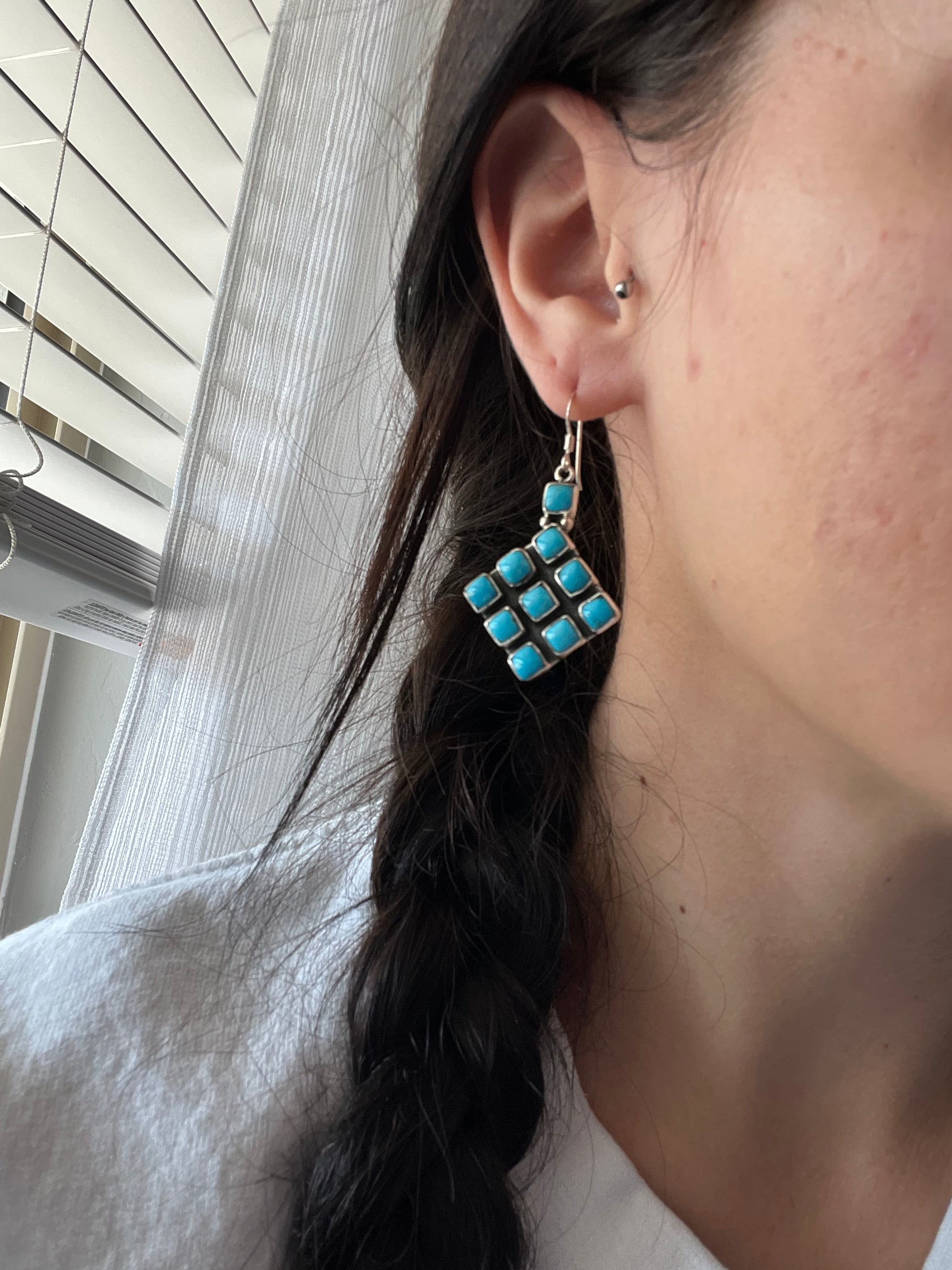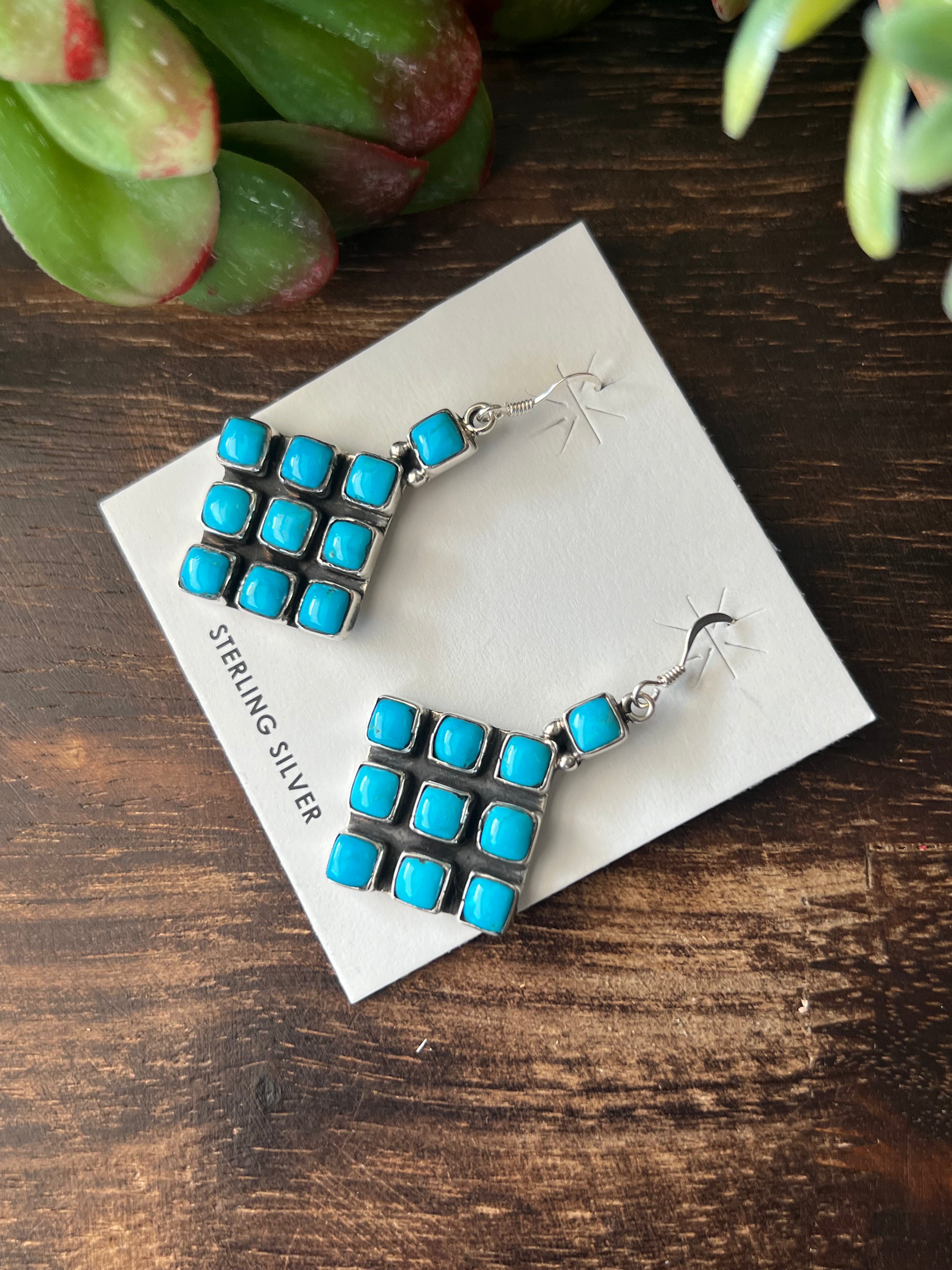 Navajo Made Kingman Turquoise & Sterling Silver Dangle Earrings