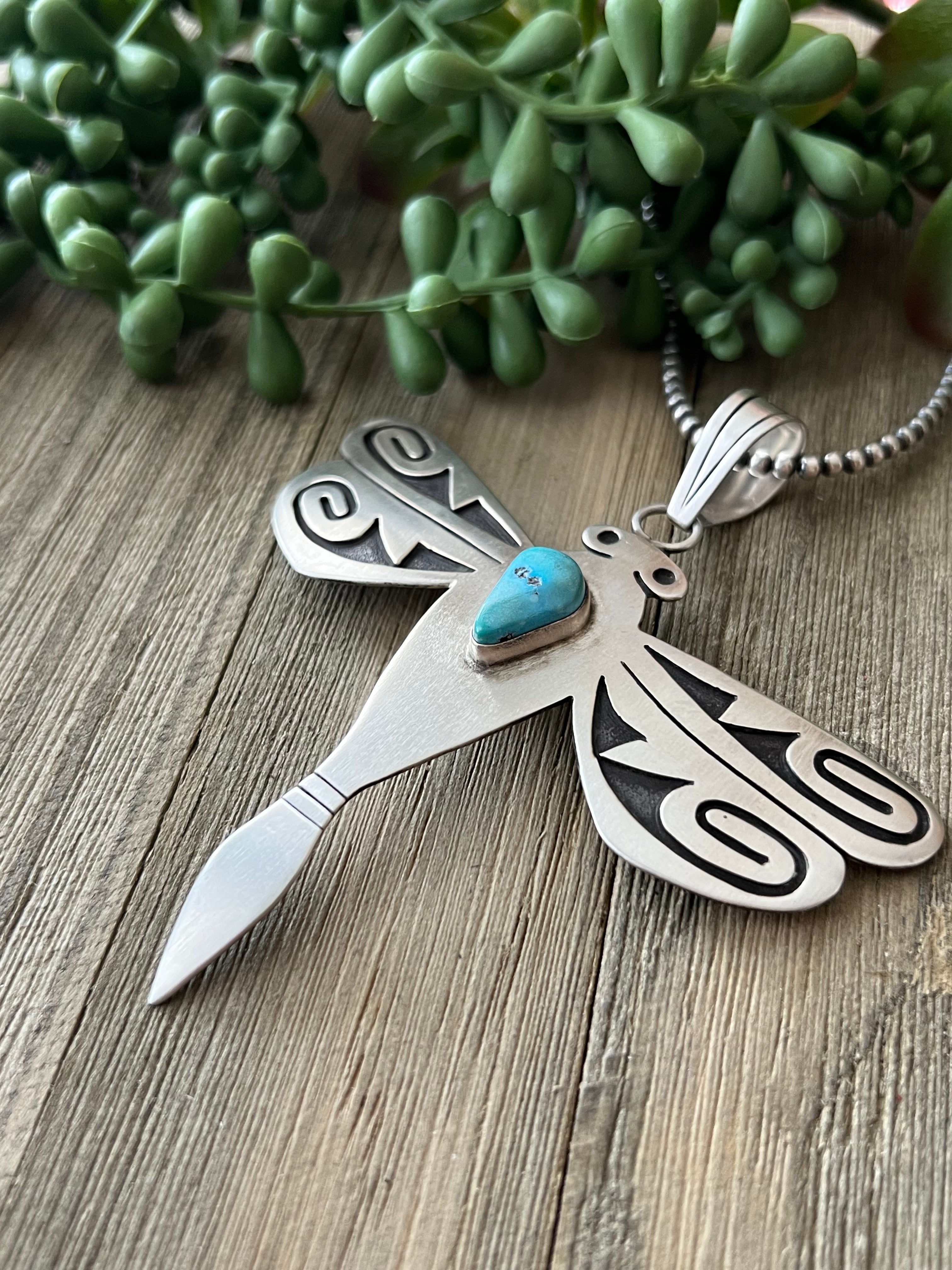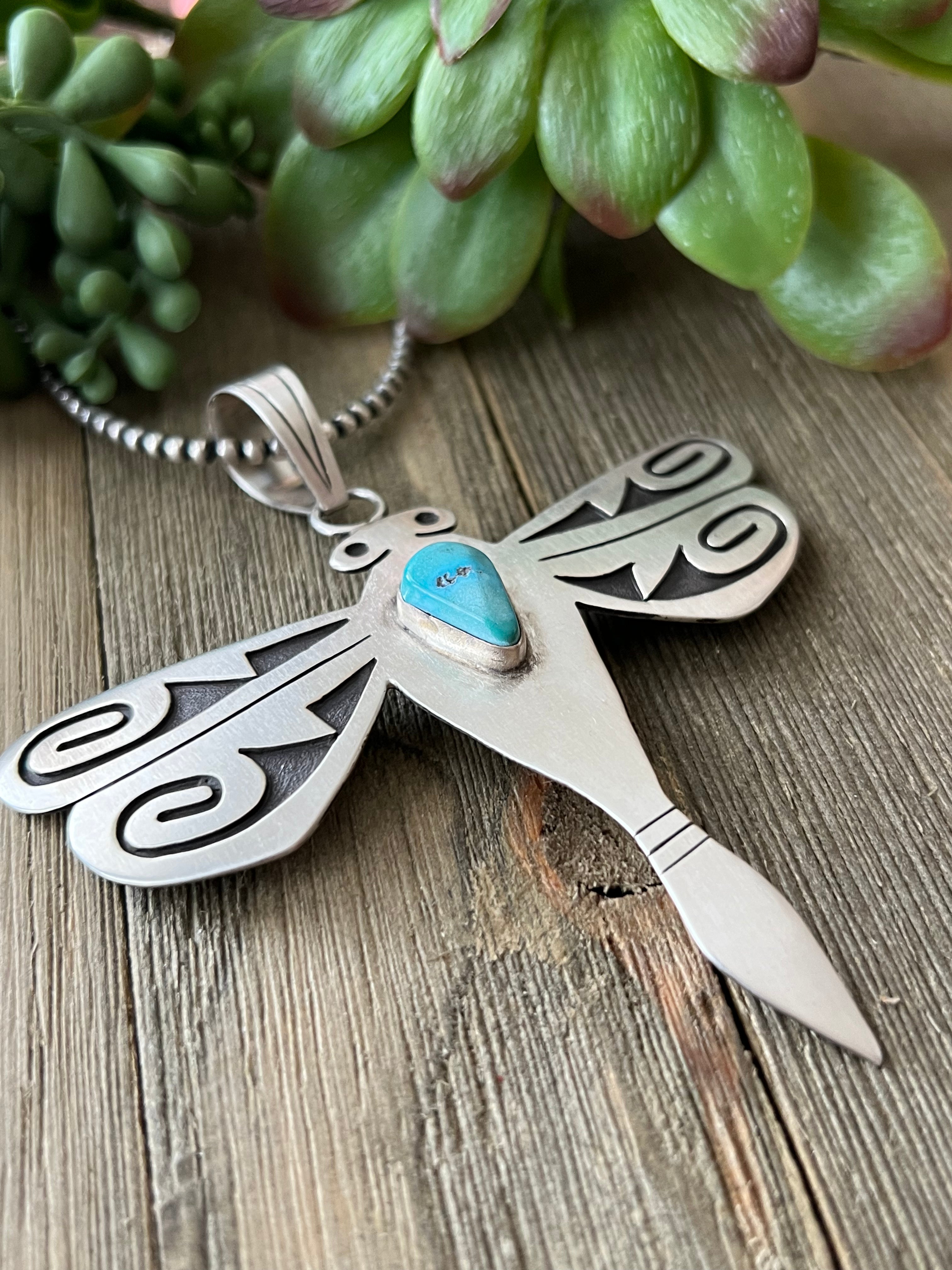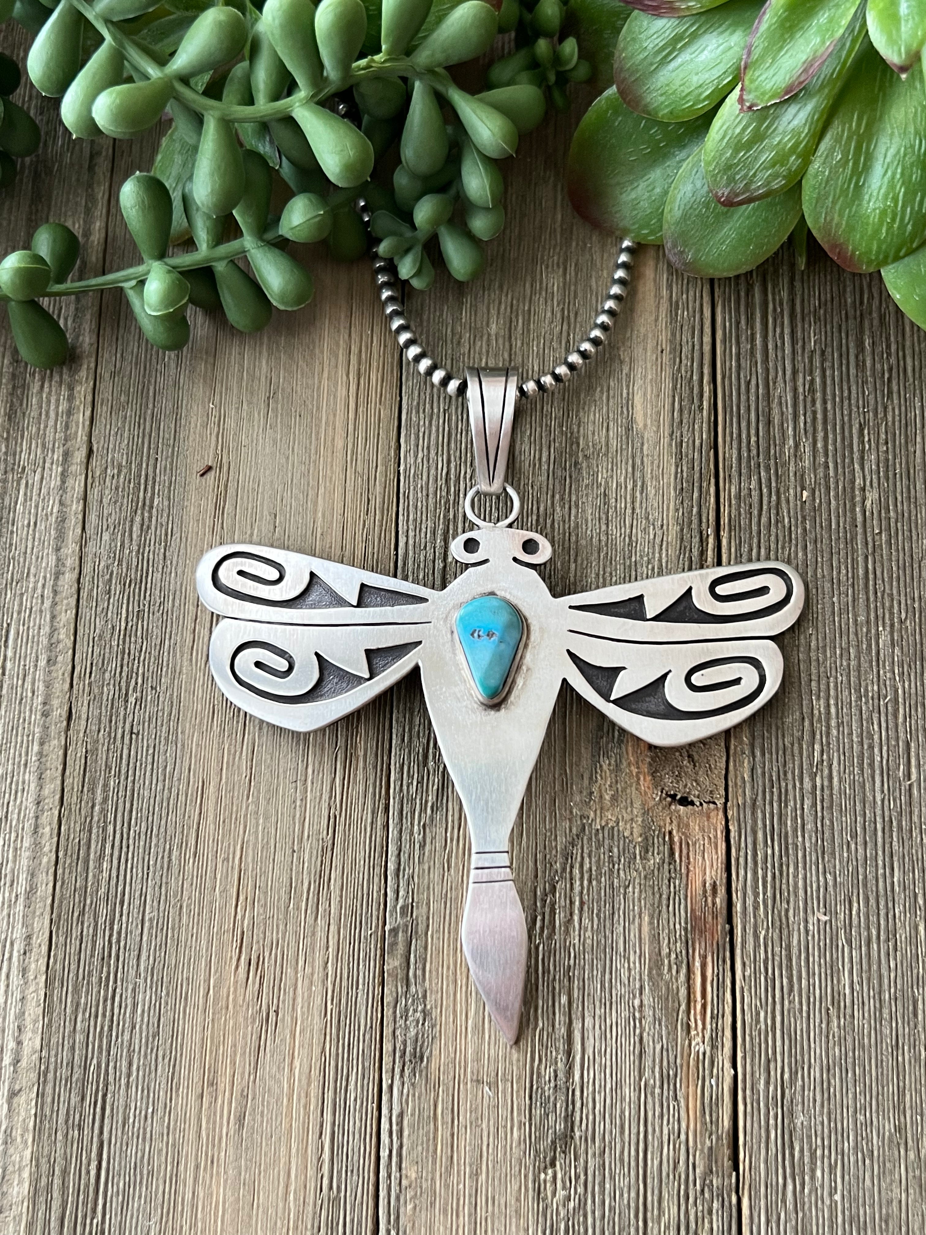 Navajo Made Kingman Turquoise & Sterling Silver Dragonfly Pendant