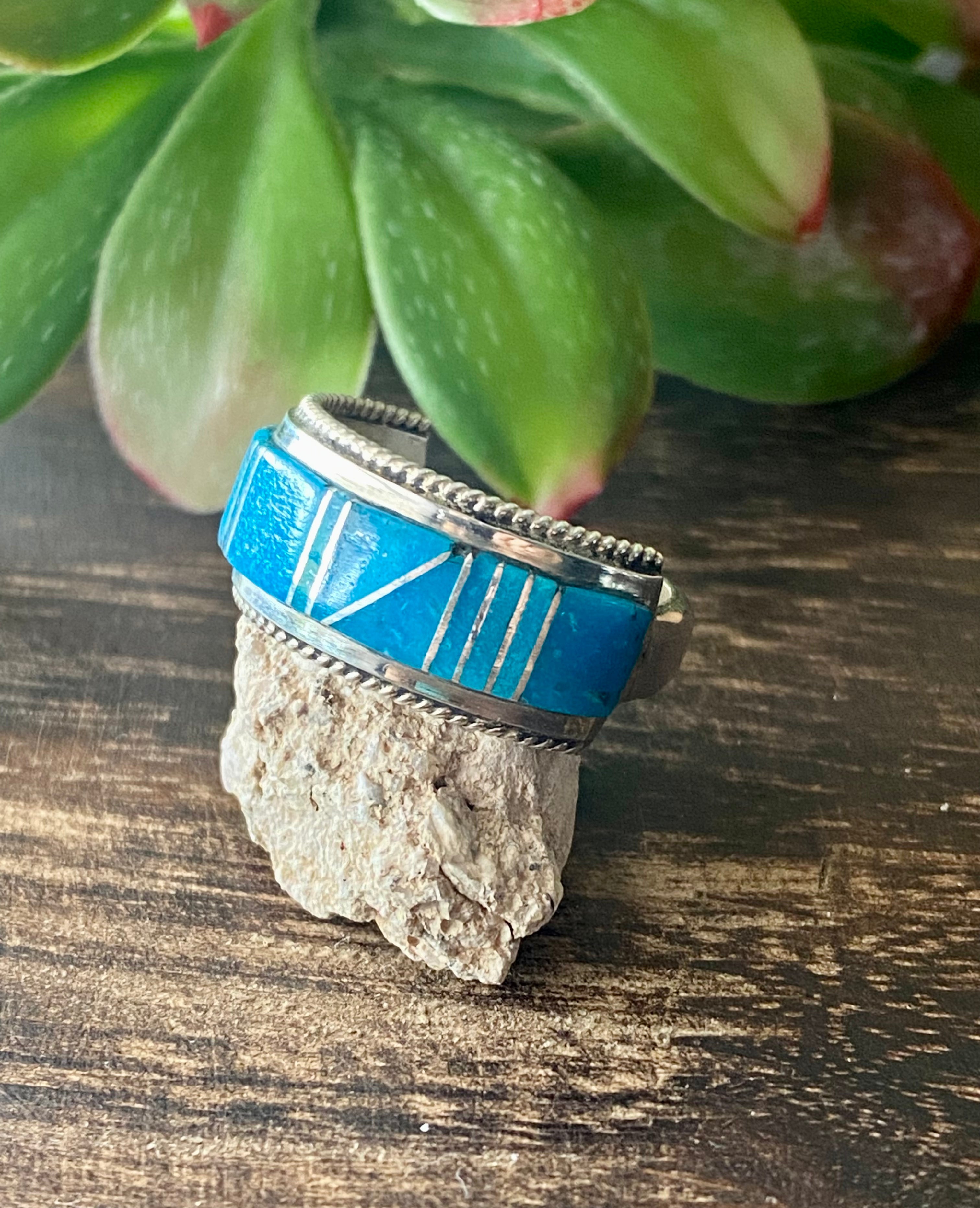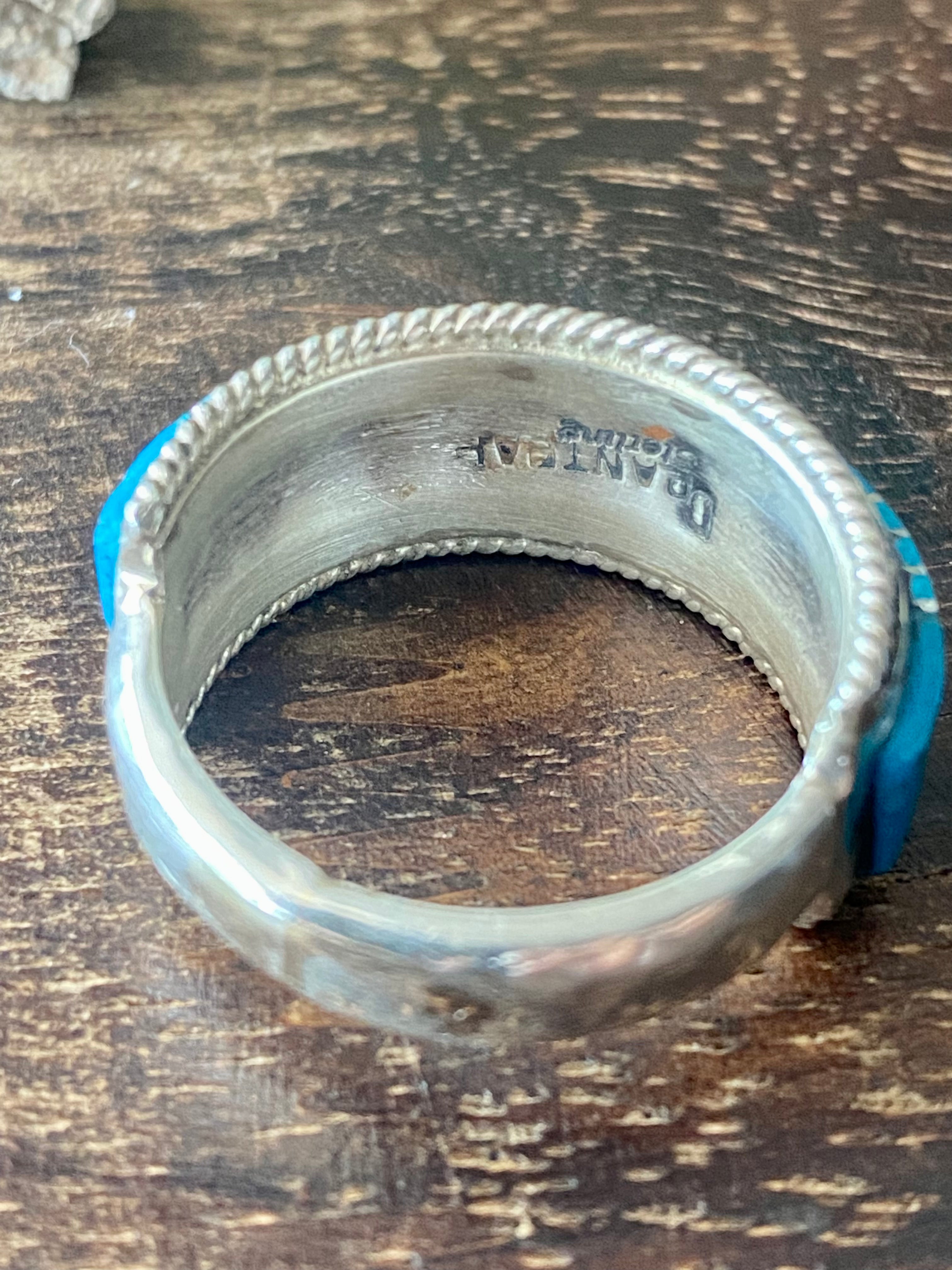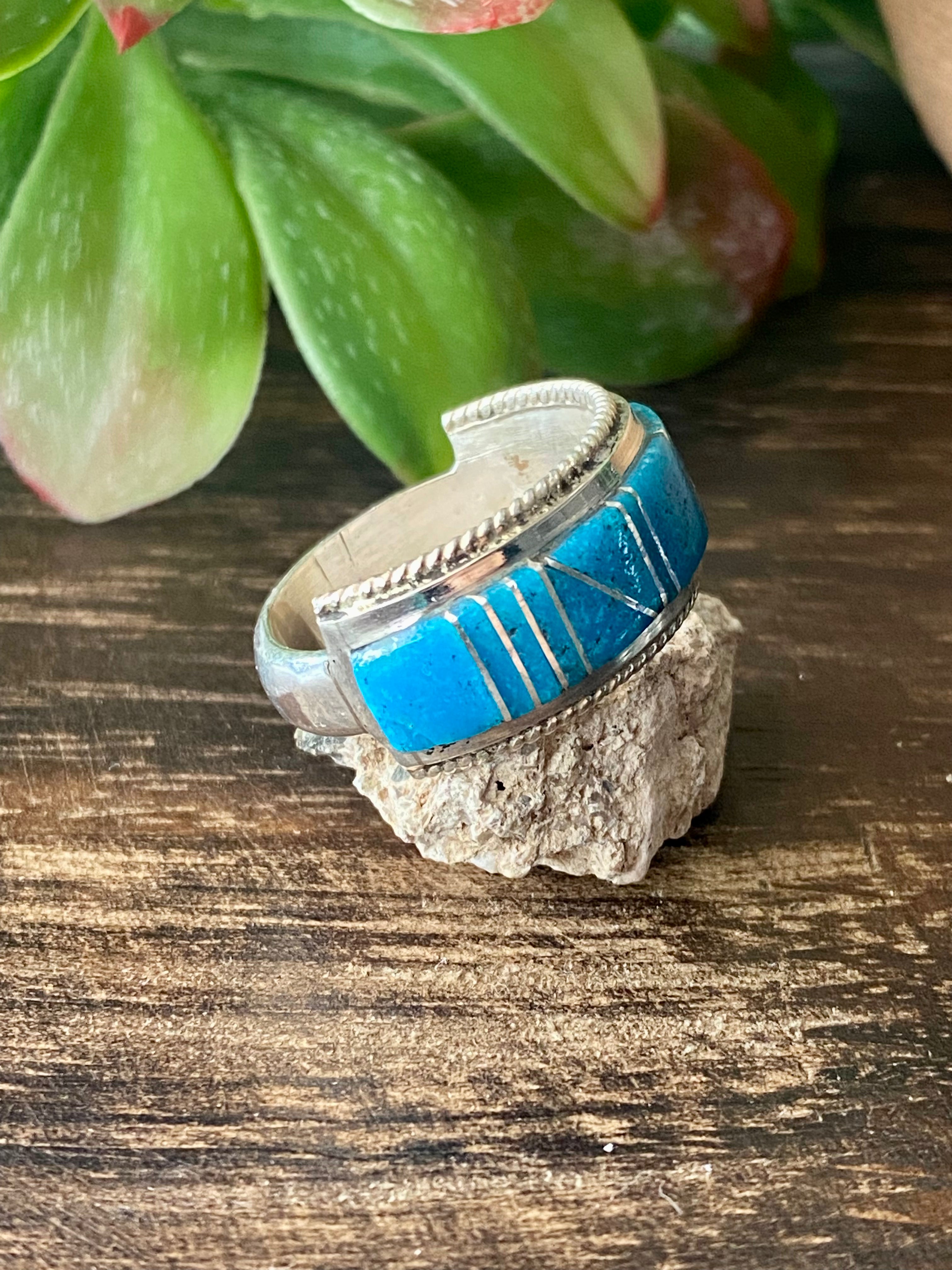 Navajo Made Kingman Turquoise & Sterling Silver Inlay Ring Size 11.5