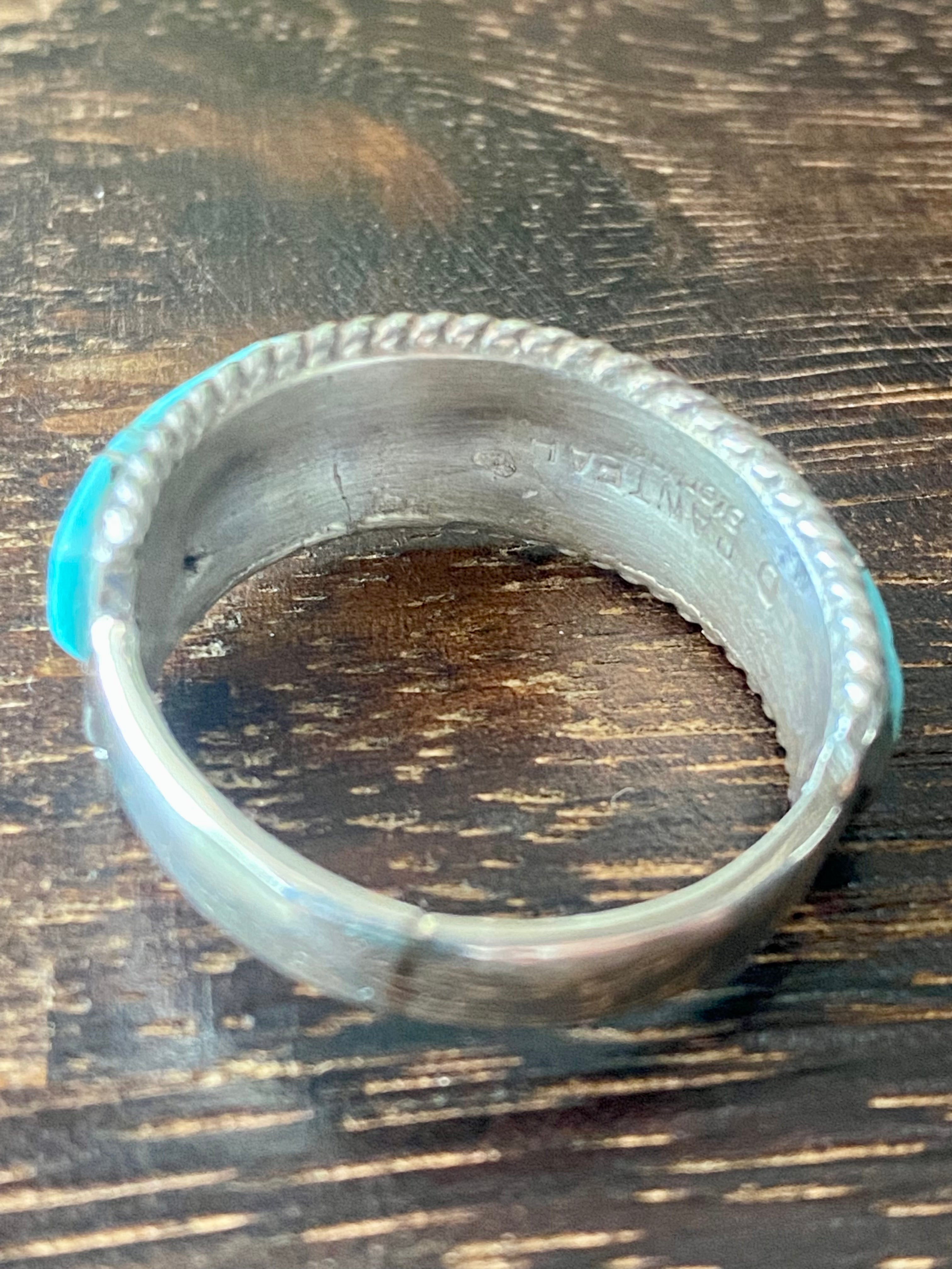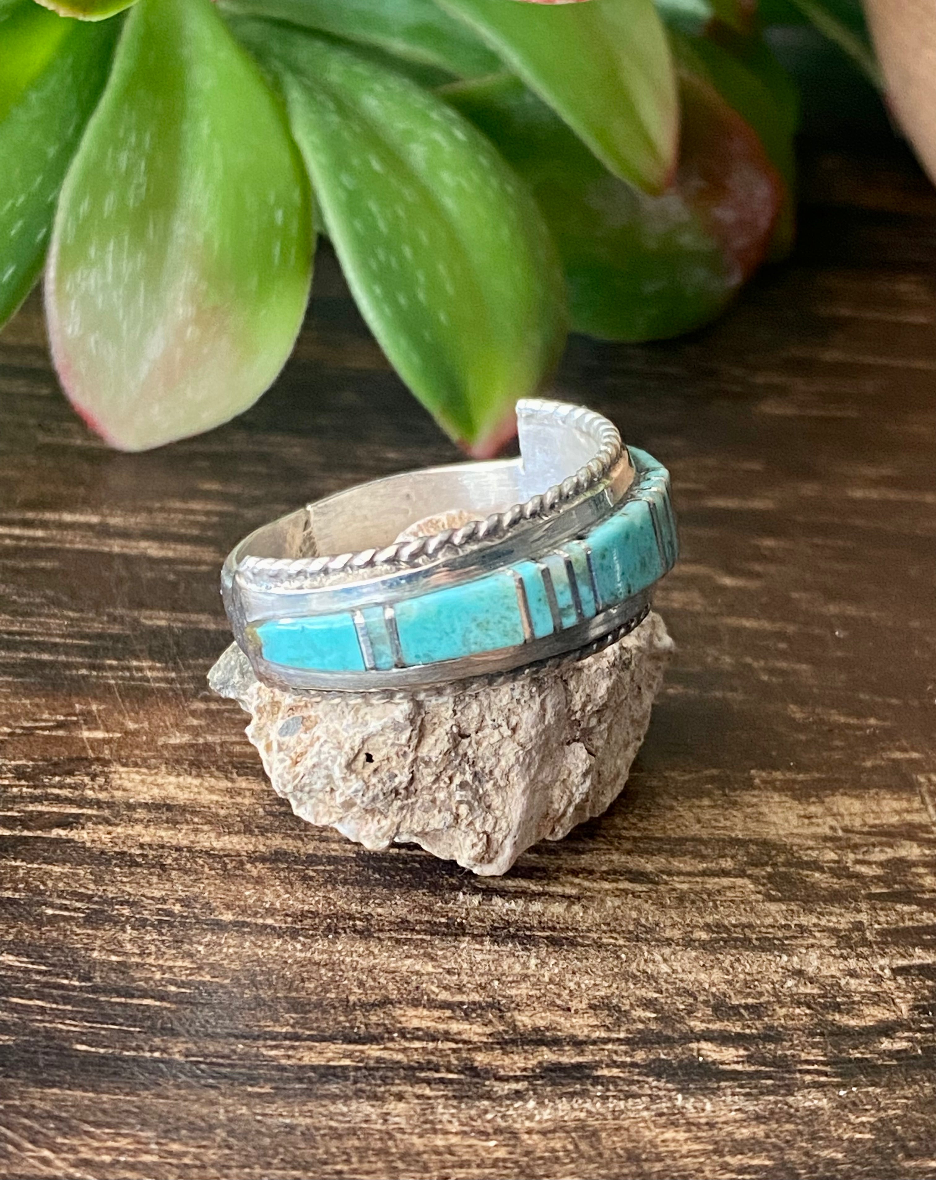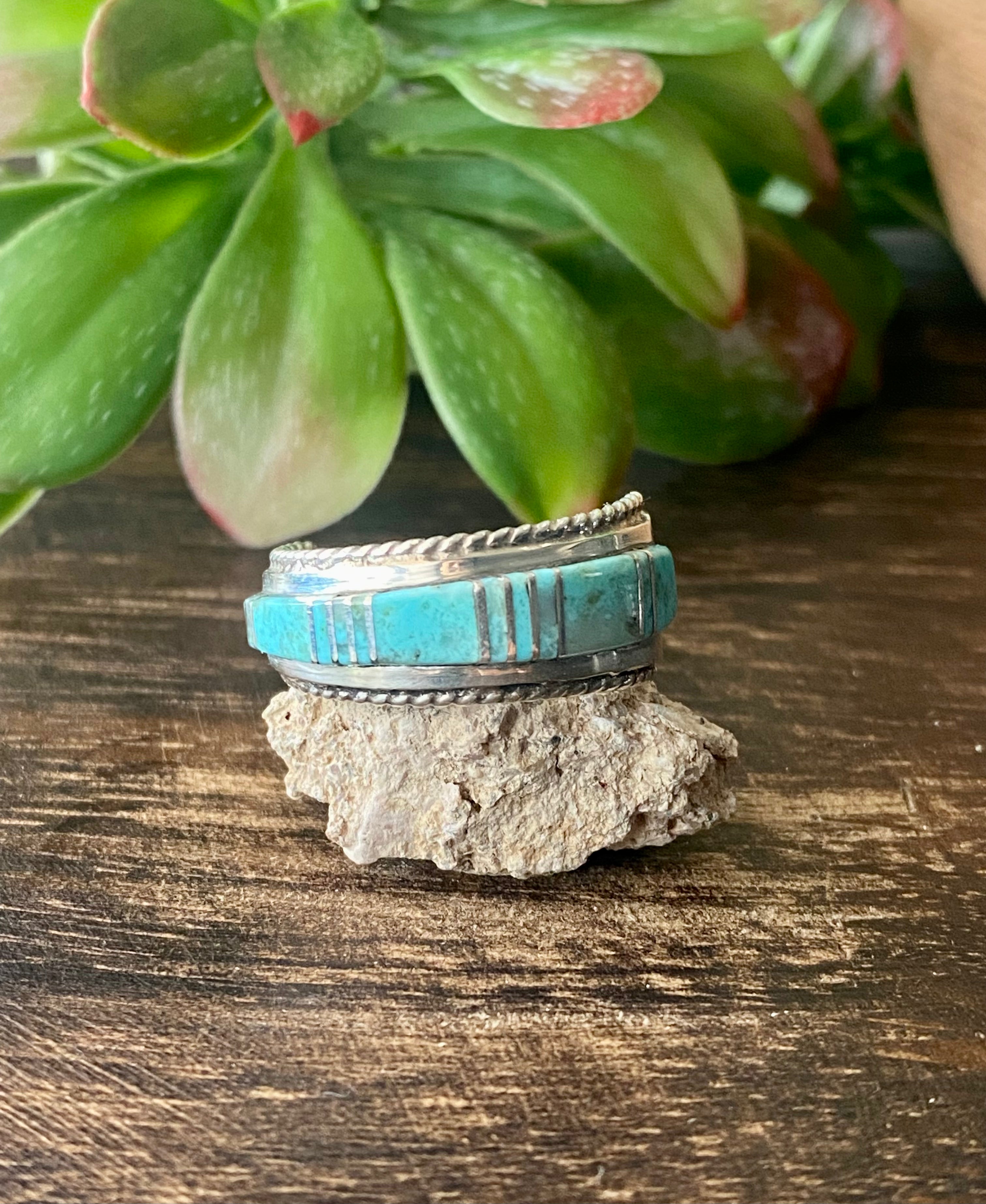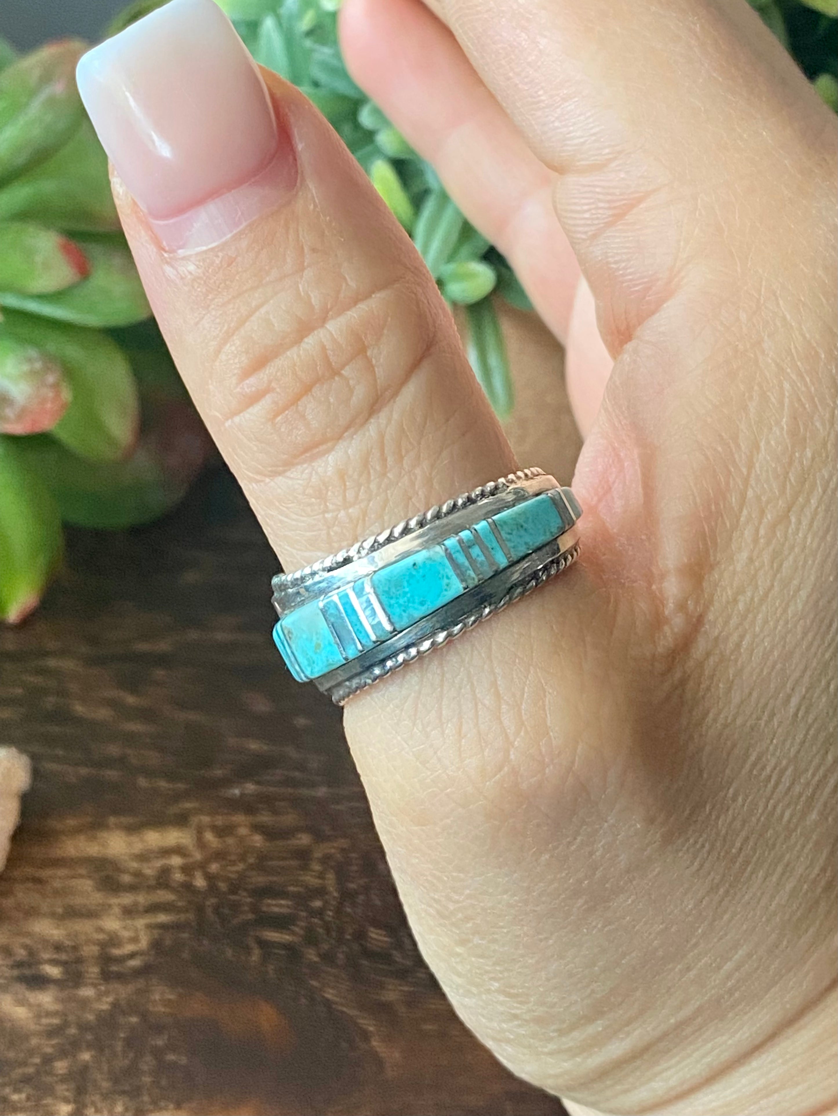 Navajo Made Kingman Turquoise & Sterling Silver Inlay Ring Size 11.5