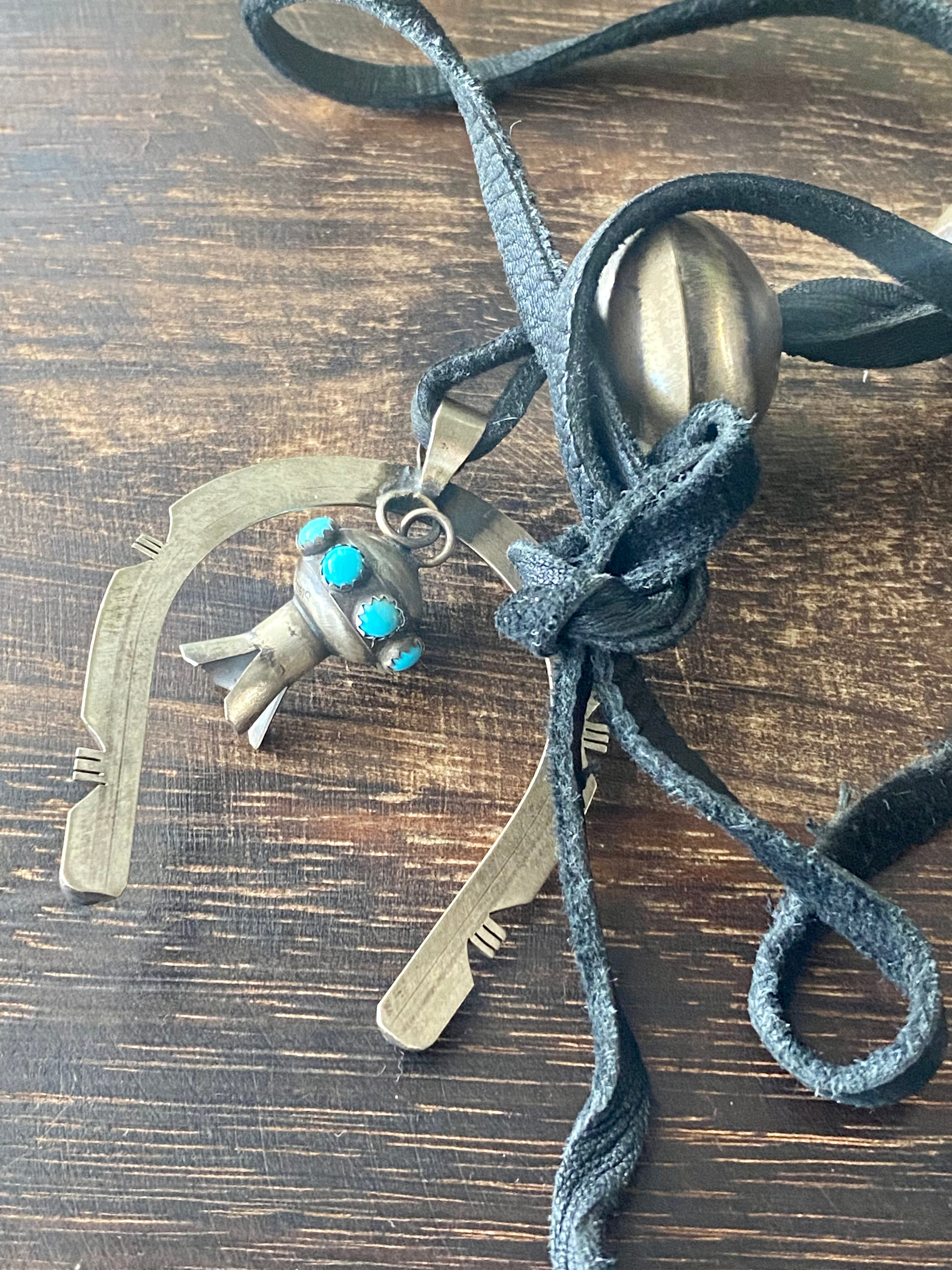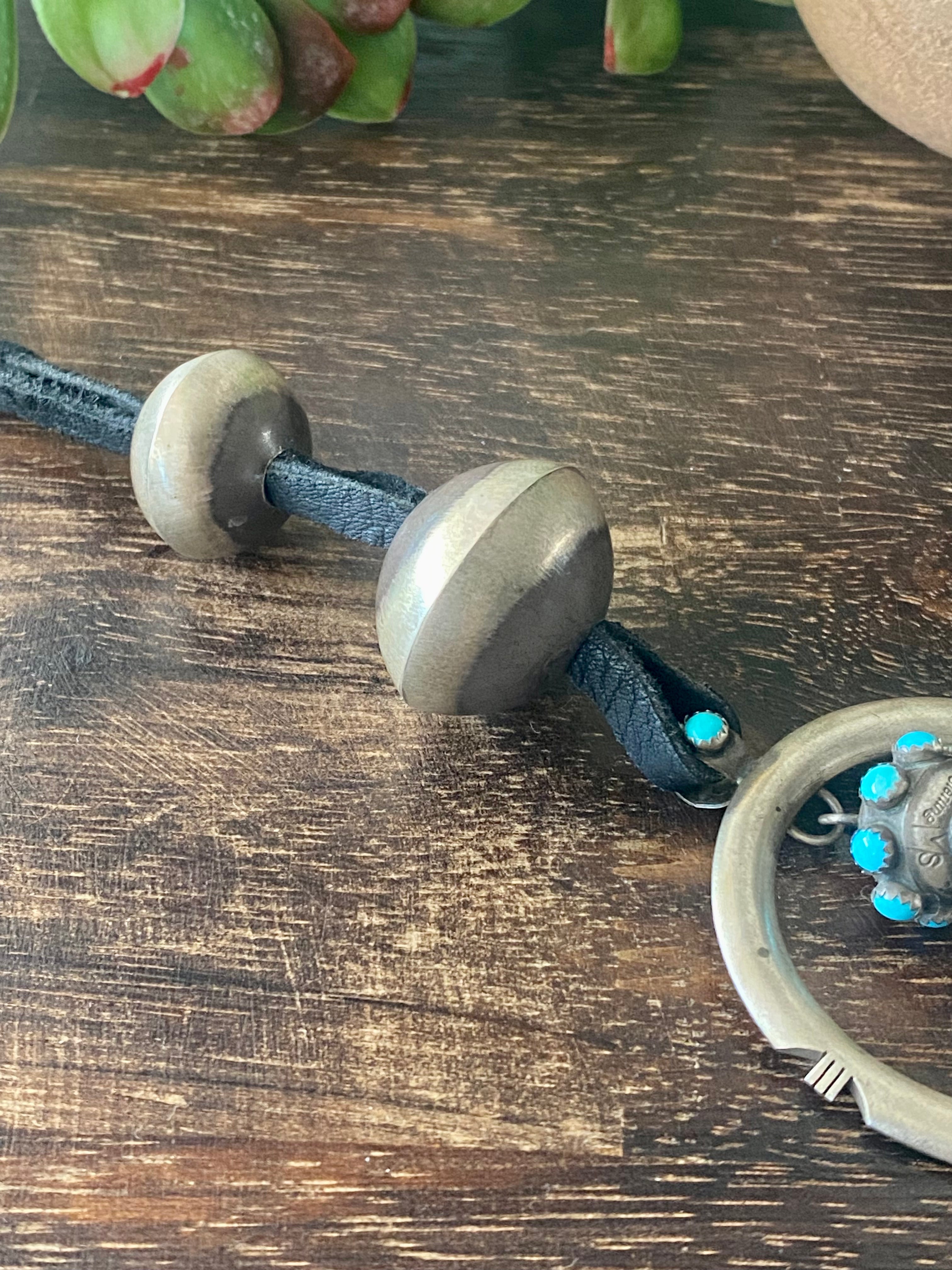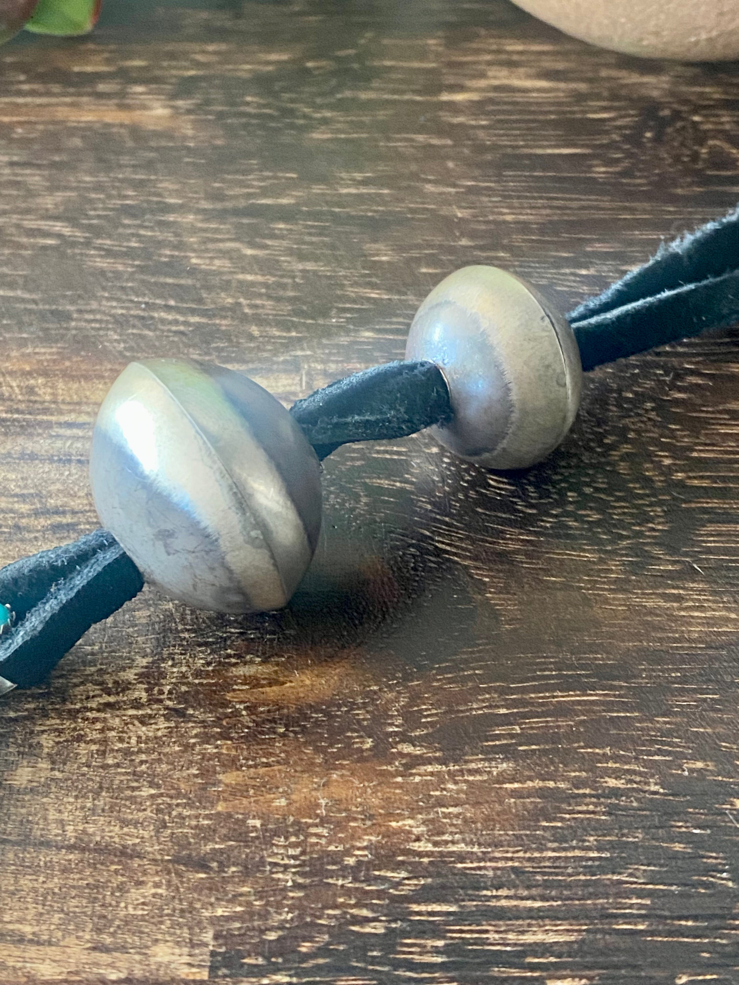 Navajo Made Kingman Turquoise & Sterling Silver Leather Naja Necklace