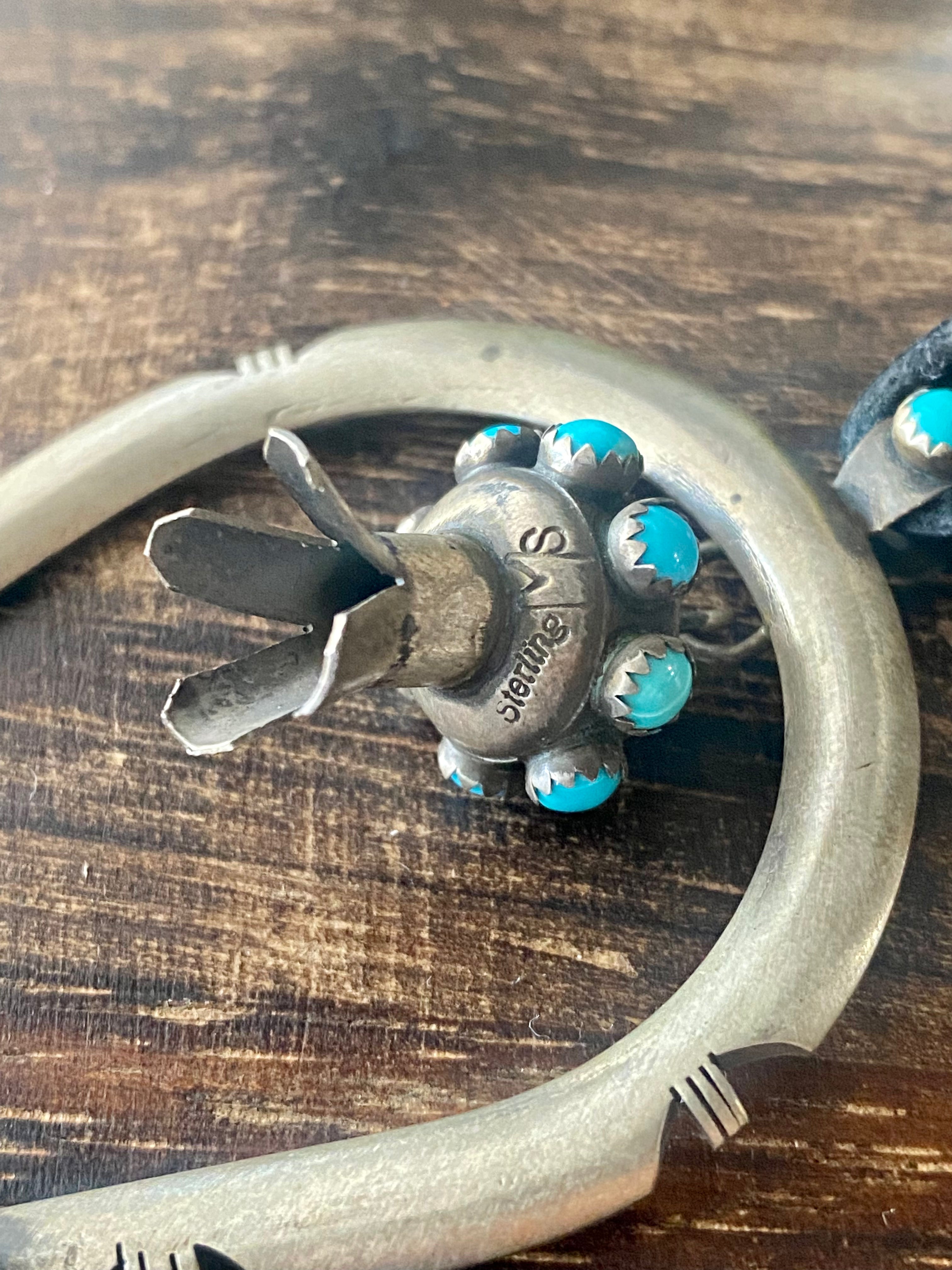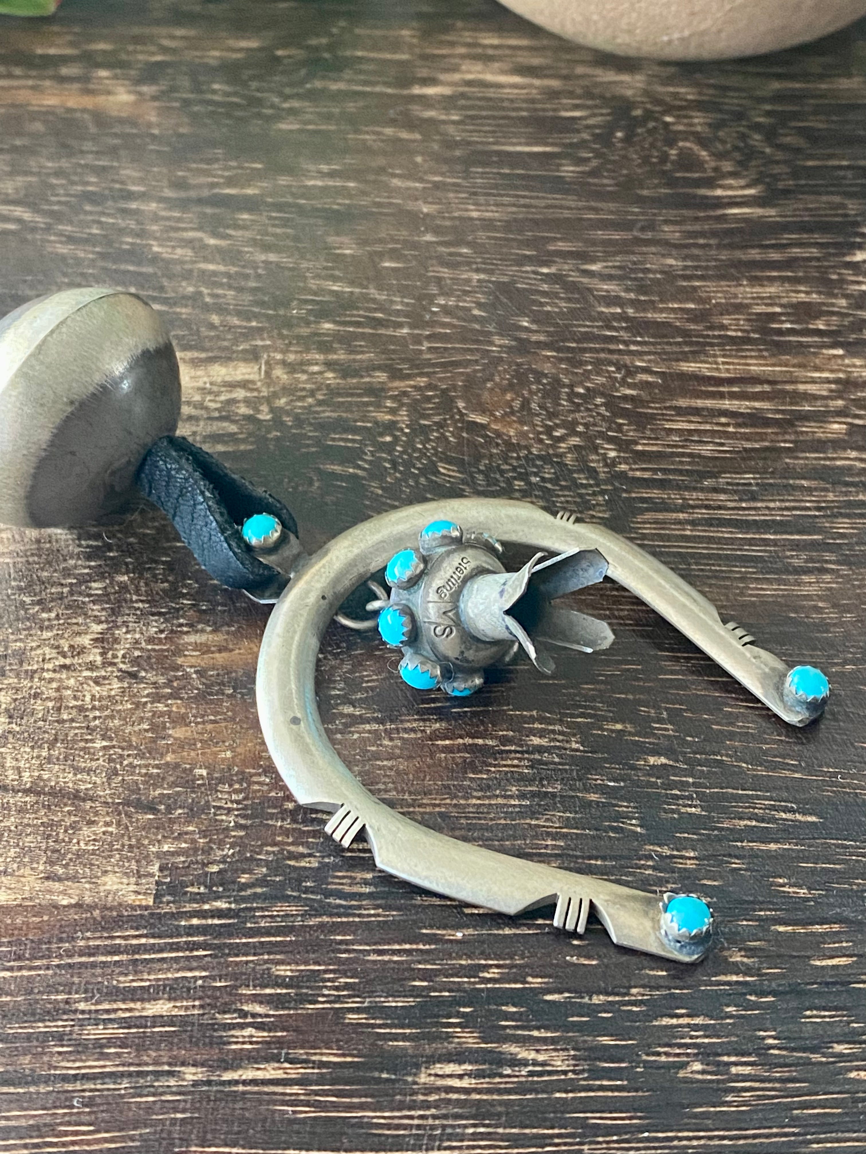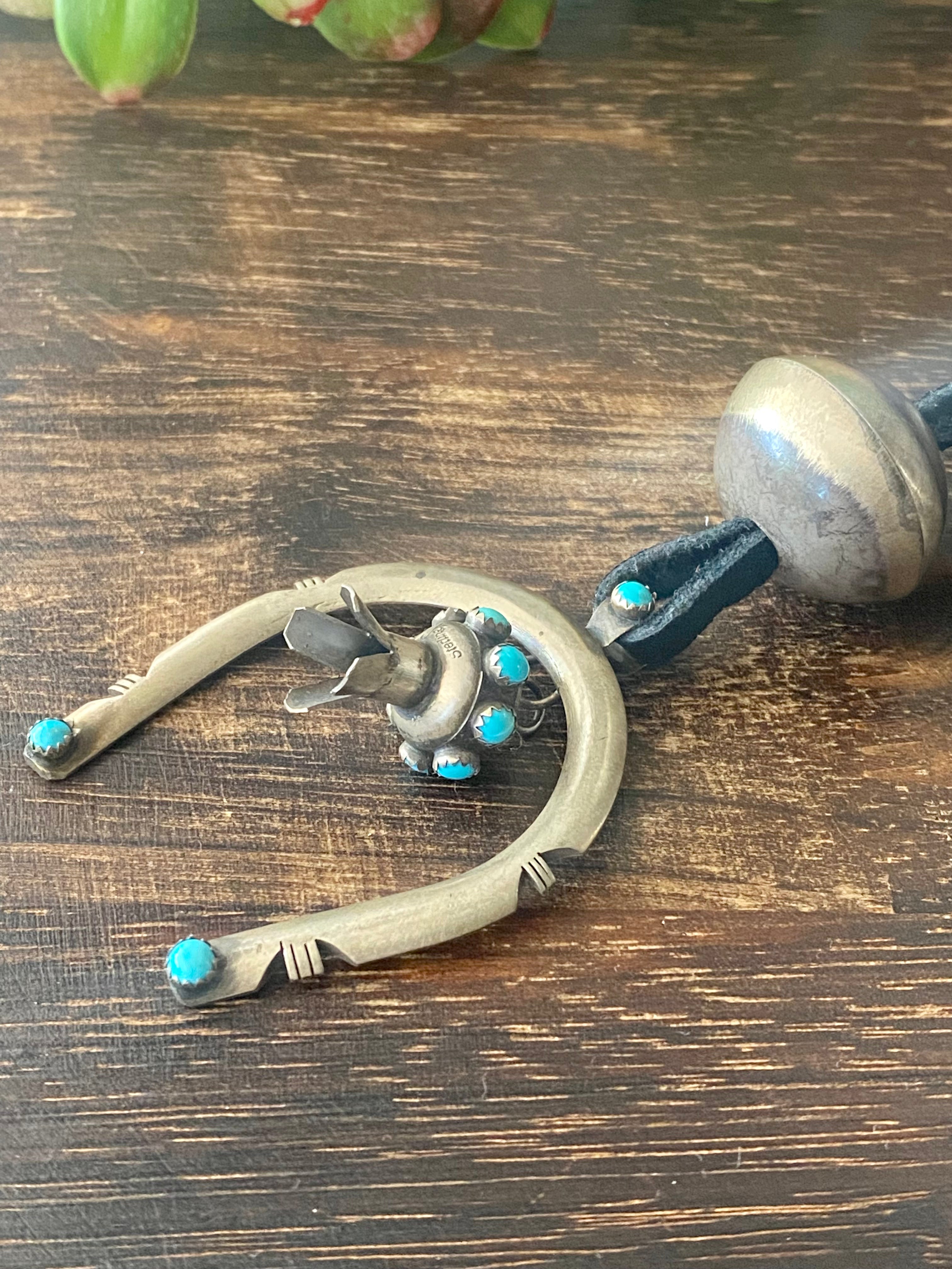 Navajo Made Kingman Turquoise & Sterling Silver Leather Naja Necklace